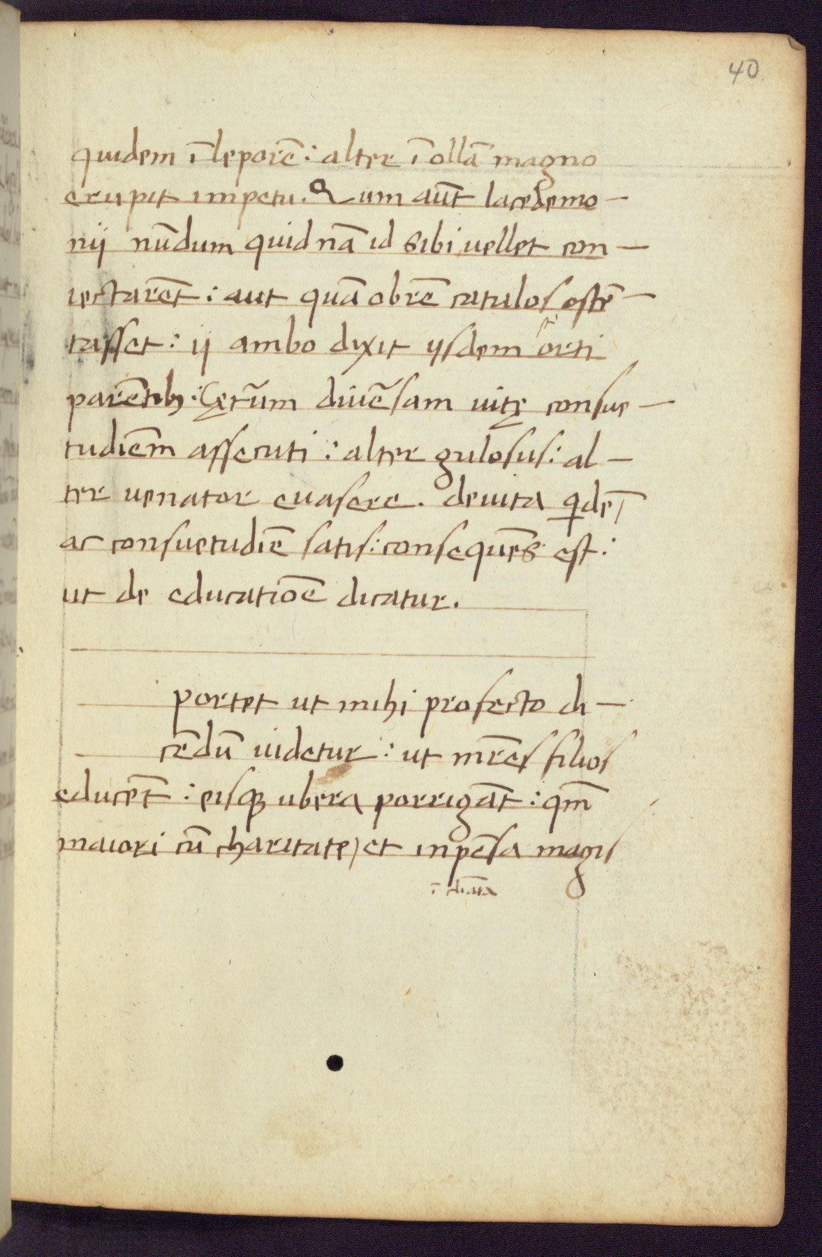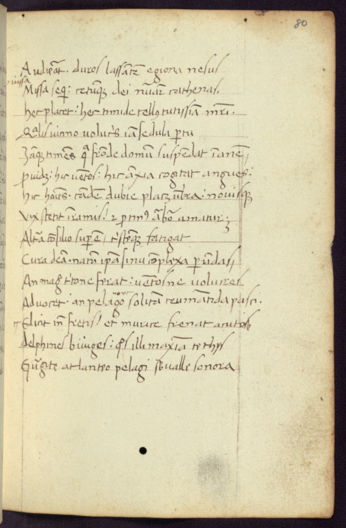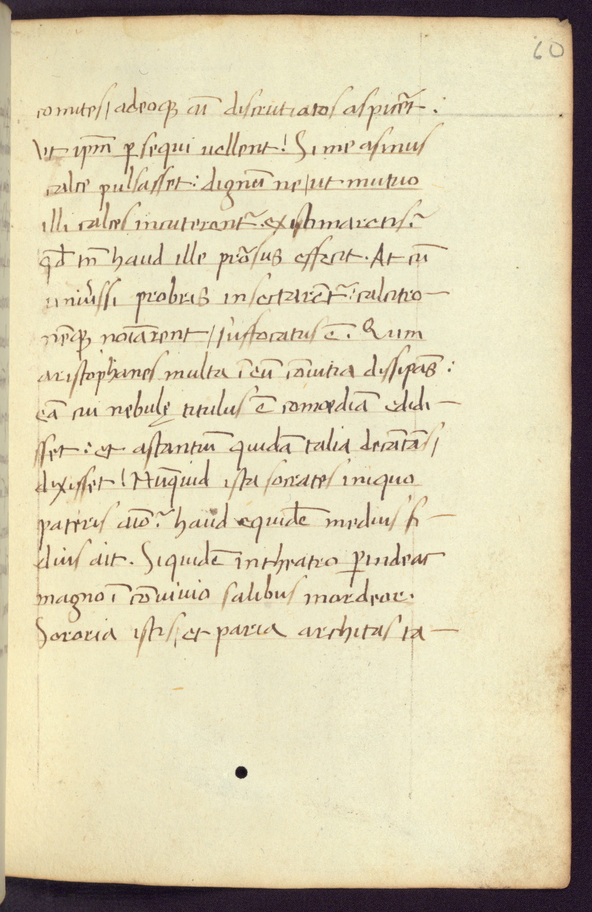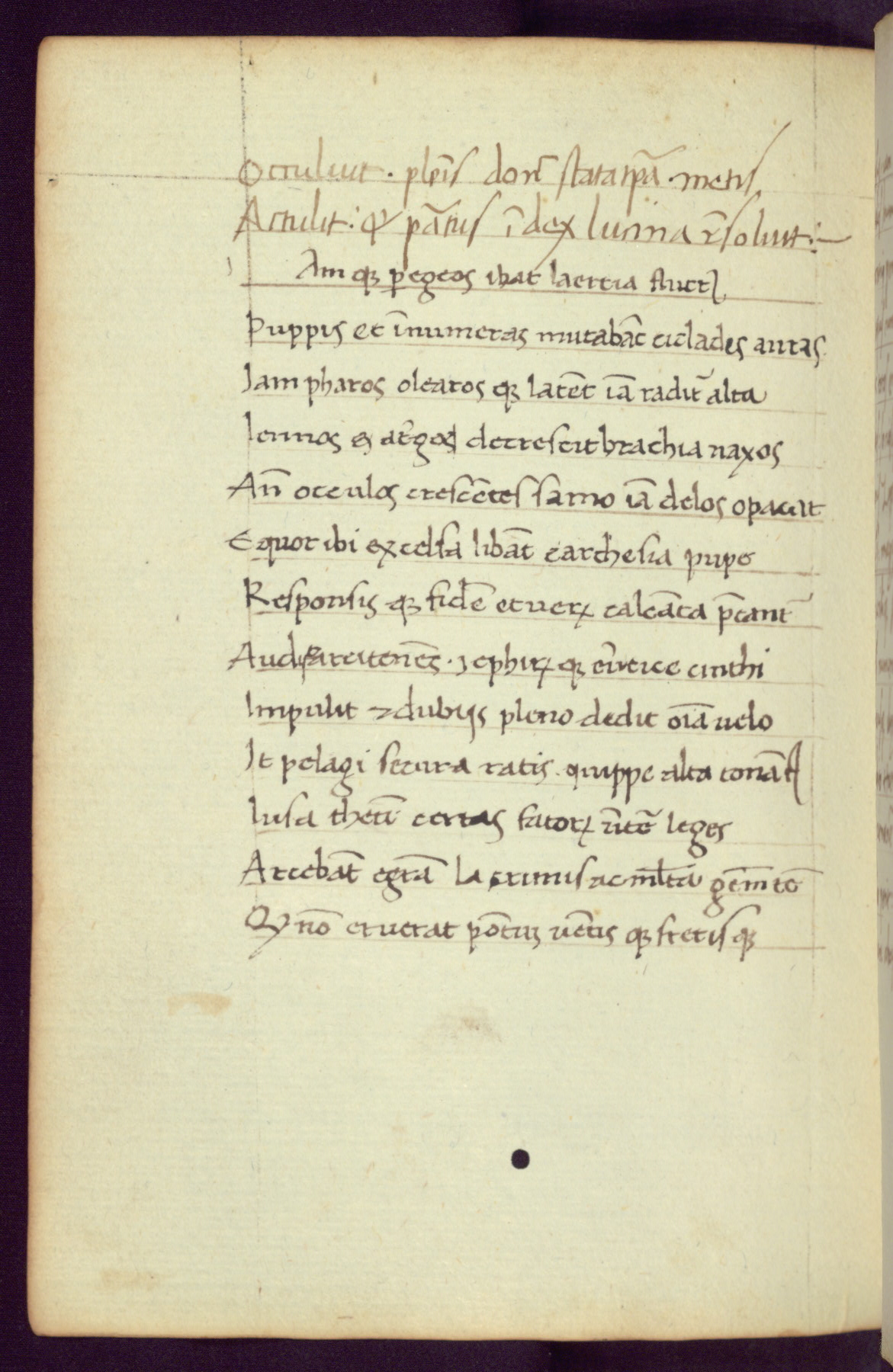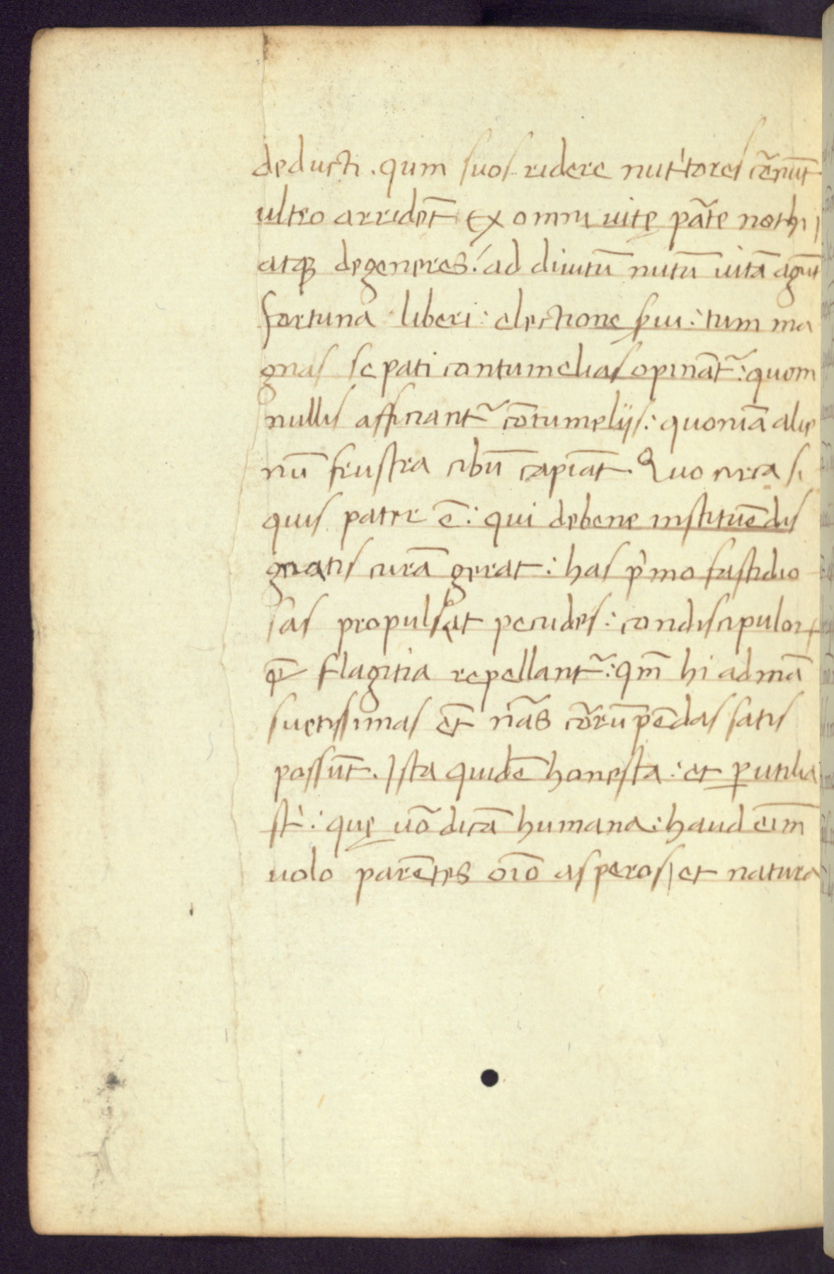 Written in Italy in the third quarter of the fifteenth century, this manuscript contains works by St. Basilius, Pseudo(?) Plutarch, and Statius. The first two texts are Greek treatises on education that were translated into Latin, bearing witness to the Italian humanist revival of, and interest in, the study of ancient Greek. The translators of those texts, Leonardo Bruni (d.1444) and Guarino Veronese (d.1460), both studied Greek under the tutelage of Byzantine scholar Manuel Chrysoloras (d.1415), who was one of the first to introduce Greek literature to Western Europe. The third text by Statius was included as part of a compendium of texts frequently used by students studying Latin beginning in the tenth century. During this same period, Statius was confused with the rhetorician Statius Ursulus of Toulouse, who is mentioned in Jerome’s translation of Eusebius’ chronicles as active in 56 CE. Statius' full Roman name was Publius Papinius Statius, however due to his conflation with the rhetorician in the tenth century, there are a number of manuscripts that begin Statius' name with “Sucurlus” instead of “Publius.” This can be found for instance in an Italian incunabula that is contemporary with W.358, and which is also found in the Walters’ collection (91.1119). This suggests that this error may have been a regional phenomenon in Italy.