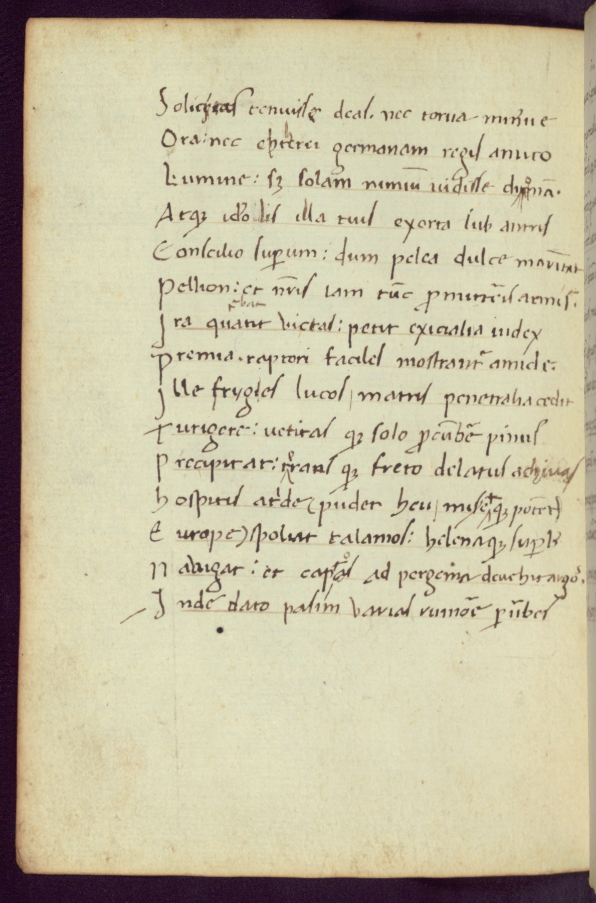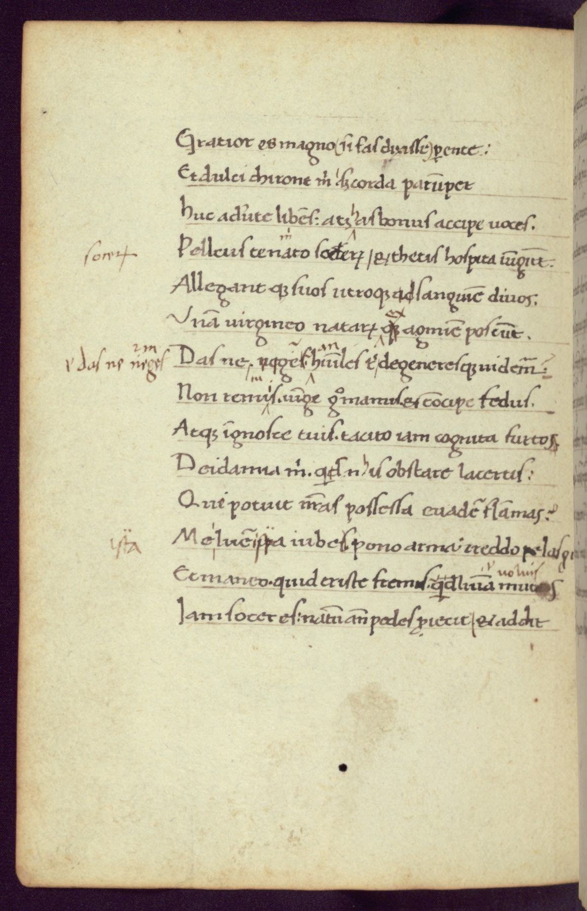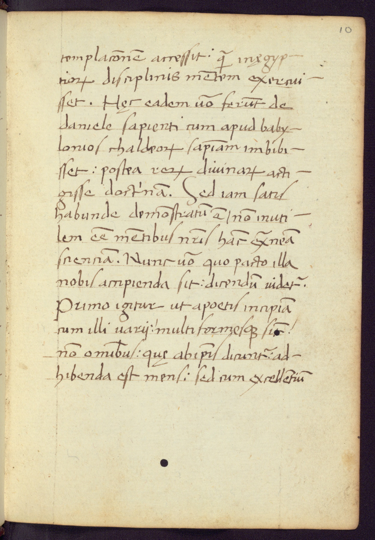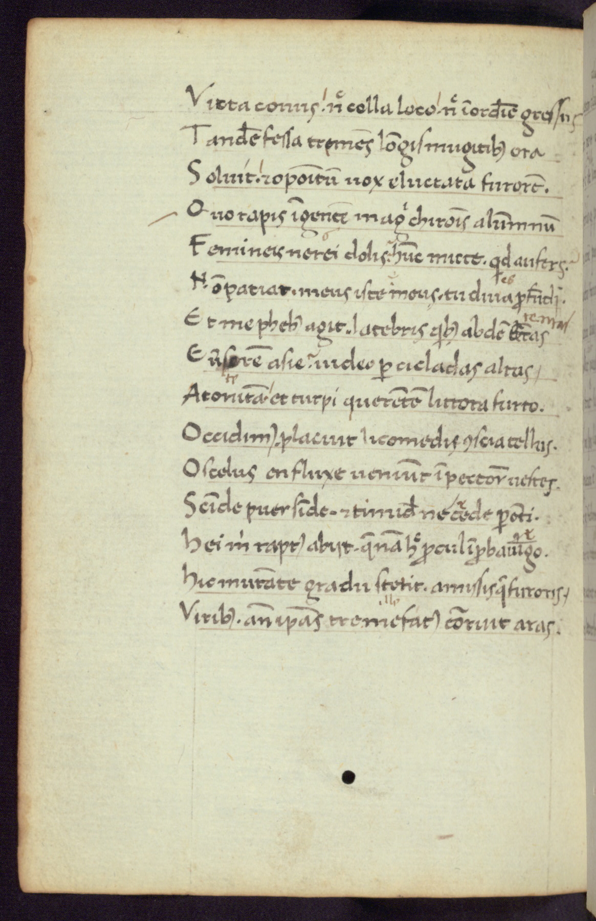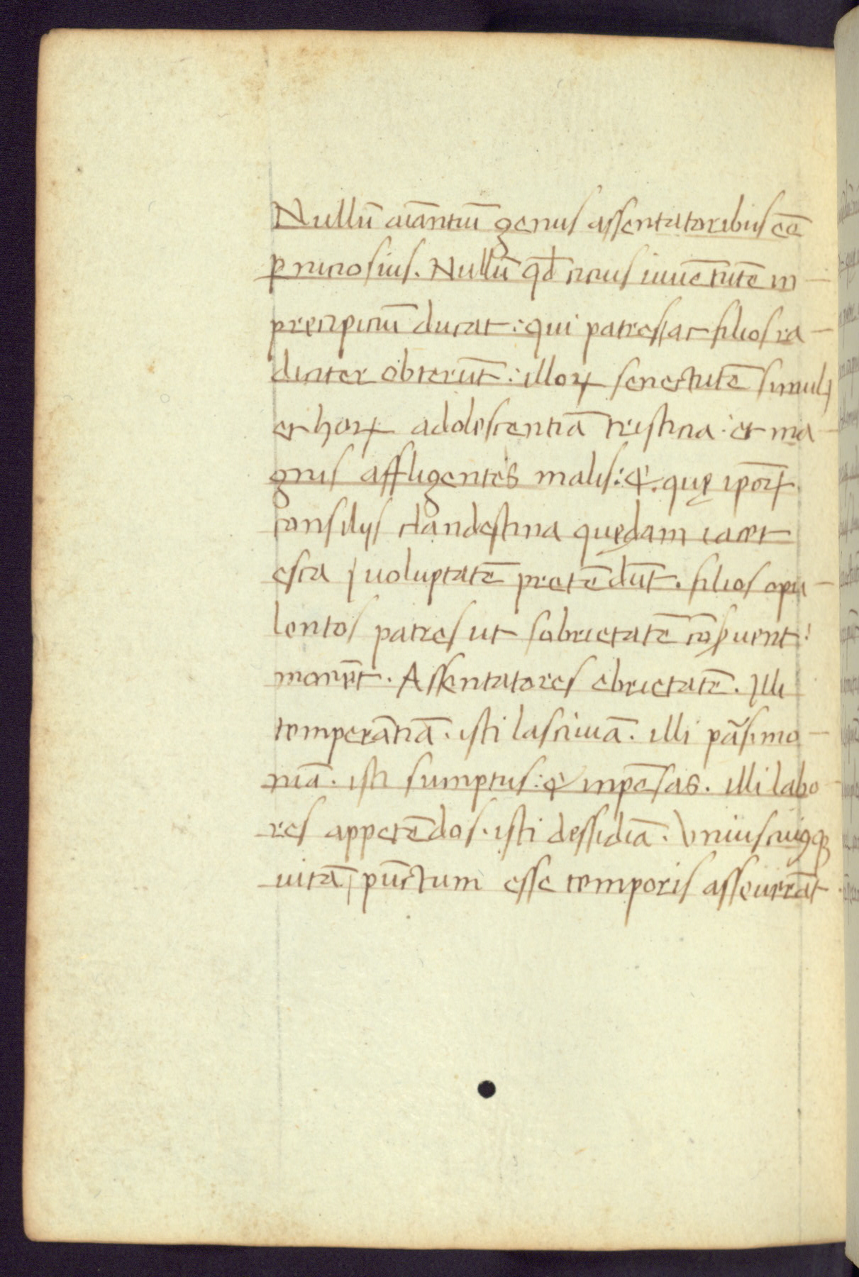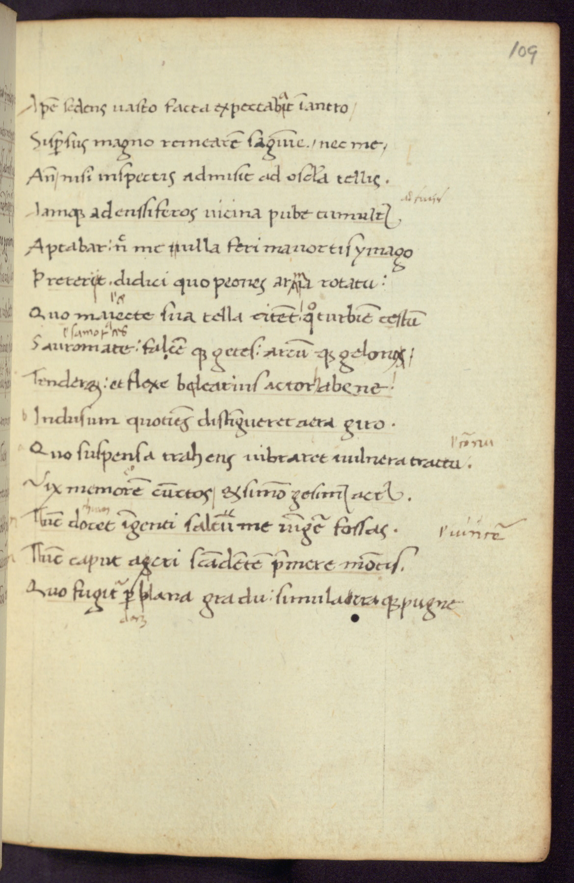 Written in Italy in the third quarter of the fifteenth century, this manuscript contains works by St. Basilius, Pseudo(?) Plutarch, and Statius. The first two texts are Greek treatises on education that were translated into Latin, bearing witness to the Italian humanist revival of, and interest in, the study of ancient Greek. The translators of those texts, Leonardo Bruni (d.1444) and Guarino Veronese (d.1460), both studied Greek under the tutelage of Byzantine scholar Manuel Chrysoloras (d.1415), who was one of the first to introduce Greek literature to Western Europe. The third text by Statius was included as part of a compendium of texts frequently used by students studying Latin beginning in the tenth century. During this same period, Statius was confused with the rhetorician Statius Ursulus of Toulouse, who is mentioned in Jerome’s translation of Eusebius’ chronicles as active in 56 CE. Statius' full Roman name was Publius Papinius Statius, however due to his conflation with the rhetorician in the tenth century, there are a number of manuscripts that begin Statius' name with “Sucurlus” instead of “Publius.” This can be found for instance in an Italian incunabula that is contemporary with W.358, and which is also found in the Walters’ collection (91.1119). This suggests that this error may have been a regional phenomenon in Italy.