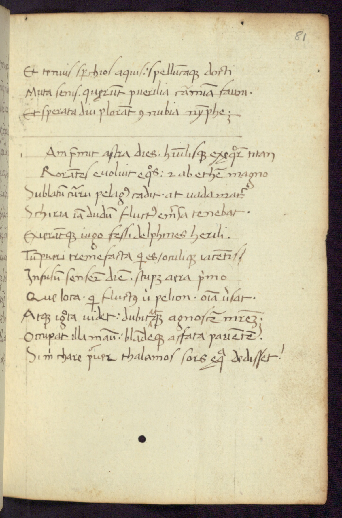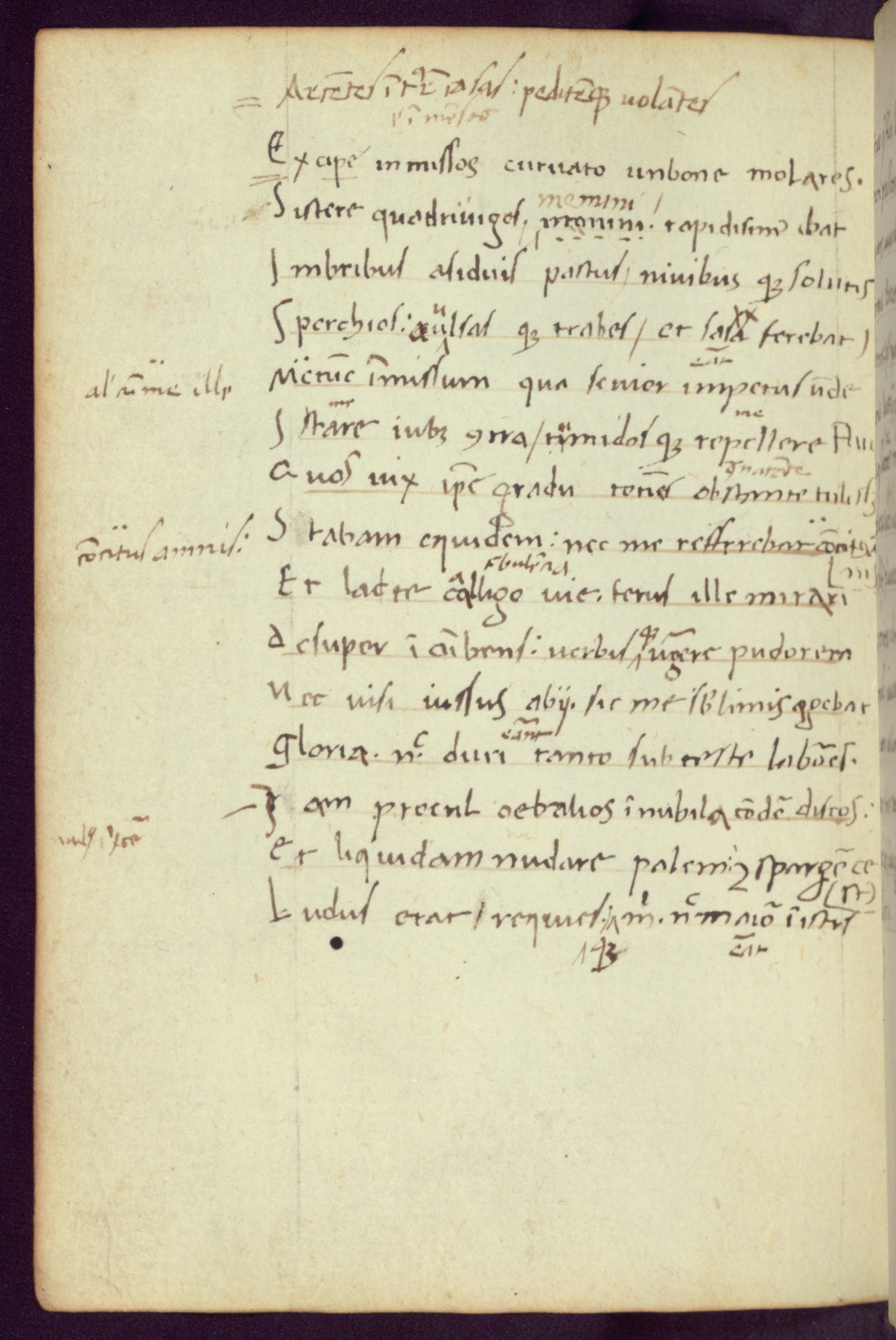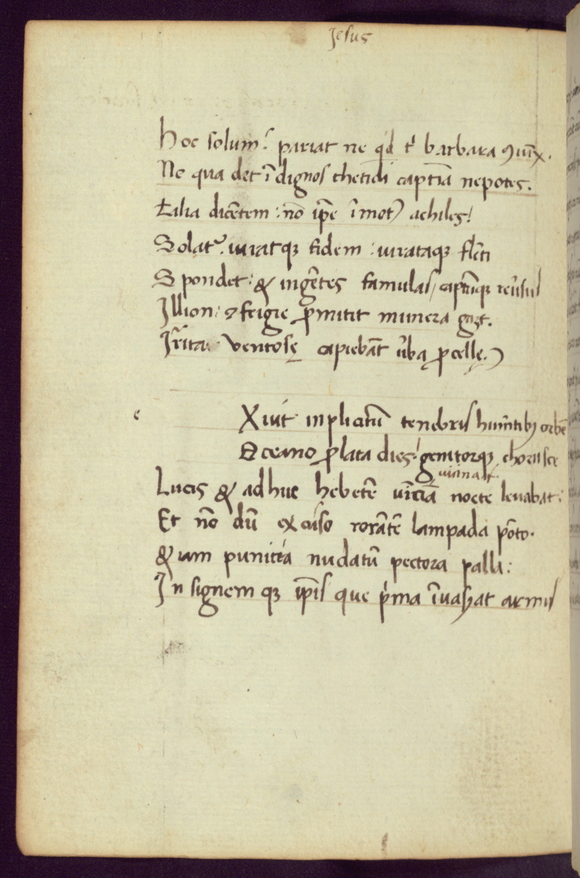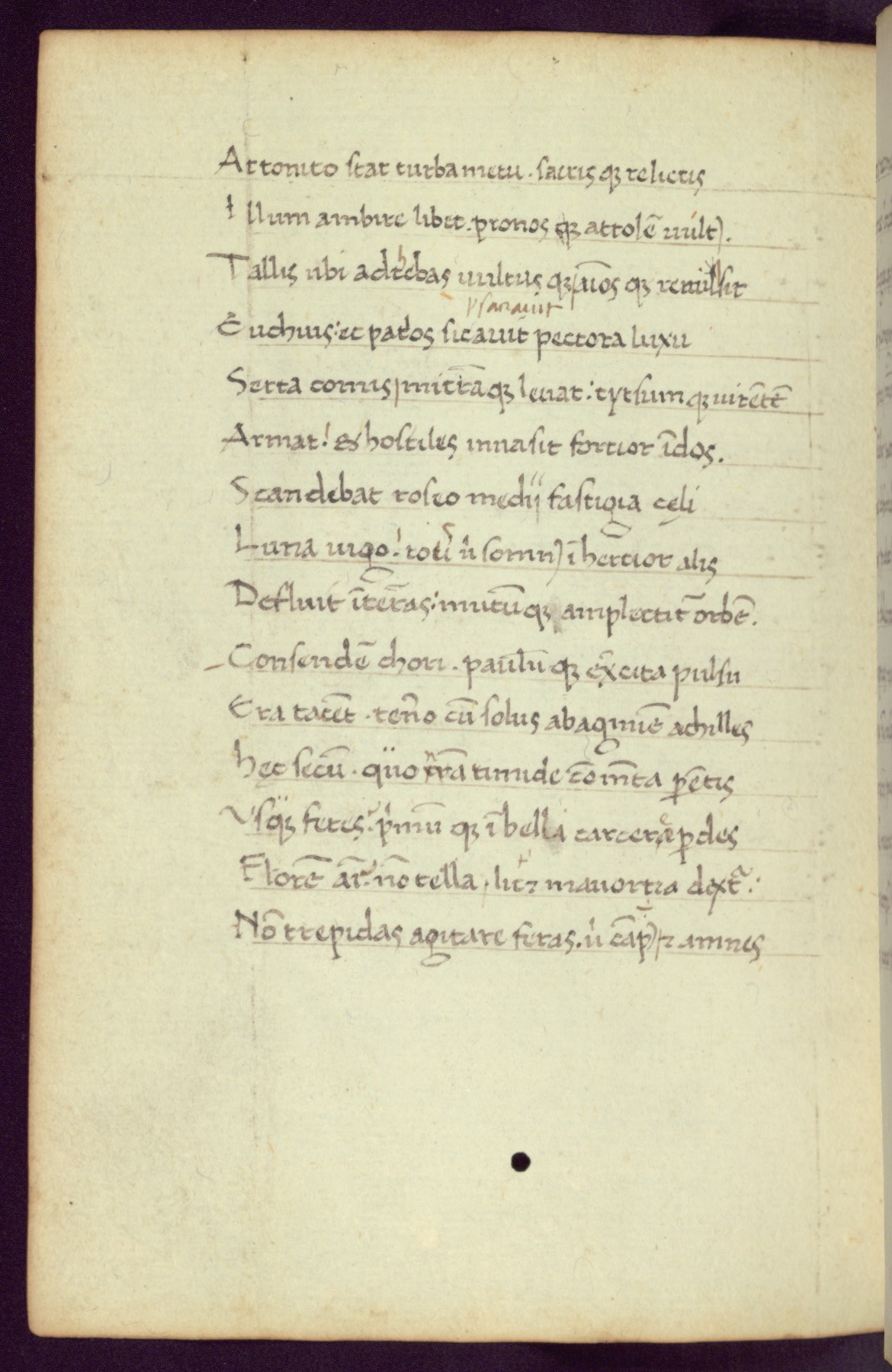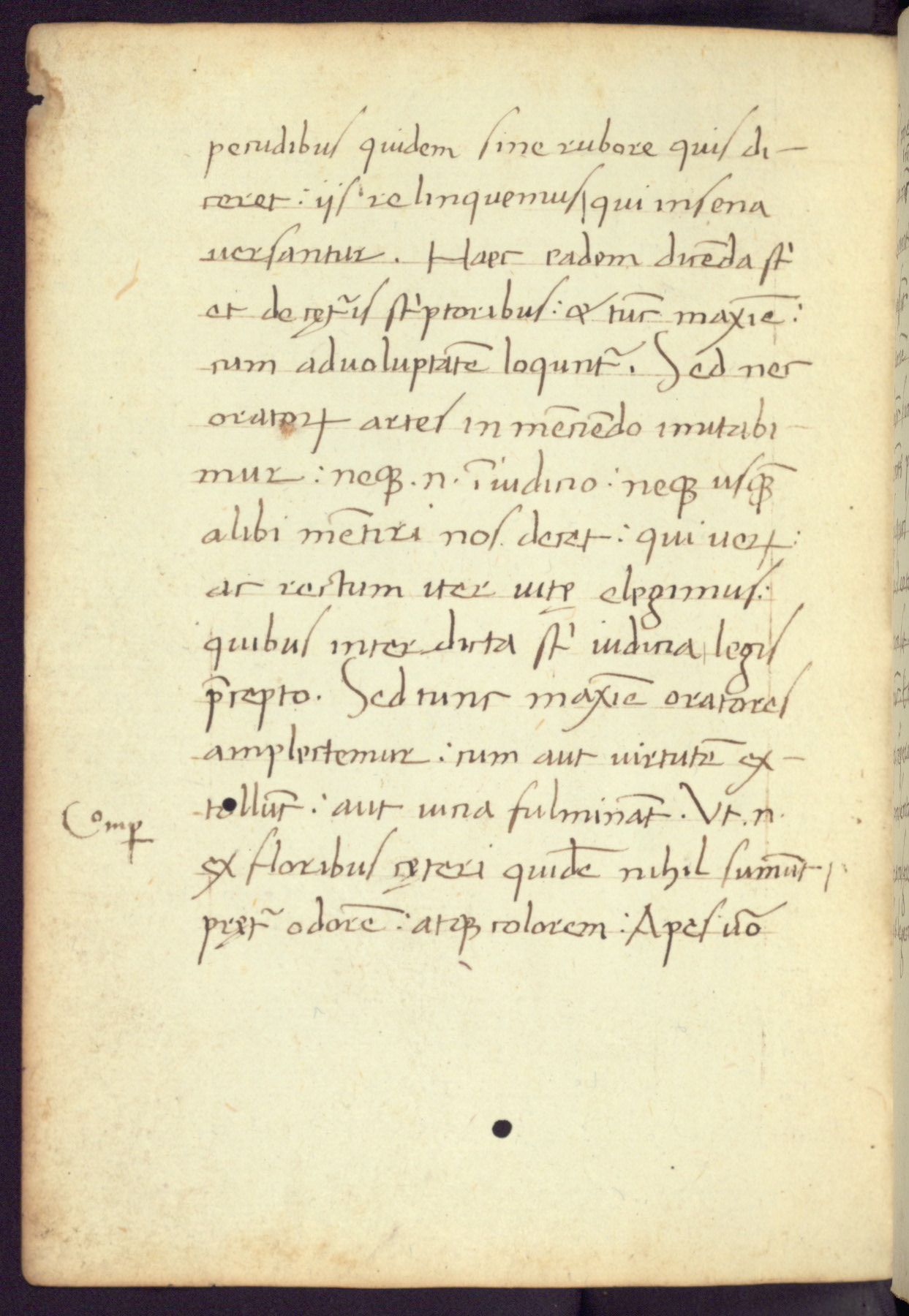 Written in Italy in the third quarter of the fifteenth century, this manuscript contains works by St. Basilius, Pseudo(?) Plutarch, and Statius. The first two texts are Greek treatises on education that were translated into Latin, bearing witness to the Italian humanist revival of, and interest in, the study of ancient Greek. The translators of those texts, Leonardo Bruni (d.1444) and Guarino Veronese (d.1460), both studied Greek under the tutelage of Byzantine scholar Manuel Chrysoloras (d.1415), who was one of the first to introduce Greek literature to Western Europe. The third text by Statius was included as part of a compendium of texts frequently used by students studying Latin beginning in the tenth century. During this same period, Statius was confused with the rhetorician Statius Ursulus of Toulouse, who is mentioned in Jerome’s translation of Eusebius’ chronicles as active in 56 CE. Statius' full Roman name was Publius Papinius Statius, however due to his conflation with the rhetorician in the tenth century, there are a number of manuscripts that begin Statius' name with “Sucurlus” instead of “Publius.” This can be found for instance in an Italian incunabula that is contemporary with W.358, and which is also found in the Walters’ collection (91.1119). This suggests that this error may have been a regional phenomenon in Italy.