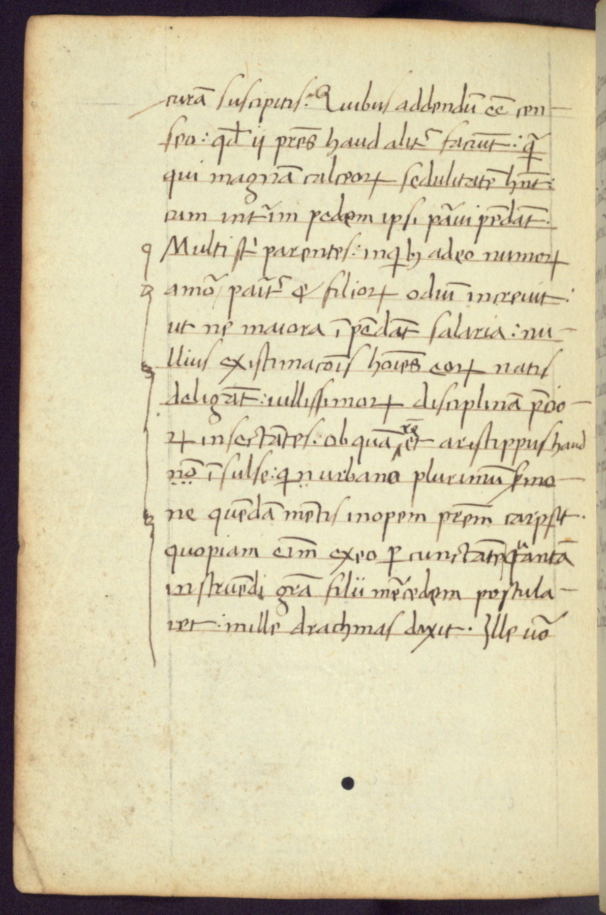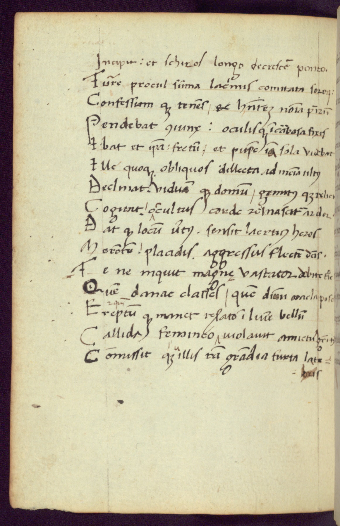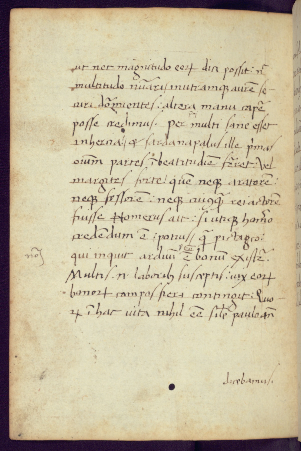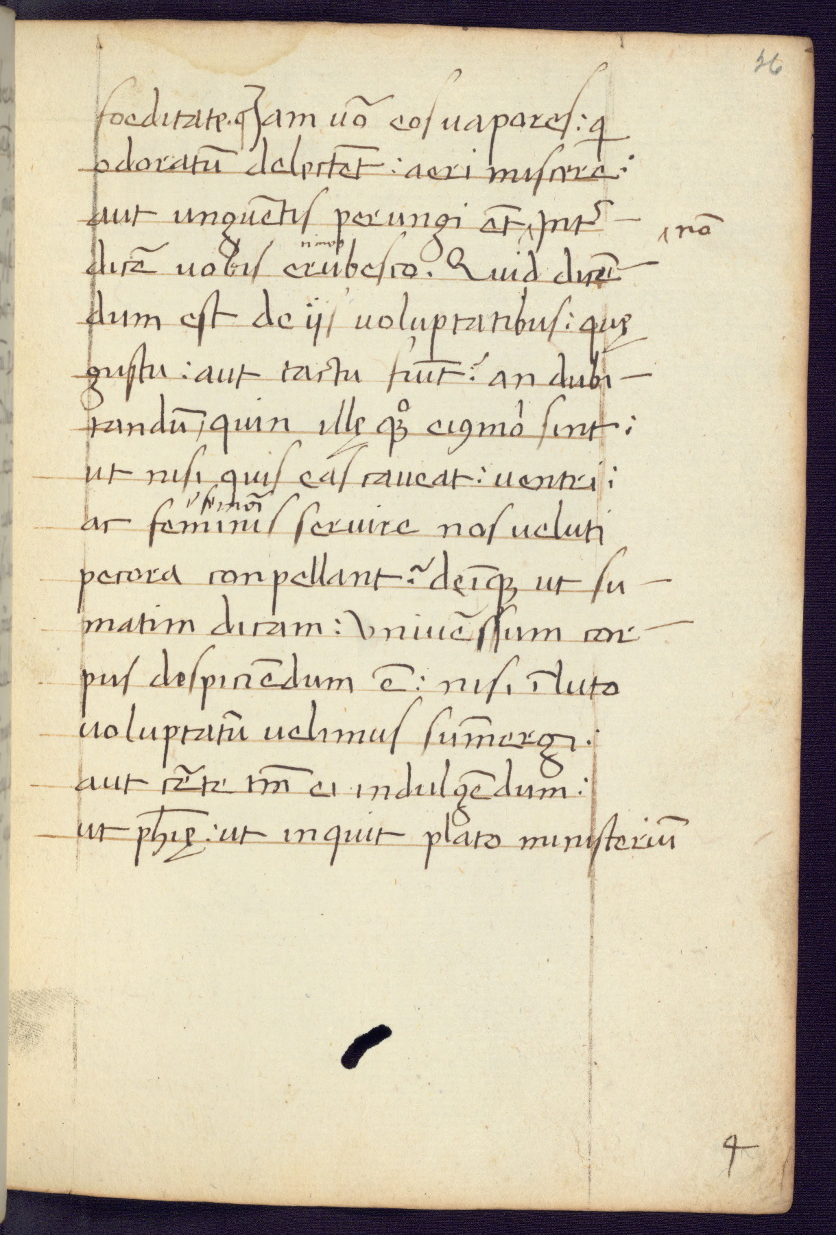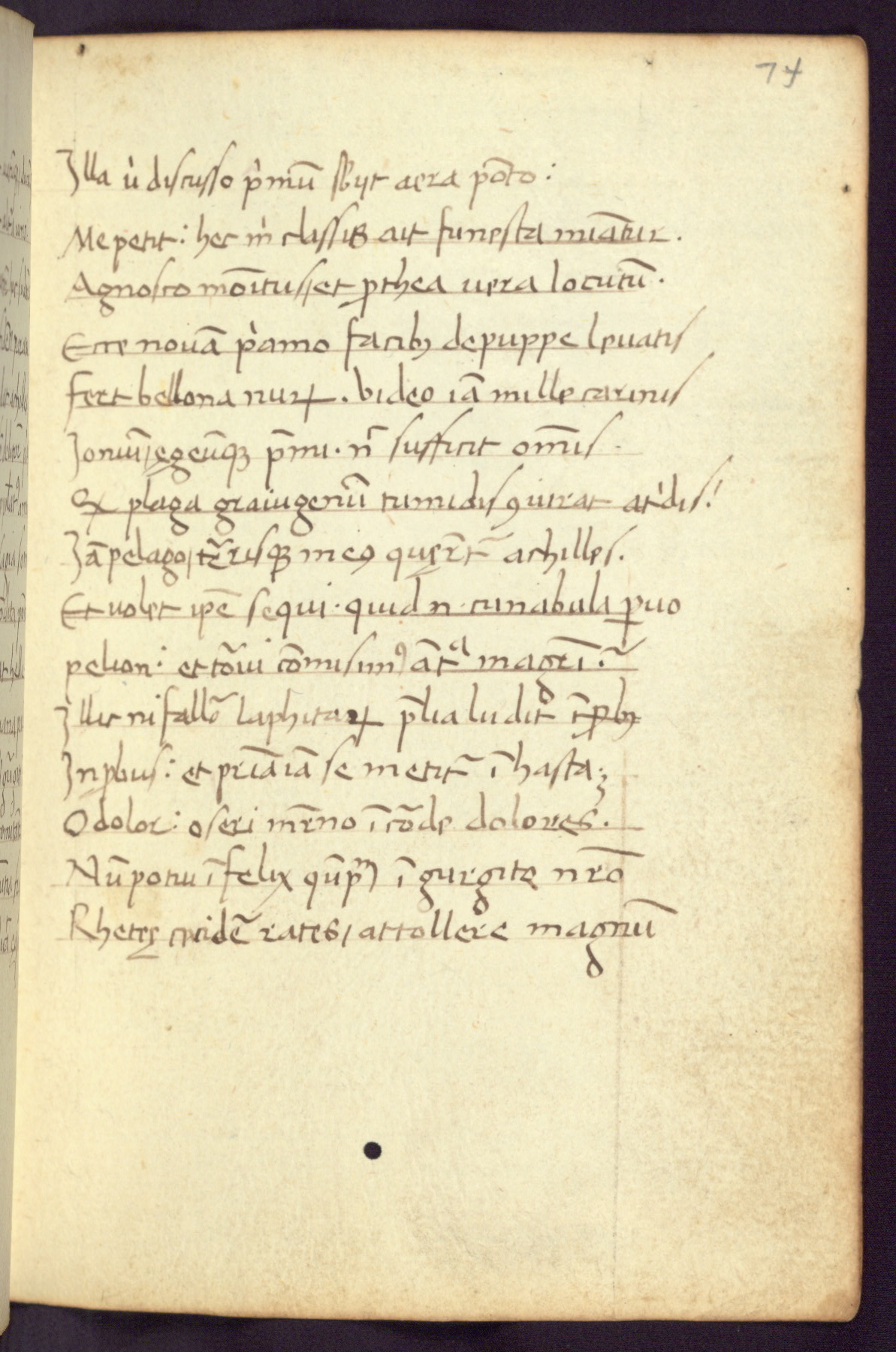 Written in Italy in the third quarter of the fifteenth century, this manuscript contains works by St. Basilius, Pseudo(?) Plutarch, and Statius. The first two texts are Greek treatises on education that were translated into Latin, bearing witness to the Italian humanist revival of, and interest in, the study of ancient Greek. The translators of those texts, Leonardo Bruni (d.1444) and Guarino Veronese (d.1460), both studied Greek under the tutelage of Byzantine scholar Manuel Chrysoloras (d.1415), who was one of the first to introduce Greek literature to Western Europe. The third text by Statius was included as part of a compendium of texts frequently used by students studying Latin beginning in the tenth century. During this same period, Statius was confused with the rhetorician Statius Ursulus of Toulouse, who is mentioned in Jerome’s translation of Eusebius’ chronicles as active in 56 CE. Statius' full Roman name was Publius Papinius Statius, however due to his conflation with the rhetorician in the tenth century, there are a number of manuscripts that begin Statius' name with “Sucurlus” instead of “Publius.” This can be found for instance in an Italian incunabula that is contemporary with W.358, and which is also found in the Walters’ collection (91.1119). This suggests that this error may have been a regional phenomenon in Italy.