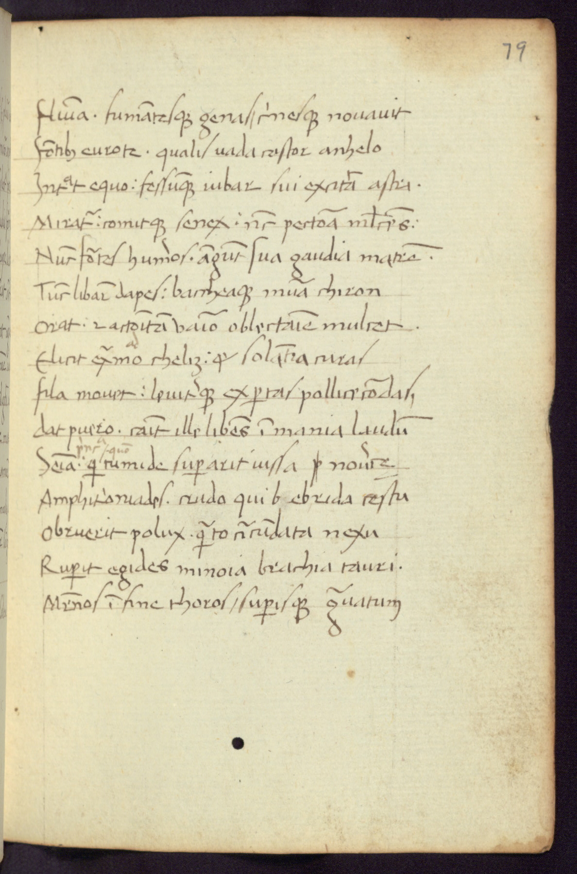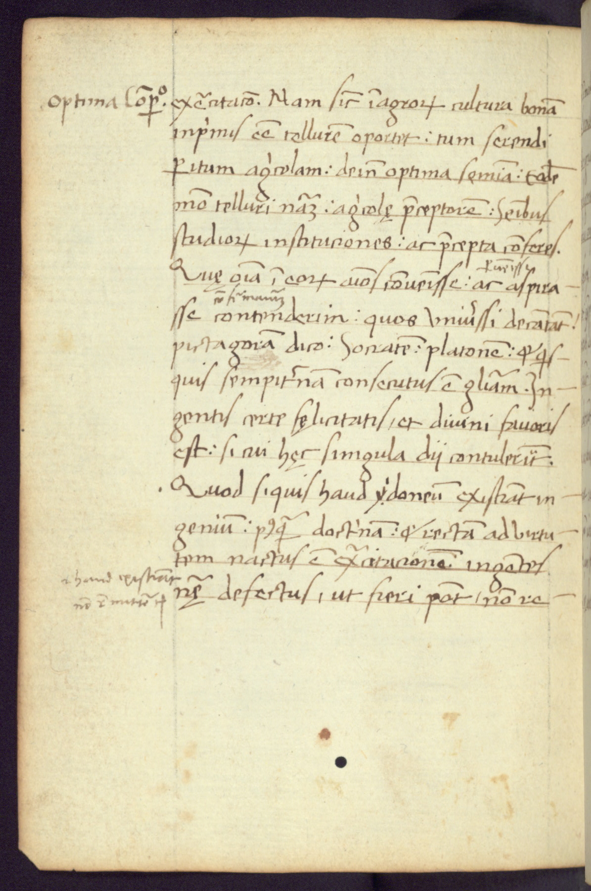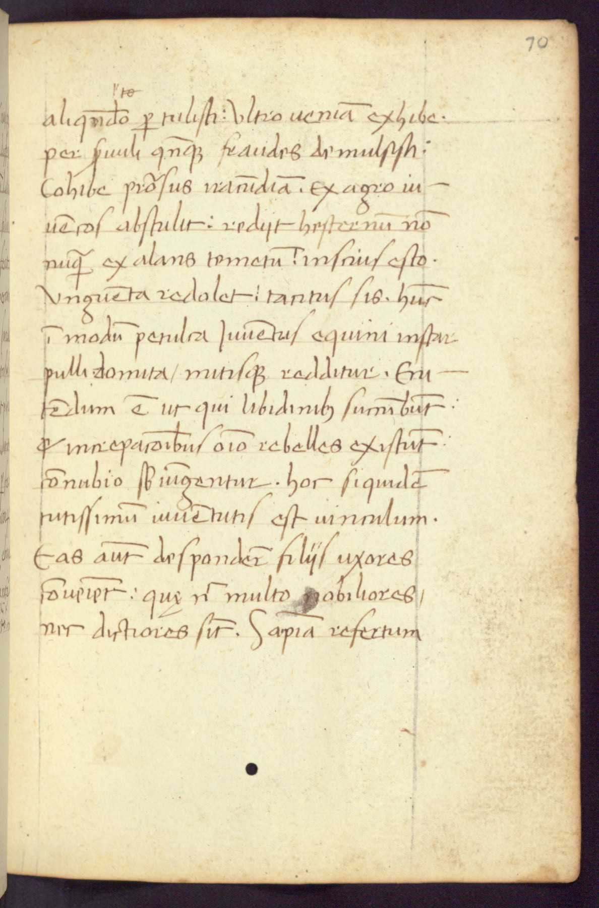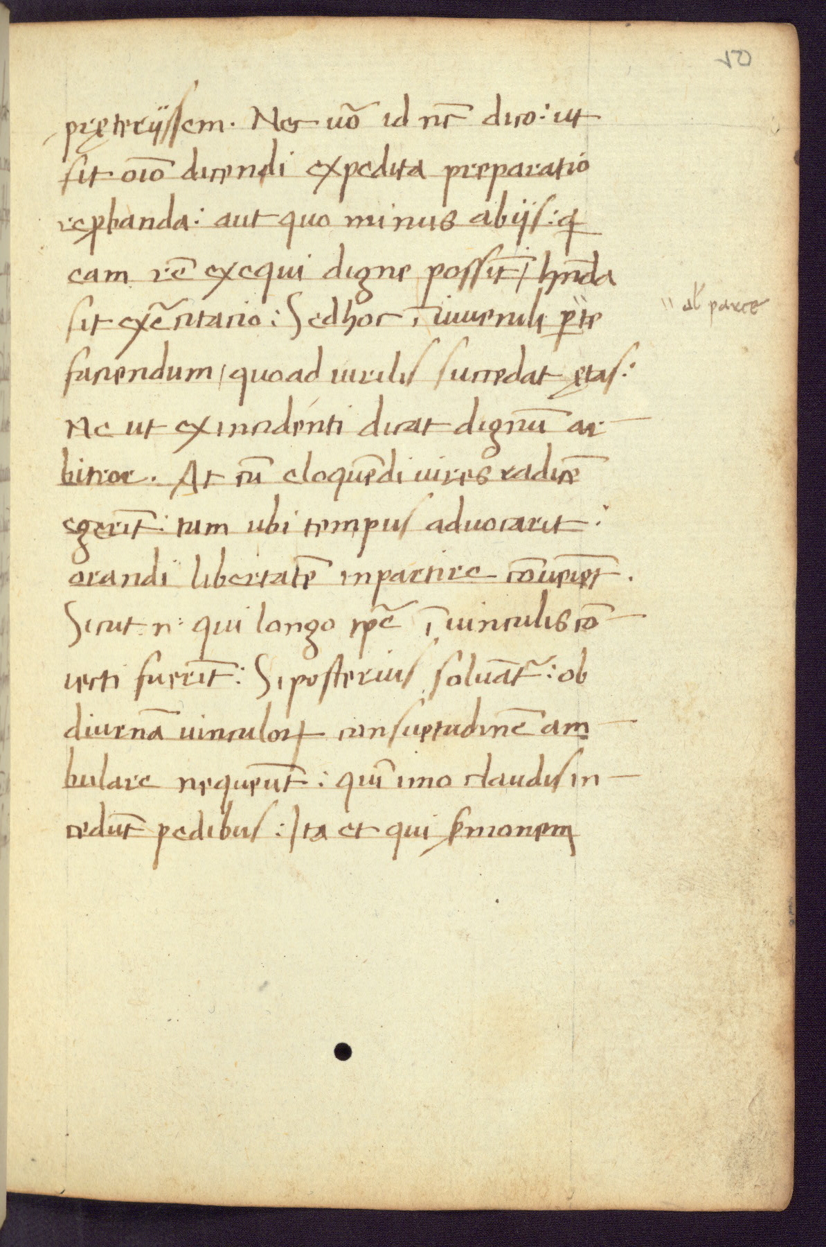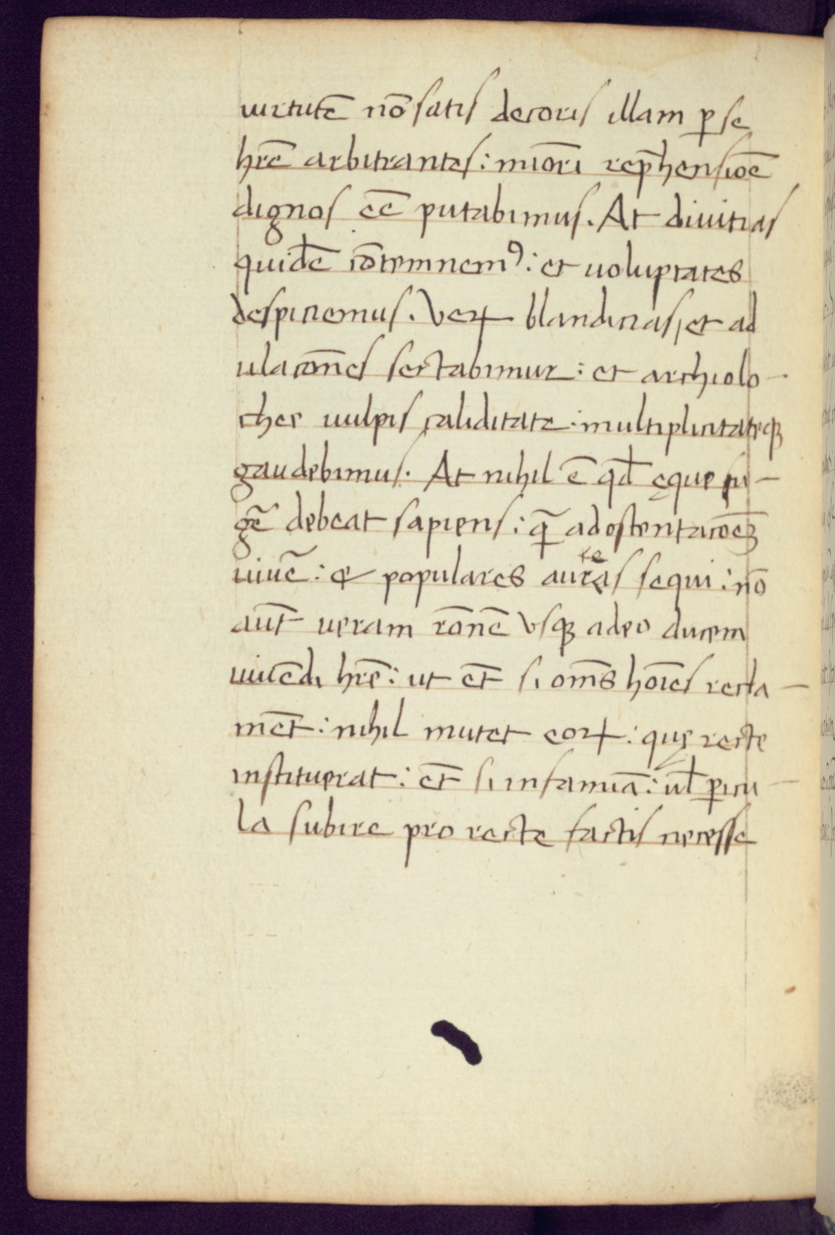 Written in Italy in the third quarter of the fifteenth century, this manuscript contains works by St. Basilius, Pseudo(?) Plutarch, and Statius. The first two texts are Greek treatises on education that were translated into Latin, bearing witness to the Italian humanist revival of, and interest in, the study of ancient Greek. The translators of those texts, Leonardo Bruni (d.1444) and Guarino Veronese (d.1460), both studied Greek under the tutelage of Byzantine scholar Manuel Chrysoloras (d.1415), who was one of the first to introduce Greek literature to Western Europe. The third text by Statius was included as part of a compendium of texts frequently used by students studying Latin beginning in the tenth century. During this same period, Statius was confused with the rhetorician Statius Ursulus of Toulouse, who is mentioned in Jerome’s translation of Eusebius’ chronicles as active in 56 CE. Statius' full Roman name was Publius Papinius Statius, however due to his conflation with the rhetorician in the tenth century, there are a number of manuscripts that begin Statius' name with “Sucurlus” instead of “Publius.” This can be found for instance in an Italian incunabula that is contemporary with W.358, and which is also found in the Walters’ collection (91.1119). This suggests that this error may have been a regional phenomenon in Italy.