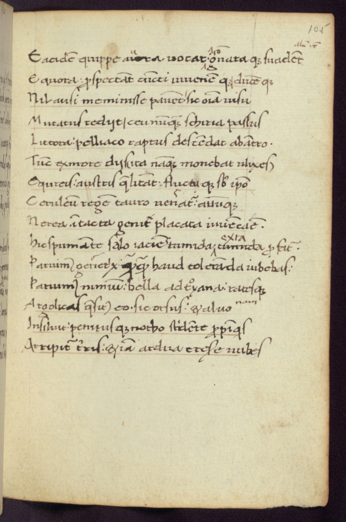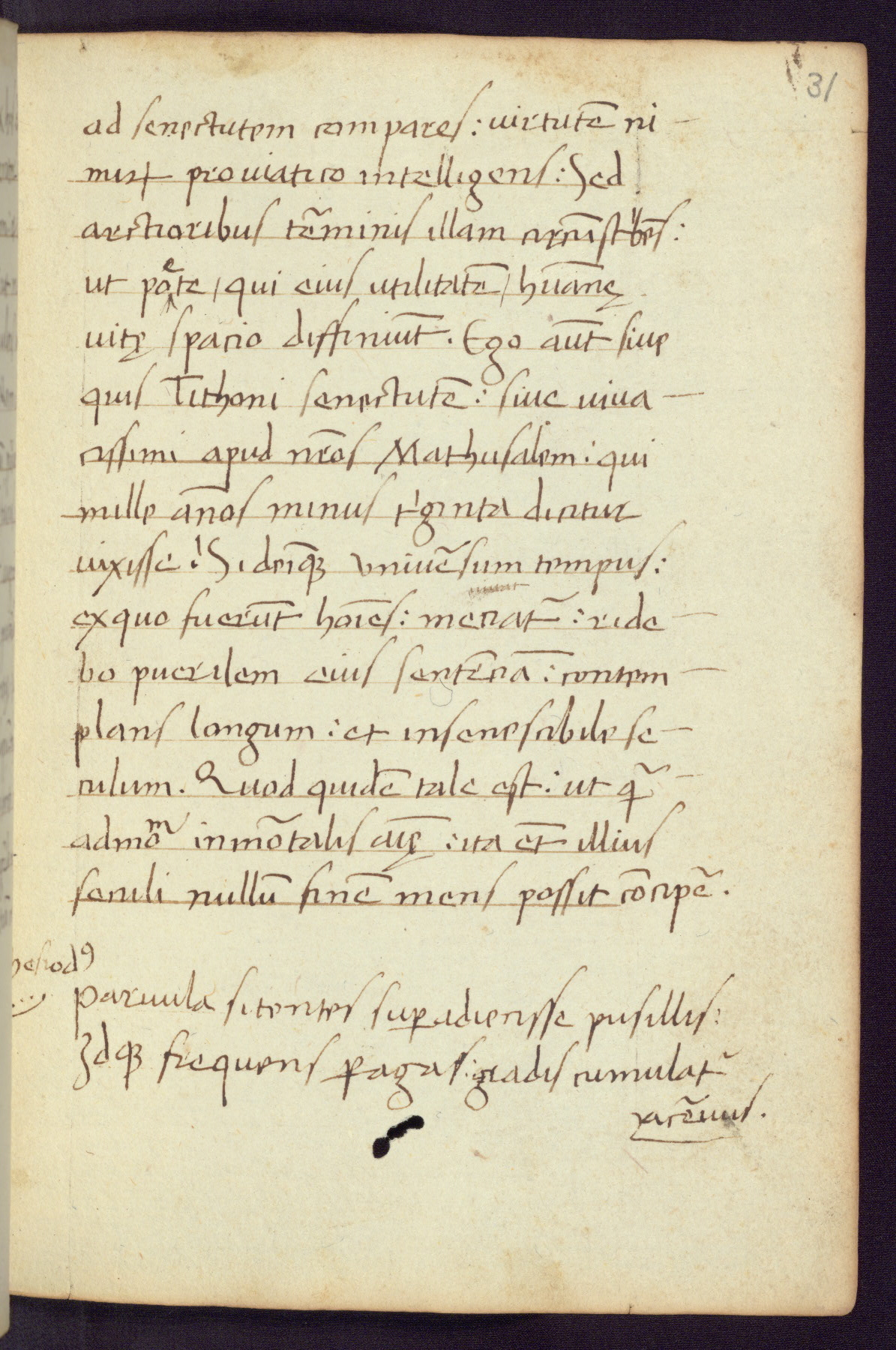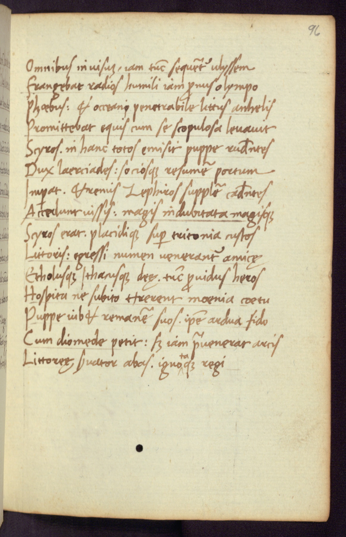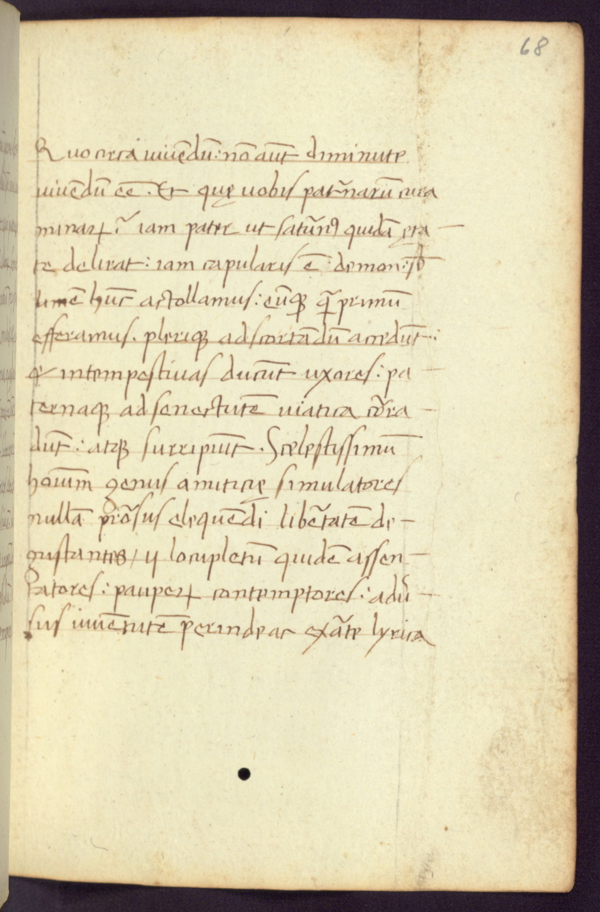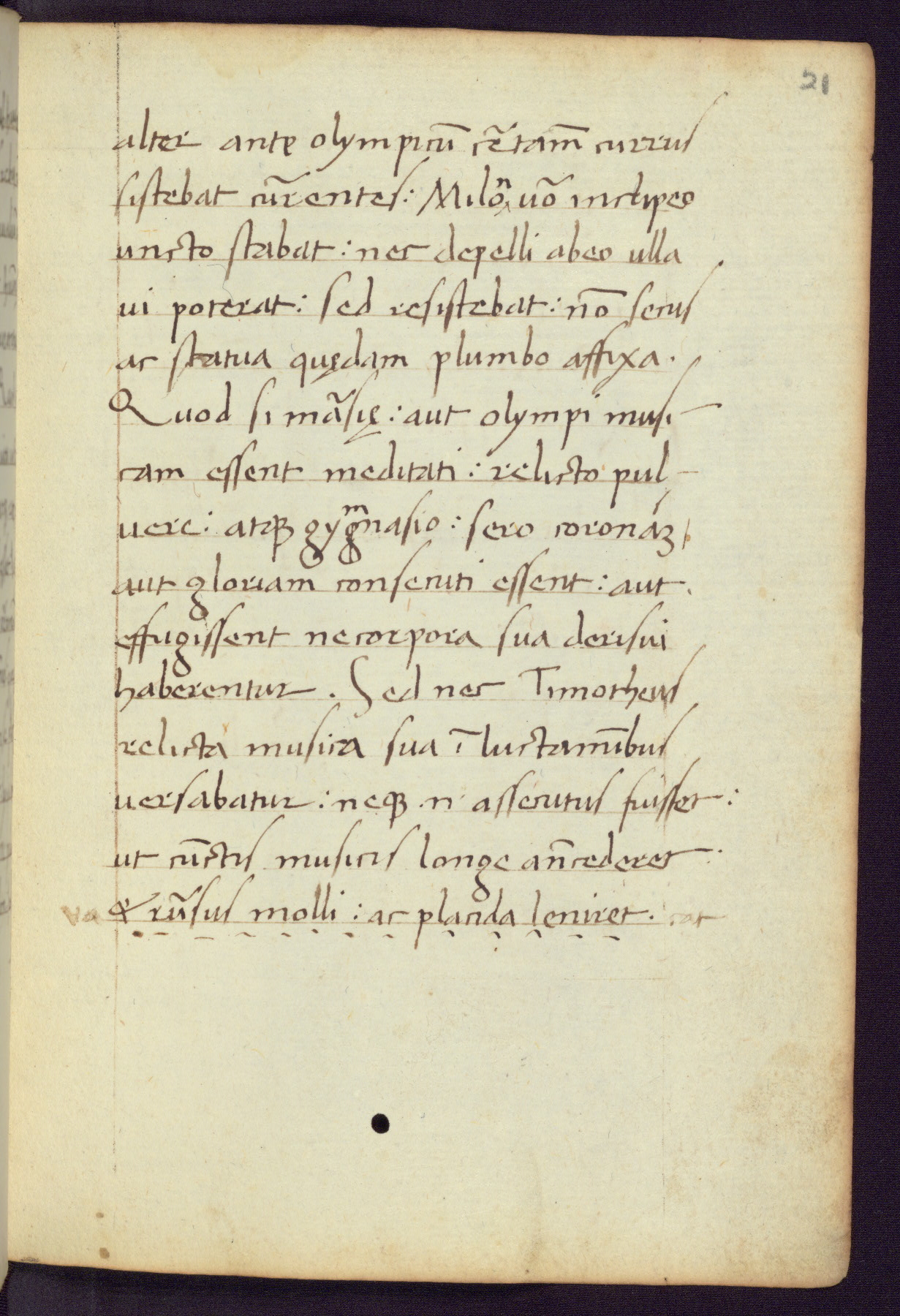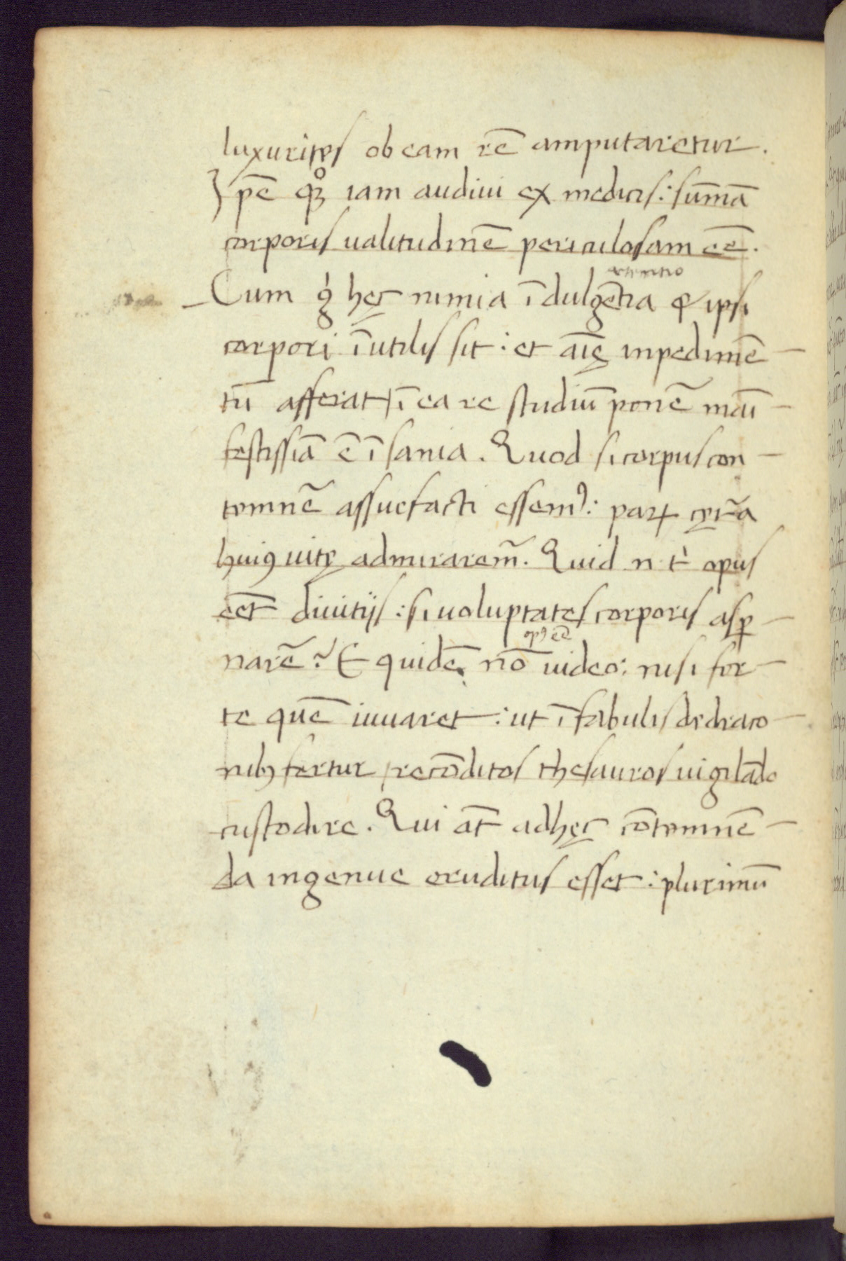 Written in Italy in the third quarter of the fifteenth century, this manuscript contains works by St. Basilius, Pseudo(?) Plutarch, and Statius. The first two texts are Greek treatises on education that were translated into Latin, bearing witness to the Italian humanist revival of, and interest in, the study of ancient Greek. The translators of those texts, Leonardo Bruni (d.1444) and Guarino Veronese (d.1460), both studied Greek under the tutelage of Byzantine scholar Manuel Chrysoloras (d.1415), who was one of the first to introduce Greek literature to Western Europe. The third text by Statius was included as part of a compendium of texts frequently used by students studying Latin beginning in the tenth century. During this same period, Statius was confused with the rhetorician Statius Ursulus of Toulouse, who is mentioned in Jerome’s translation of Eusebius’ chronicles as active in 56 CE. Statius' full Roman name was Publius Papinius Statius, however due to his conflation with the rhetorician in the tenth century, there are a number of manuscripts that begin Statius' name with “Sucurlus” instead of “Publius.” This can be found for instance in an Italian incunabula that is contemporary with W.358, and which is also found in the Walters’ collection (91.1119). This suggests that this error may have been a regional phenomenon in Italy.