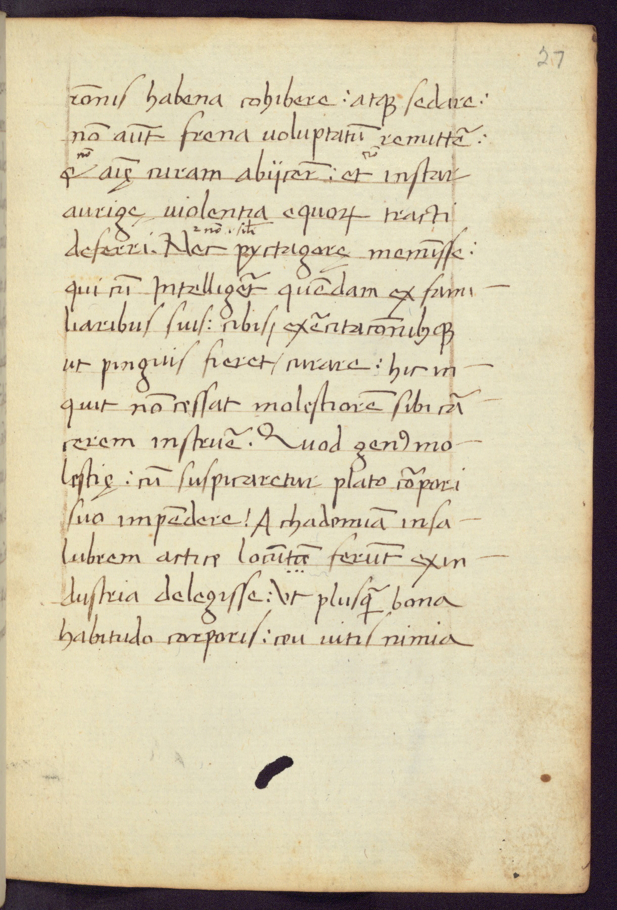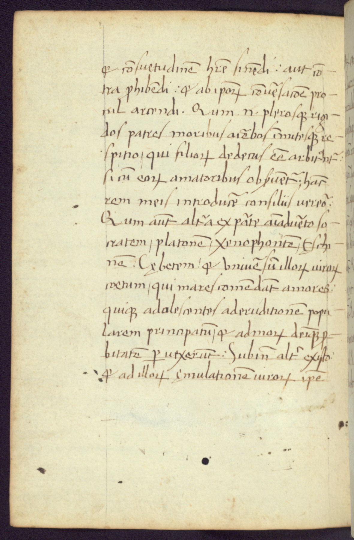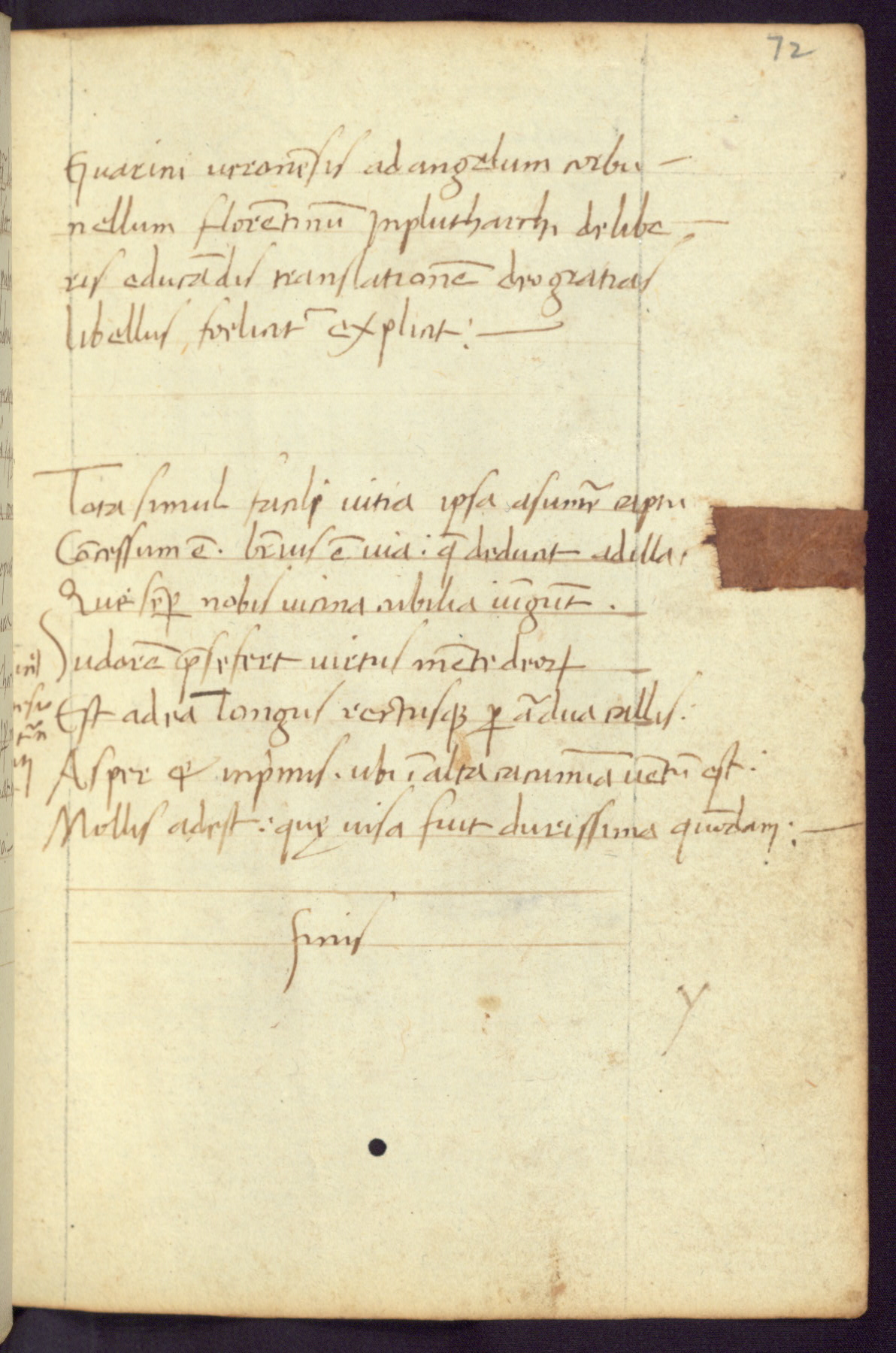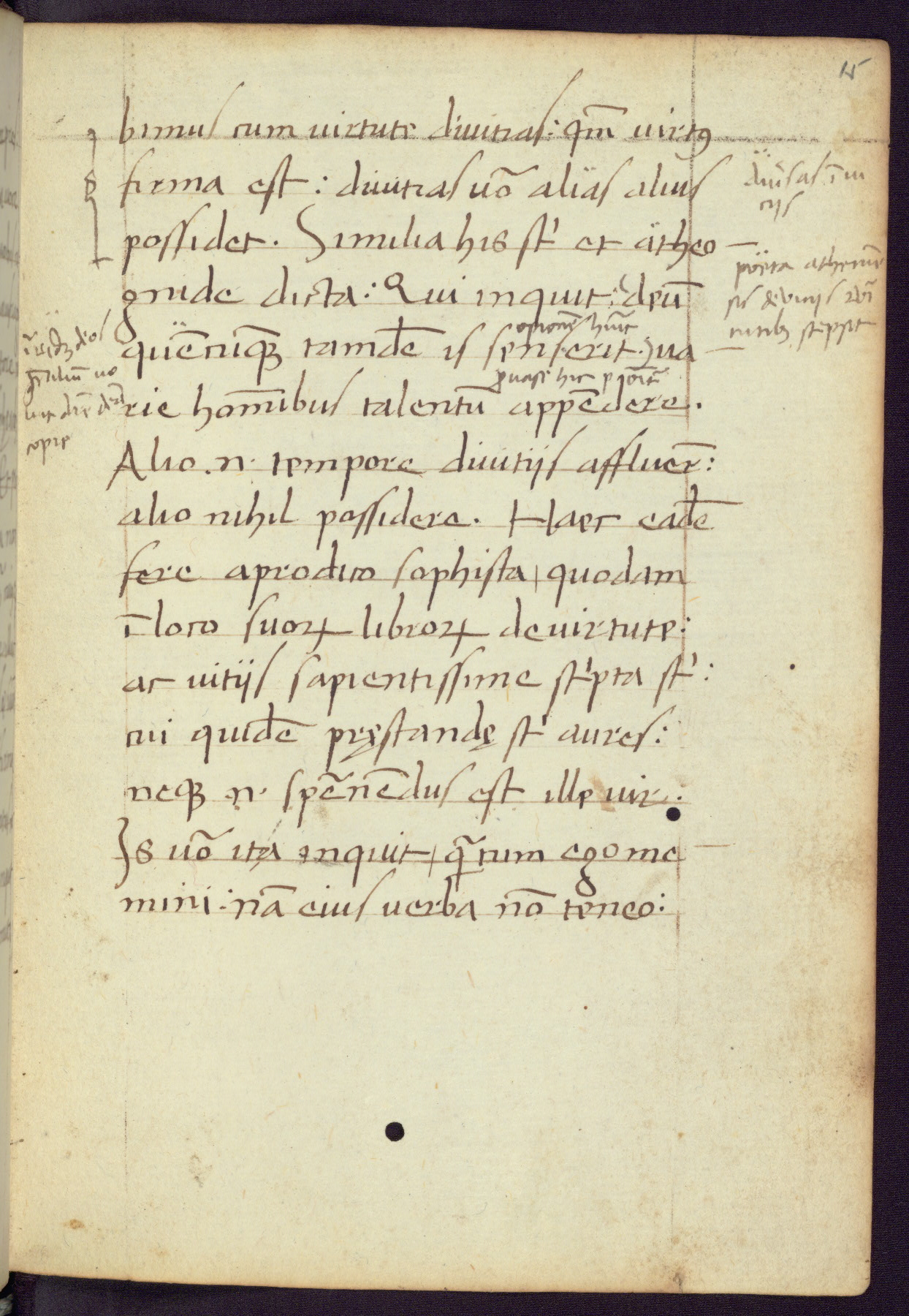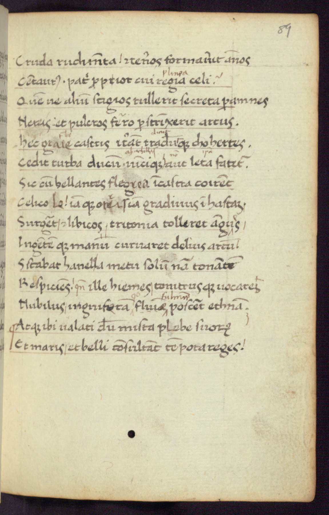 Written in Italy in the third quarter of the fifteenth century, this manuscript contains works by St. Basilius, Pseudo(?) Plutarch, and Statius. The first two texts are Greek treatises on education that were translated into Latin, bearing witness to the Italian humanist revival of, and interest in, the study of ancient Greek. The translators of those texts, Leonardo Bruni (d.1444) and Guarino Veronese (d.1460), both studied Greek under the tutelage of Byzantine scholar Manuel Chrysoloras (d.1415), who was one of the first to introduce Greek literature to Western Europe. The third text by Statius was included as part of a compendium of texts frequently used by students studying Latin beginning in the tenth century. During this same period, Statius was confused with the rhetorician Statius Ursulus of Toulouse, who is mentioned in Jerome’s translation of Eusebius’ chronicles as active in 56 CE. Statius' full Roman name was Publius Papinius Statius, however due to his conflation with the rhetorician in the tenth century, there are a number of manuscripts that begin Statius' name with “Sucurlus” instead of “Publius.” This can be found for instance in an Italian incunabula that is contemporary with W.358, and which is also found in the Walters’ collection (91.1119). This suggests that this error may have been a regional phenomenon in Italy.