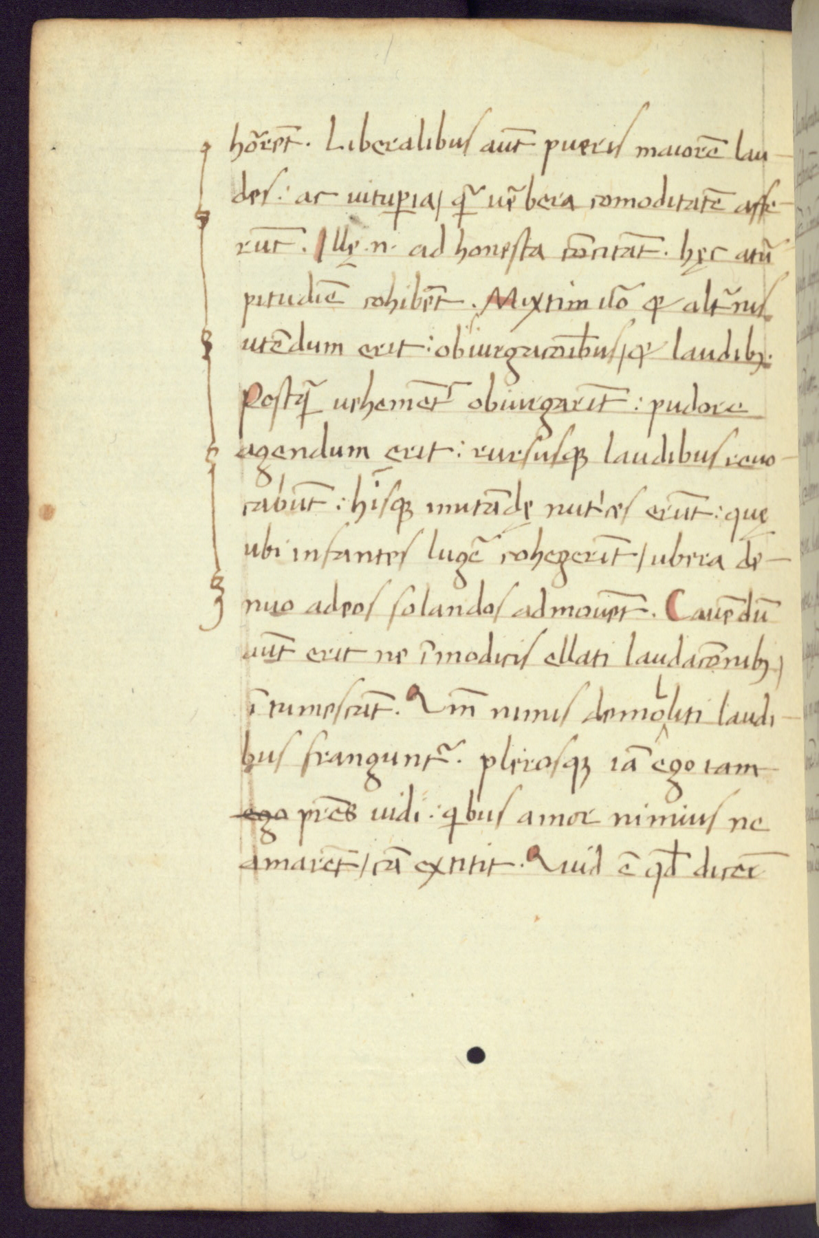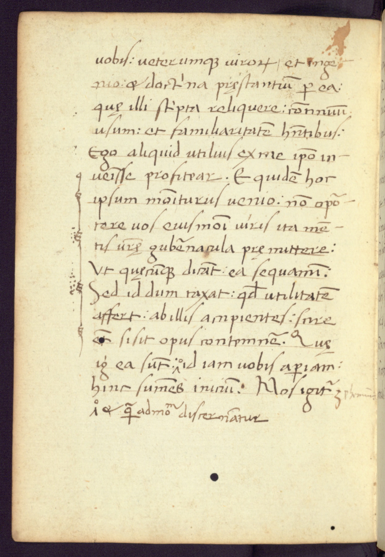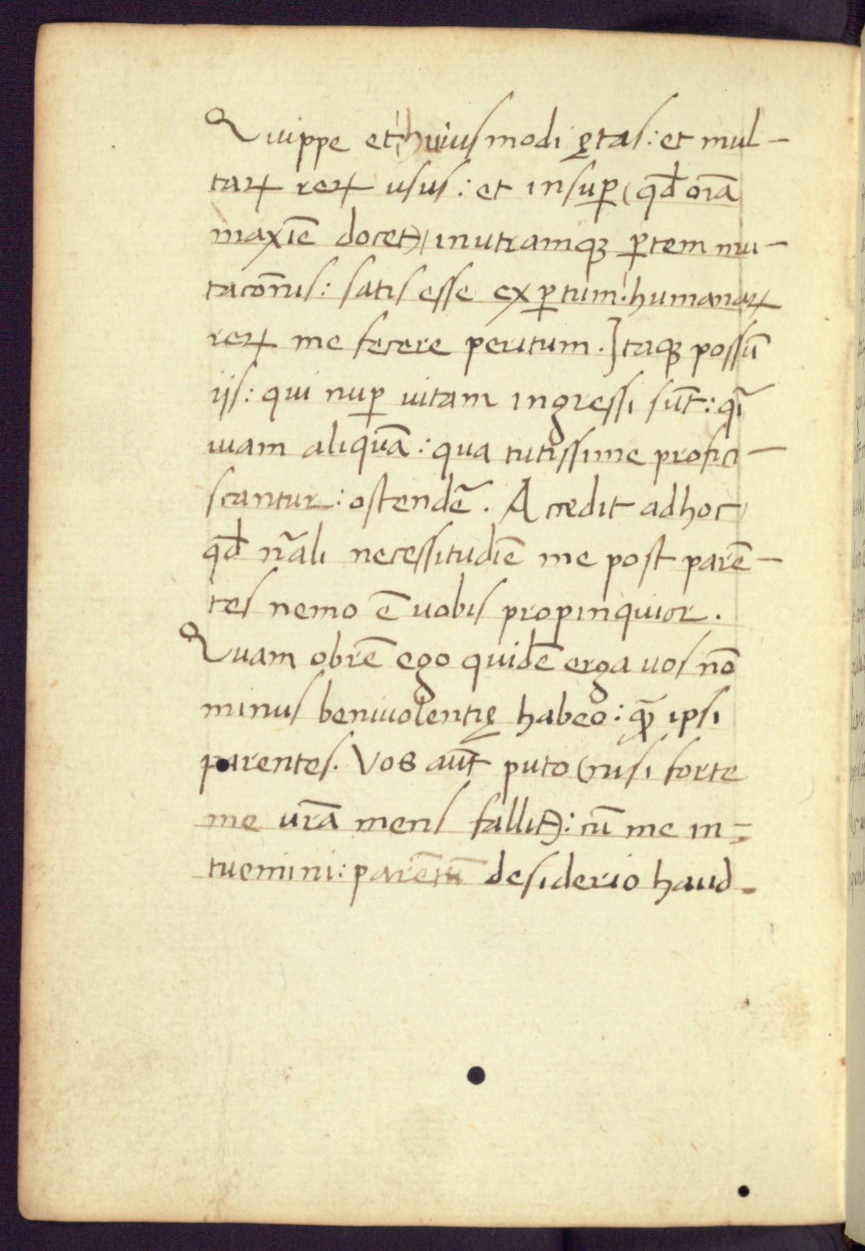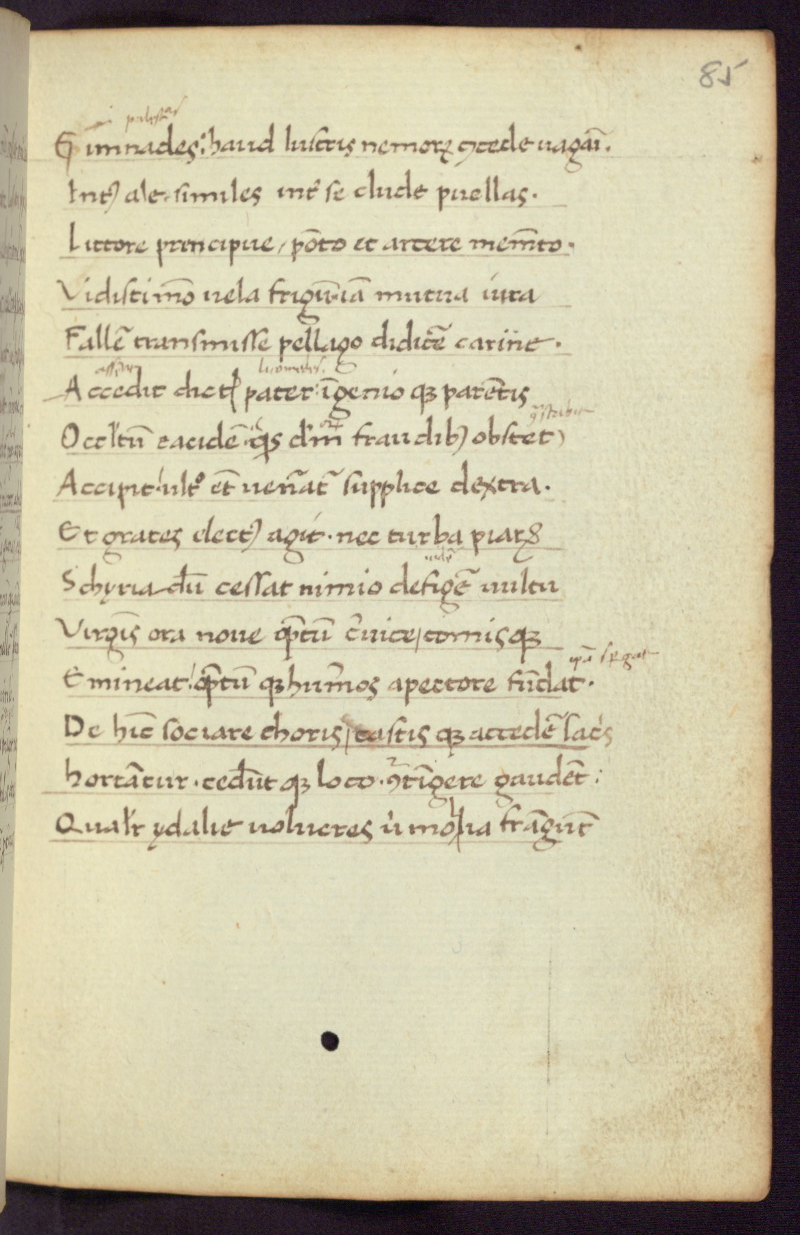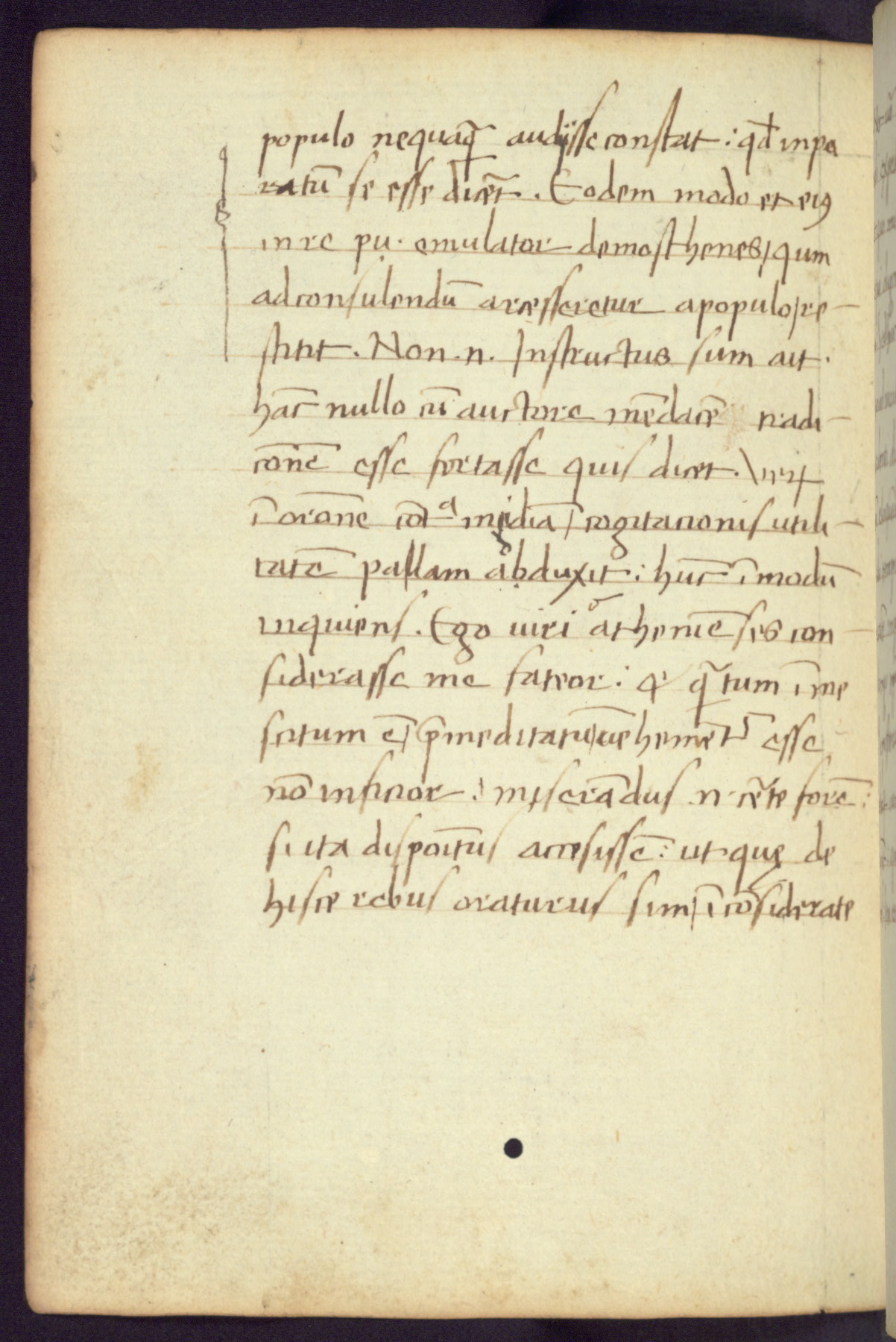 Written in Italy in the third quarter of the fifteenth century, this manuscript contains works by St. Basilius, Pseudo(?) Plutarch, and Statius. The first two texts are Greek treatises on education that were translated into Latin, bearing witness to the Italian humanist revival of, and interest in, the study of ancient Greek. The translators of those texts, Leonardo Bruni (d.1444) and Guarino Veronese (d.1460), both studied Greek under the tutelage of Byzantine scholar Manuel Chrysoloras (d.1415), who was one of the first to introduce Greek literature to Western Europe. The third text by Statius was included as part of a compendium of texts frequently used by students studying Latin beginning in the tenth century. During this same period, Statius was confused with the rhetorician Statius Ursulus of Toulouse, who is mentioned in Jerome’s translation of Eusebius’ chronicles as active in 56 CE. Statius' full Roman name was Publius Papinius Statius, however due to his conflation with the rhetorician in the tenth century, there are a number of manuscripts that begin Statius' name with “Sucurlus” instead of “Publius.” This can be found for instance in an Italian incunabula that is contemporary with W.358, and which is also found in the Walters’ collection (91.1119). This suggests that this error may have been a regional phenomenon in Italy.