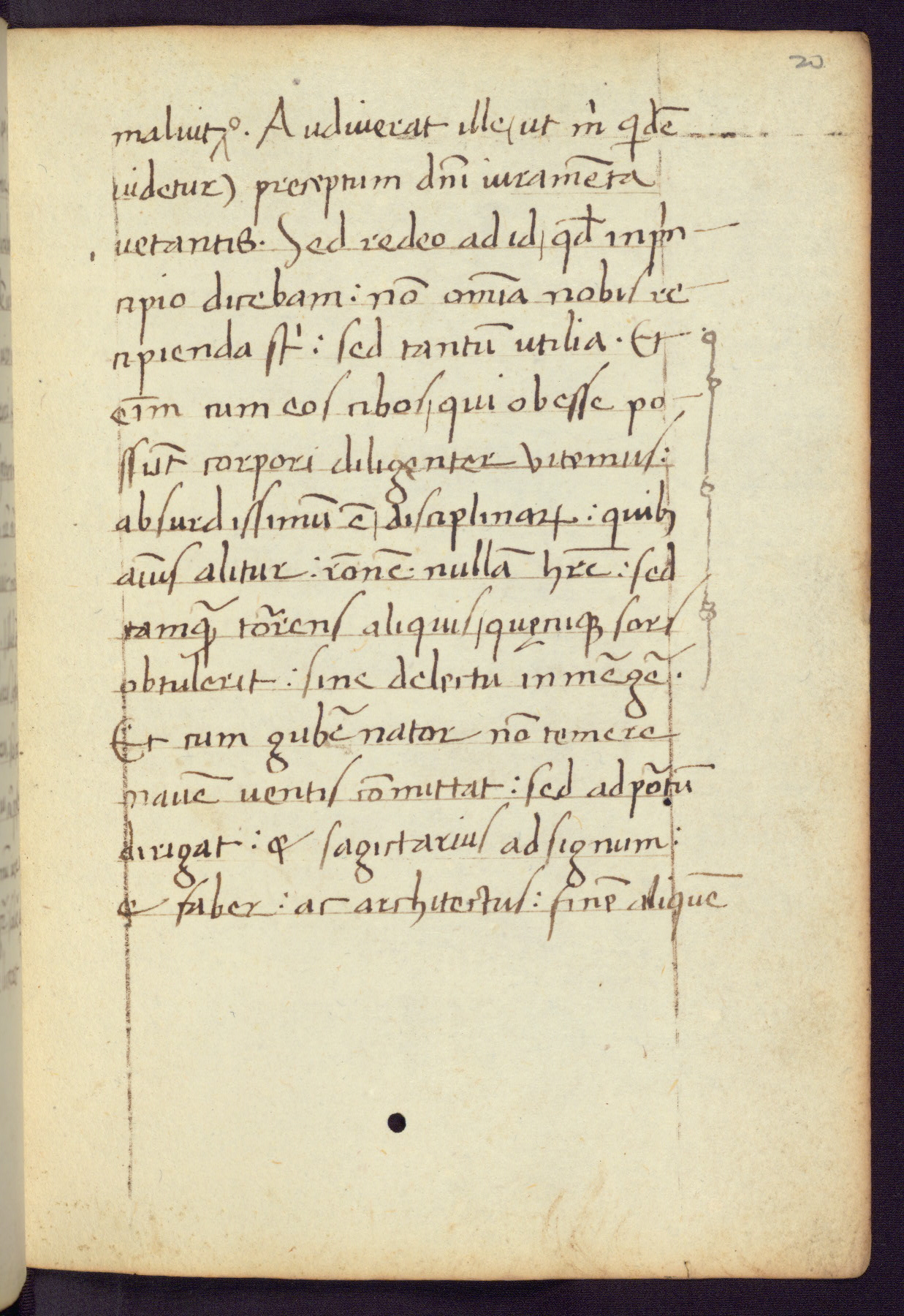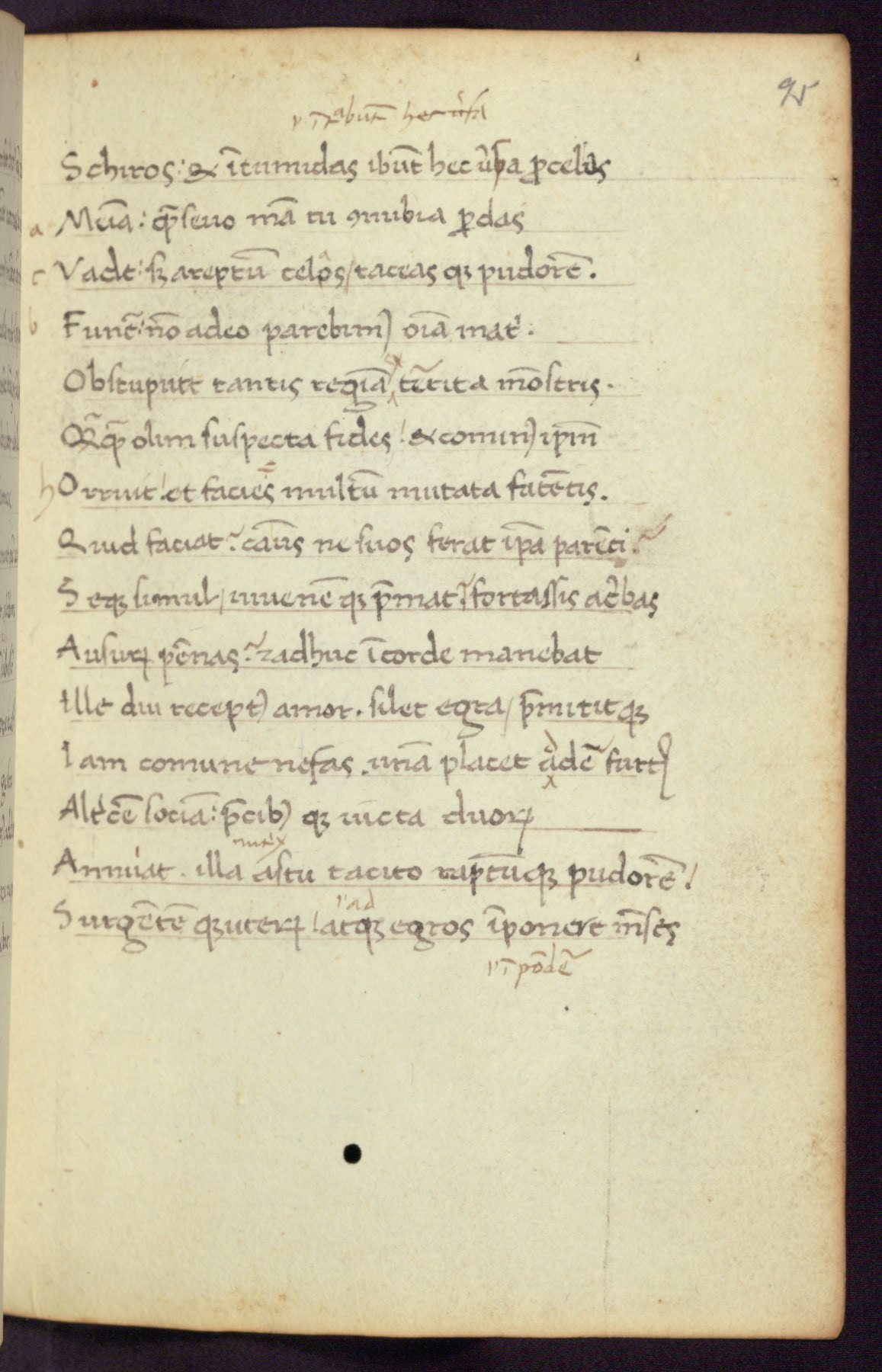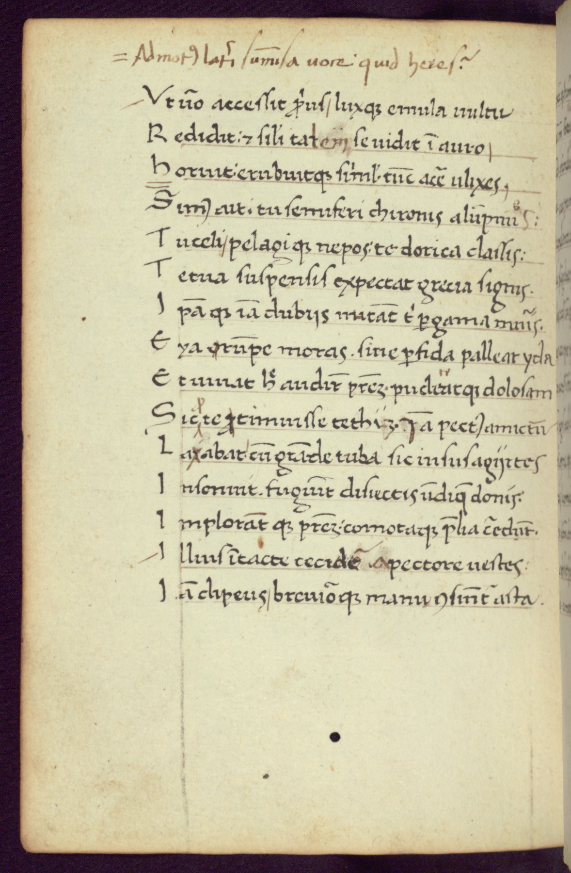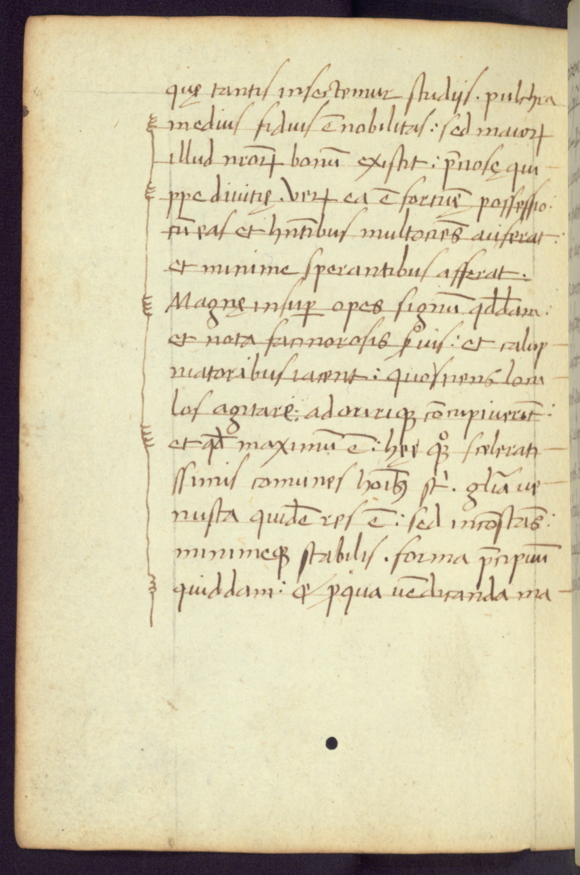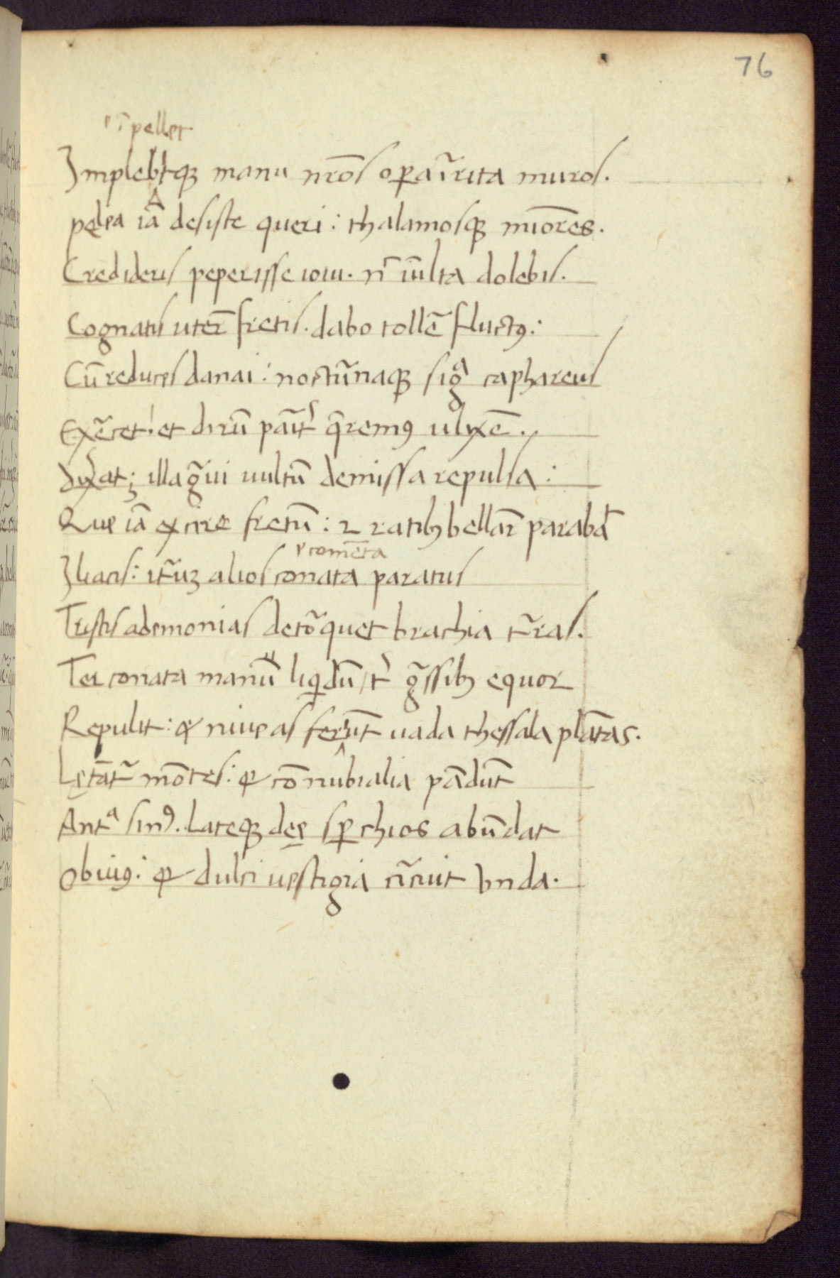 Written in Italy in the third quarter of the fifteenth century, this manuscript contains works by St. Basilius, Pseudo(?) Plutarch, and Statius. The first two texts are Greek treatises on education that were translated into Latin, bearing witness to the Italian humanist revival of, and interest in, the study of ancient Greek. The translators of those texts, Leonardo Bruni (d.1444) and Guarino Veronese (d.1460), both studied Greek under the tutelage of Byzantine scholar Manuel Chrysoloras (d.1415), who was one of the first to introduce Greek literature to Western Europe. The third text by Statius was included as part of a compendium of texts frequently used by students studying Latin beginning in the tenth century. During this same period, Statius was confused with the rhetorician Statius Ursulus of Toulouse, who is mentioned in Jerome’s translation of Eusebius’ chronicles as active in 56 CE. Statius' full Roman name was Publius Papinius Statius, however due to his conflation with the rhetorician in the tenth century, there are a number of manuscripts that begin Statius' name with “Sucurlus” instead of “Publius.” This can be found for instance in an Italian incunabula that is contemporary with W.358, and which is also found in the Walters’ collection (91.1119). This suggests that this error may have been a regional phenomenon in Italy.