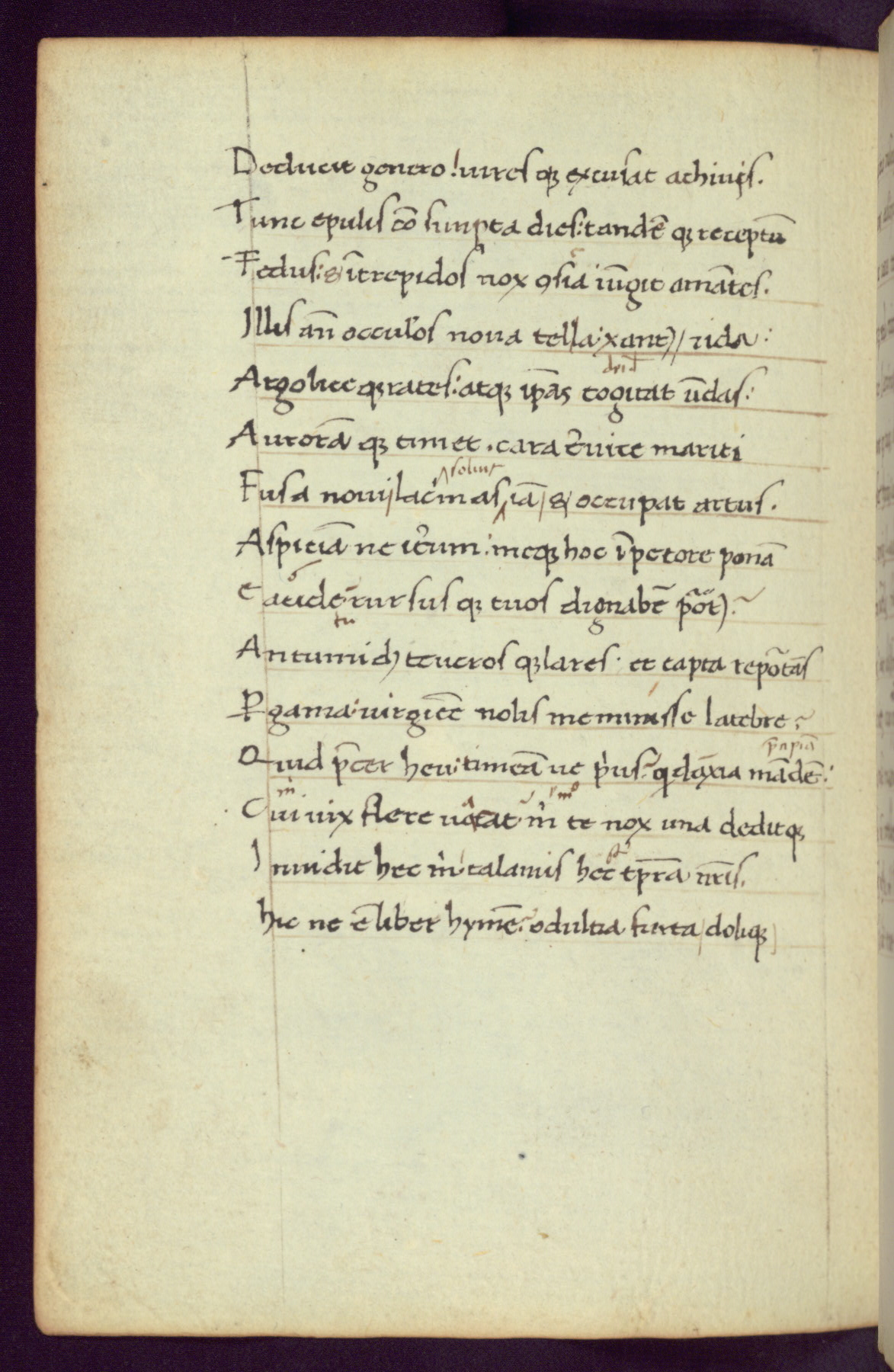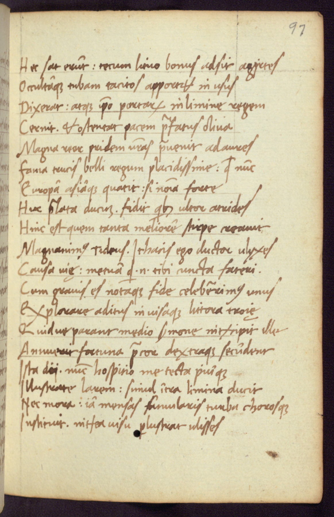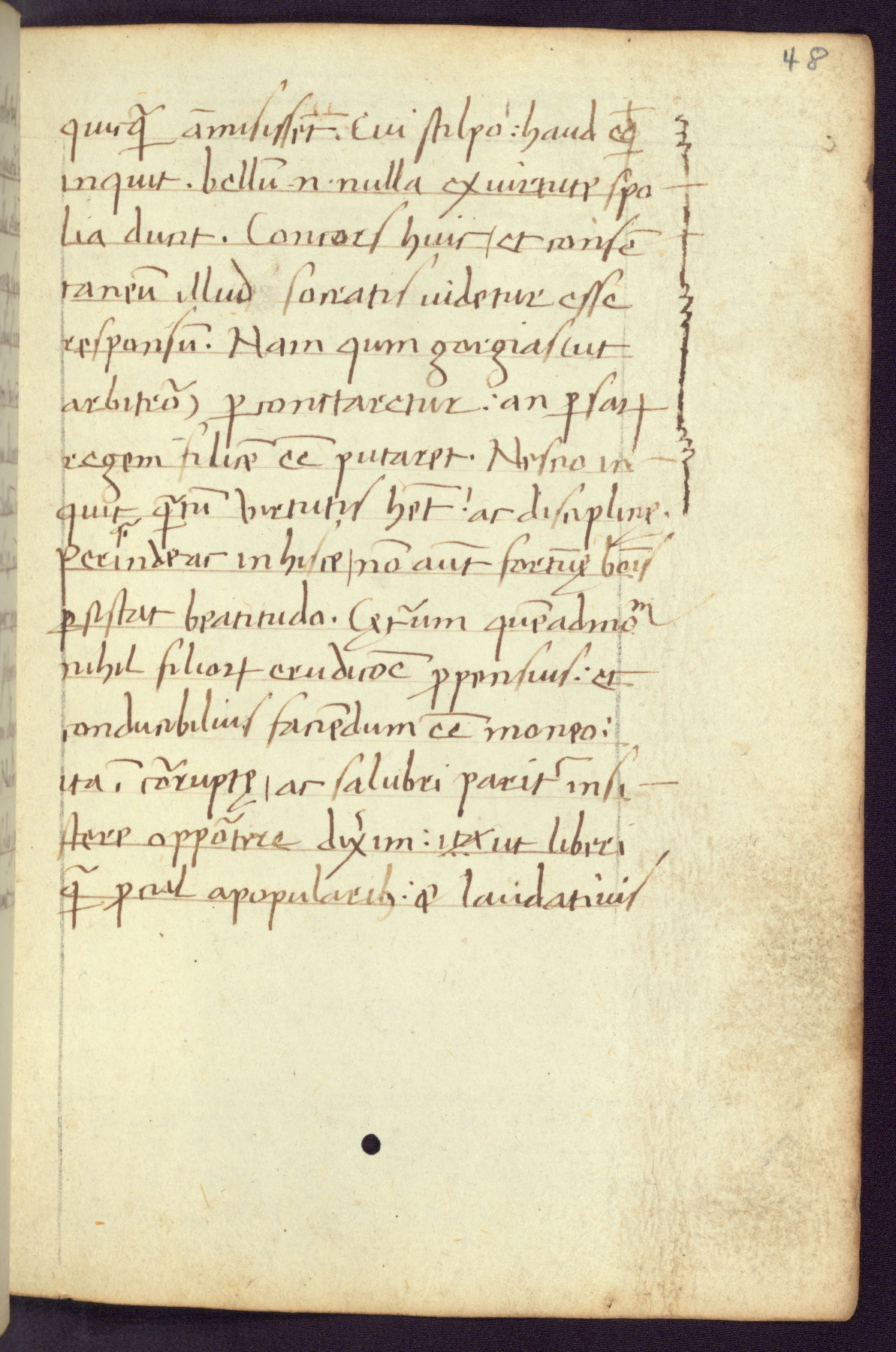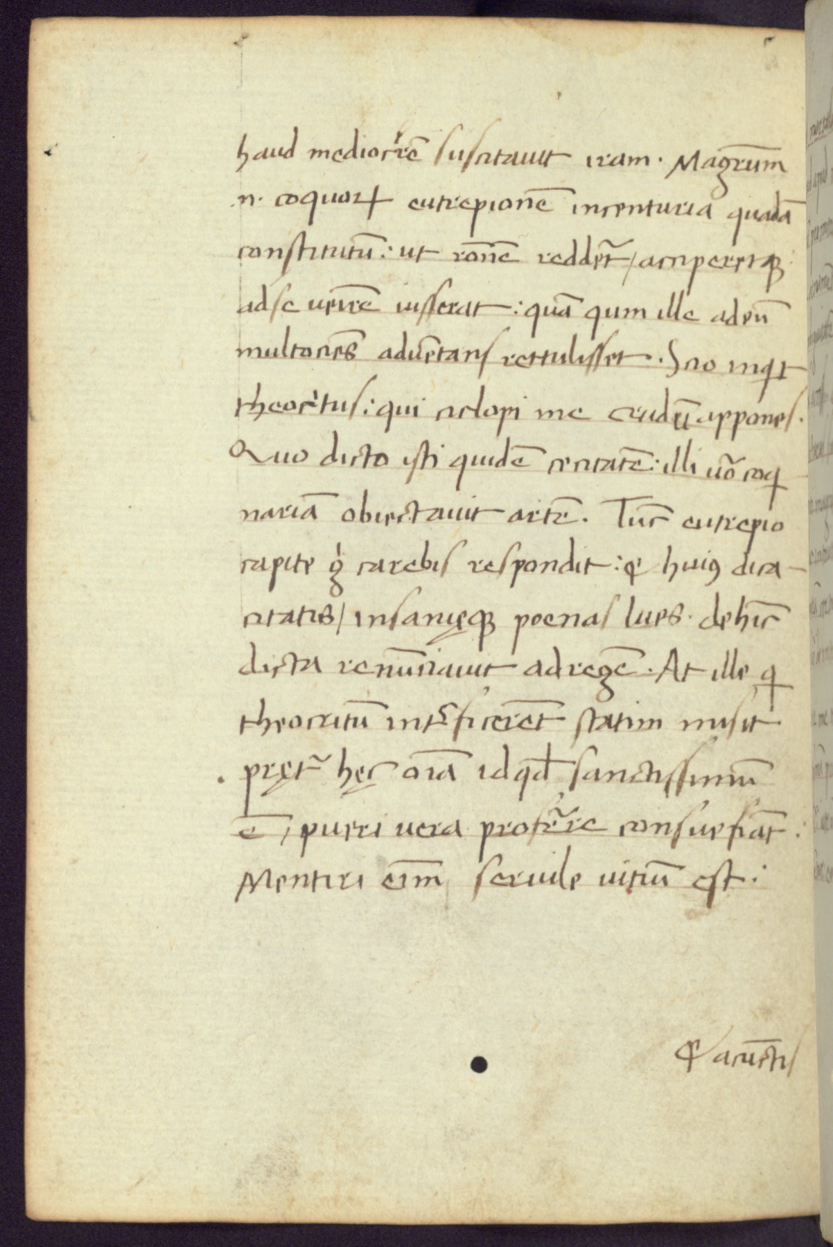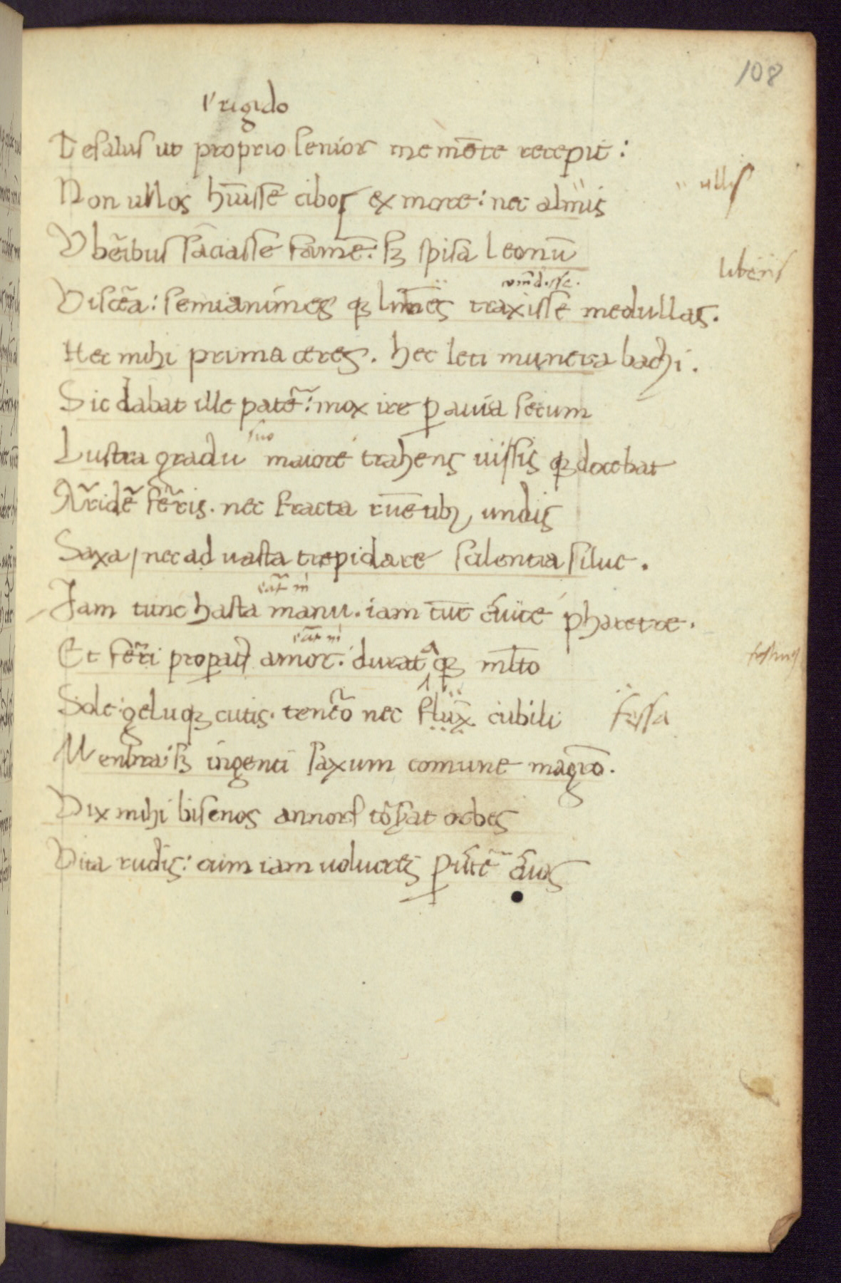 Written in Italy in the third quarter of the fifteenth century, this manuscript contains works by St. Basilius, Pseudo(?) Plutarch, and Statius. The first two texts are Greek treatises on education that were translated into Latin, bearing witness to the Italian humanist revival of, and interest in, the study of ancient Greek. The translators of those texts, Leonardo Bruni (d.1444) and Guarino Veronese (d.1460), both studied Greek under the tutelage of Byzantine scholar Manuel Chrysoloras (d.1415), who was one of the first to introduce Greek literature to Western Europe. The third text by Statius was included as part of a compendium of texts frequently used by students studying Latin beginning in the tenth century. During this same period, Statius was confused with the rhetorician Statius Ursulus of Toulouse, who is mentioned in Jerome’s translation of Eusebius’ chronicles as active in 56 CE. Statius' full Roman name was Publius Papinius Statius, however due to his conflation with the rhetorician in the tenth century, there are a number of manuscripts that begin Statius' name with “Sucurlus” instead of “Publius.” This can be found for instance in an Italian incunabula that is contemporary with W.358, and which is also found in the Walters’ collection (91.1119). This suggests that this error may have been a regional phenomenon in Italy.