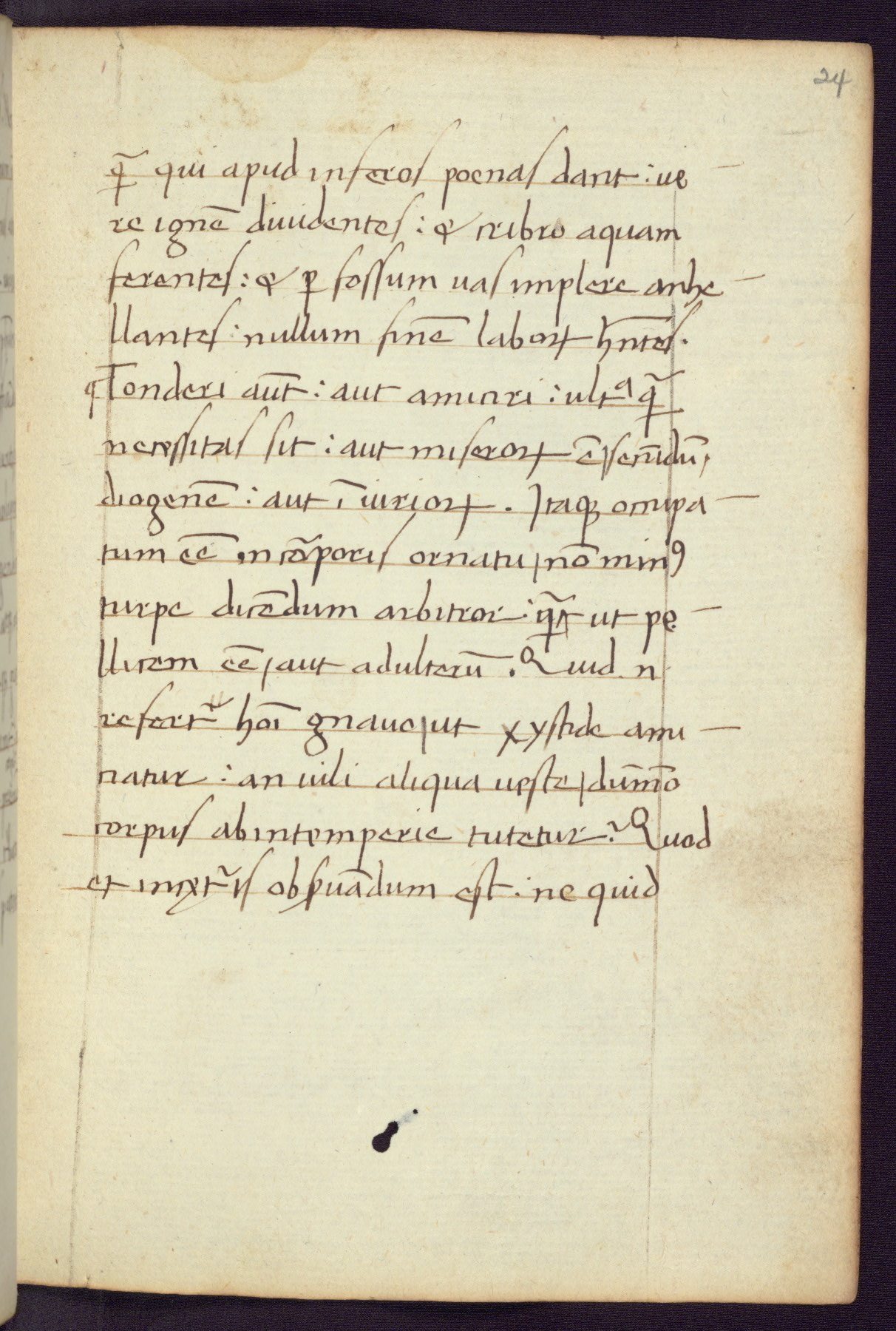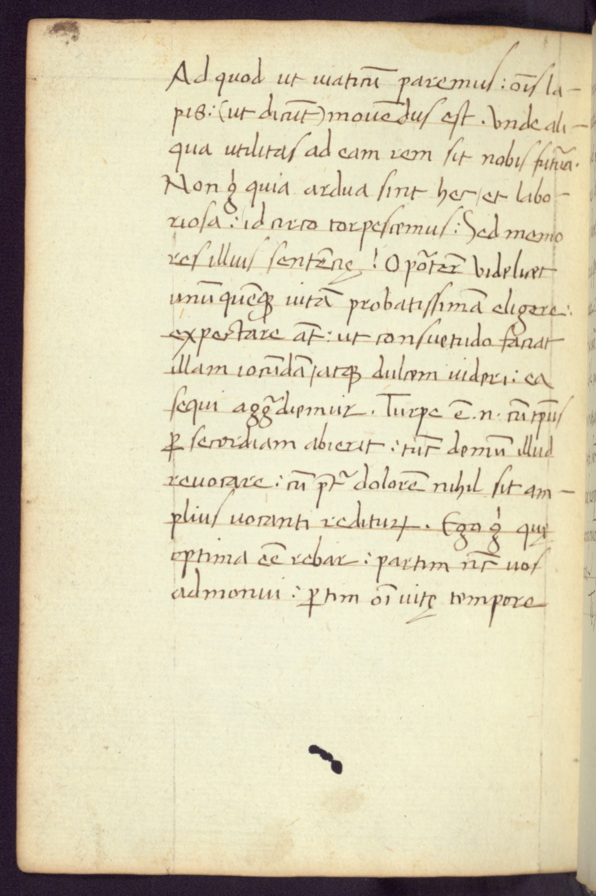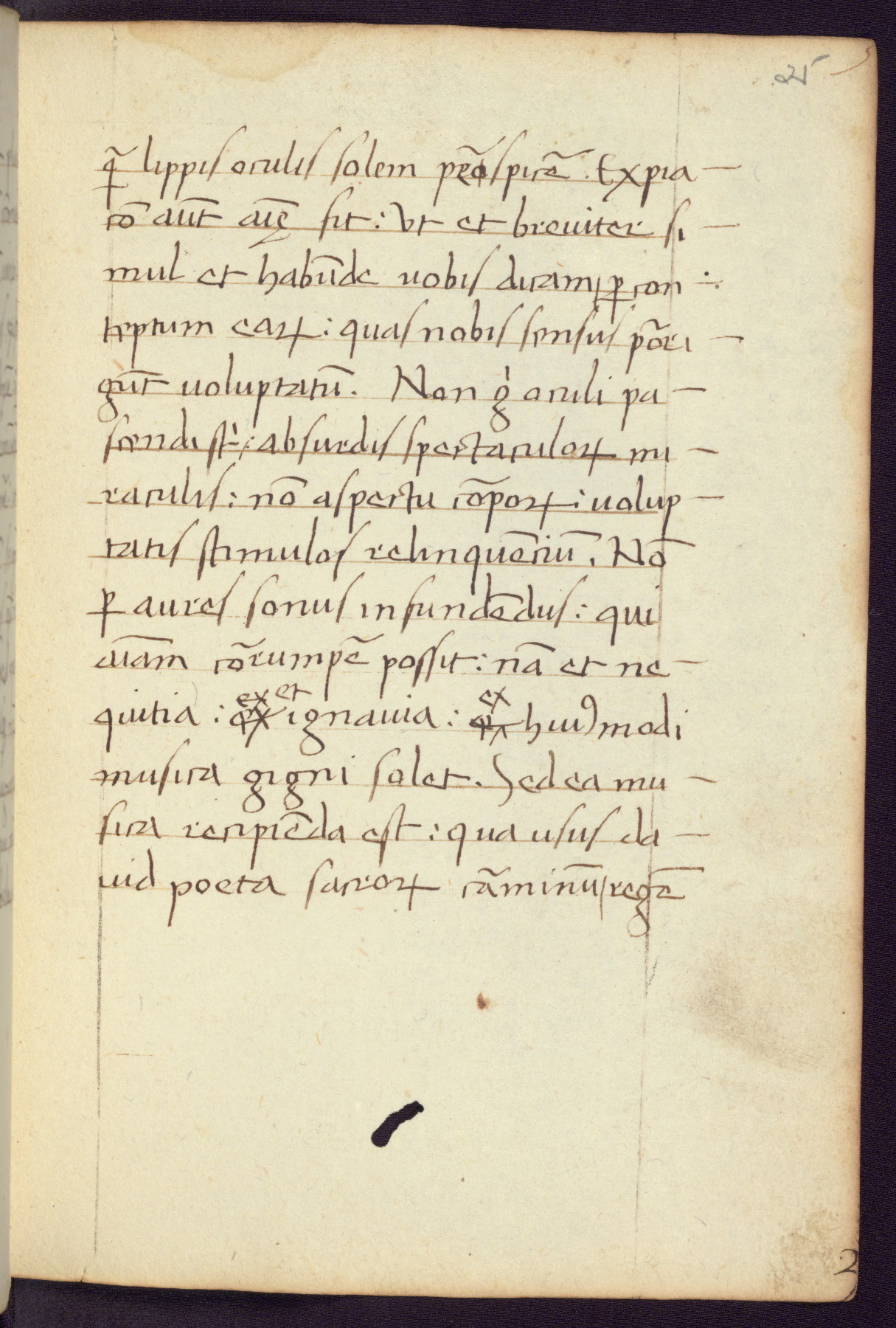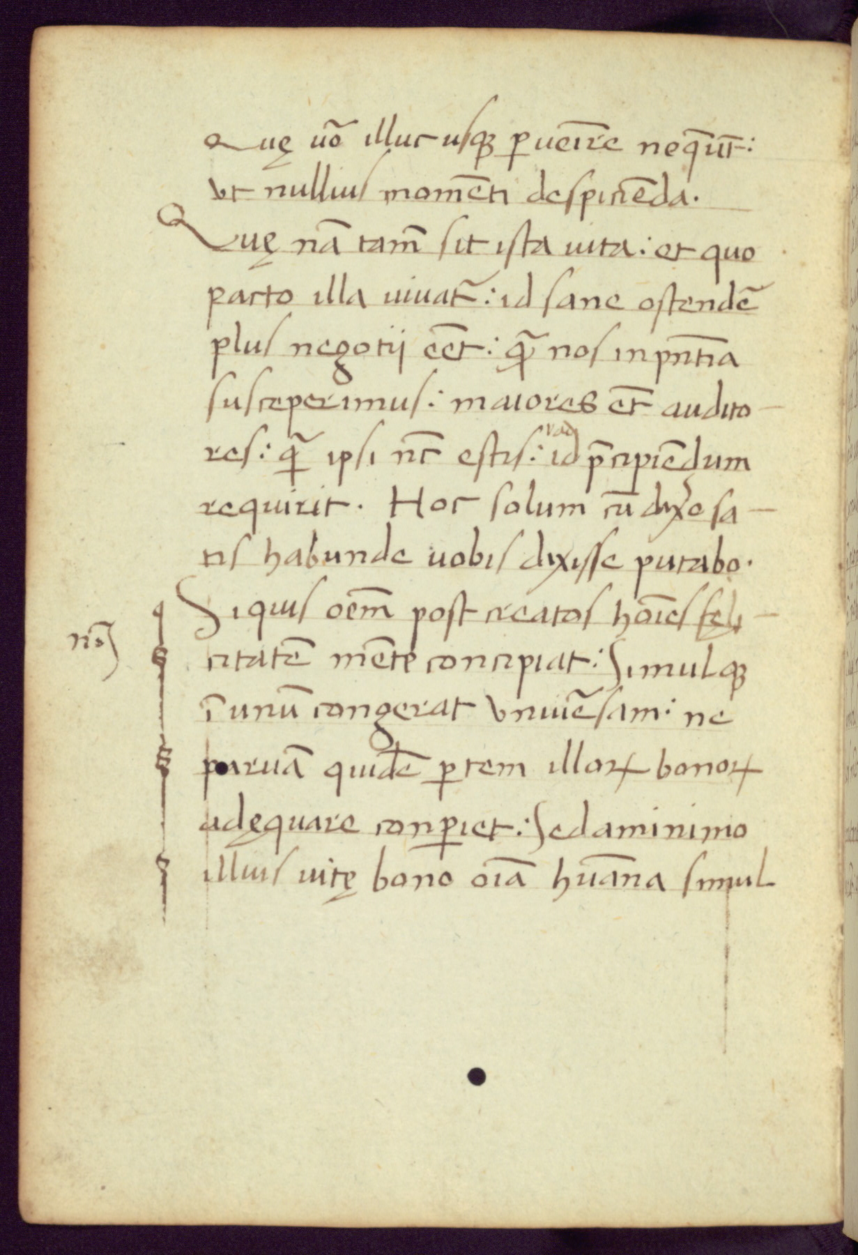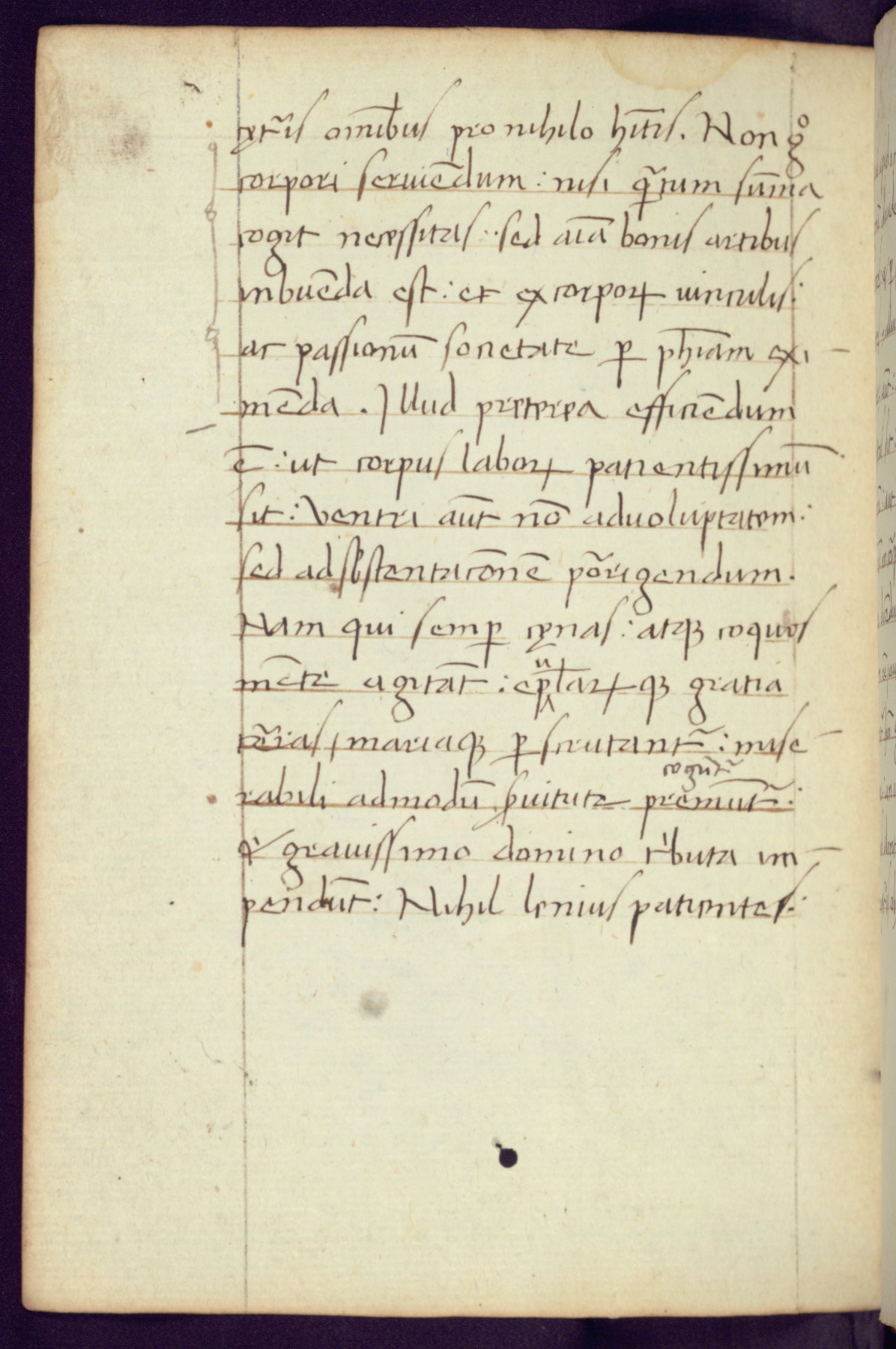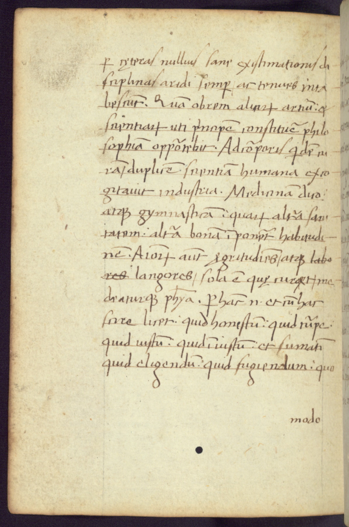 Written in Italy in the third quarter of the fifteenth century, this manuscript contains works by St. Basilius, Pseudo(?) Plutarch, and Statius. The first two texts are Greek treatises on education that were translated into Latin, bearing witness to the Italian humanist revival of, and interest in, the study of ancient Greek. The translators of those texts, Leonardo Bruni (d.1444) and Guarino Veronese (d.1460), both studied Greek under the tutelage of Byzantine scholar Manuel Chrysoloras (d.1415), who was one of the first to introduce Greek literature to Western Europe. The third text by Statius was included as part of a compendium of texts frequently used by students studying Latin beginning in the tenth century. During this same period, Statius was confused with the rhetorician Statius Ursulus of Toulouse, who is mentioned in Jerome’s translation of Eusebius’ chronicles as active in 56 CE. Statius' full Roman name was Publius Papinius Statius, however due to his conflation with the rhetorician in the tenth century, there are a number of manuscripts that begin Statius' name with “Sucurlus” instead of “Publius.” This can be found for instance in an Italian incunabula that is contemporary with W.358, and which is also found in the Walters’ collection (91.1119). This suggests that this error may have been a regional phenomenon in Italy.