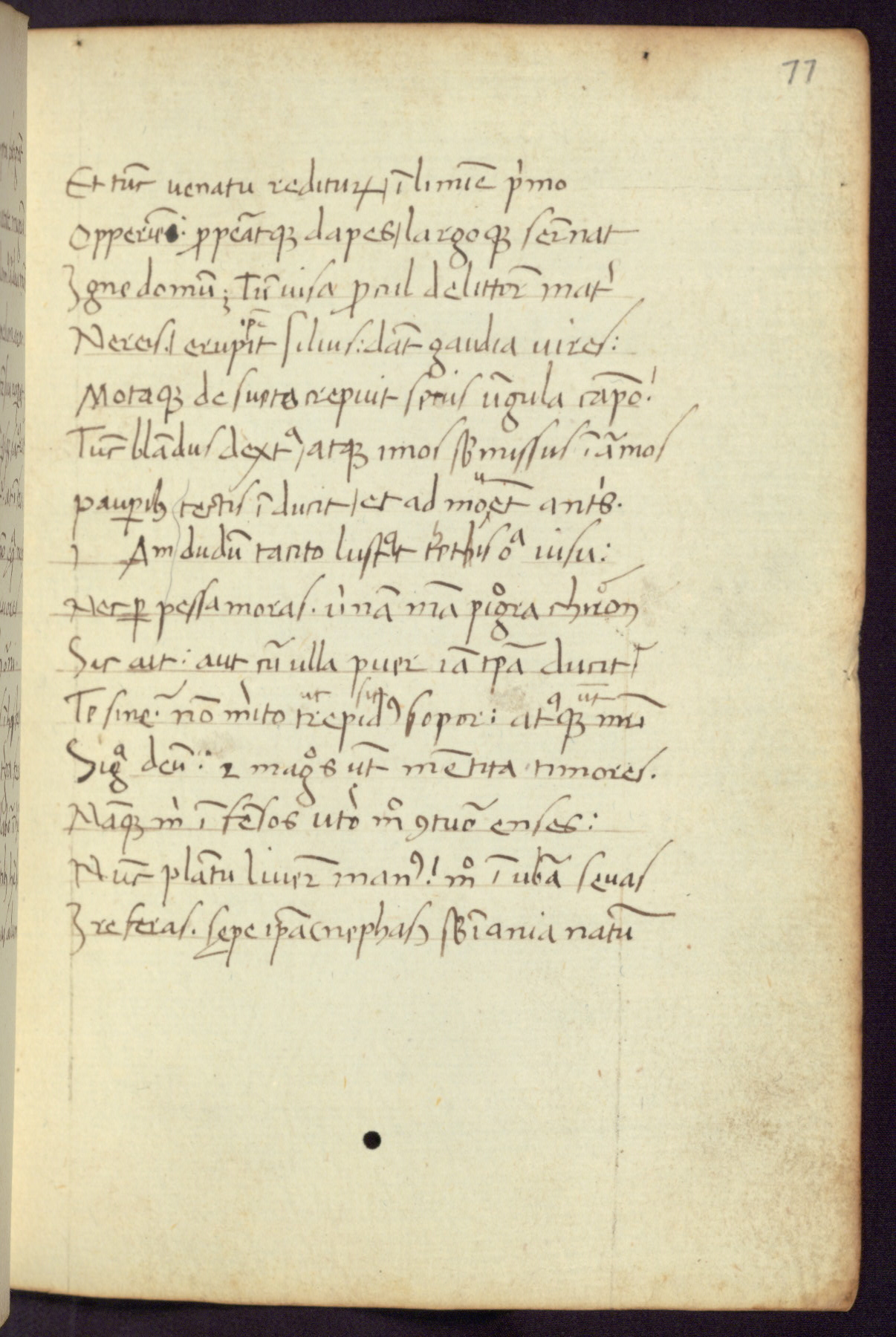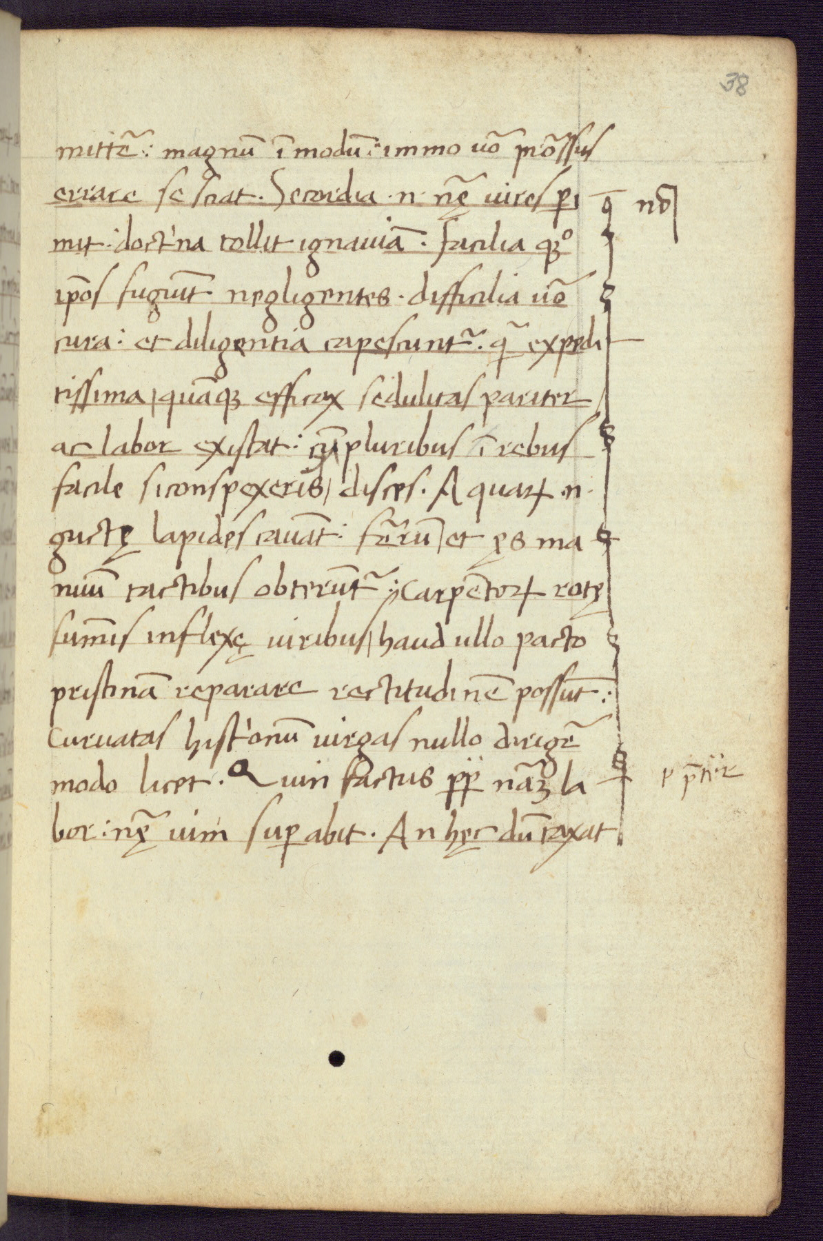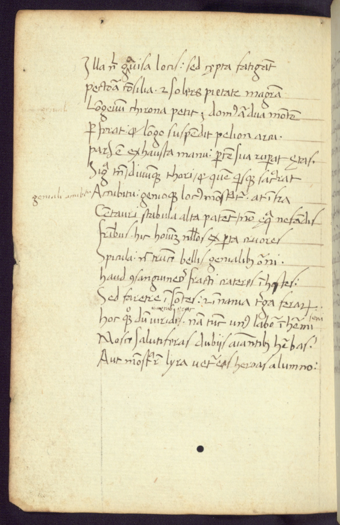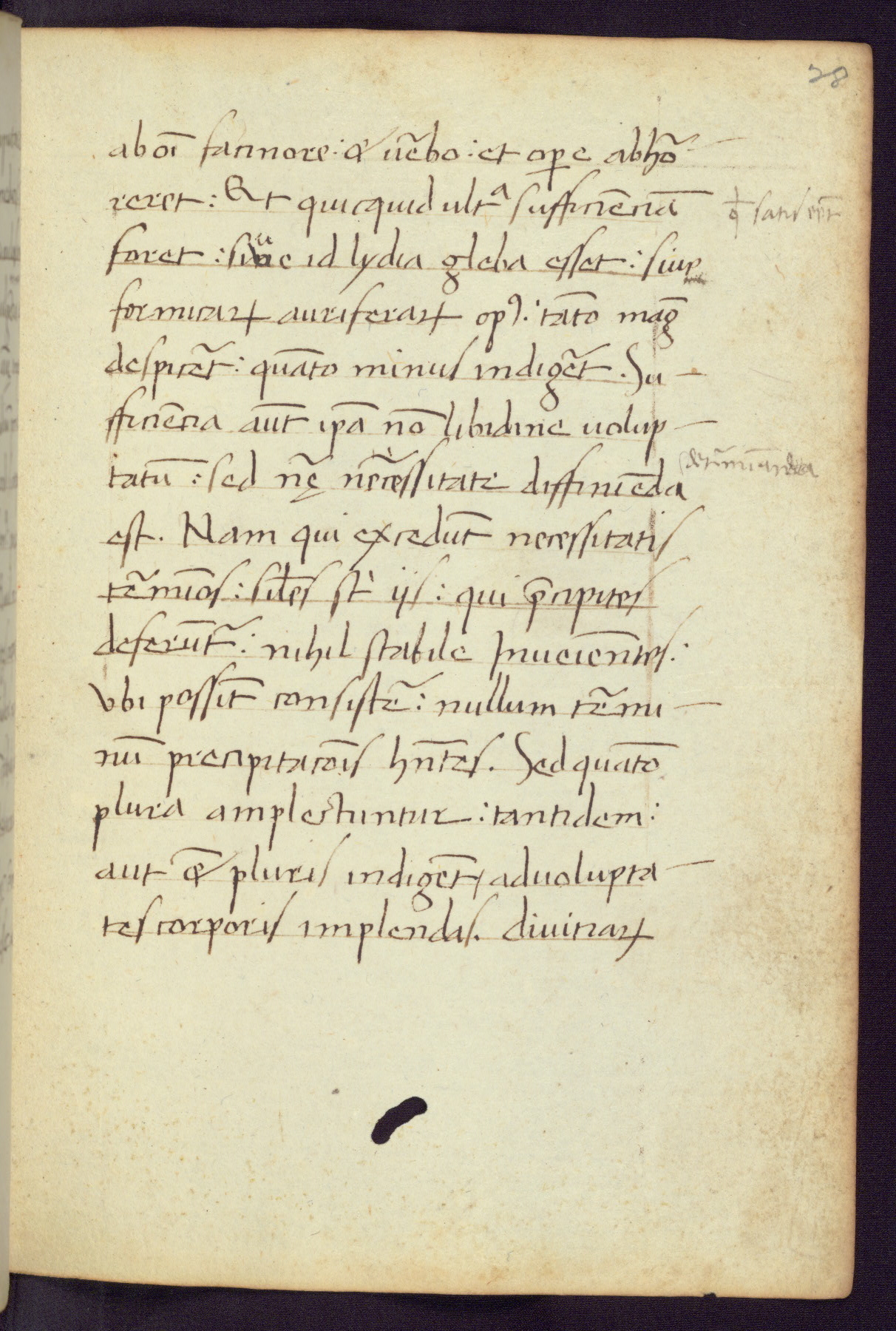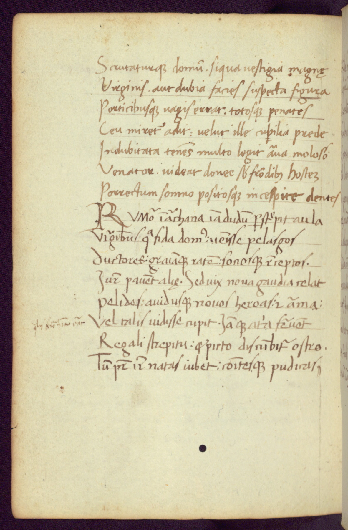Written in Italy in the third quarter of the fifteenth century, this manuscript contains works by St. Basilius, Pseudo(?) Plutarch, and Statius. The first two texts are Greek treatises on education that were translated into Latin, bearing witness to the Italian humanist revival of, and interest in, the study of ancient Greek. The translators of those texts, Leonardo Bruni (d.1444) and Guarino Veronese (d.1460), both studied Greek under the tutelage of Byzantine scholar Manuel Chrysoloras (d.1415), who was one of the first to introduce Greek literature to Western Europe. The third text by Statius was included as part of a compendium of texts frequently used by students studying Latin beginning in the tenth century. During this same period, Statius was confused with the rhetorician Statius Ursulus of Toulouse, who is mentioned in Jerome’s translation of Eusebius’ chronicles as active in 56 CE. Statius' full Roman name was Publius Papinius Statius, however due to his conflation with the rhetorician in the tenth century, there are a number of manuscripts that begin Statius' name with “Sucurlus” instead of “Publius.” This can be found for instance in an Italian incunabula that is contemporary with W.358, and which is also found in the Walters’ collection (91.1119). This suggests that this error may have been a regional phenomenon in Italy.