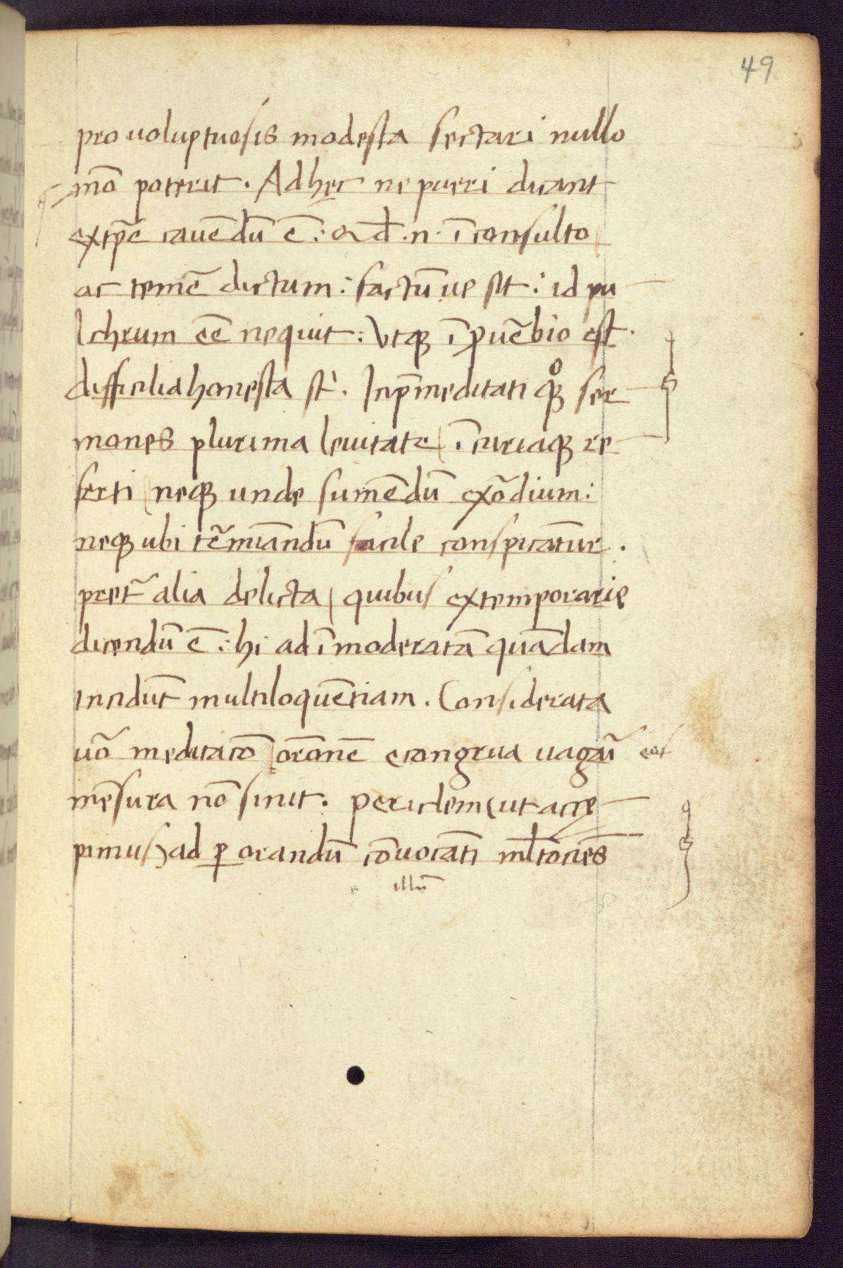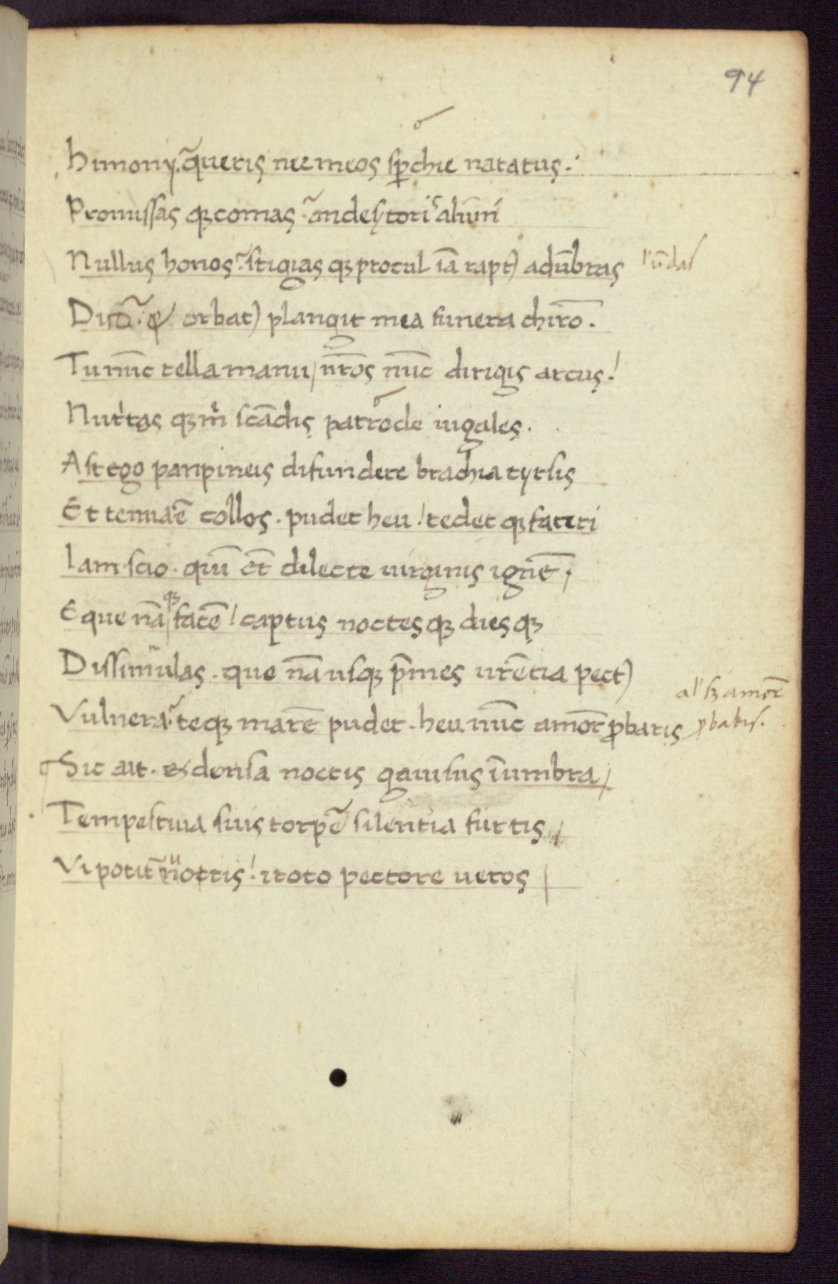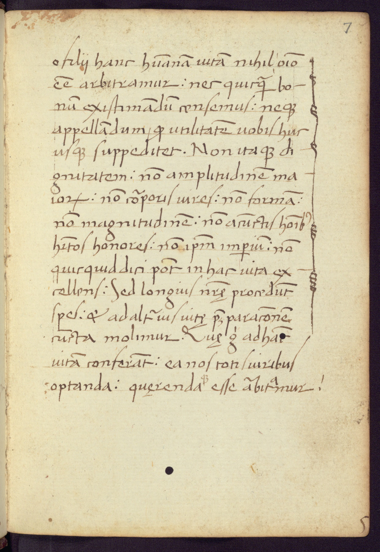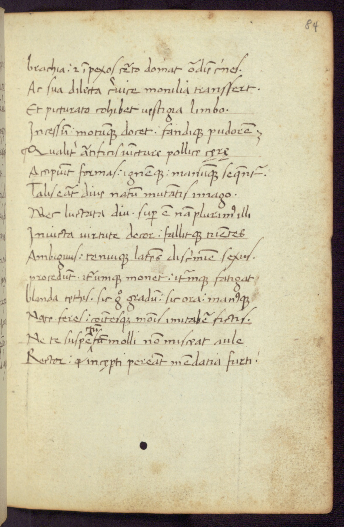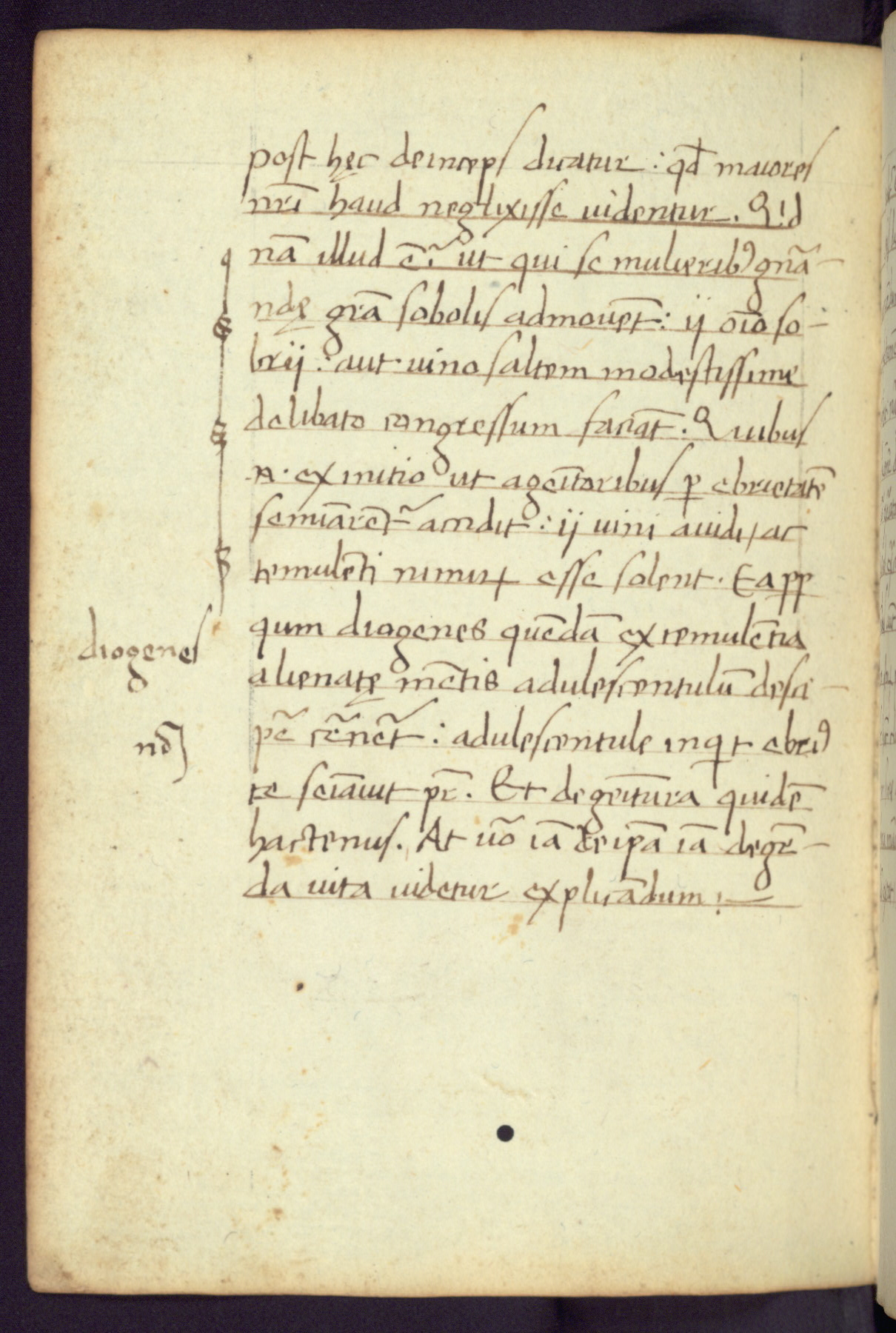 Written in Italy in the third quarter of the fifteenth century, this manuscript contains works by St. Basilius, Pseudo(?) Plutarch, and Statius. The first two texts are Greek treatises on education that were translated into Latin, bearing witness to the Italian humanist revival of, and interest in, the study of ancient Greek. The translators of those texts, Leonardo Bruni (d.1444) and Guarino Veronese (d.1460), both studied Greek under the tutelage of Byzantine scholar Manuel Chrysoloras (d.1415), who was one of the first to introduce Greek literature to Western Europe. The third text by Statius was included as part of a compendium of texts frequently used by students studying Latin beginning in the tenth century. During this same period, Statius was confused with the rhetorician Statius Ursulus of Toulouse, who is mentioned in Jerome’s translation of Eusebius’ chronicles as active in 56 CE. Statius' full Roman name was Publius Papinius Statius, however due to his conflation with the rhetorician in the tenth century, there are a number of manuscripts that begin Statius' name with “Sucurlus” instead of “Publius.” This can be found for instance in an Italian incunabula that is contemporary with W.358, and which is also found in the Walters’ collection (91.1119). This suggests that this error may have been a regional phenomenon in Italy.