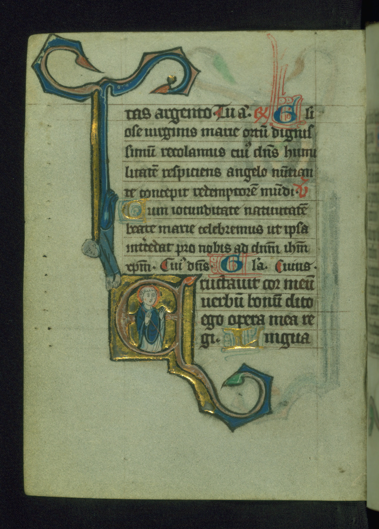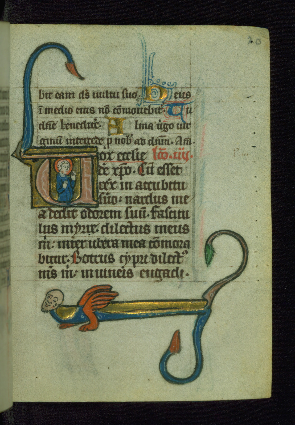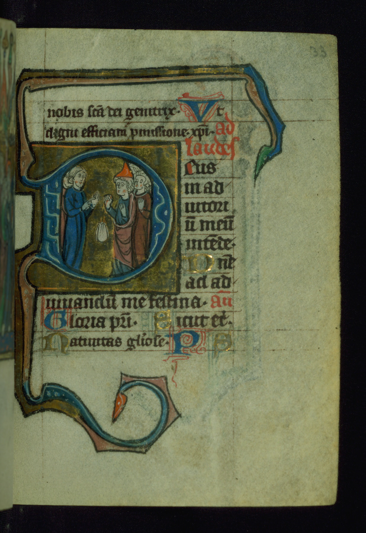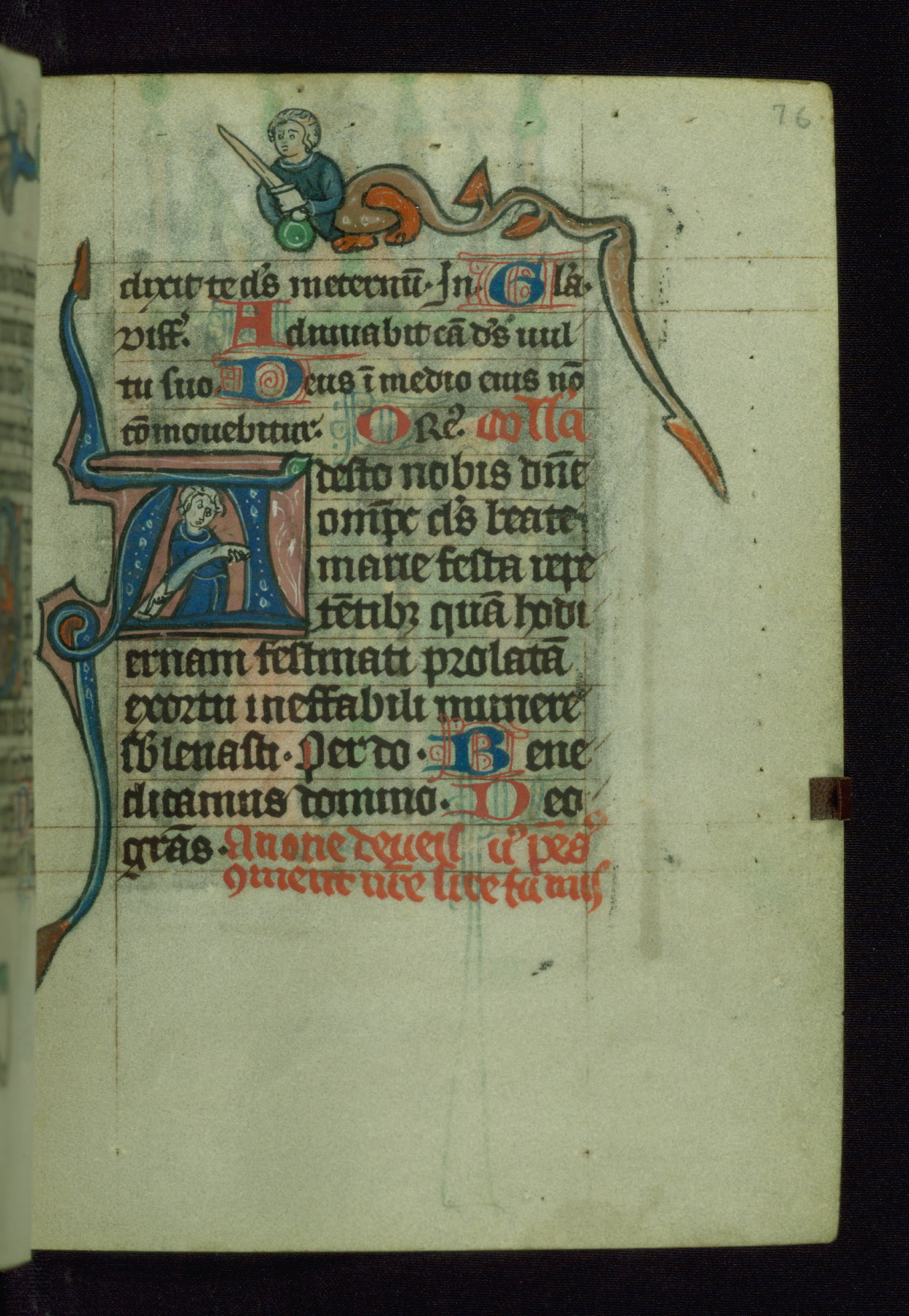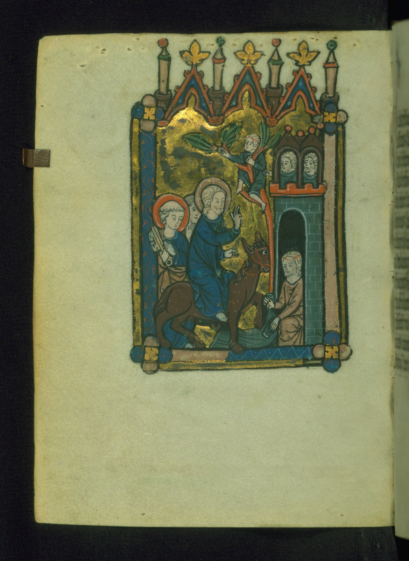 This small but richly illuminated Book of Hours was made ca. 1300-10 for the Use of Liège. The manuscript was created for a woman, likely a Beguine living in Huy, and inscriptions indicate it continued to be used in that region by another family into the seventeenth century. The number and variety of illuminations in the manuscript are remarkable given its small size, for it contains fourteen extant full-page miniatures, twenty-four calendar images, eleven extant large historiated initials, 188 small historiated initials, and countless marginal drolleries. Although an early rebinding resulted in the loss or rearrangement of several folios, this manuscript remains a fine example of the richness and intimacy of a Book of Hours from this period.
