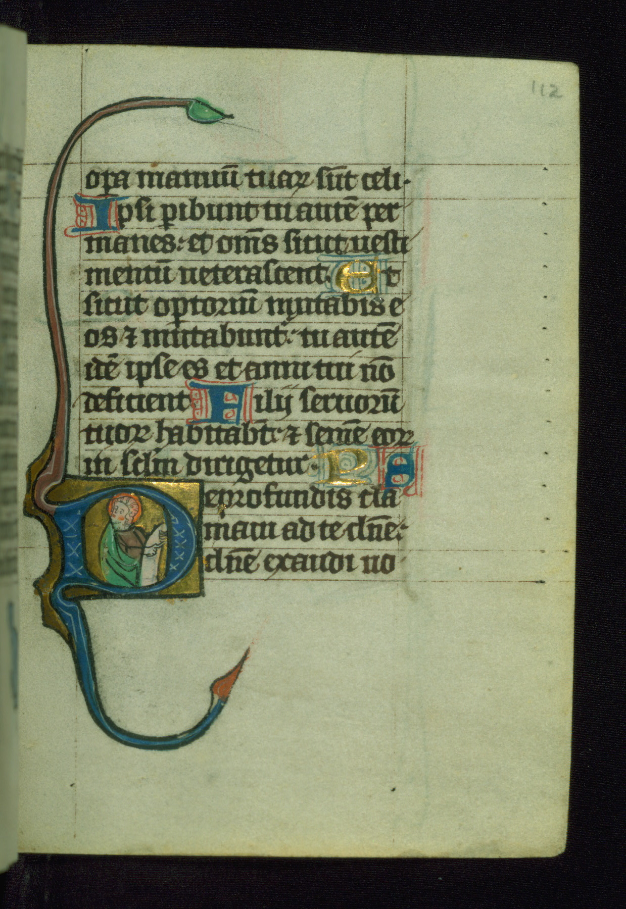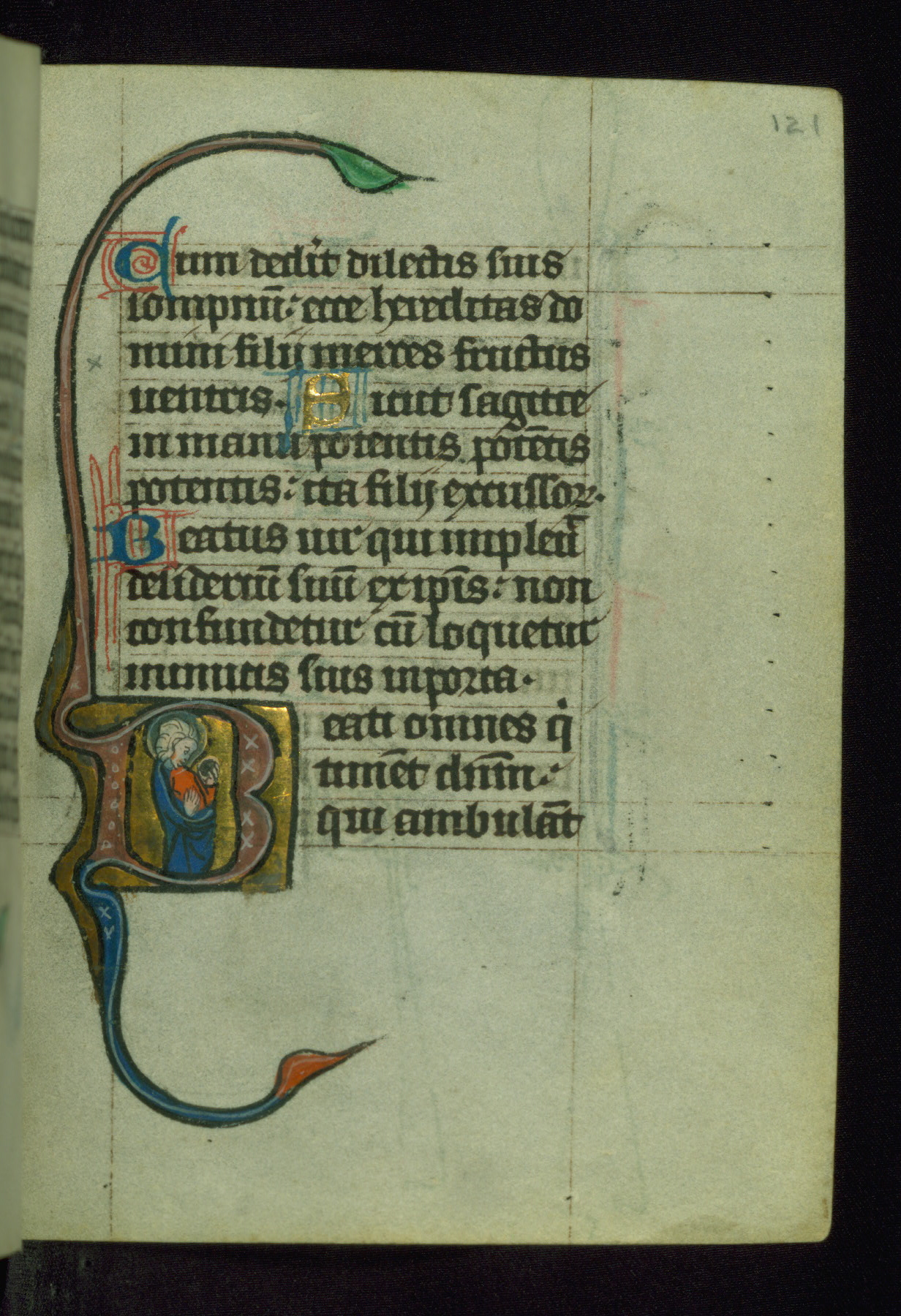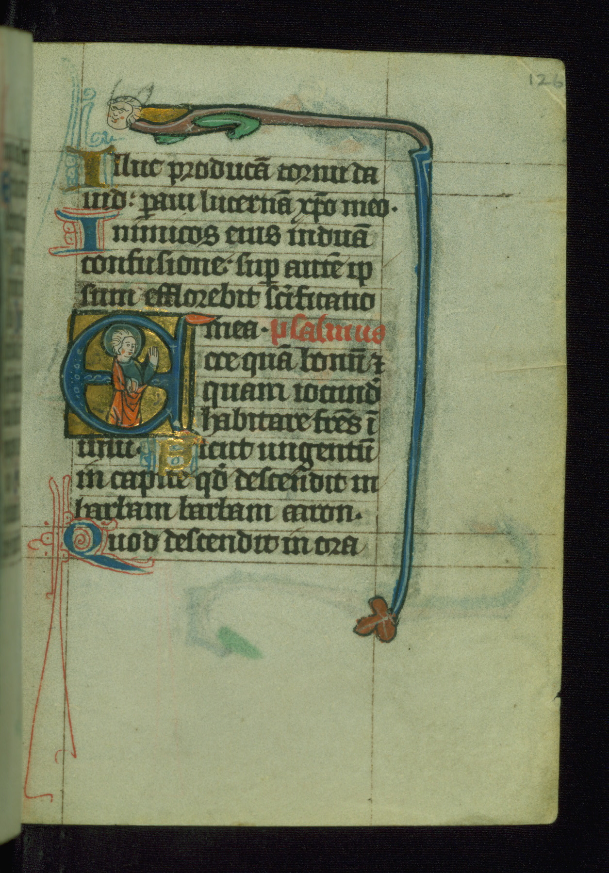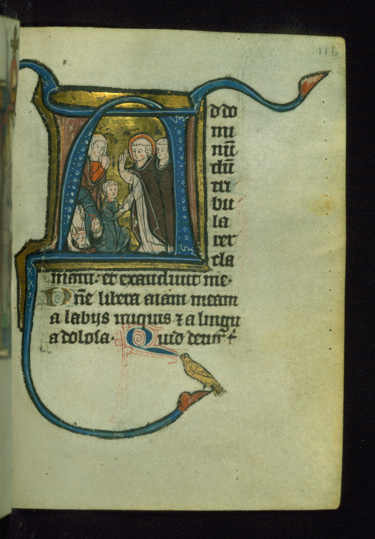- Decoration note: Small historiated initial lacking for the opening of Ps. 126 after fol. 120; full-page miniature fol. 115v; large historiated initial fol. 116r; small historiated initials fols. 116r, 117r, 118v, 119r, 120r-v, 121r, 122r-v, 123v, 124r, and 126r-v