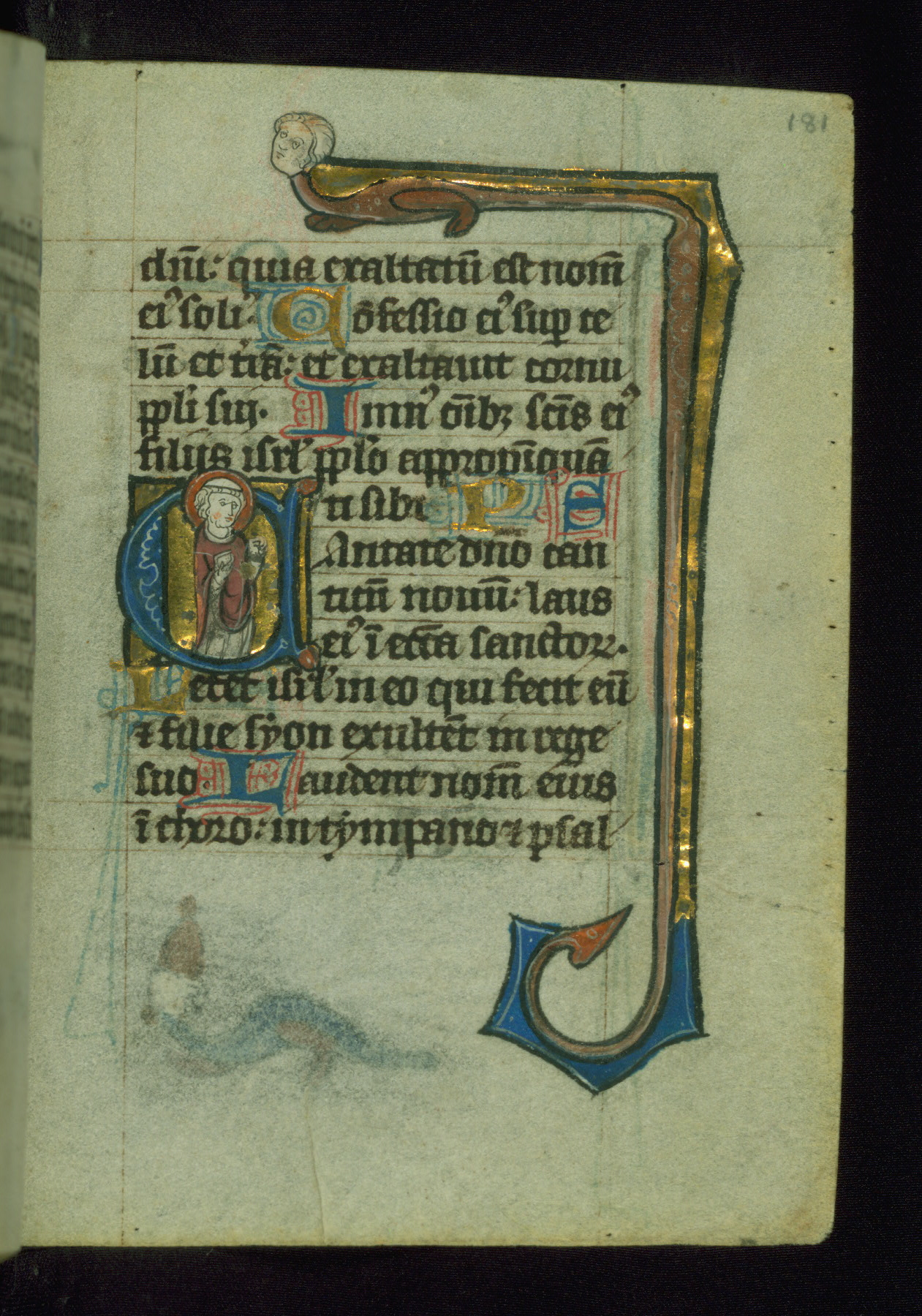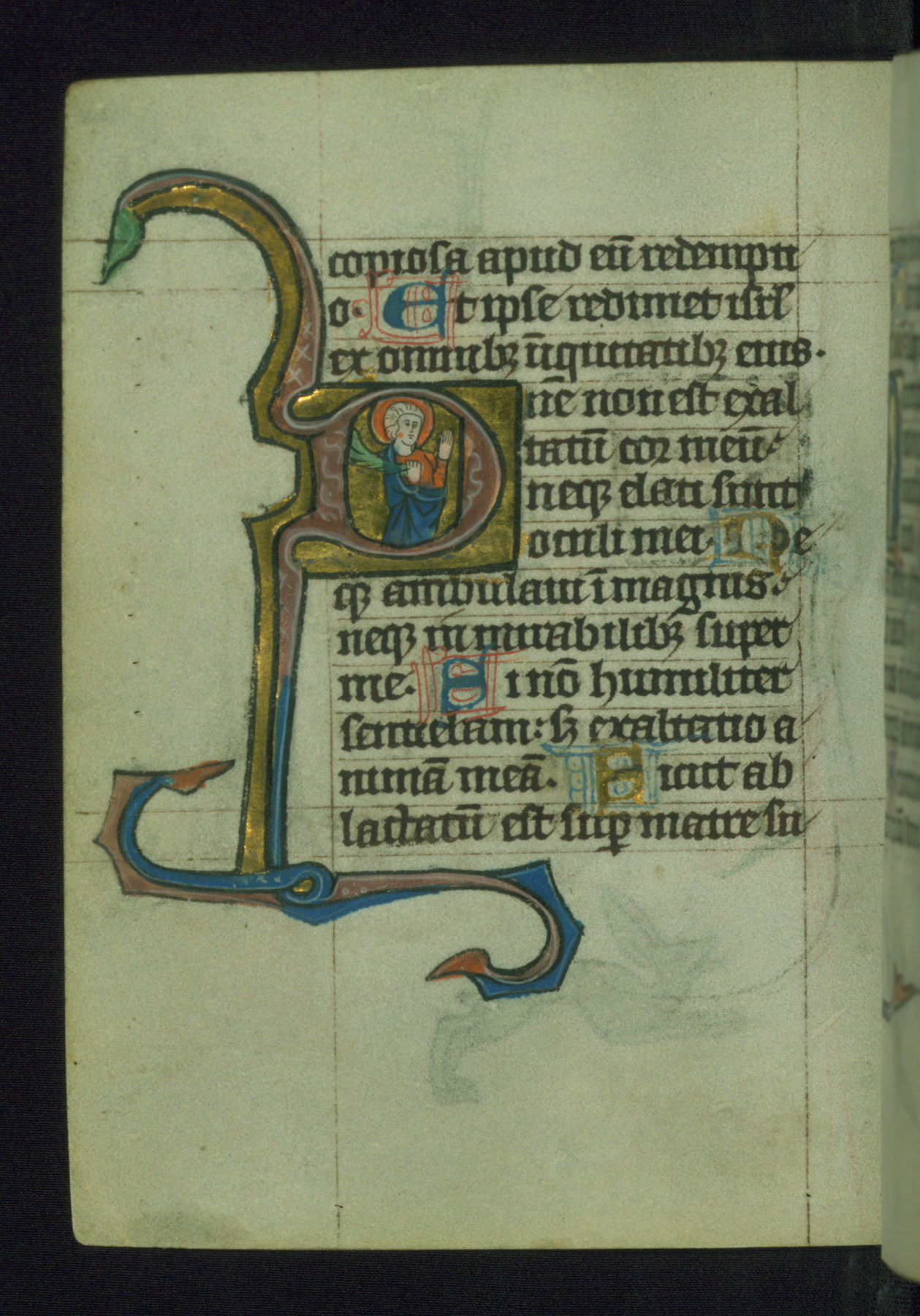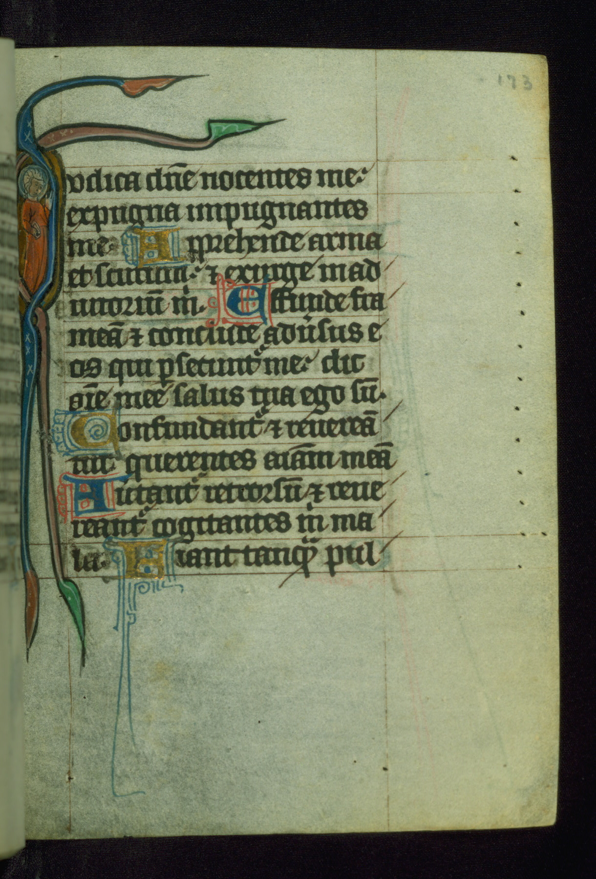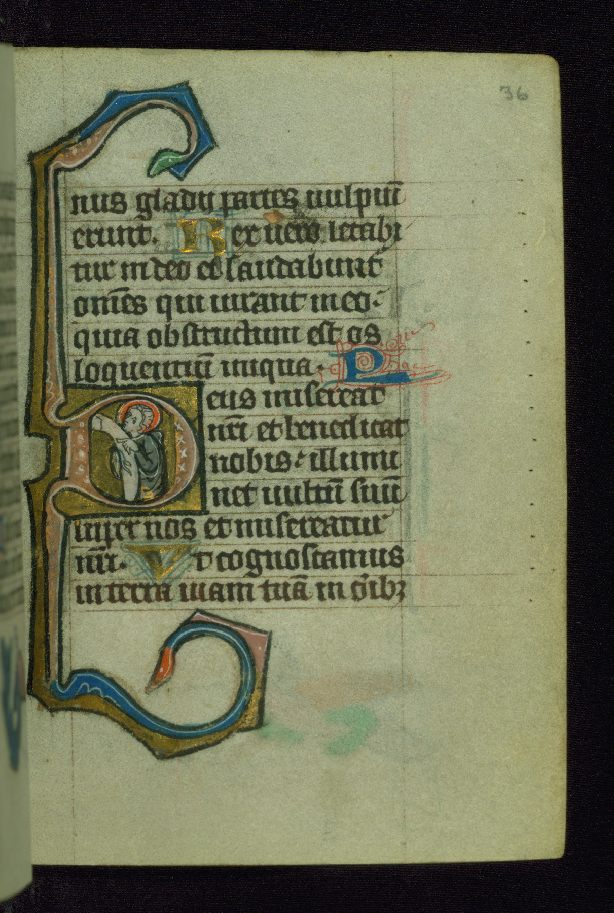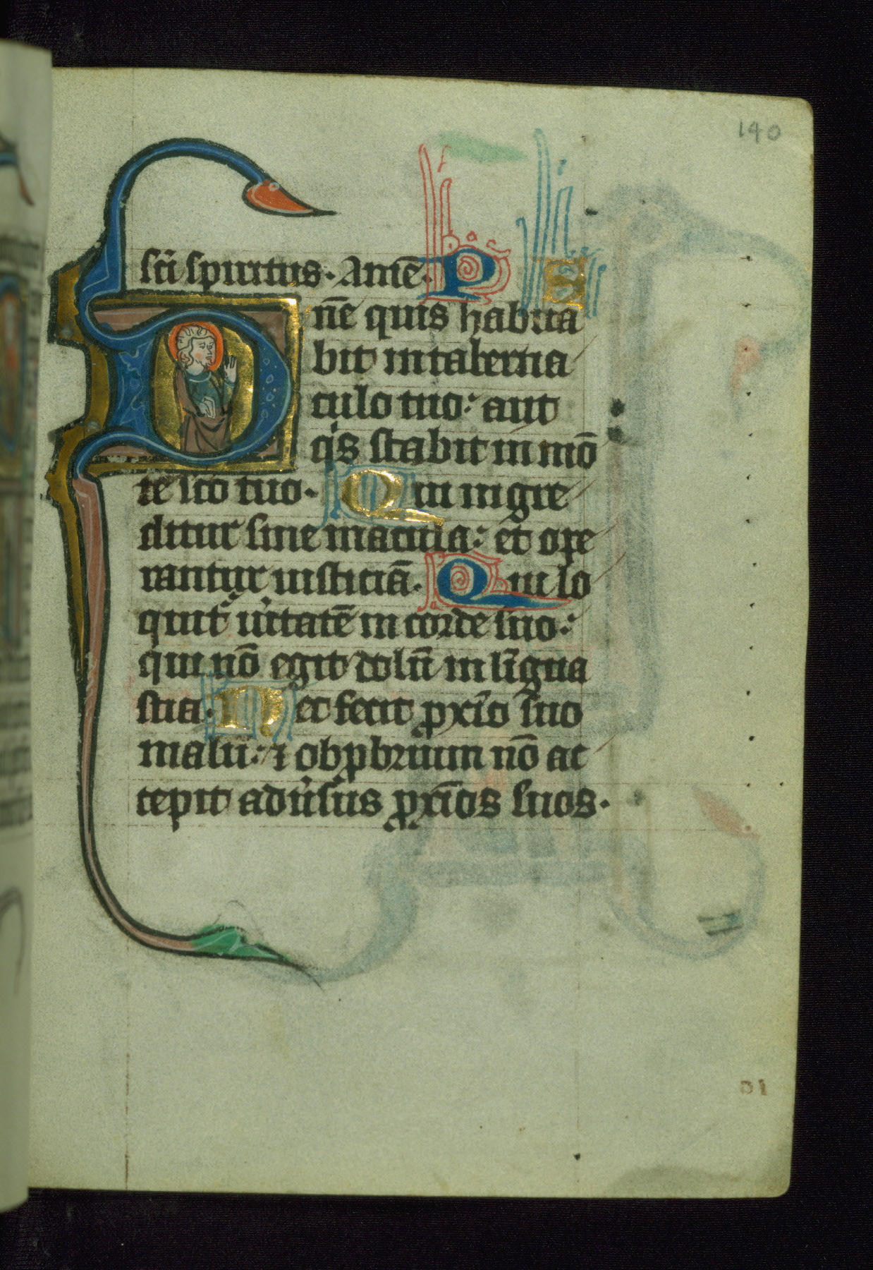 - Decoration note: Small historiated initial lacking for the opening of Ps. 126 after fol. 120; full-page miniature fol. 115v; large historiated initial fol. 116r; small historiated initials fols. 116r, 117r, 118v, 119r, 120r-v, 121r, 122r-v, 123v, 124r, and 126r-v