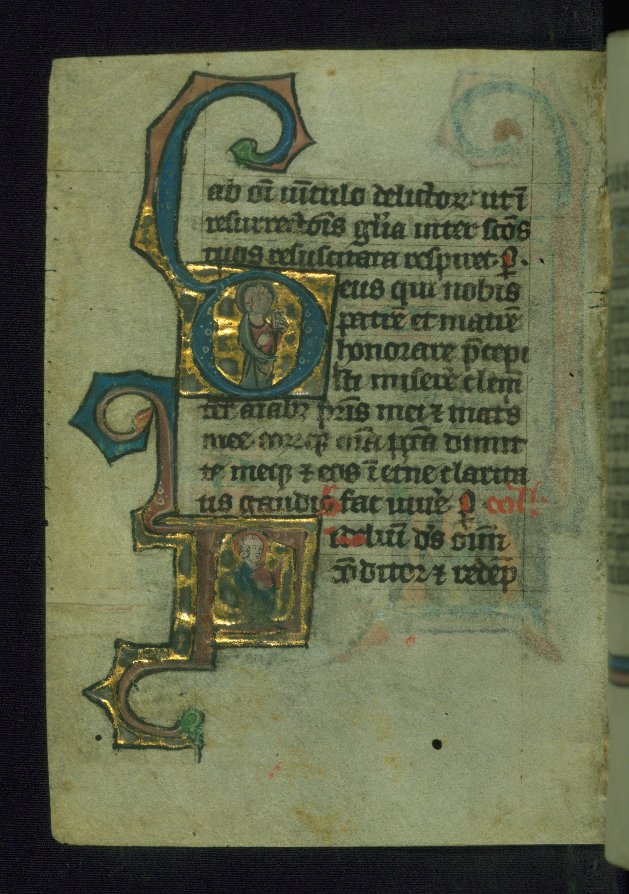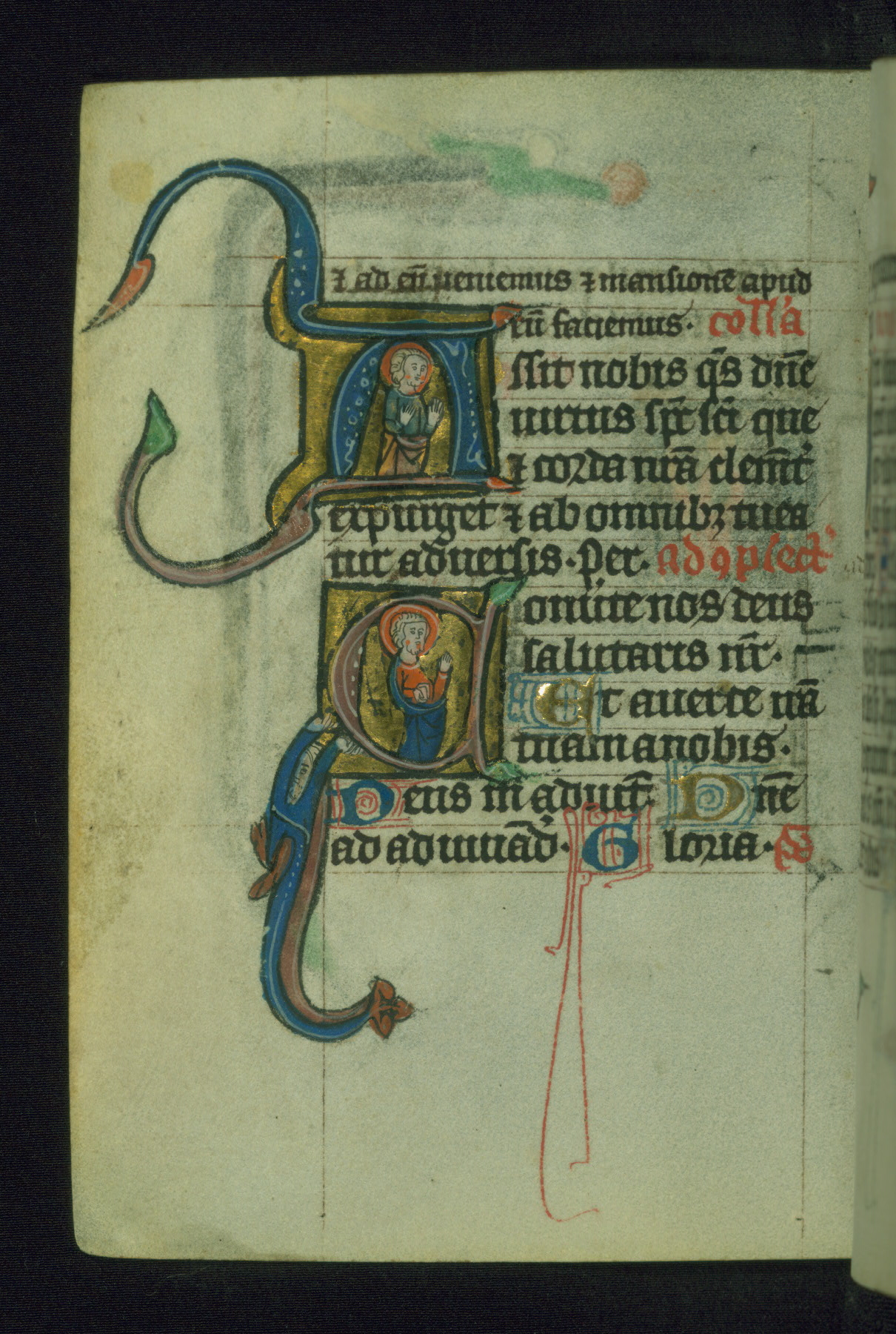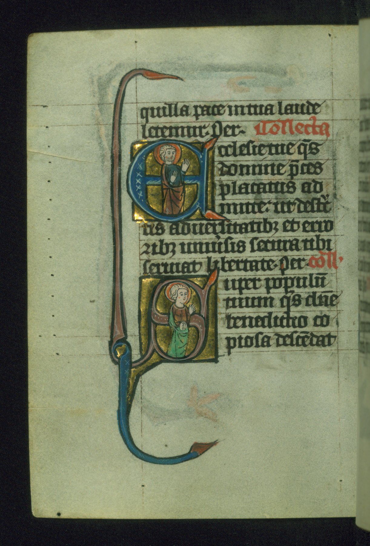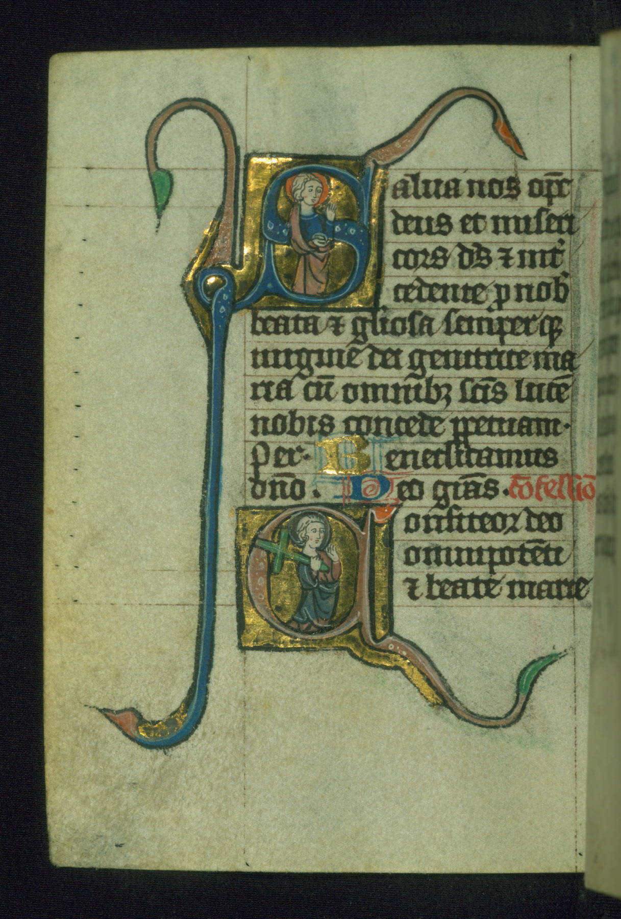 - Title: Above: Initial "D" with saint holding a book; Below: Initial "F" with saint holding a book