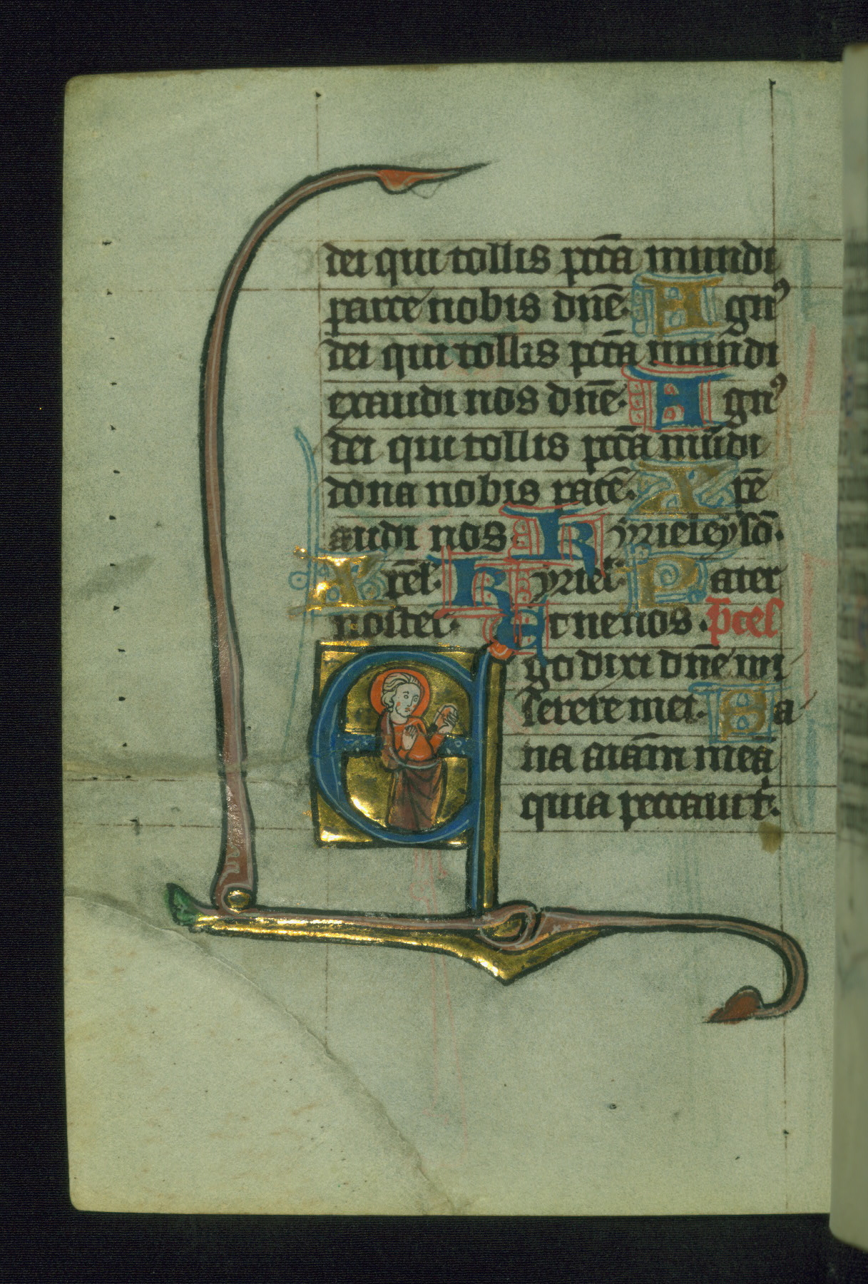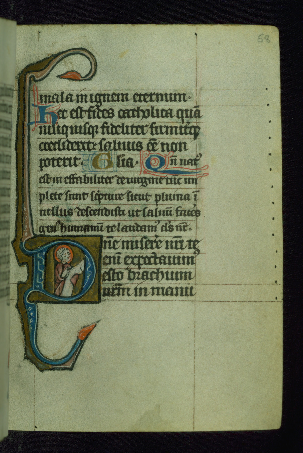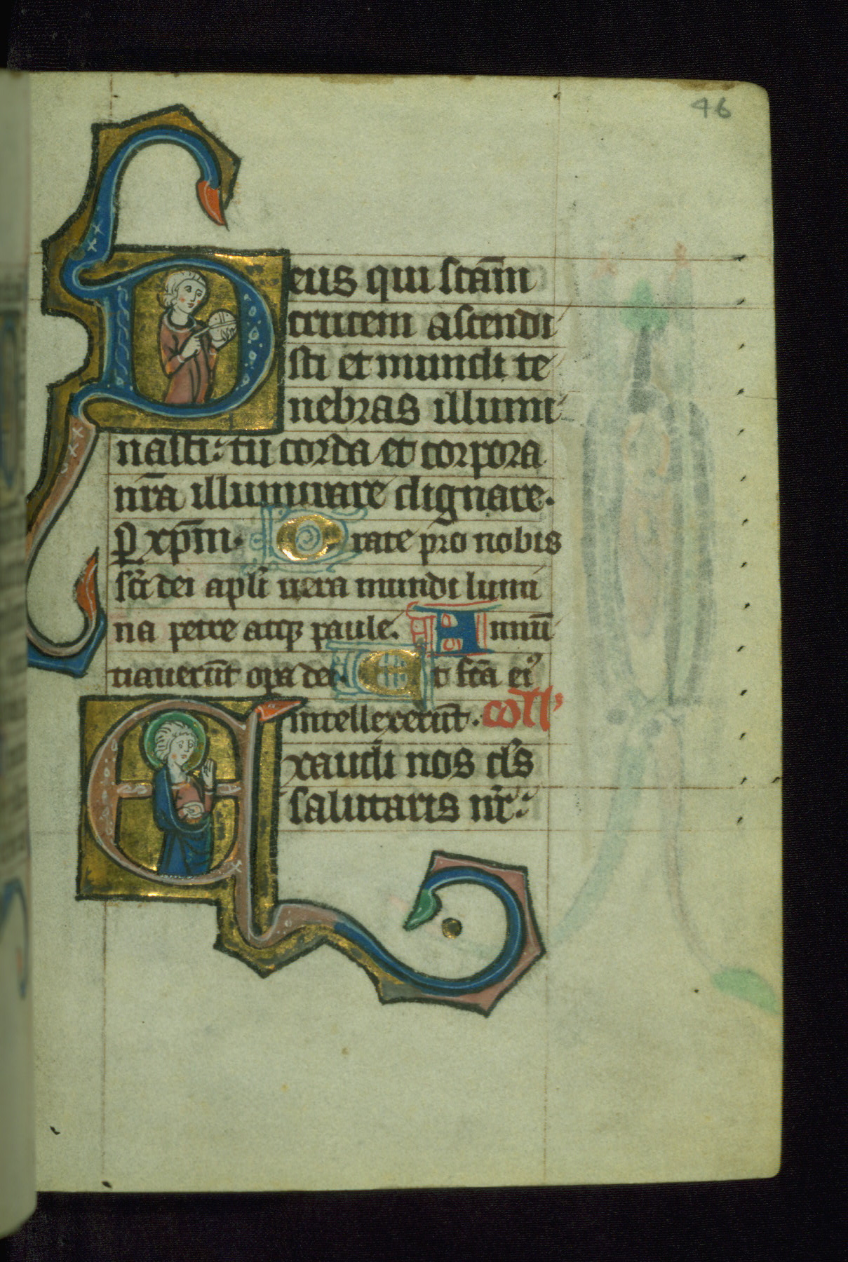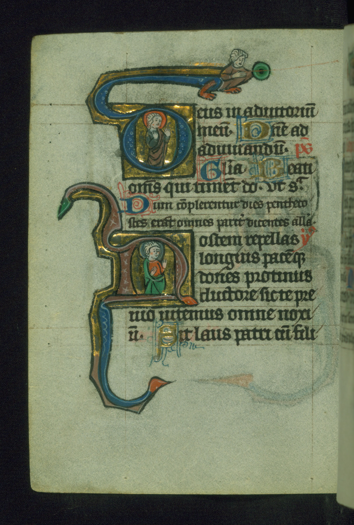 - Title: Above: Initial "D" with saint holding a book; Below: Initial "F" with saint holding a book