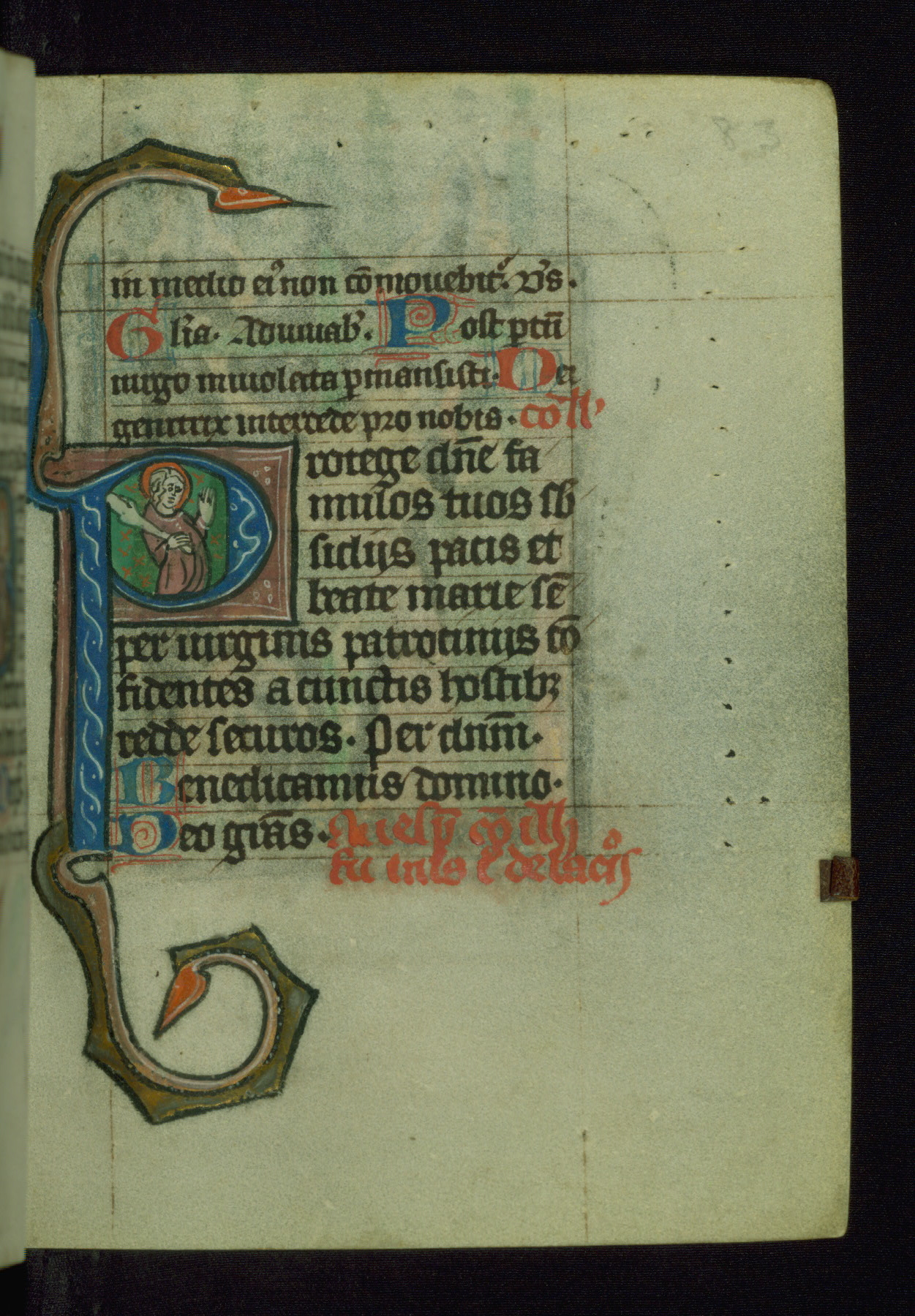 Created for use in Liège ca. 1300-1310, likely for a female owner, possibly a Beguine living in Huy (diocese of Liège) based on saints in the calendar (see that section for details); reference to a female suppliant in a collect on fol. 195r