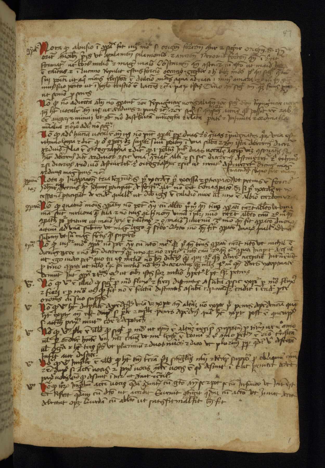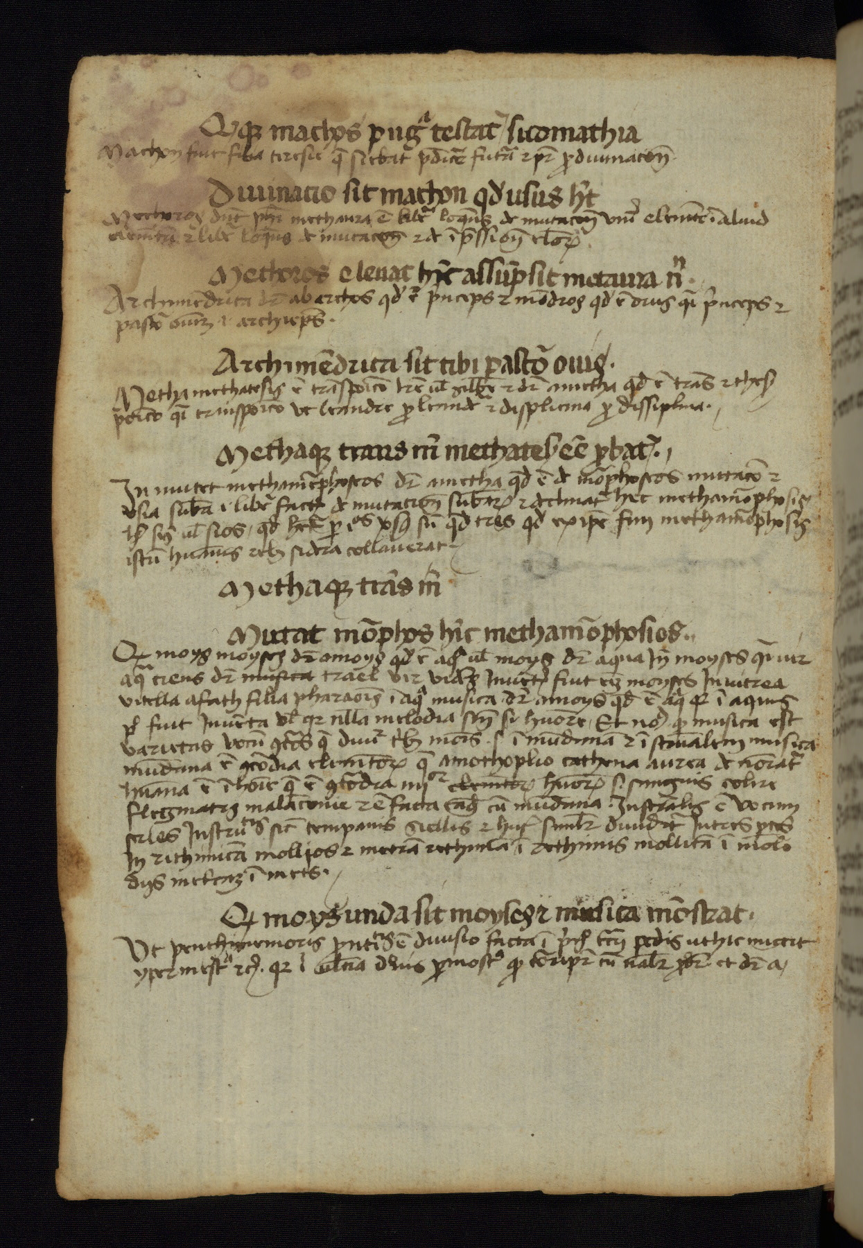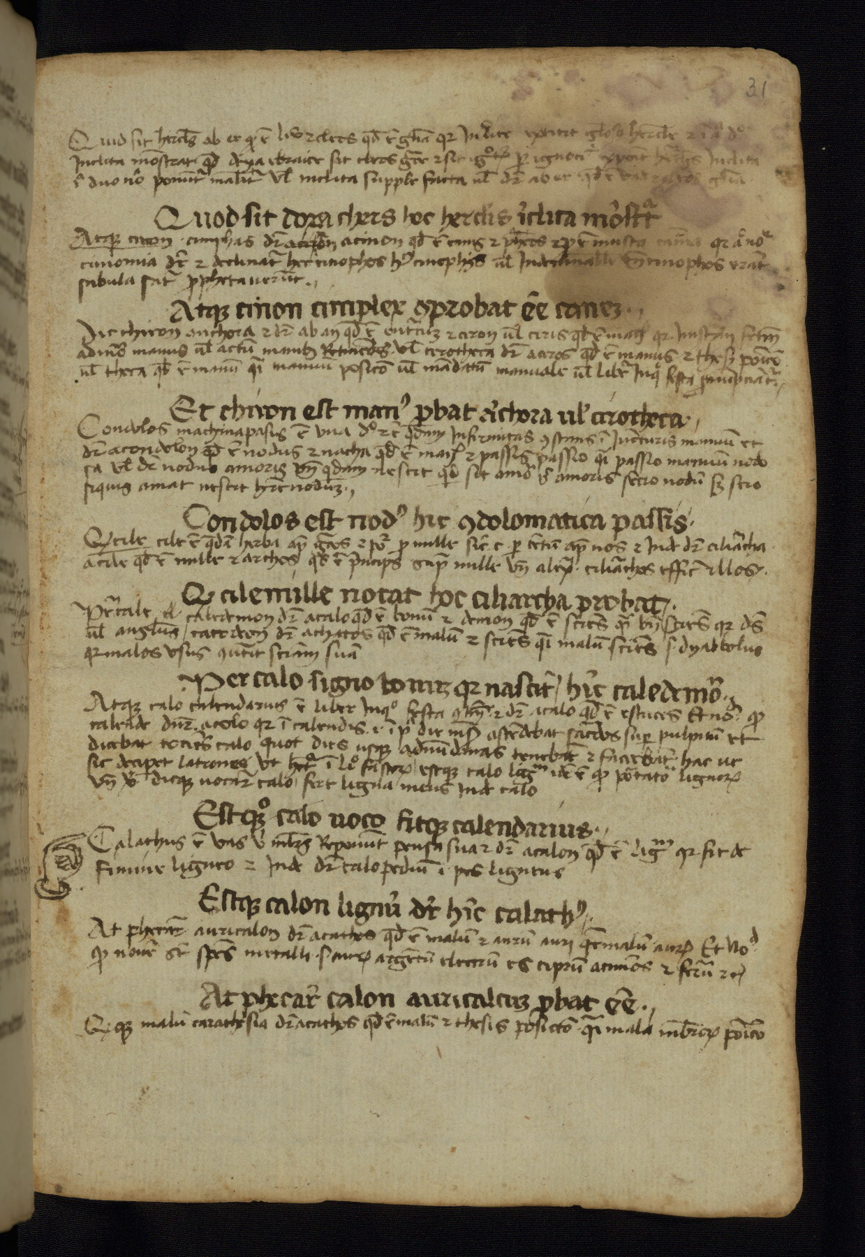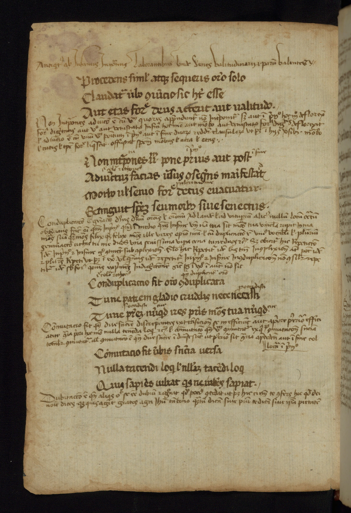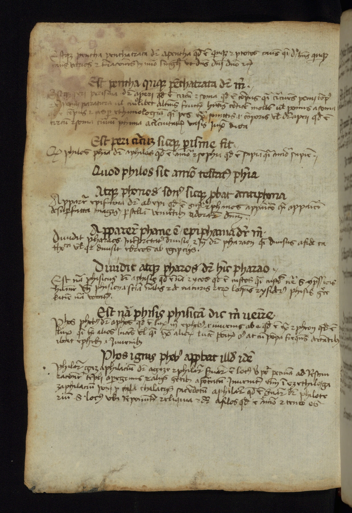 This German manuscript is a copy of Eberhard of Béthune's thirteenth-century grammatical poem Graecismus. The poem is accompanied by an extensive gloss by Jean-Vincent Metulin, a scholar from southern France. Having functioned as a textbook, the manuscript's condition suggests it was well-used by students eager to memorize and comprehend Béthune's ideas on the grammatical usage of Greek words.