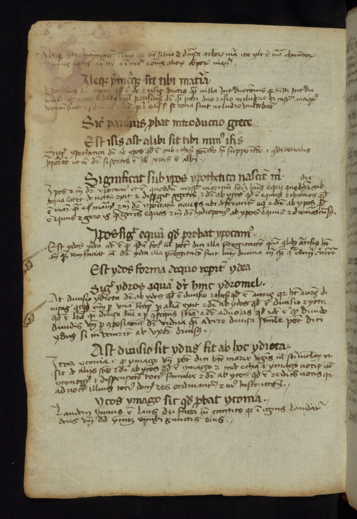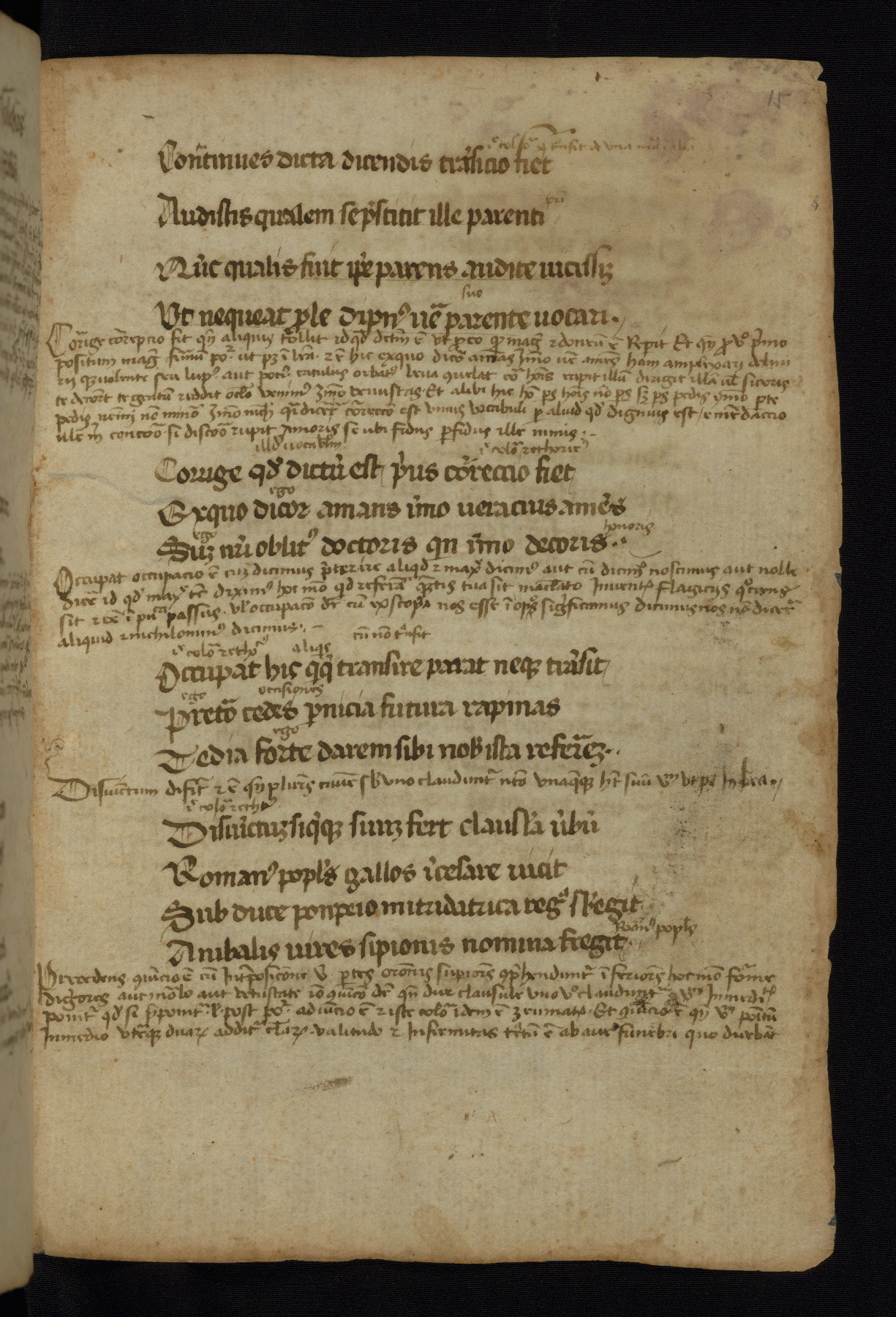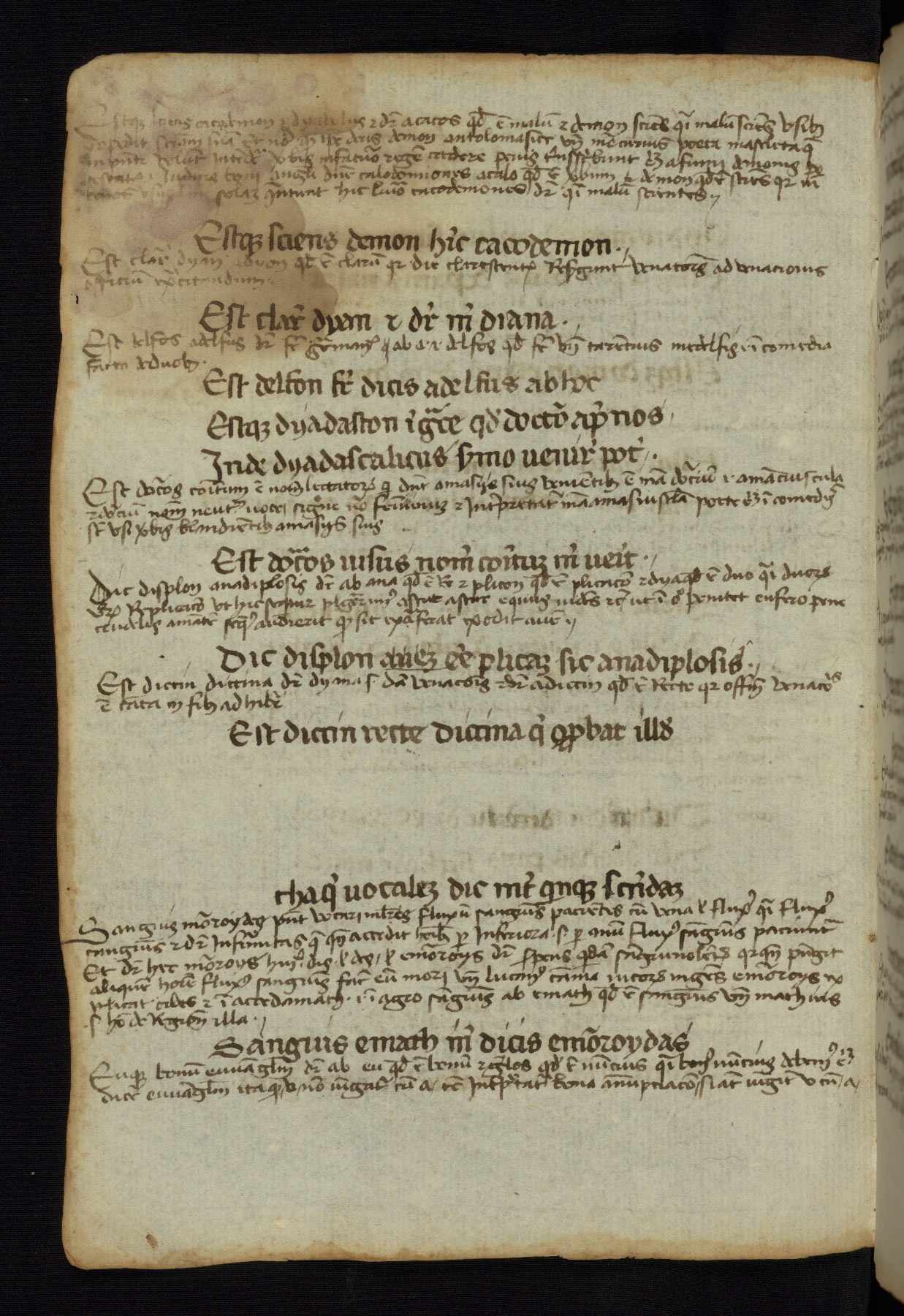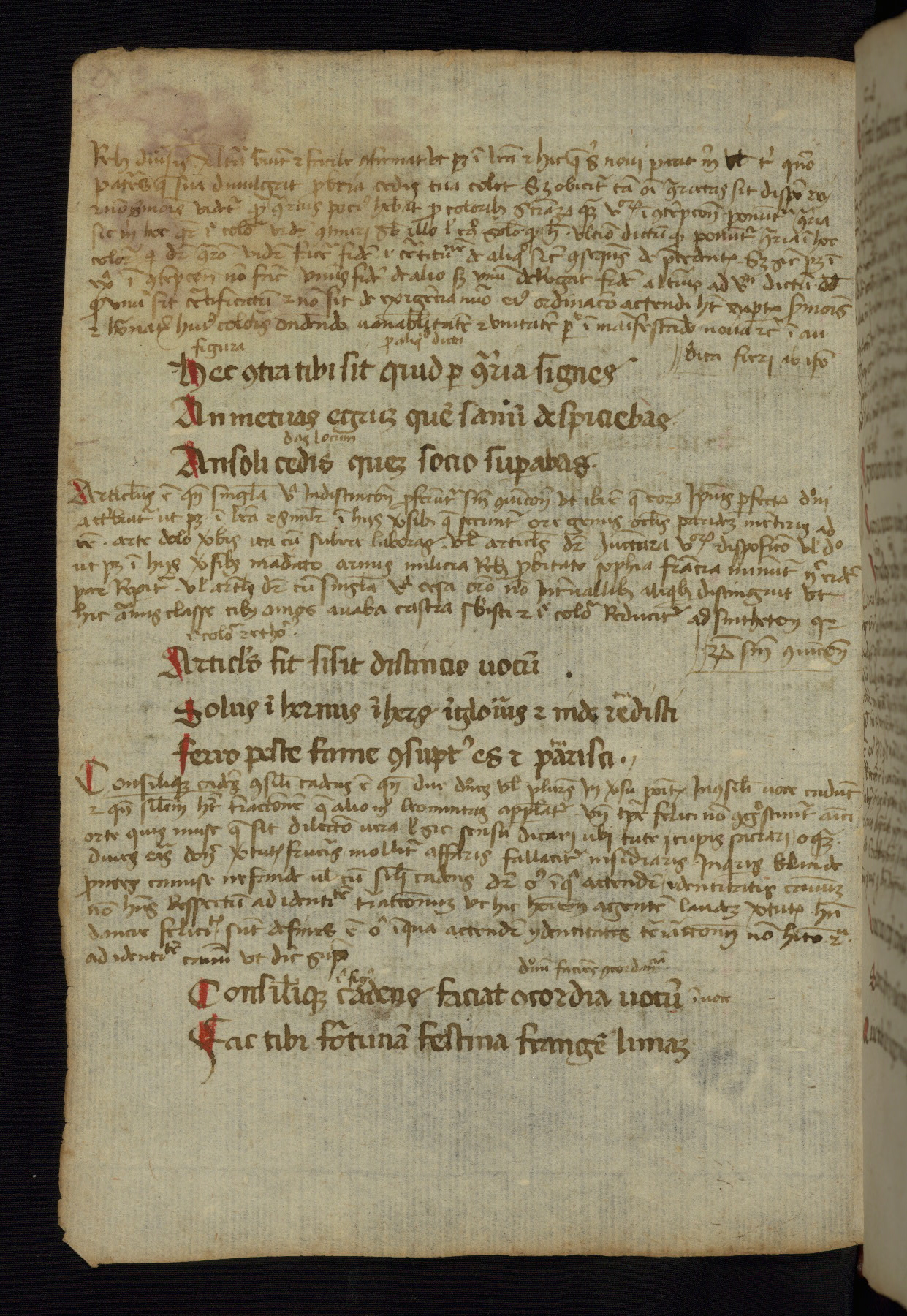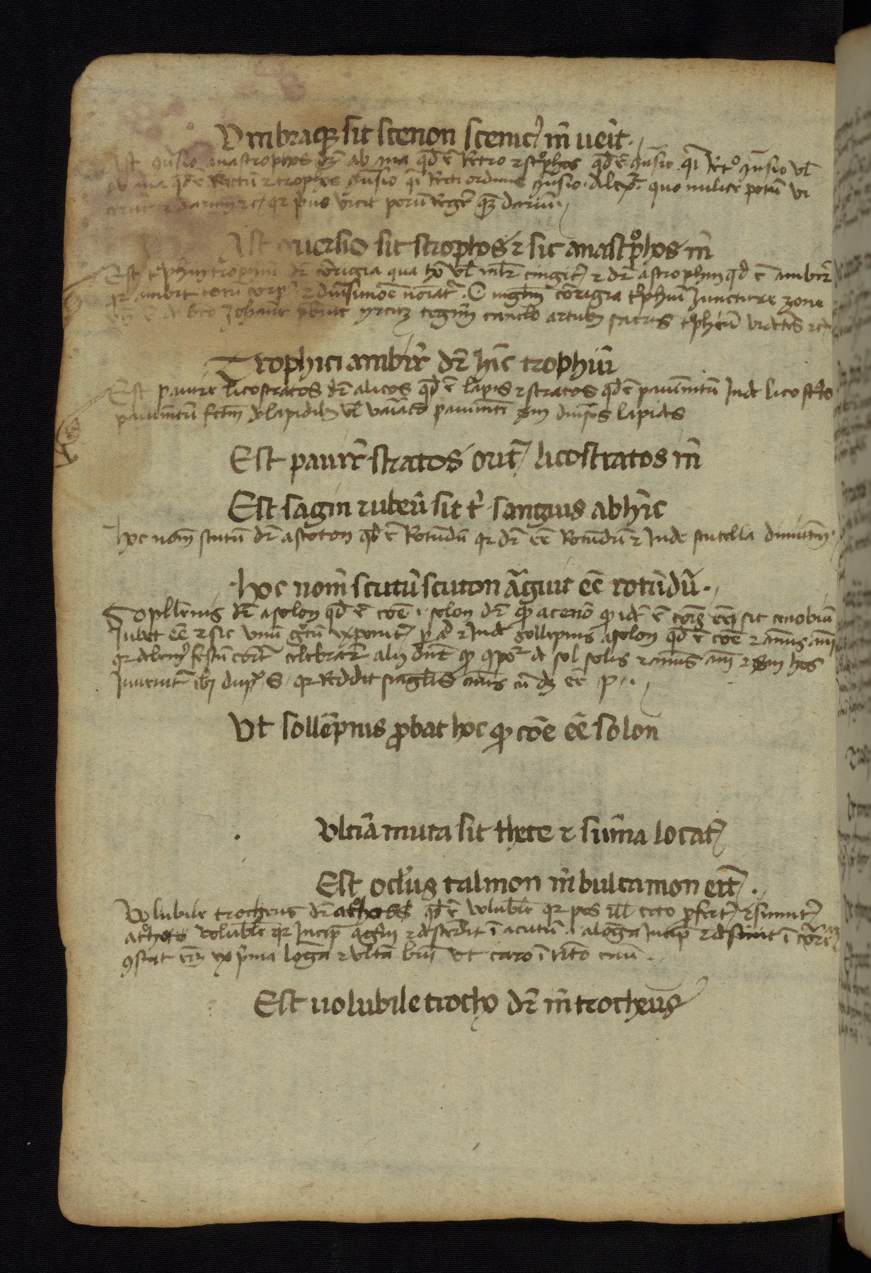This German manuscript is a copy of Eberhard of Béthune's thirteenth-century grammatical poem Graecismus. The poem is accompanied by an extensive gloss by Jean-Vincent Metulin, a scholar from southern France. Having functioned as a textbook, the manuscript's condition suggests it was well-used by students eager to memorize and comprehend Béthune's ideas on the grammatical usage of Greek words.