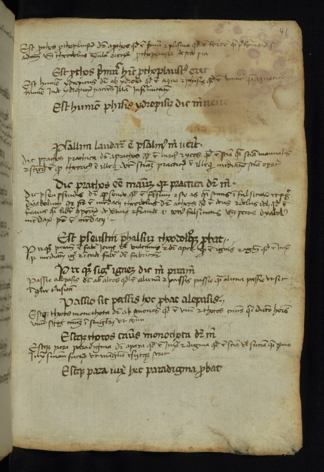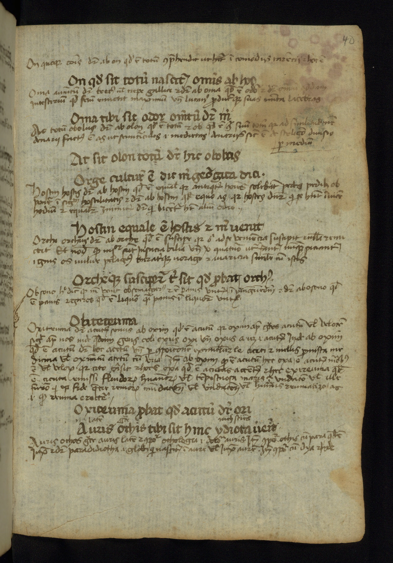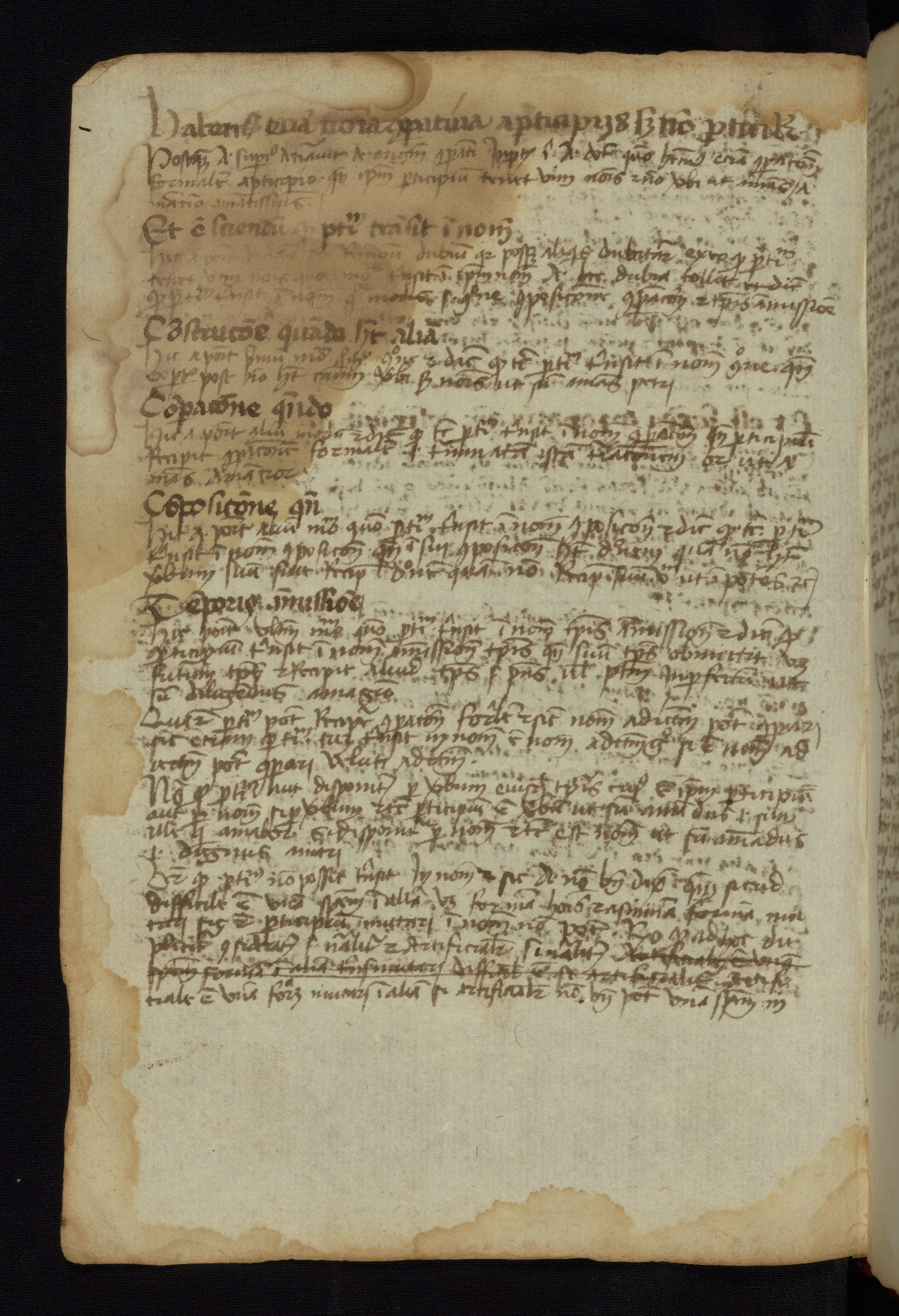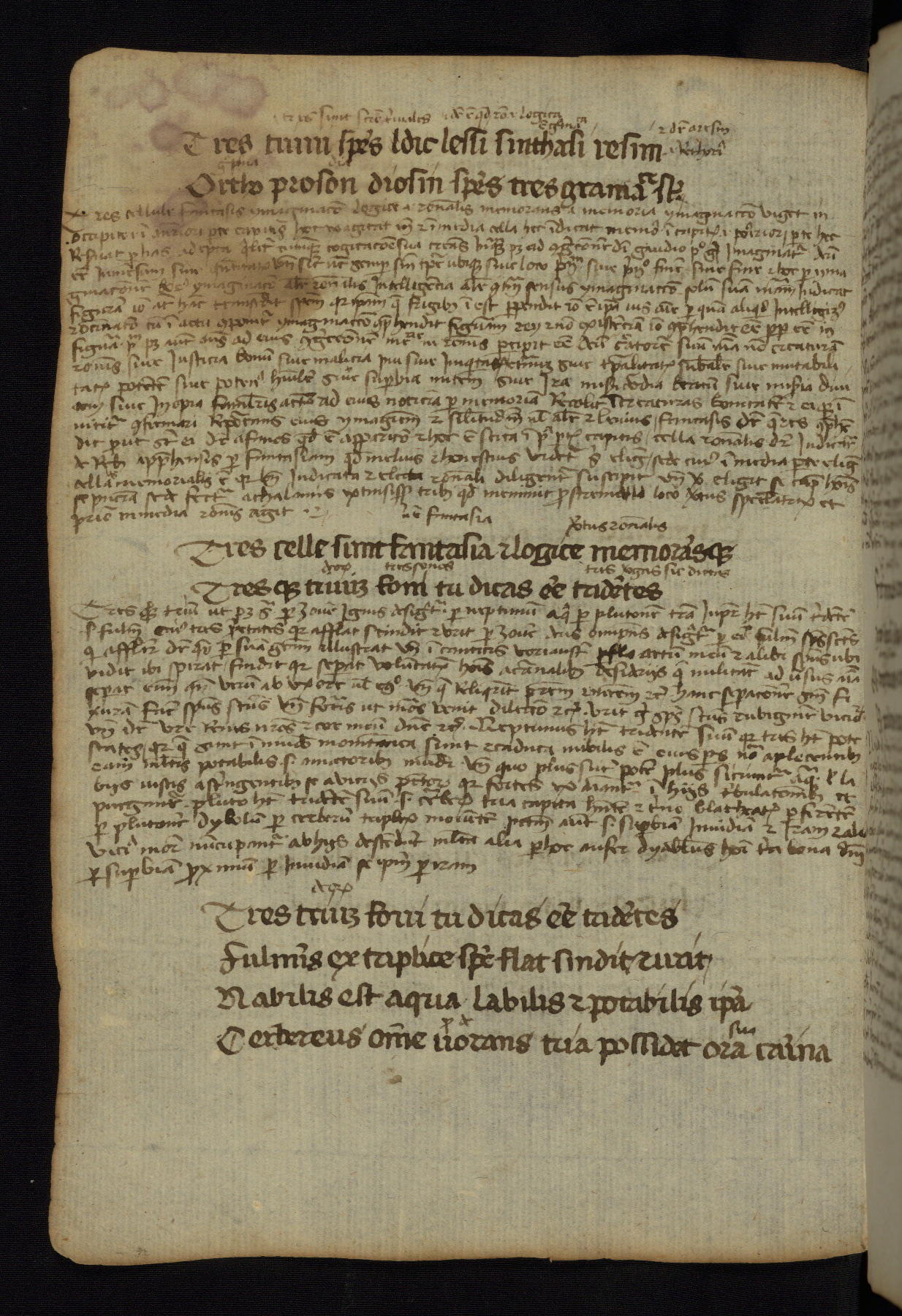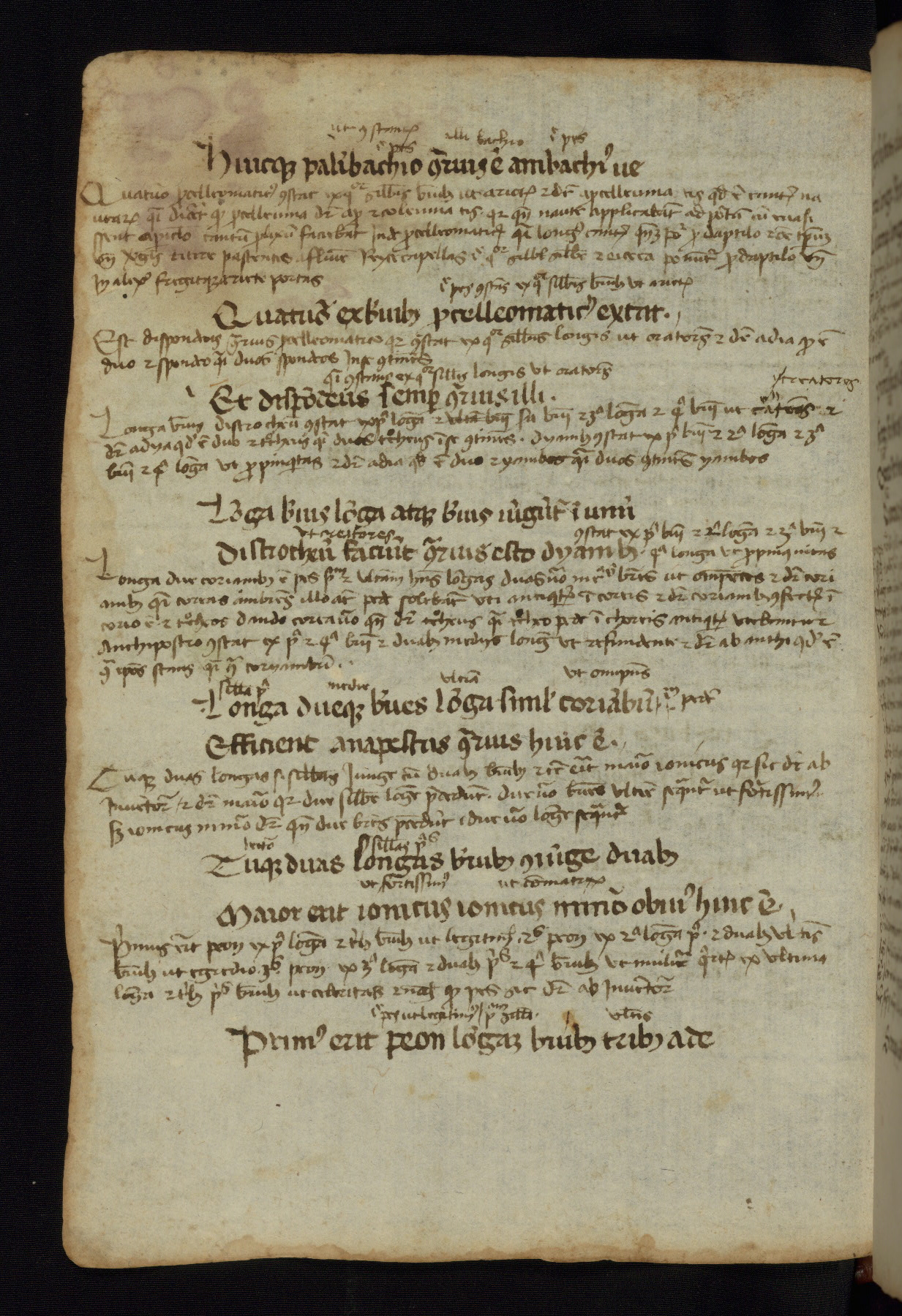 This German manuscript is a copy of Eberhard of Béthune's thirteenth-century grammatical poem Graecismus. The poem is accompanied by an extensive gloss by Jean-Vincent Metulin, a scholar from southern France. Having functioned as a textbook, the manuscript's condition suggests it was well-used by students eager to memorize and comprehend Béthune's ideas on the grammatical usage of Greek words.