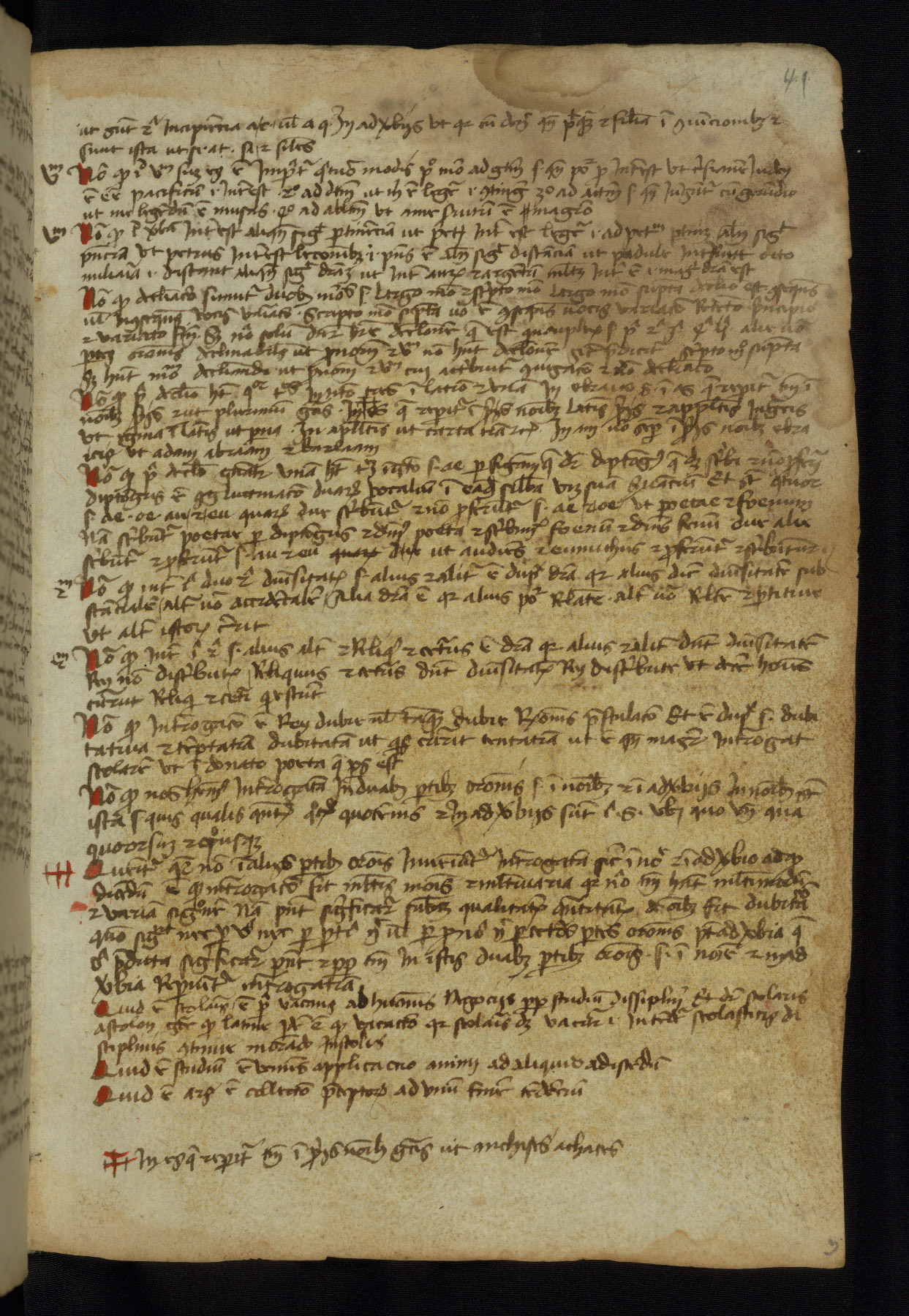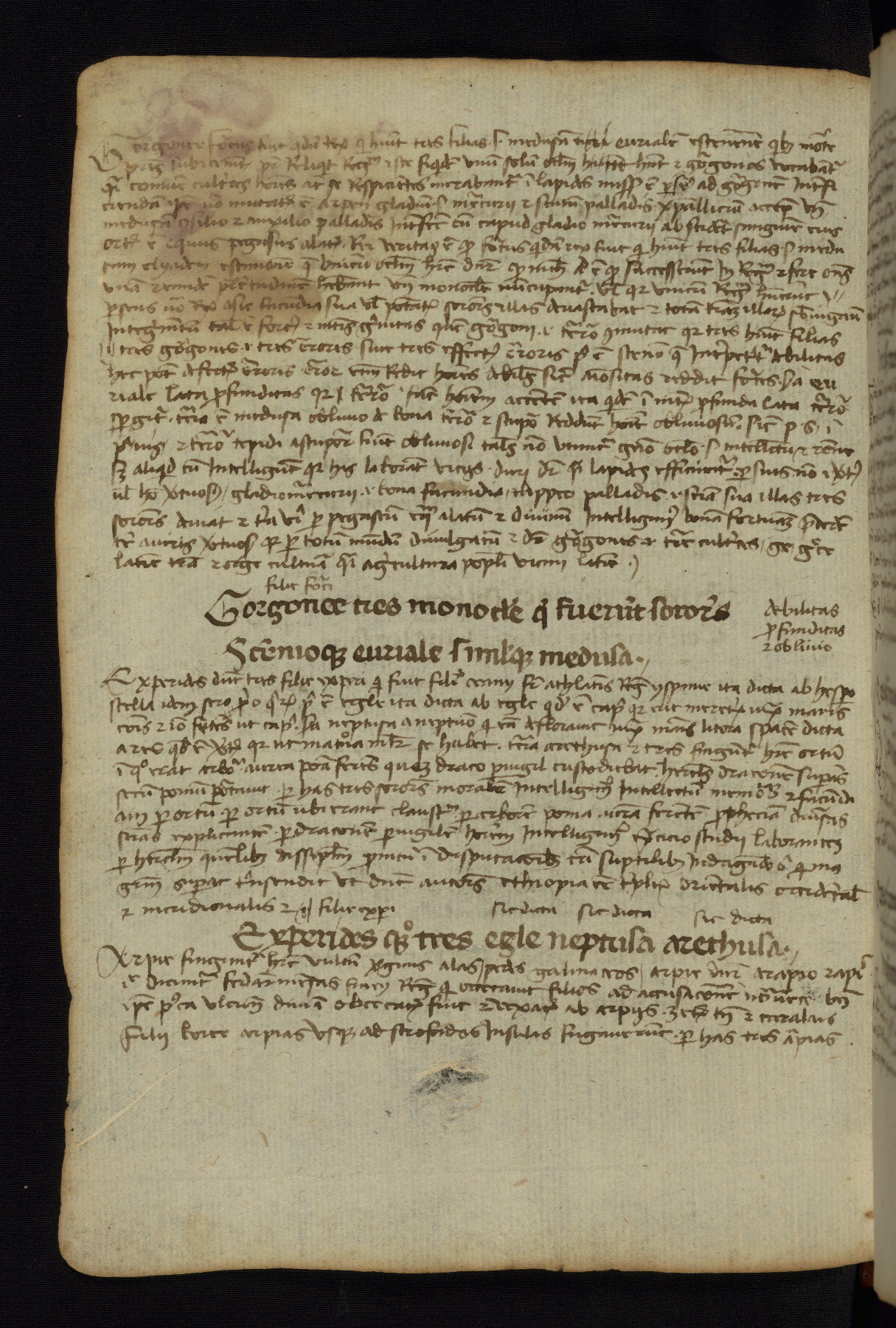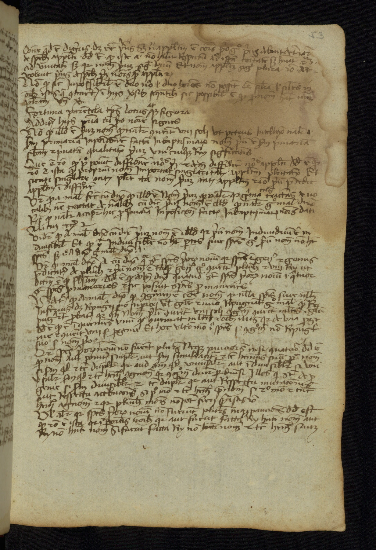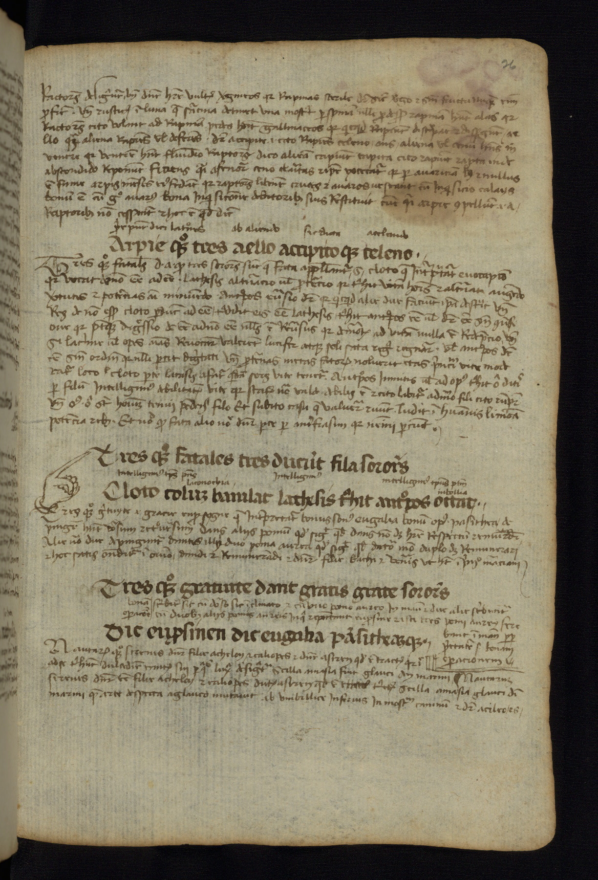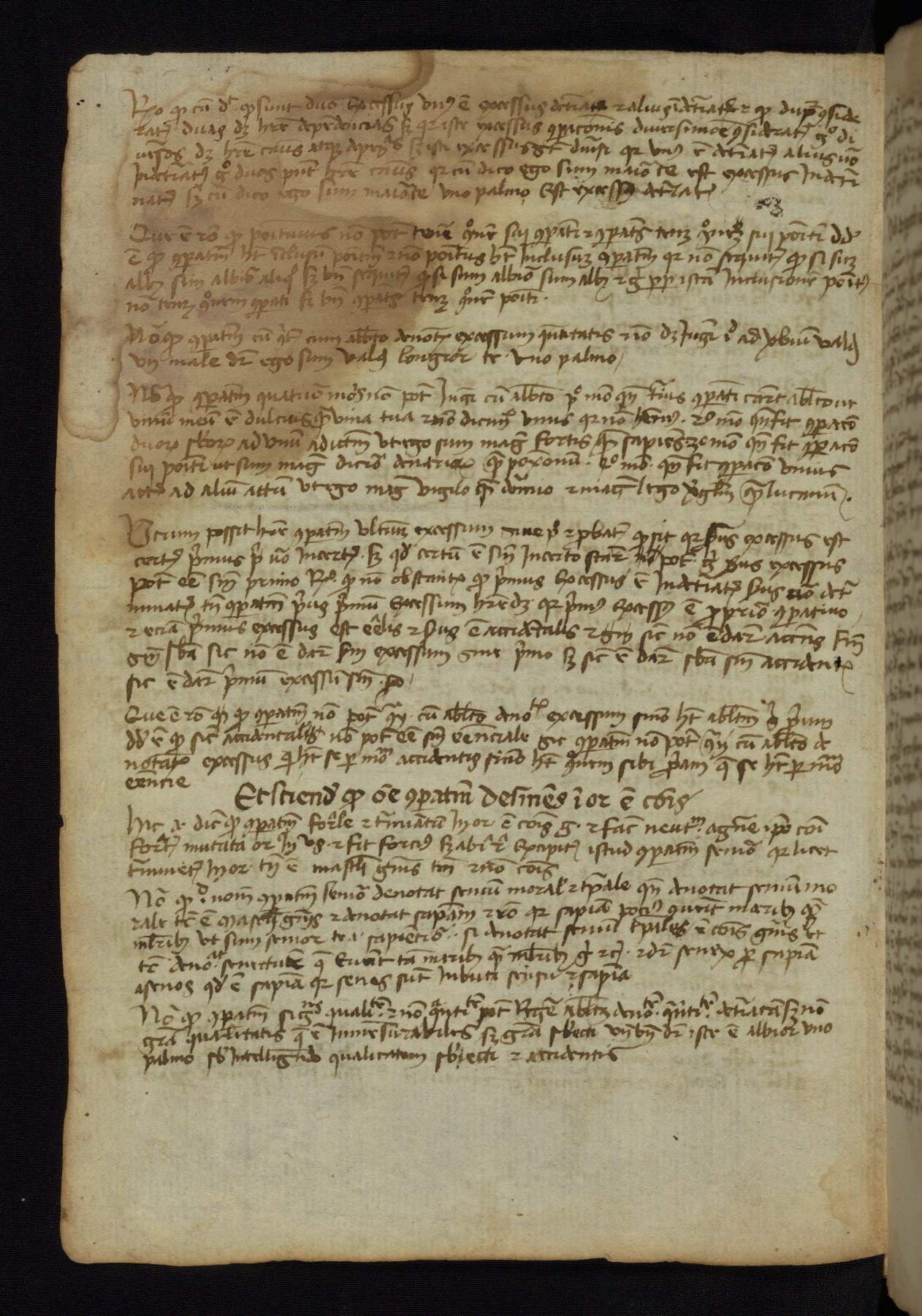 This German manuscript is a copy of Eberhard of Béthune's thirteenth-century grammatical poem Graecismus. The poem is accompanied by an extensive gloss by Jean-Vincent Metulin, a scholar from southern France. Having functioned as a textbook, the manuscript's condition suggests it was well-used by students eager to memorize and comprehend Béthune's ideas on the grammatical usage of Greek words.