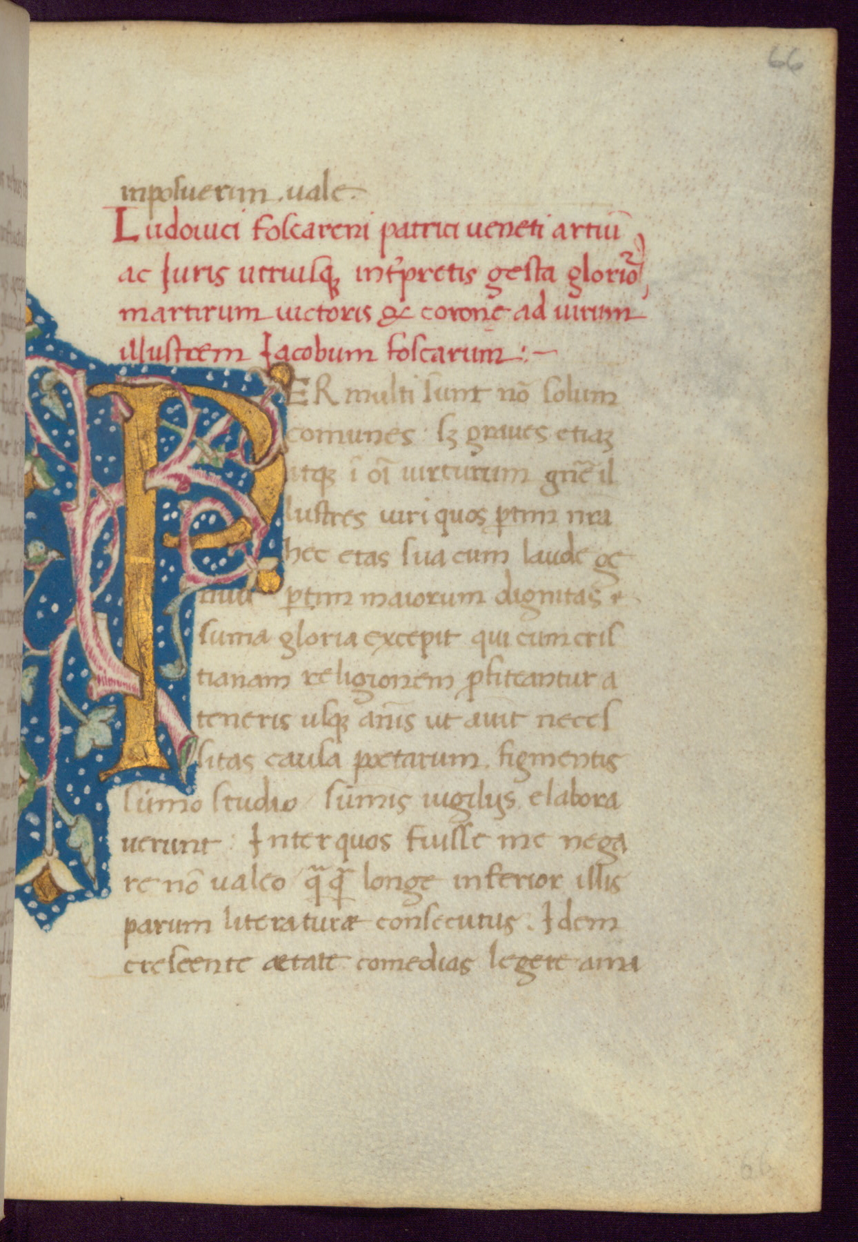 - Text: Beginning of Ludovico Foscarini's dedicatory letter to Jacopo Foscaro