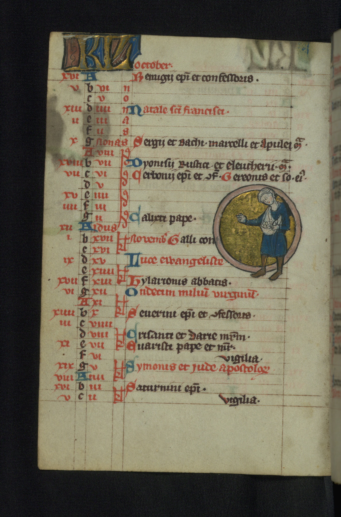 - Text note: Calendar for Franciscan Use; half full, graded in red and black; notable for Franciscan feasts, including Translation of St. Francis (May 25), St. Anthony of Padua (June 13), St. Clara (Aug. 12), and Birth of St. Francis (Oct. 4)