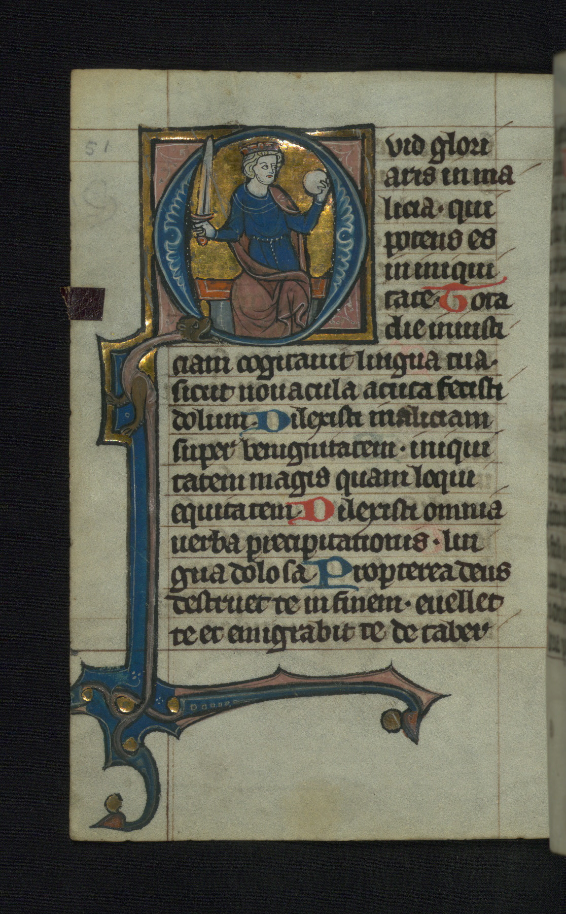 - Title: Initial "Q" with a seated king holding a sword and orb