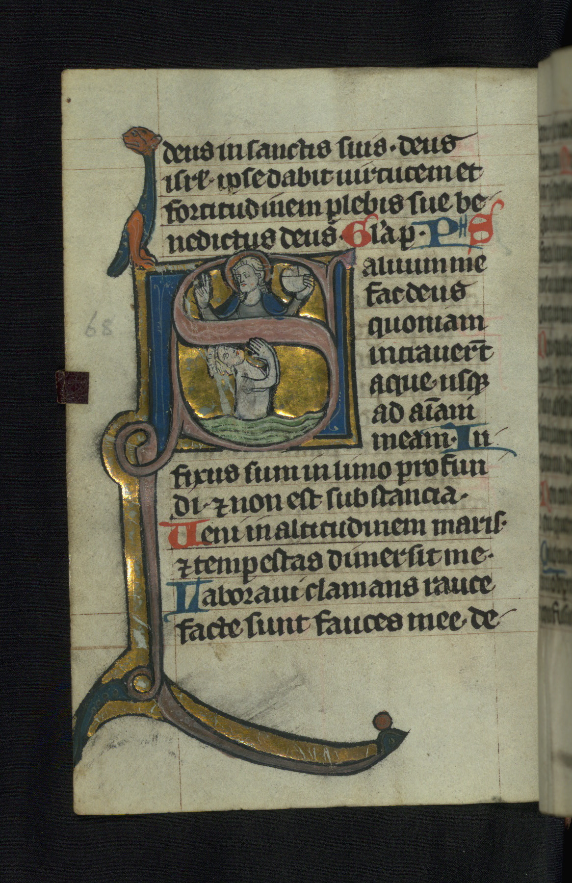 - Title: Initial "S" with Christ blessing and David in the sea