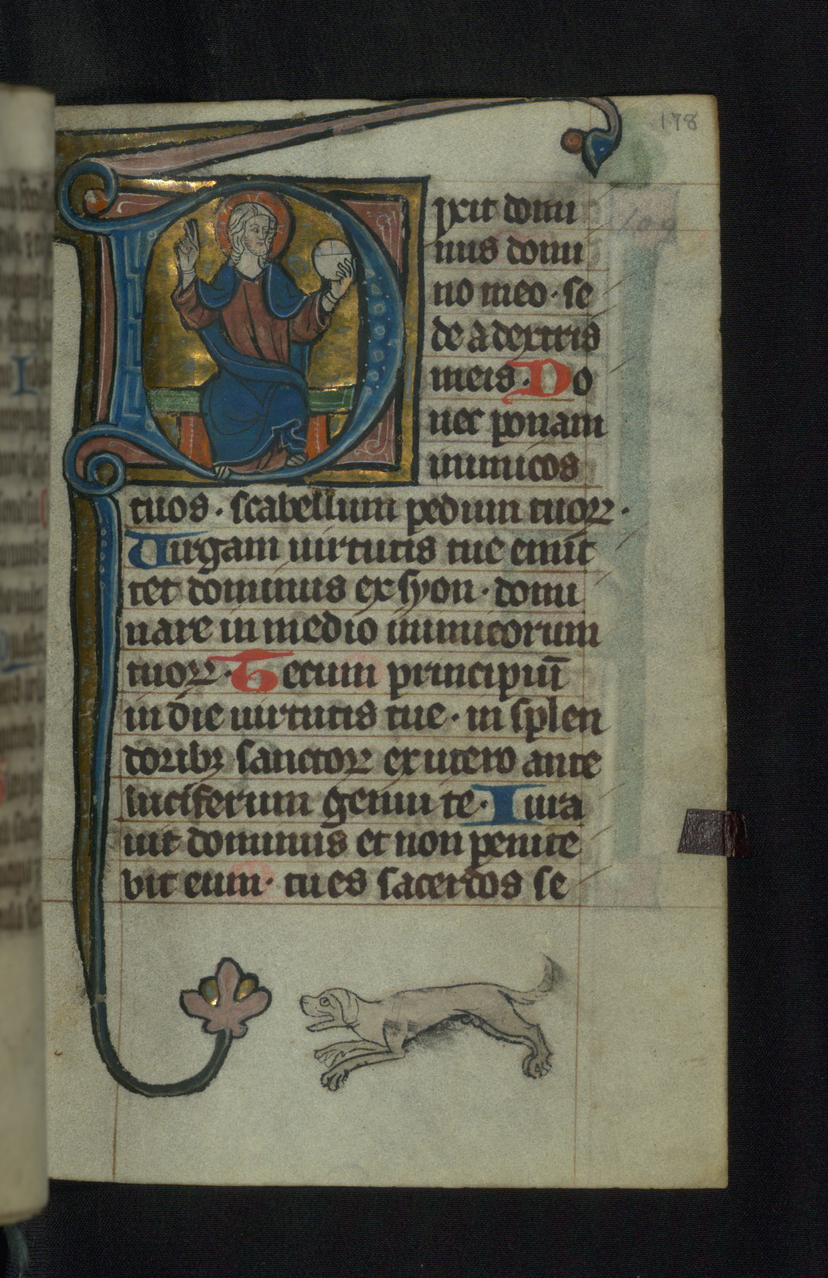 - Title: Initial "D" with Christ enthroned blessing