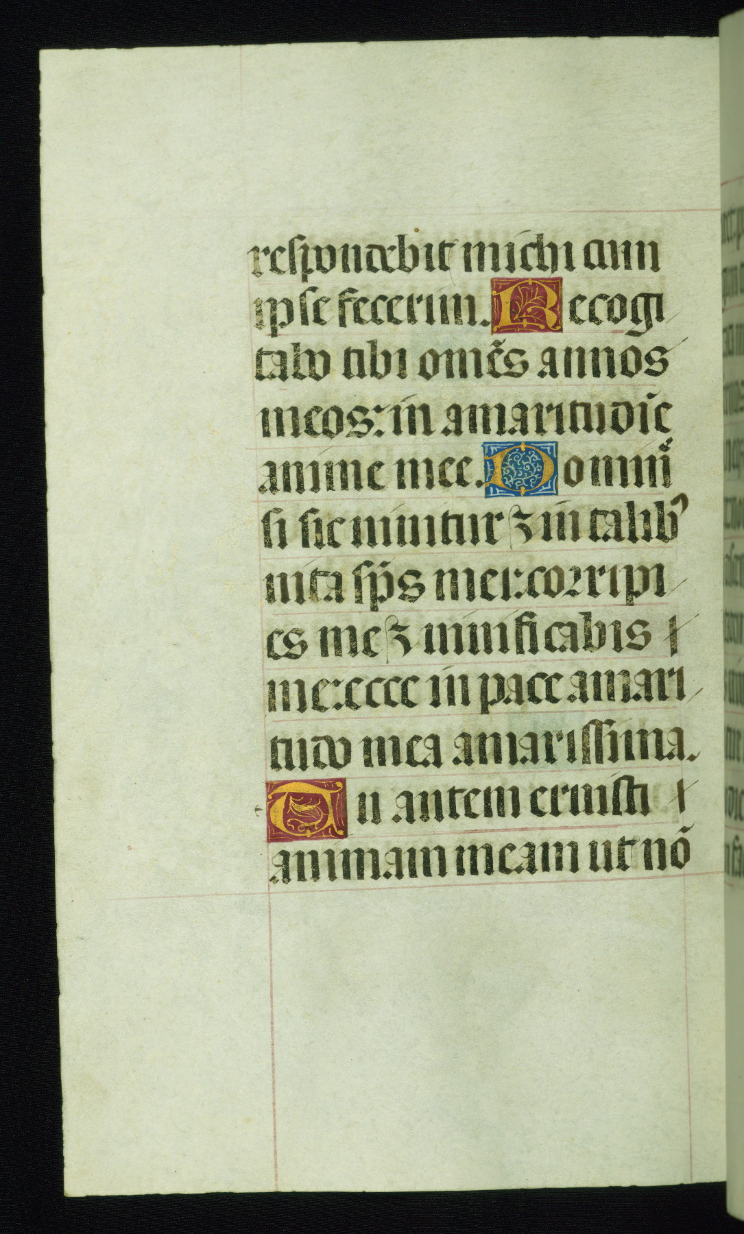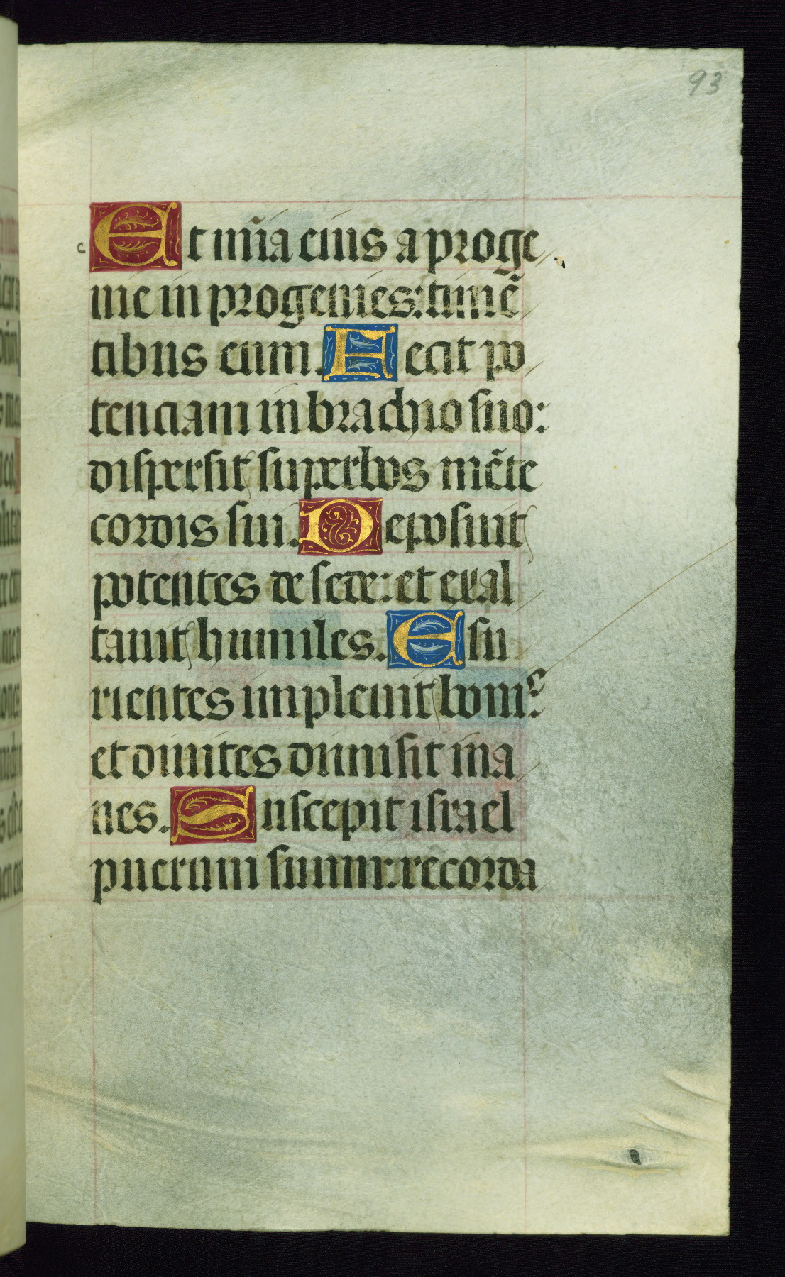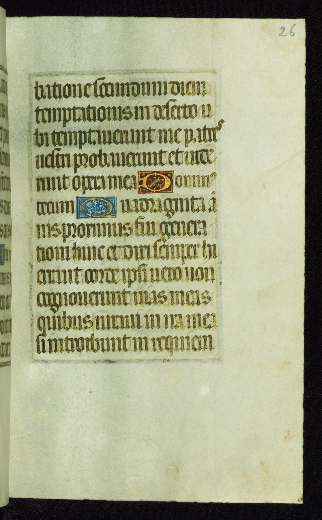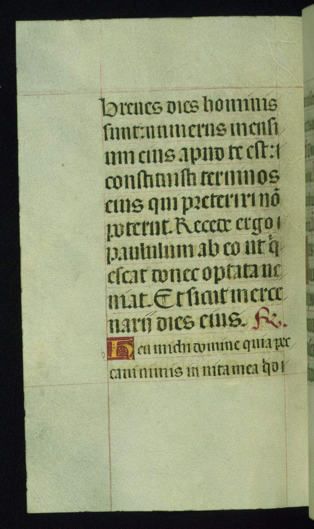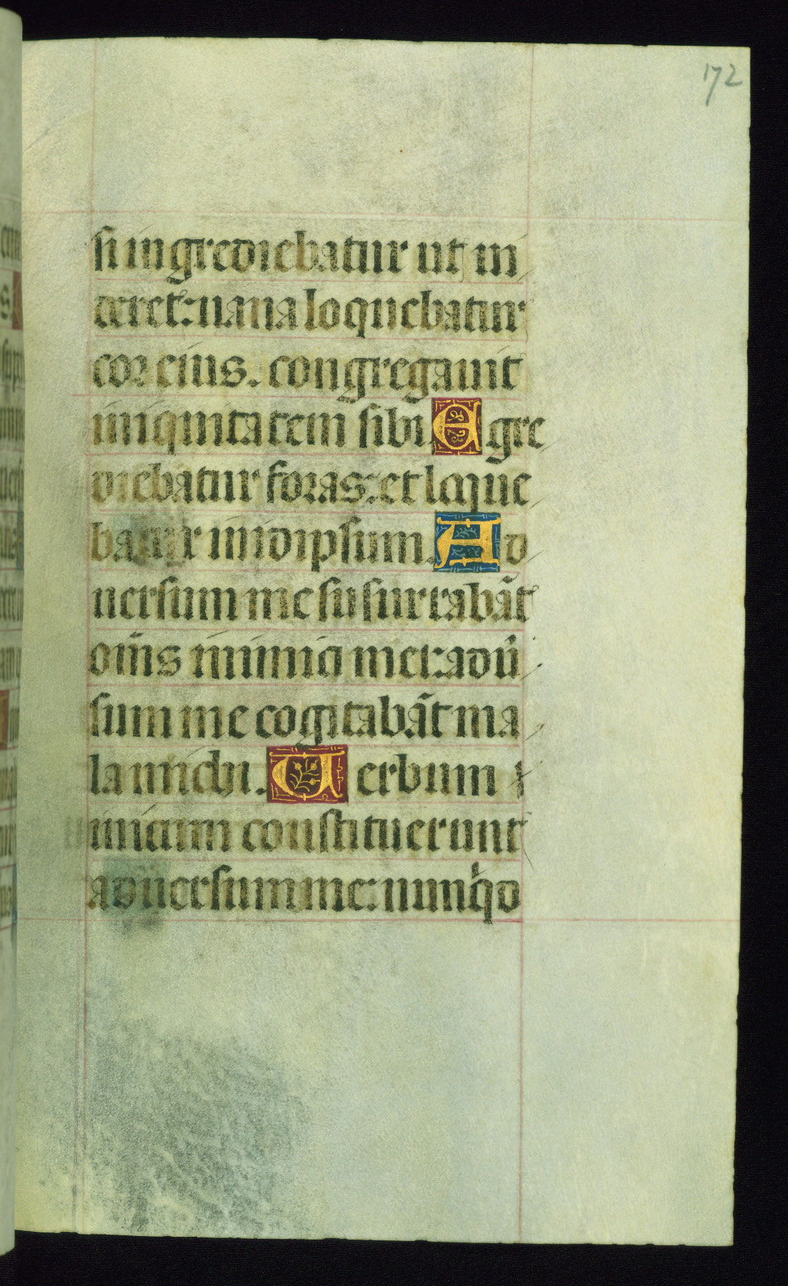 This book of hours was produced ca. 1510-1520 for a member of the Catalonian Almugavar (or AlmogĂ ver) family, whose coat of arms appears throughout the manuscript in the borders of the lavish full-page miniatures. There are twenty-six full-page polychrome miniatures (three are missing), of which six were removed from the original quire structure after portions of the miniatures were excised, and then returned to the manuscript, having been pasted onto heavy card-stock folios. There are also eighteen full-page incipits, of which three include historiated vignettes, and numerous folios with elaborate floral motif borders. A significant number of feast days associated with Barcelona help reinforce the Spanish attribution of the manuscript, although the style of the decoration is clearly influenced by contemporary Flemish design.