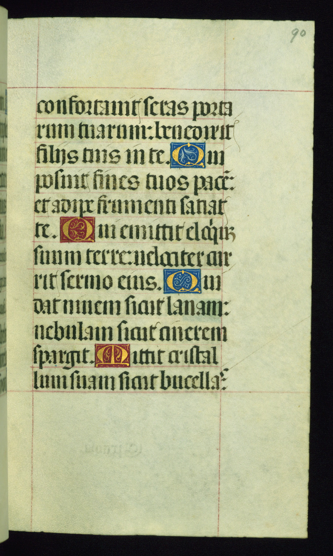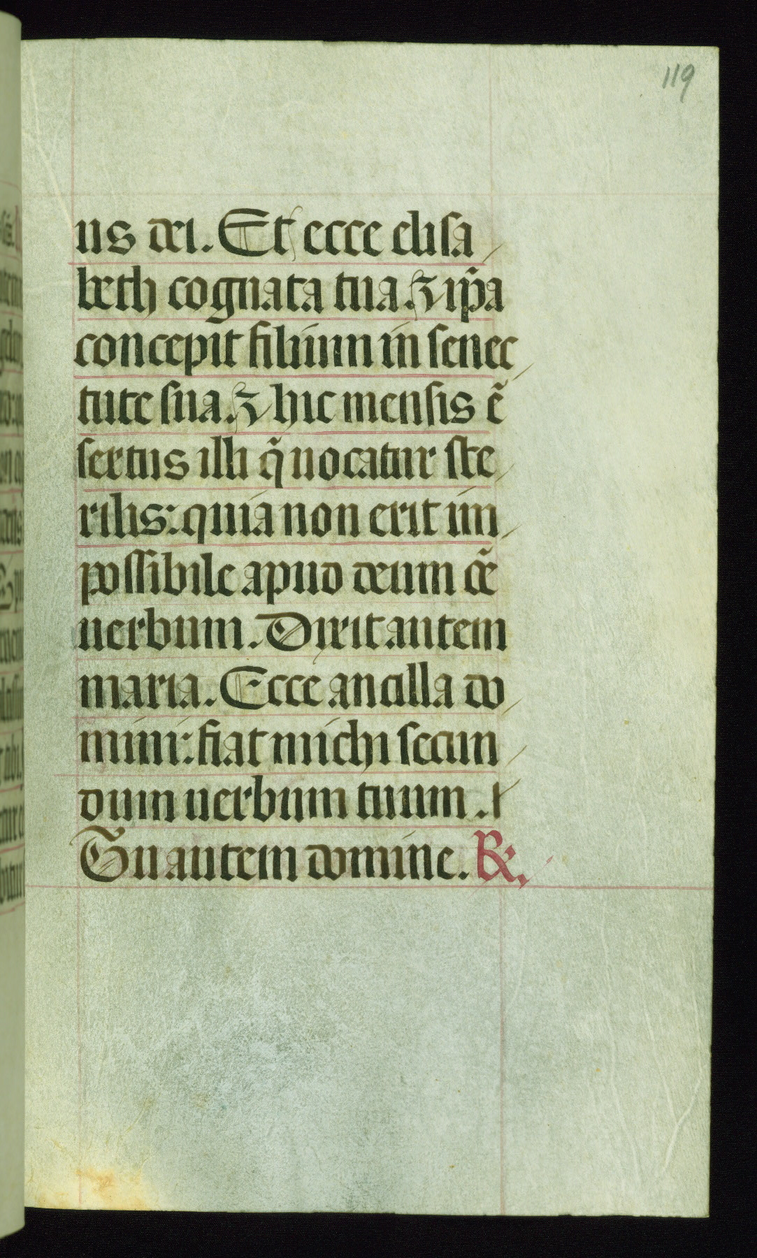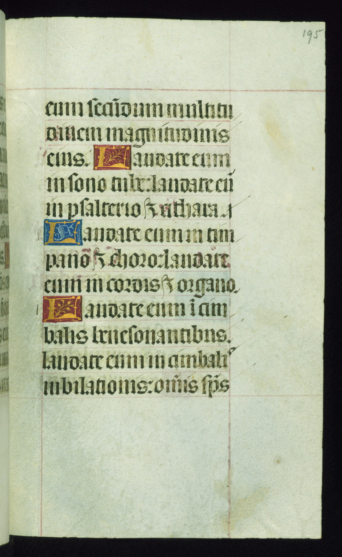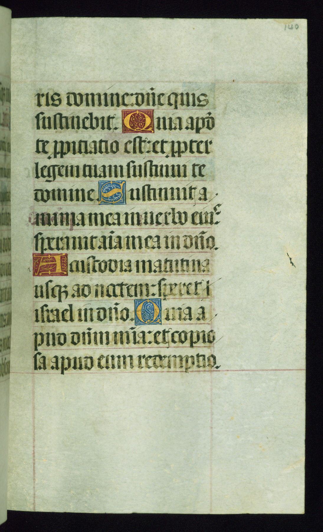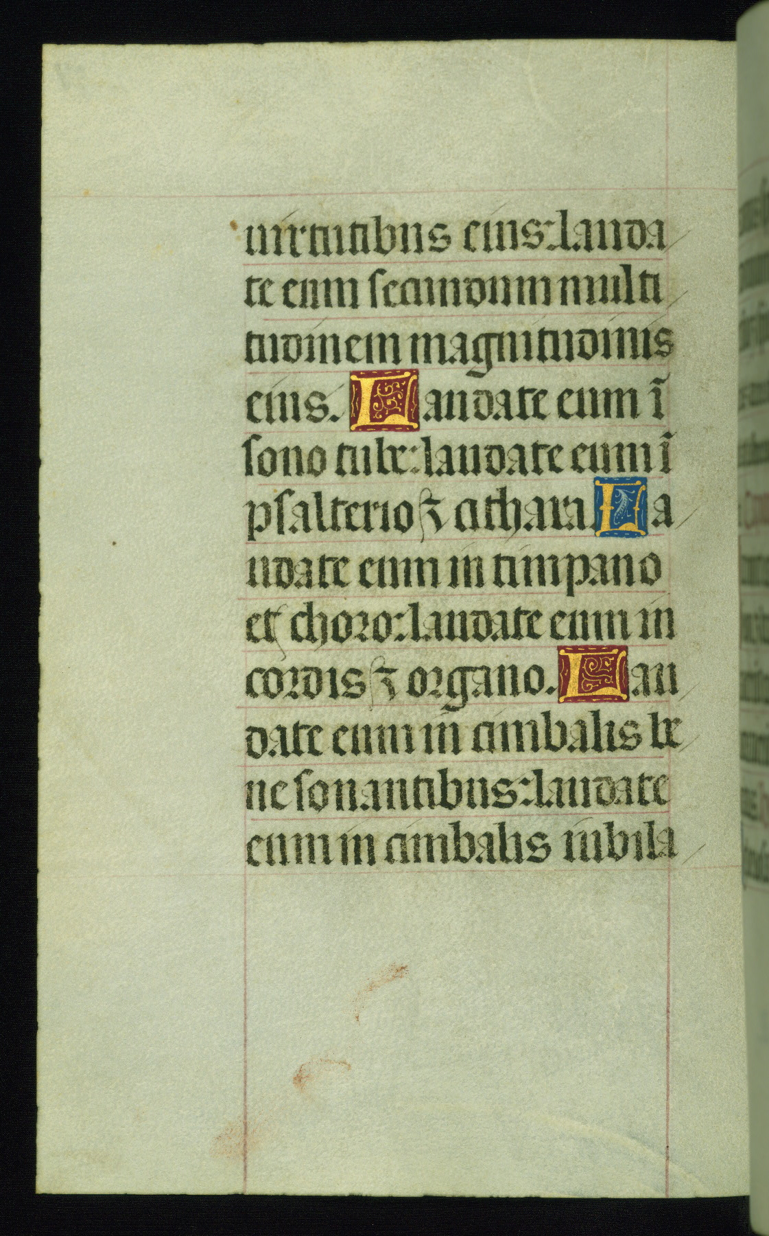 This book of hours was produced ca. 1510-1520 for a member of the Catalonian Almugavar (or AlmogĂ ver) family, whose coat of arms appears throughout the manuscript in the borders of the lavish full-page miniatures. There are twenty-six full-page polychrome miniatures (three are missing), of which six were removed from the original quire structure after portions of the miniatures were excised, and then returned to the manuscript, having been pasted onto heavy card-stock folios. There are also eighteen full-page incipits, of which three include historiated vignettes, and numerous folios with elaborate floral motif borders. A significant number of feast days associated with Barcelona help reinforce the Spanish attribution of the manuscript, although the style of the decoration is clearly influenced by contemporary Flemish design.
