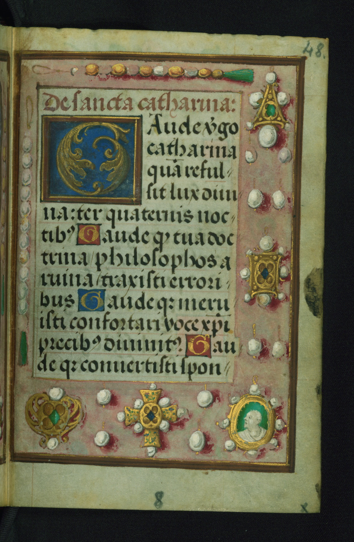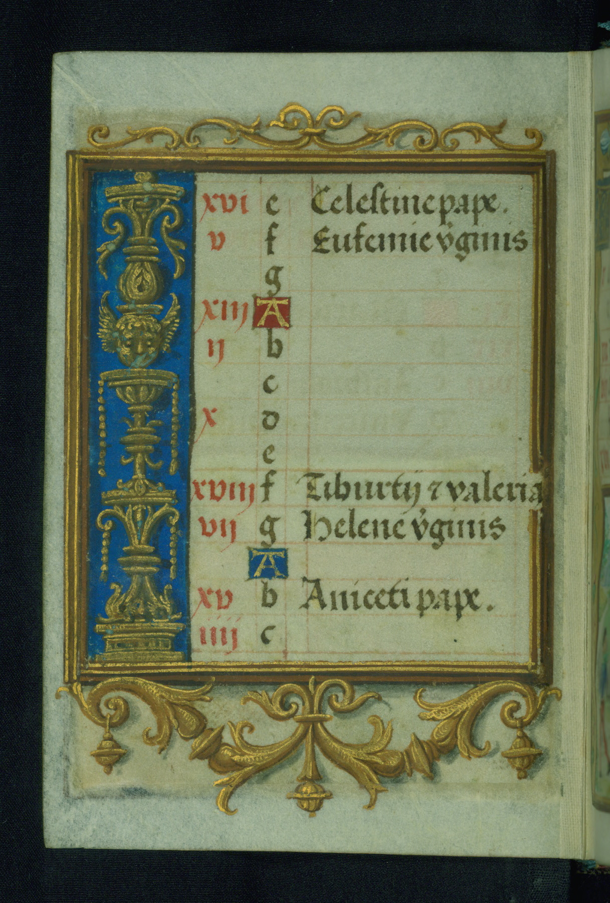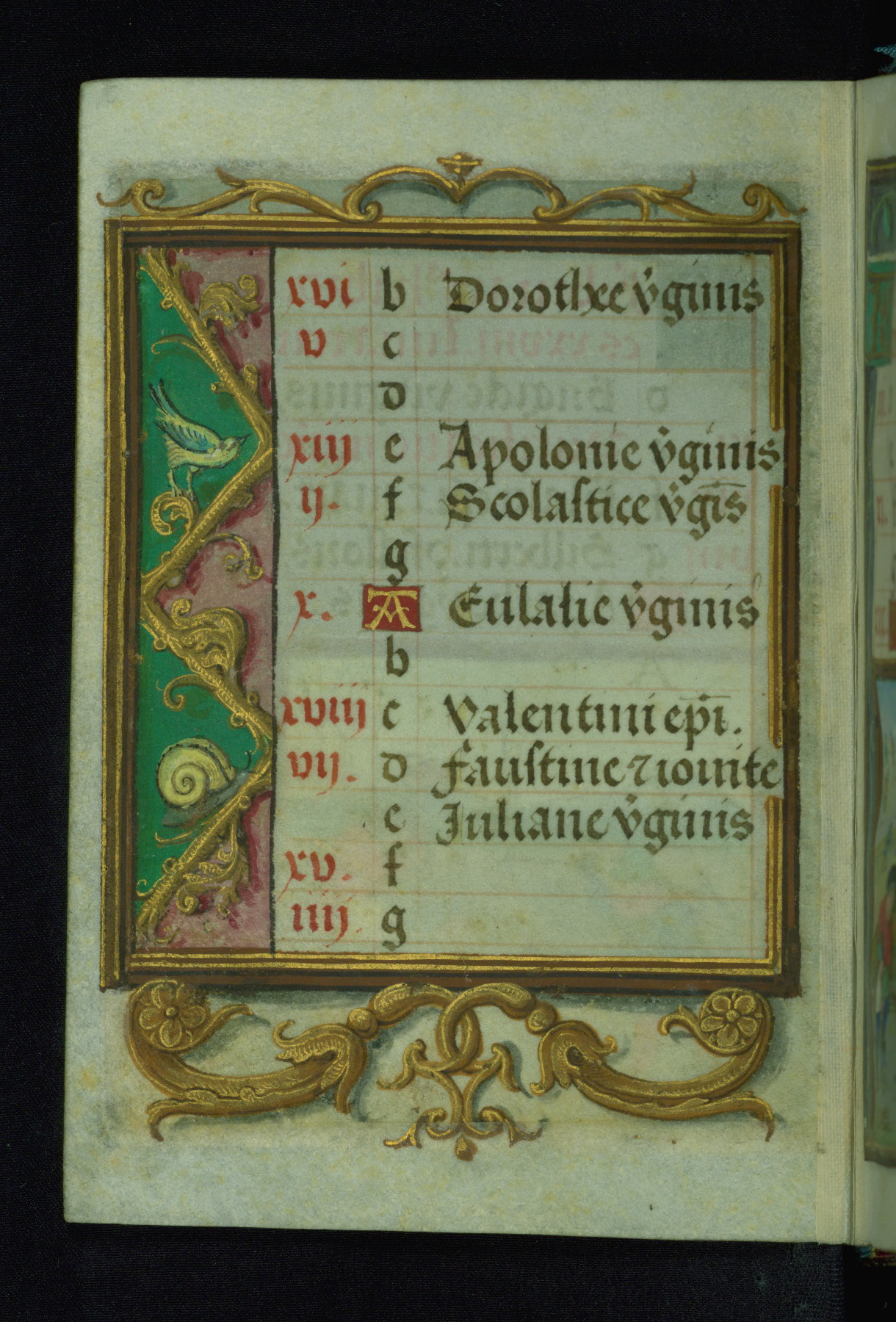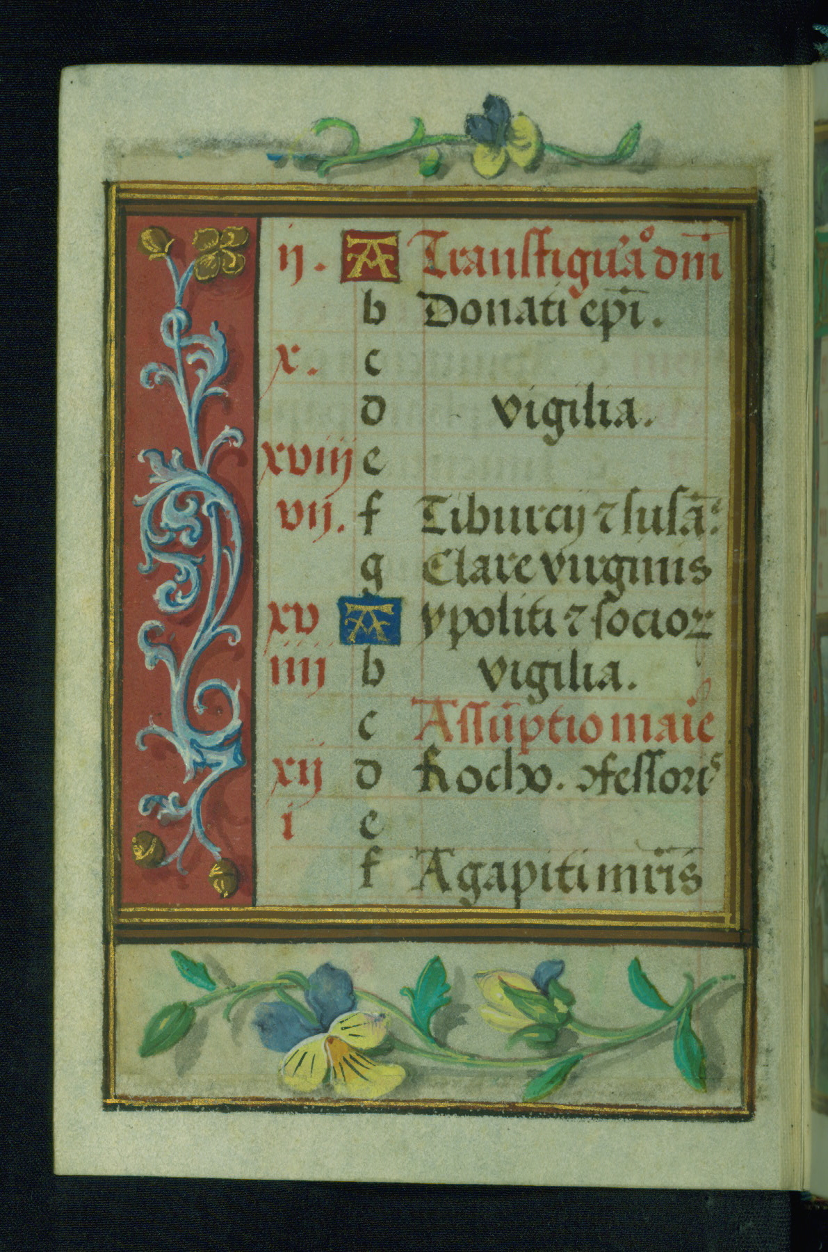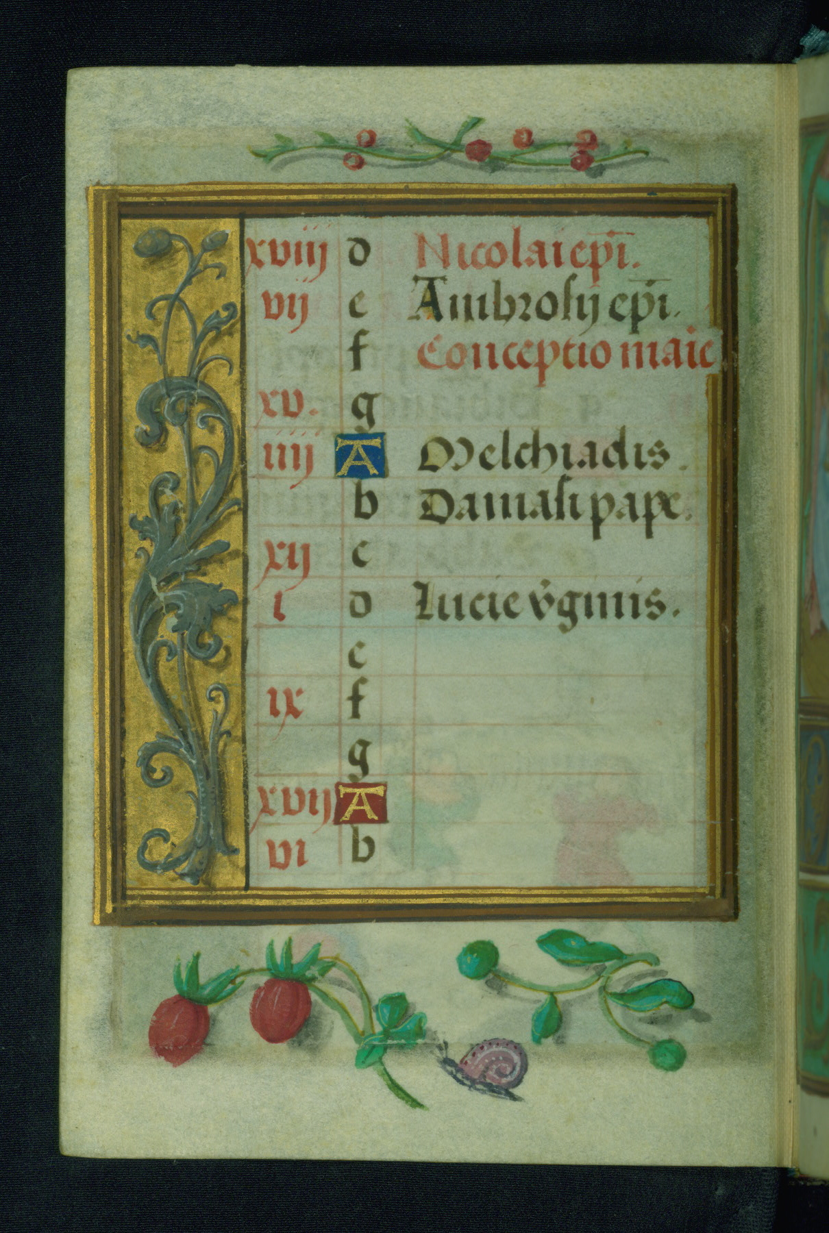 This Prayer Book was created ca. 1520-30, likely in Brussels, in the style of the Master of Charles V. It consists entirely of single folios that were added in or moved around in the book, rendering collation unfeasible. Many of intricate and high-quality miniatures were reproduced through chromolithography by Léon Gruel in his Petites Heures, published in Paris in 1875. The calendar is especially charming and features seasonally relevant illustrations, such as children having a snowball fight in December. The suffrages contain detailed and illusionistic figures, including one for St. Elizabeth of Hungary. The contents of the calendar suggest a Franciscan affinity.