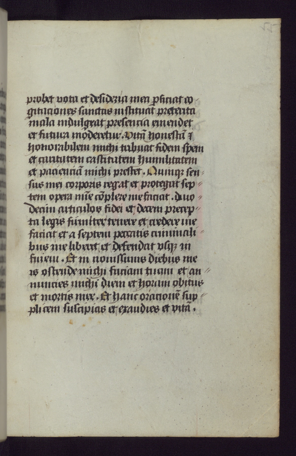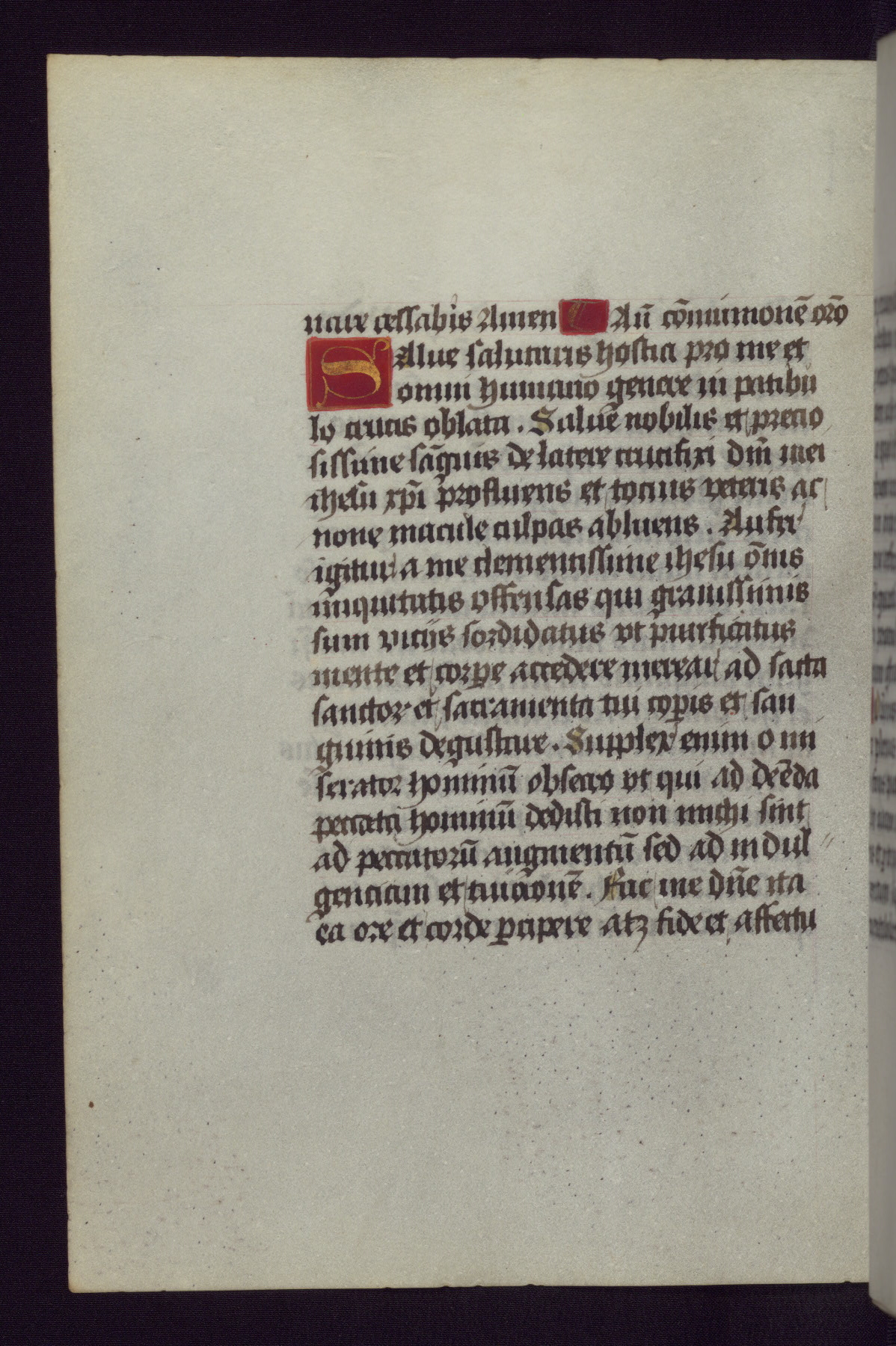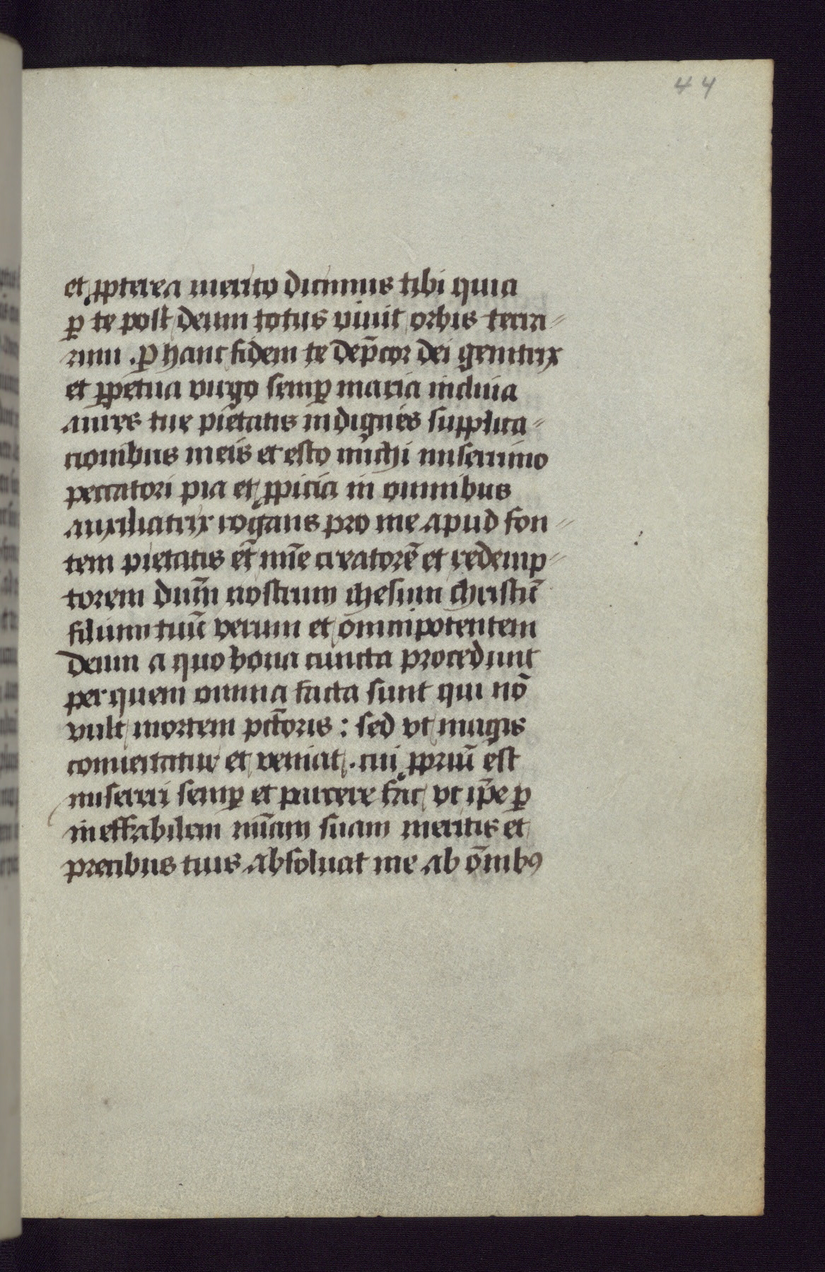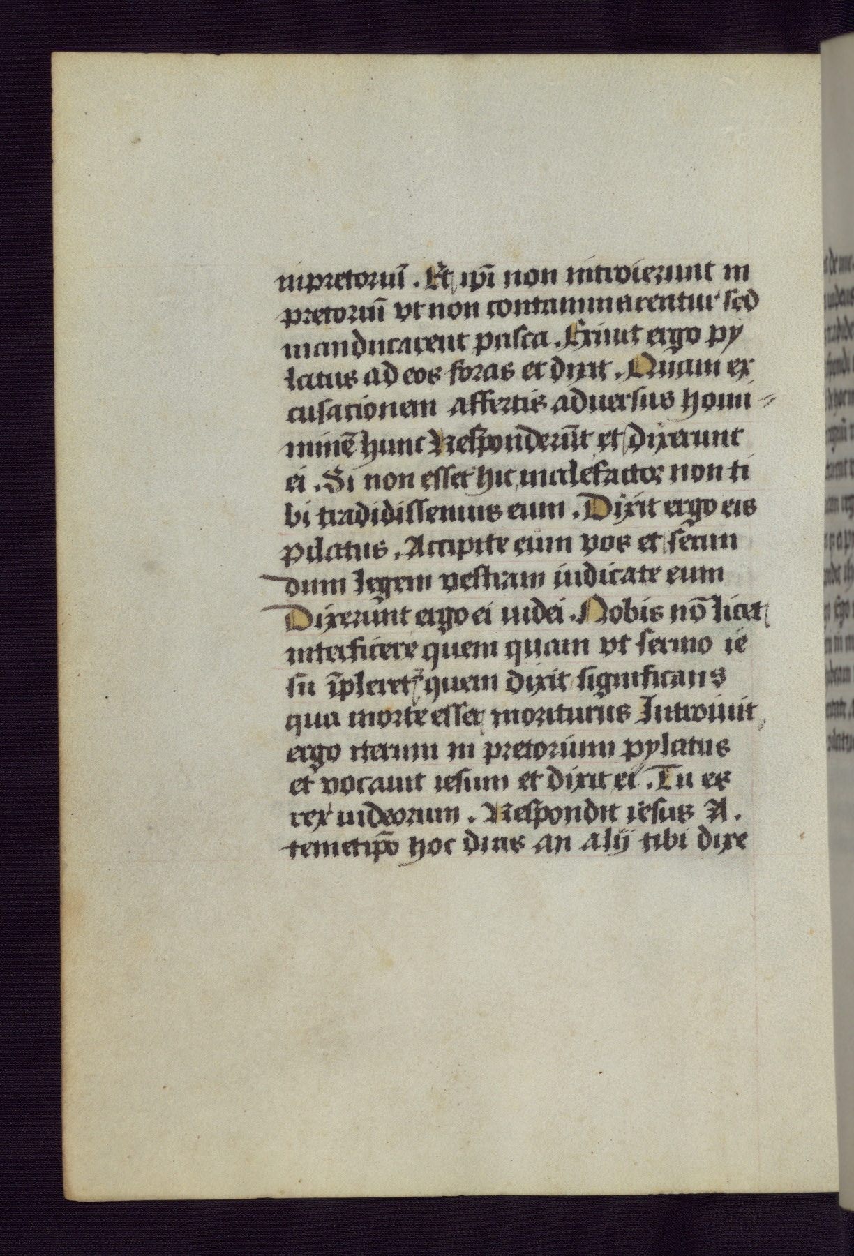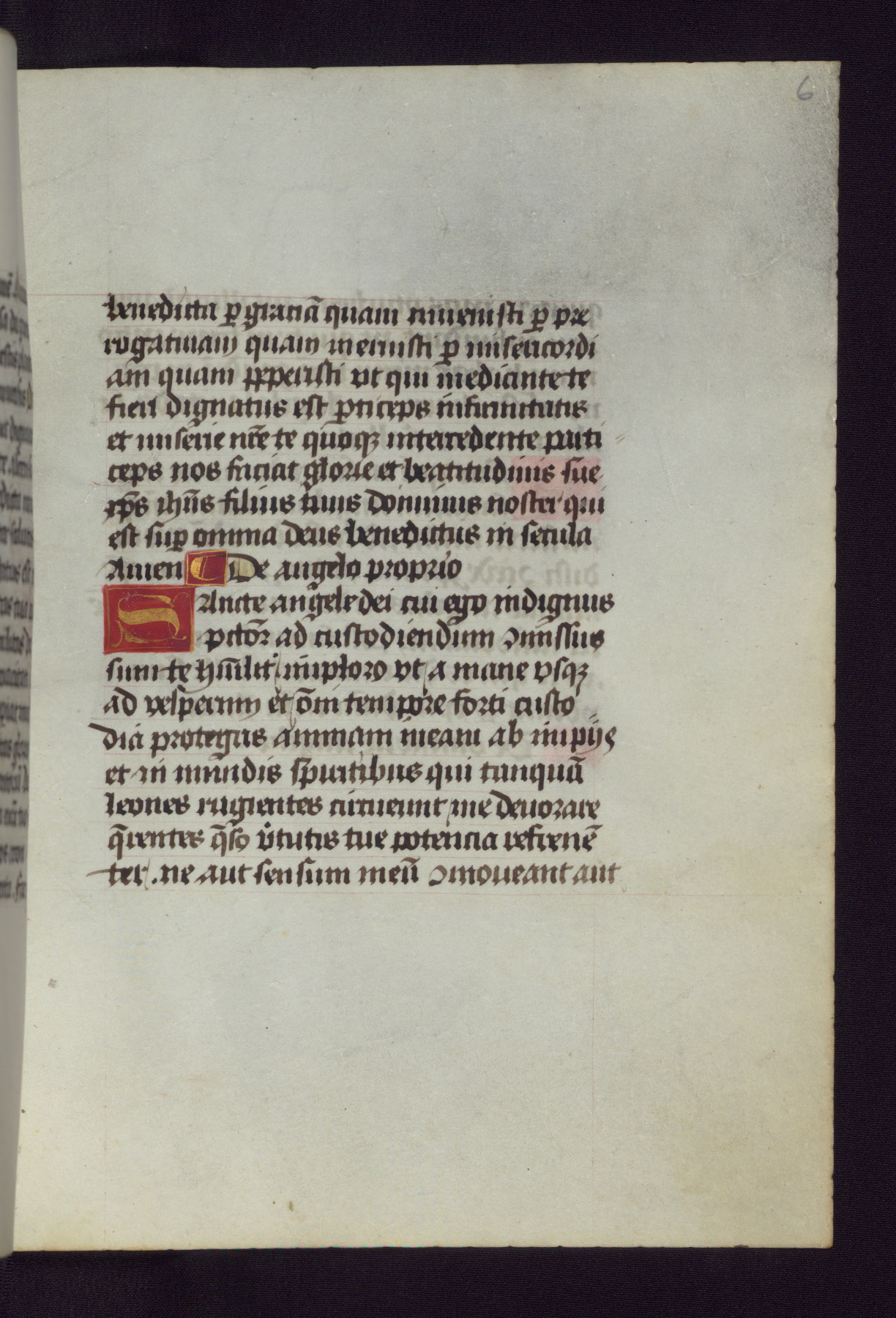 This early sixteenth-century illuminated prayer book contains Latin prayers and passages from the Gospels. Although small in scale, it is notable for its abundance of illuminations, with nearly sixty extant small miniatures. Full-color portraits embellish the prayers to the Virgin and Suffrages, while the images within the Gospel narrative are rendered primarily in grisaille, a nearly entirely gray monochrome technique. The last folios include a trompe-l'oeil foliate margin and a Crucifixion that seems to be a later addition. Throughout the book gold initials on red or blue grounds mark the beginning of the prayers.