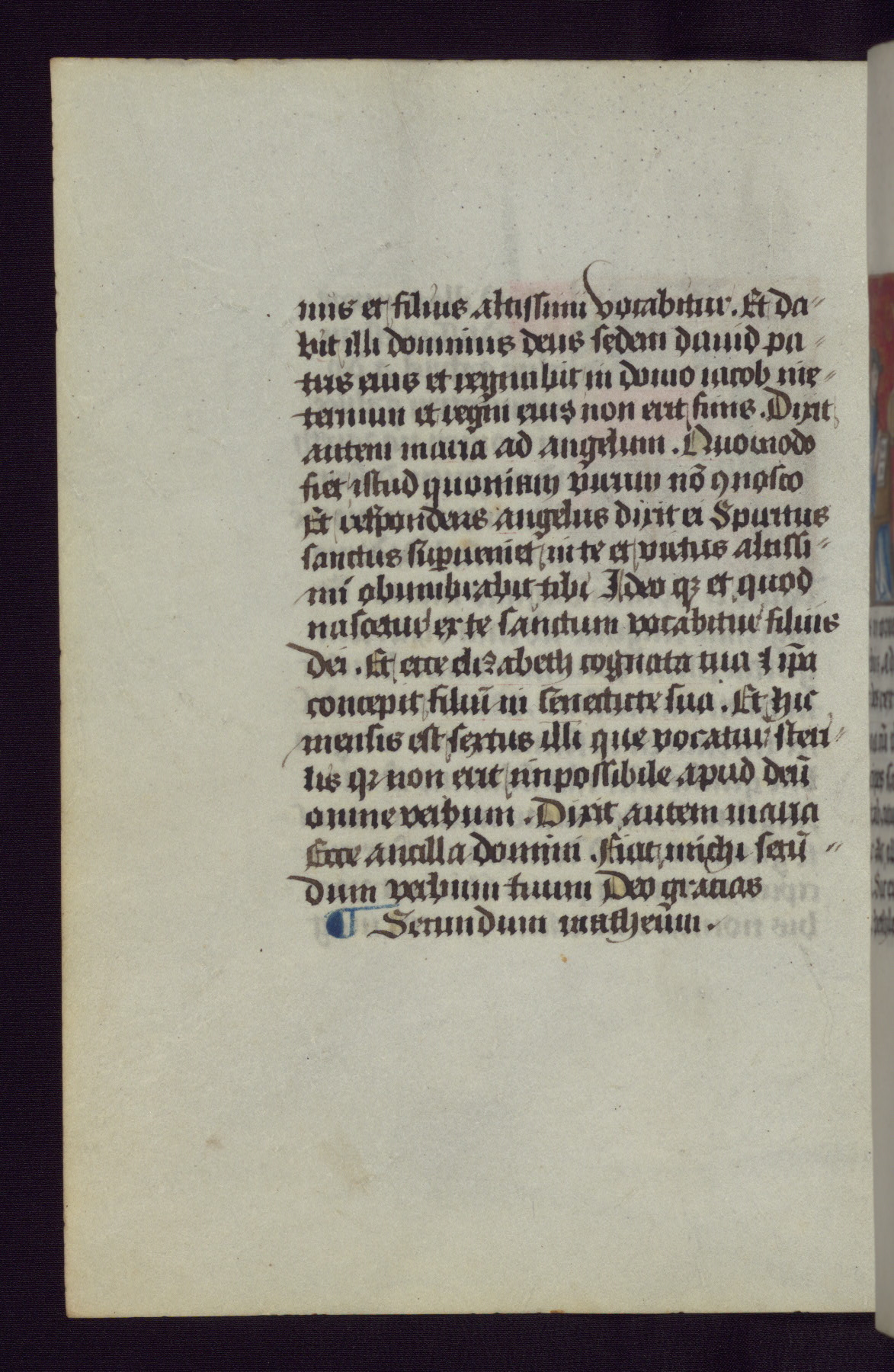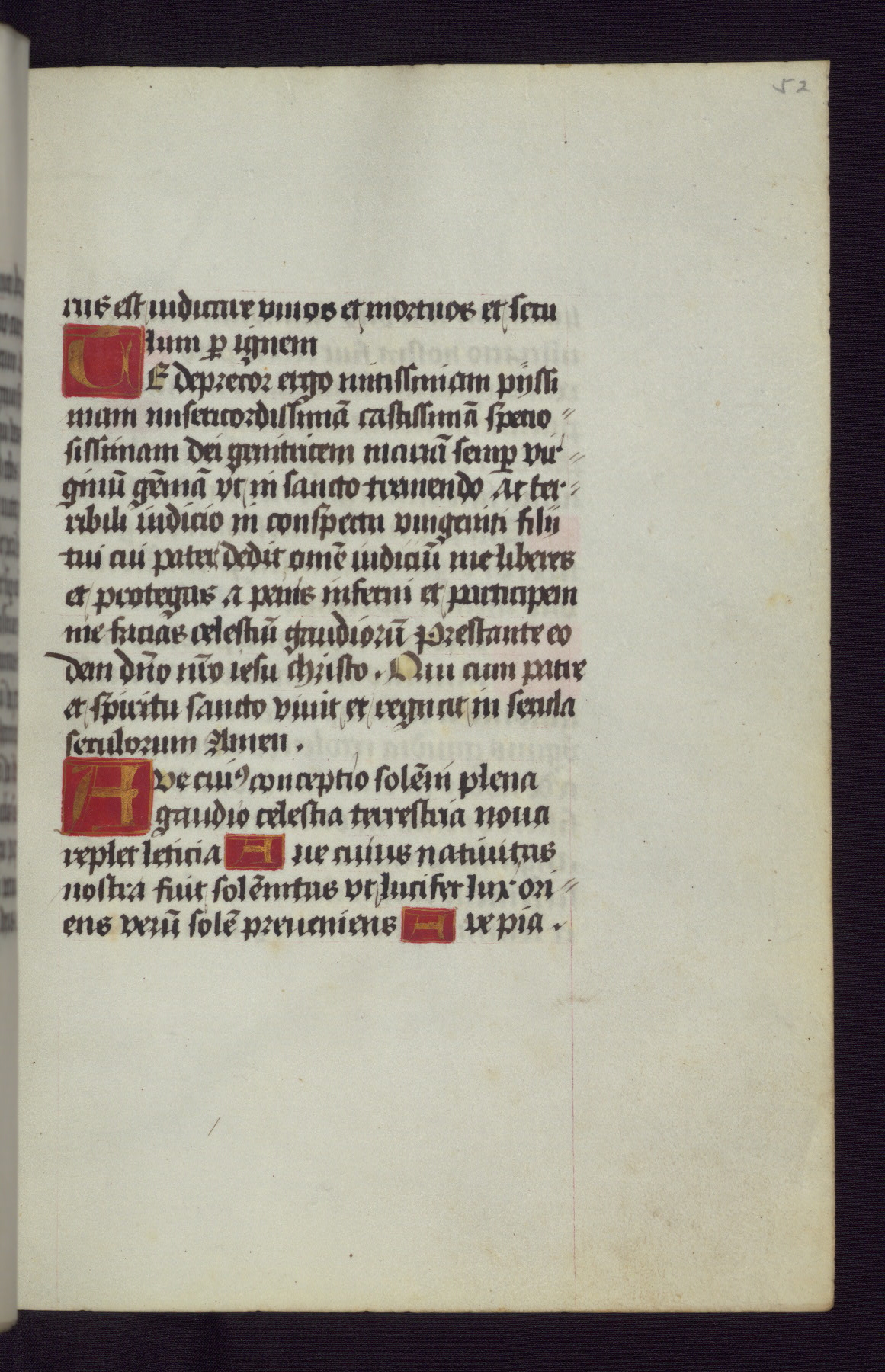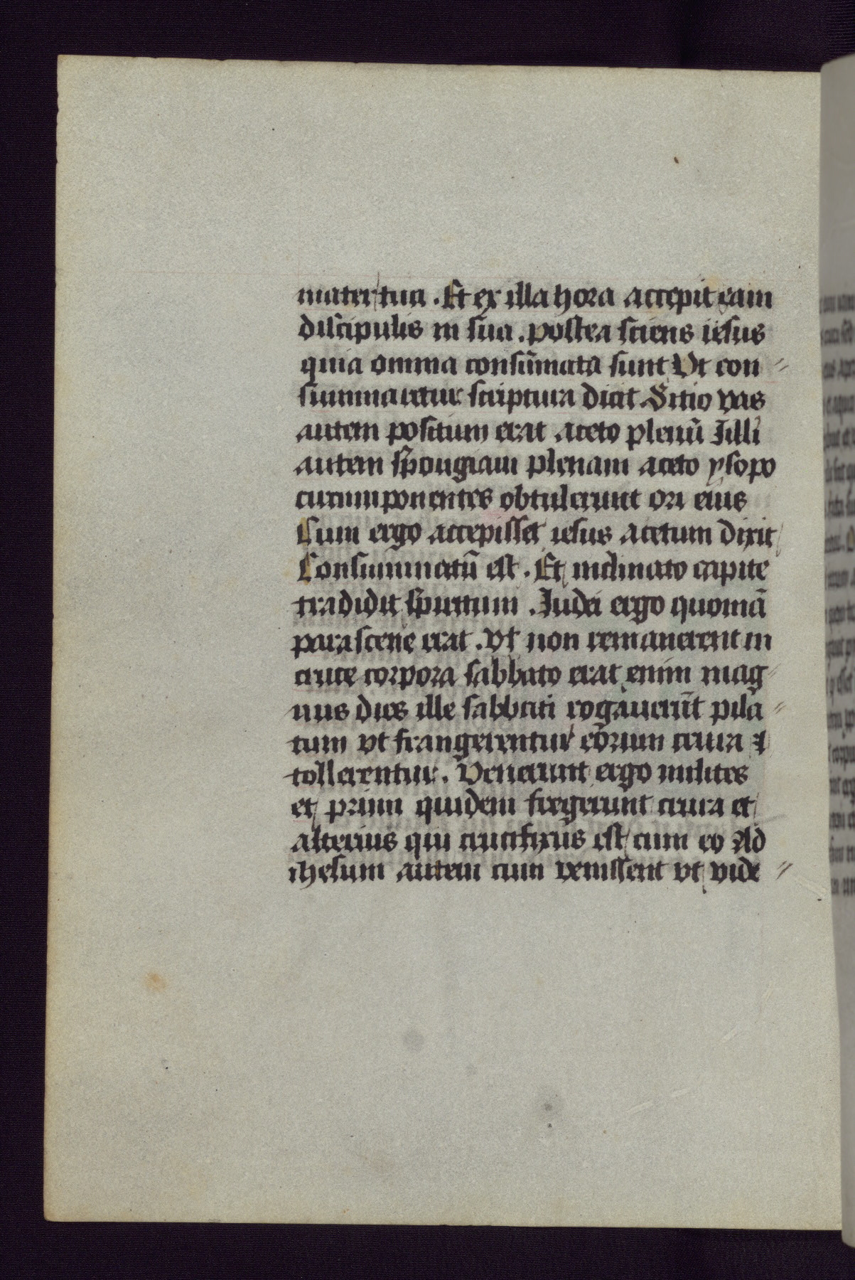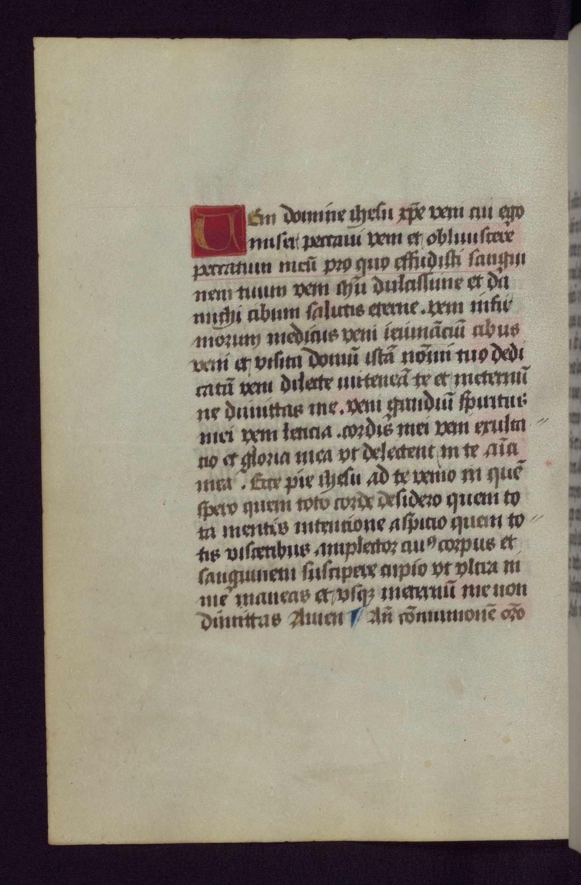 This early sixteenth-century illuminated prayer book contains Latin prayers and passages from the Gospels. Although small in scale, it is notable for its abundance of illuminations, with nearly sixty extant small miniatures. Full-color portraits embellish the prayers to the Virgin and Suffrages, while the images within the Gospel narrative are rendered primarily in grisaille, a nearly entirely gray monochrome technique. The last folios include a trompe-l'oeil foliate margin and a Crucifixion that seems to be a later addition. Throughout the book gold initials on red or blue grounds mark the beginning of the prayers.