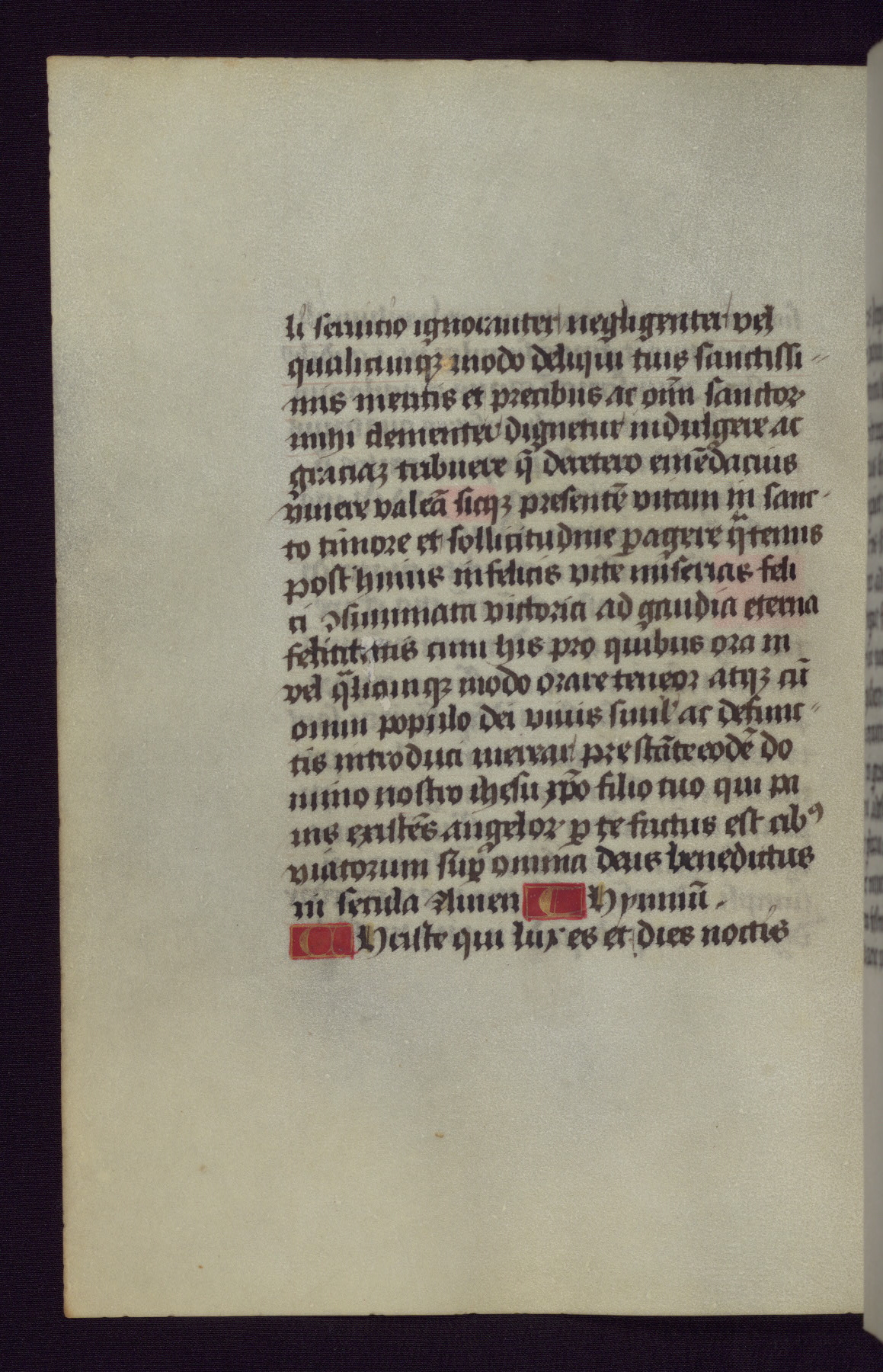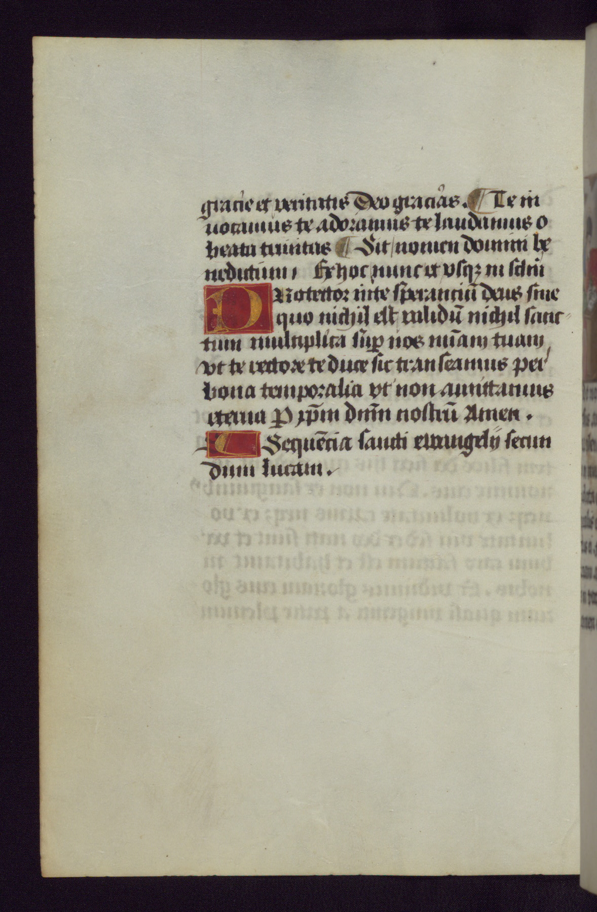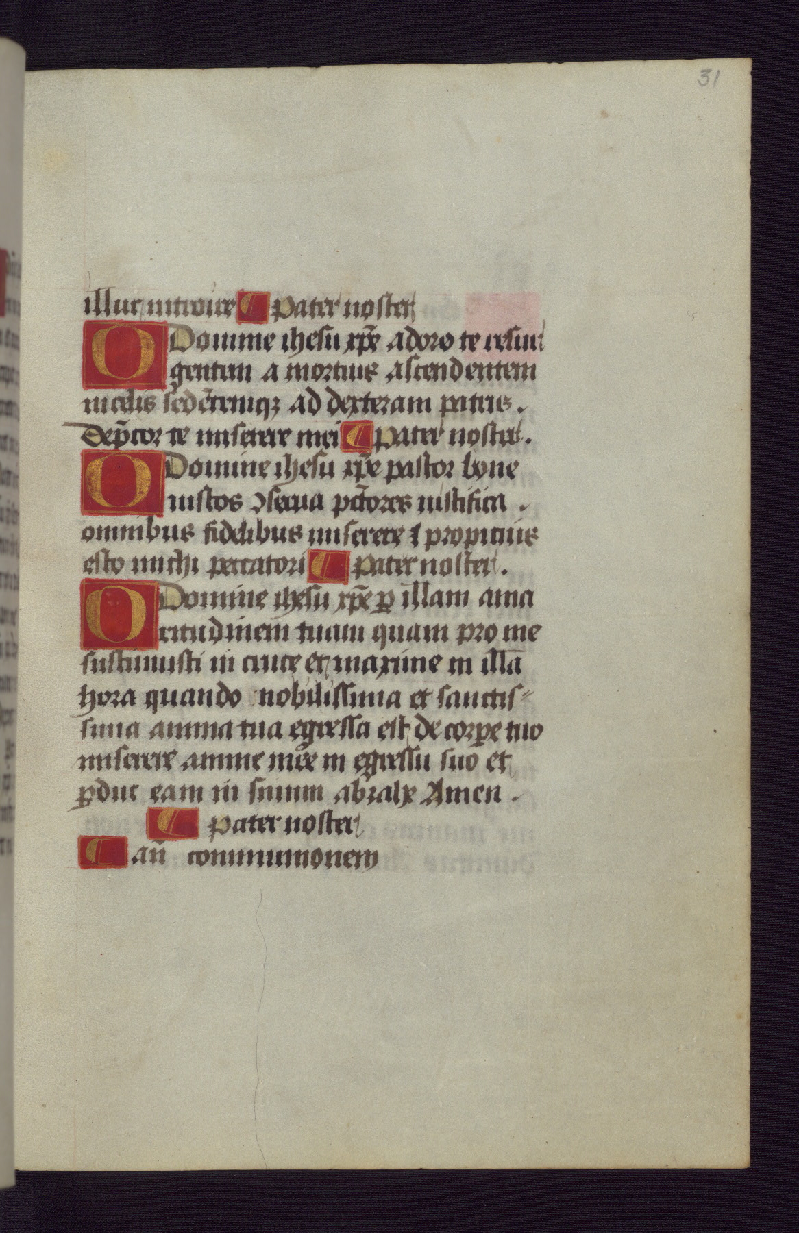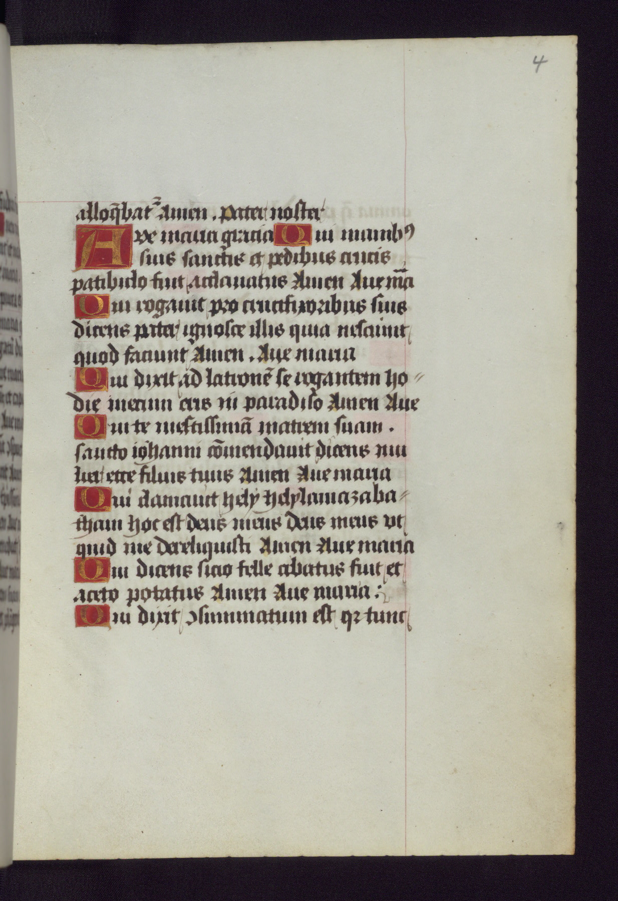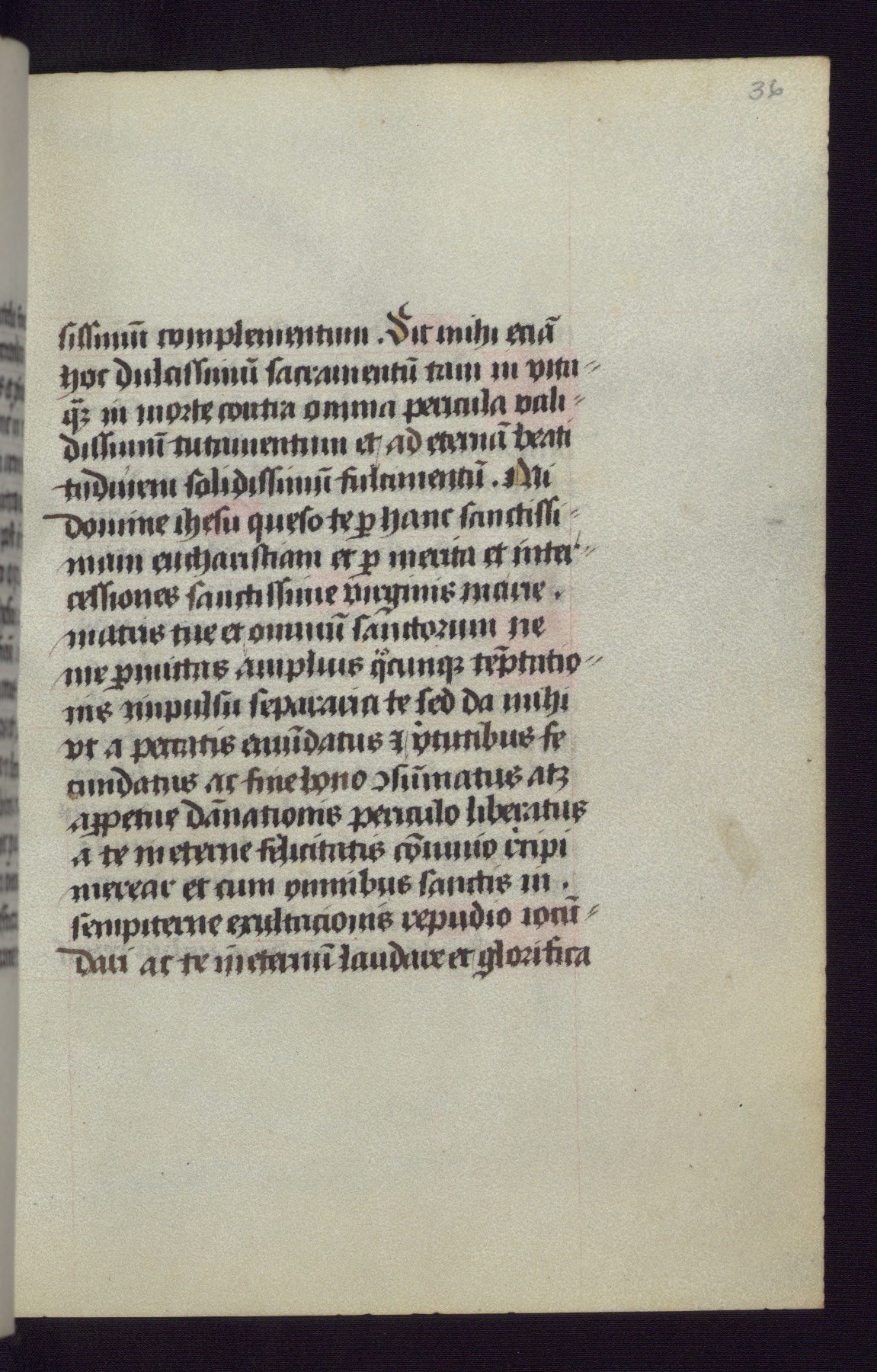 This early sixteenth-century illuminated prayer book contains Latin prayers and passages from the Gospels. Although small in scale, it is notable for its abundance of illuminations, with nearly sixty extant small miniatures. Full-color portraits embellish the prayers to the Virgin and Suffrages, while the images within the Gospel narrative are rendered primarily in grisaille, a nearly entirely gray monochrome technique. The last folios include a trompe-l'oeil foliate margin and a Crucifixion that seems to be a later addition. Throughout the book gold initials on red or blue grounds mark the beginning of the prayers.