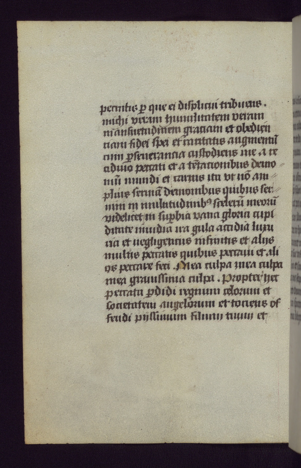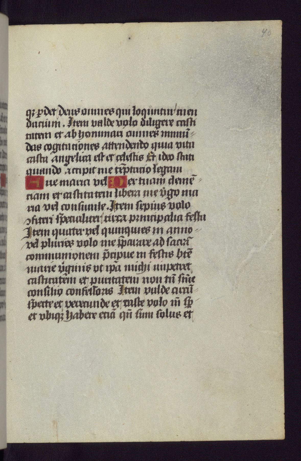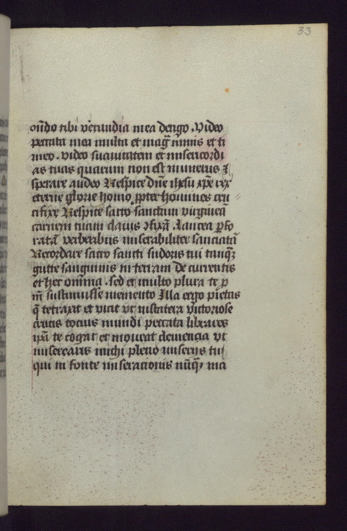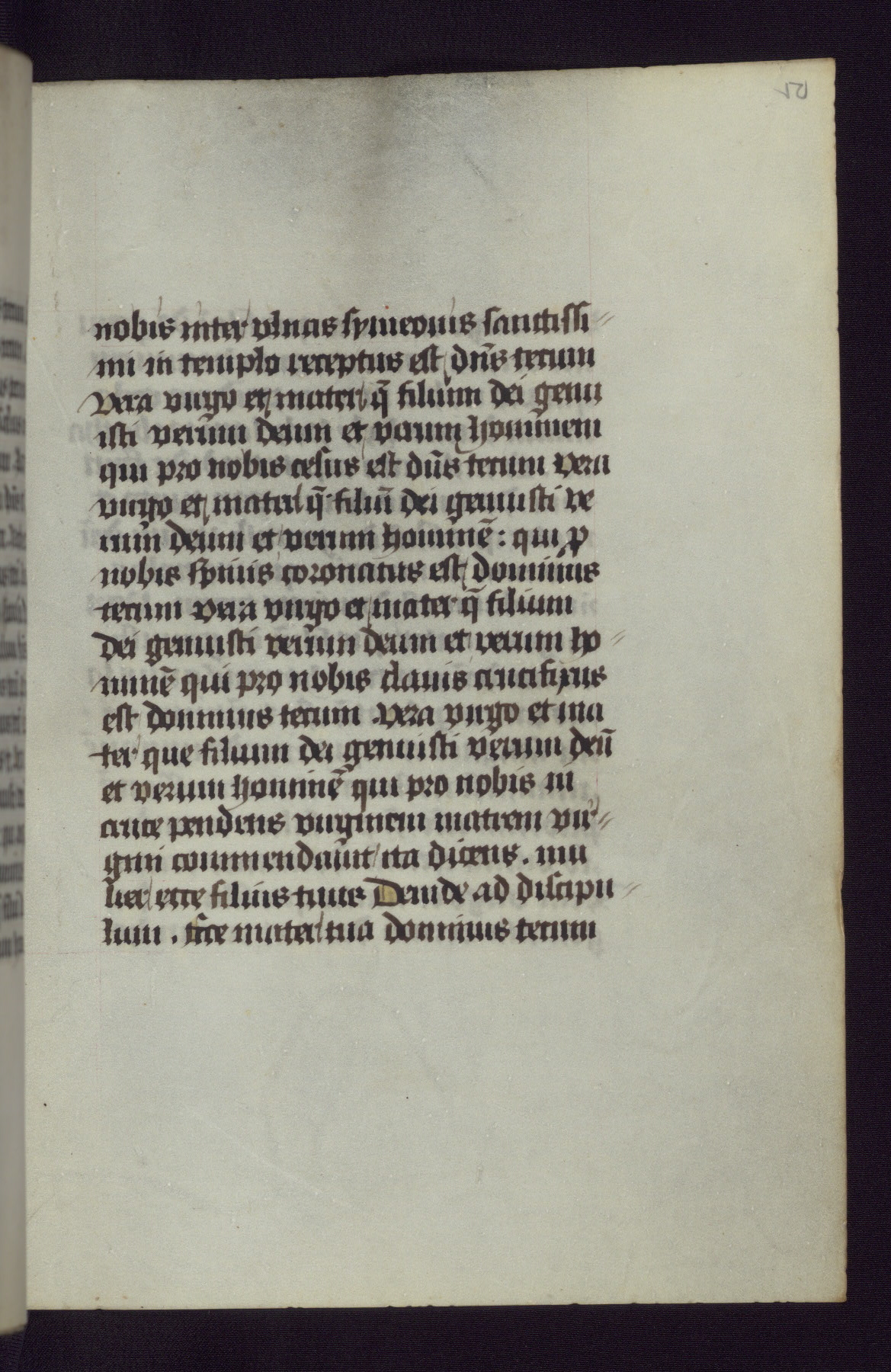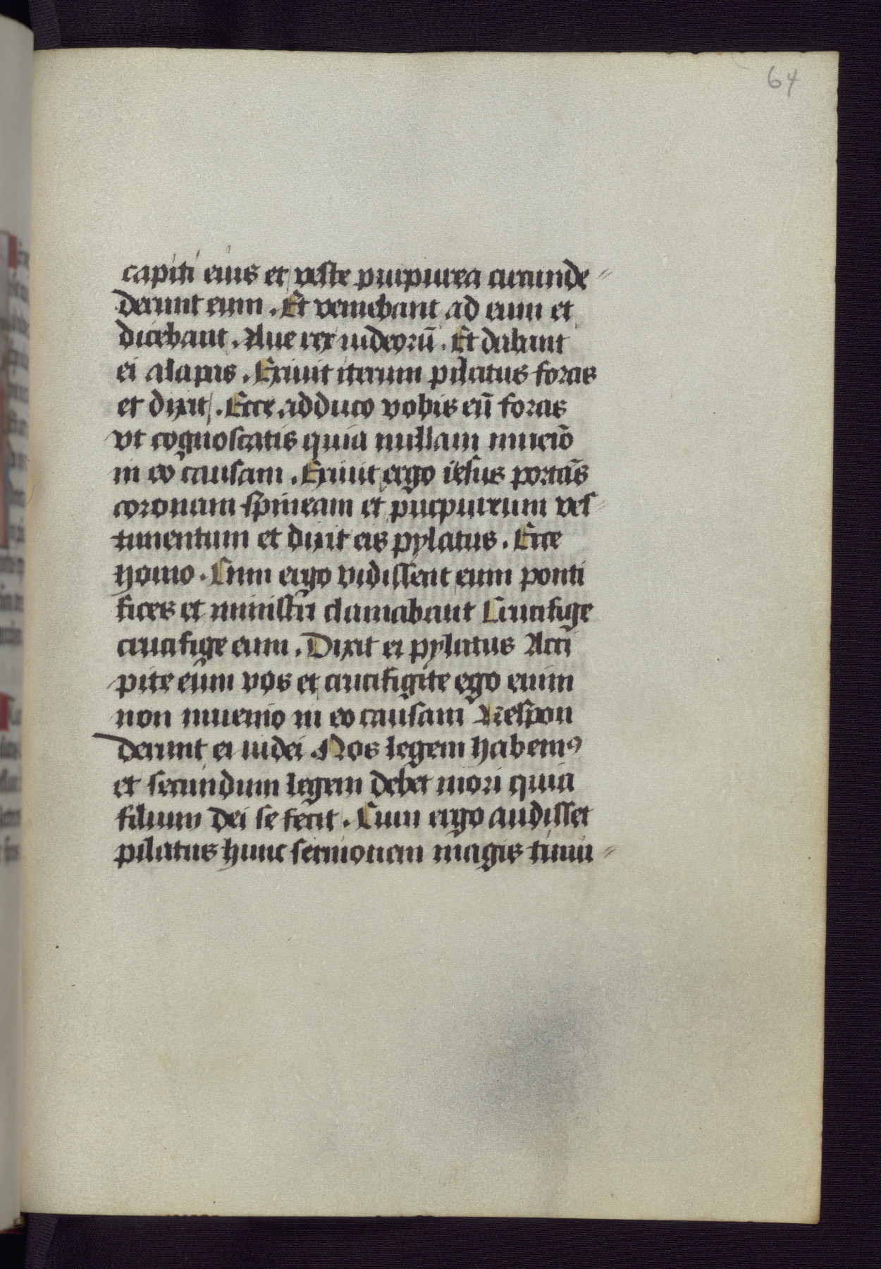 This early sixteenth-century illuminated prayer book contains Latin prayers and passages from the Gospels. Although small in scale, it is notable for its abundance of illuminations, with nearly sixty extant small miniatures. Full-color portraits embellish the prayers to the Virgin and Suffrages, while the images within the Gospel narrative are rendered primarily in grisaille, a nearly entirely gray monochrome technique. The last folios include a trompe-l'oeil foliate margin and a Crucifixion that seems to be a later addition. Throughout the book gold initials on red or blue grounds mark the beginning of the prayers.