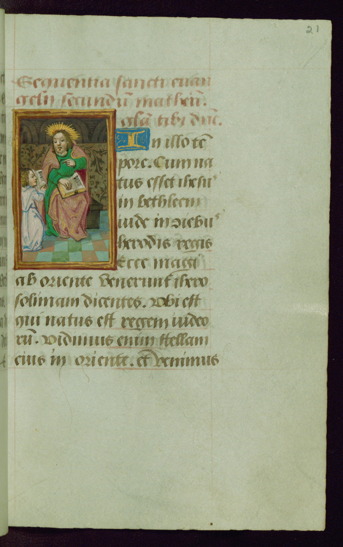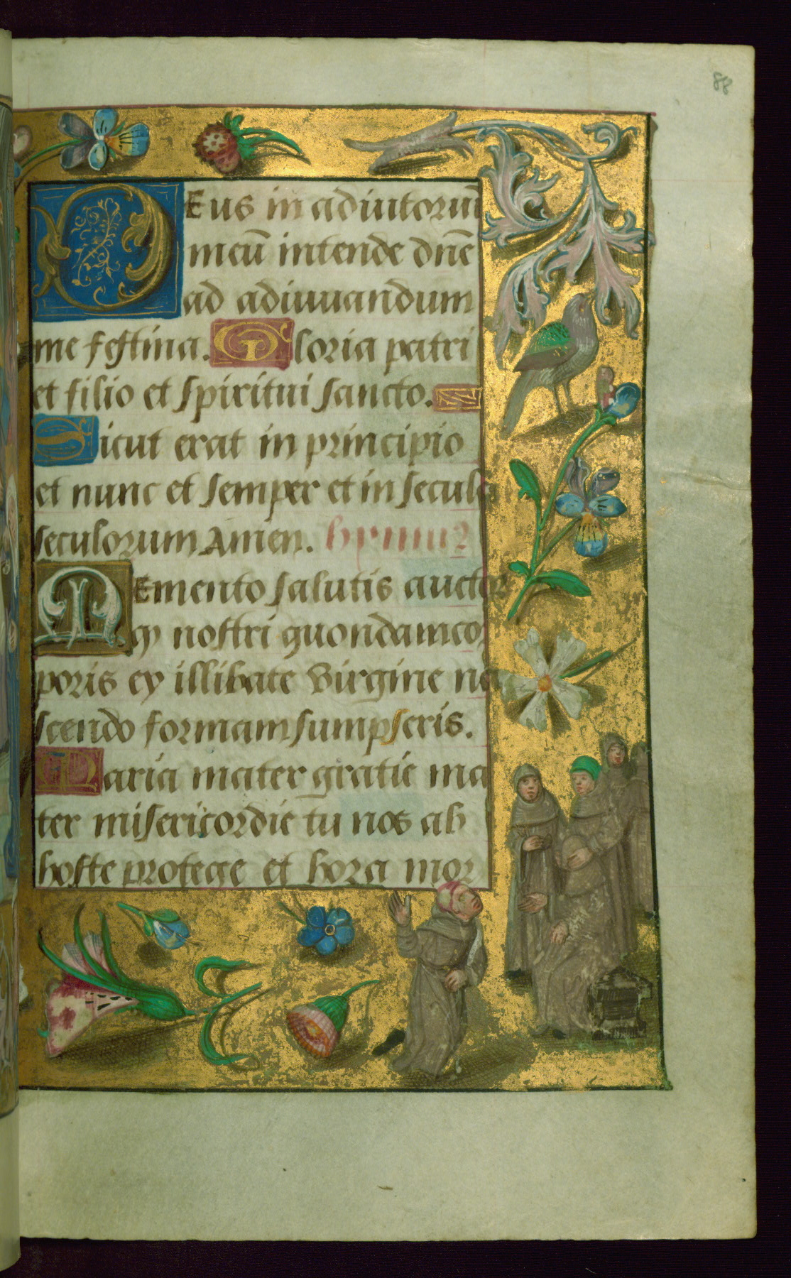 - Contents: Hours of the Virgin, for the use of Rome; headings for two canonical hours, namely Prime and Terce