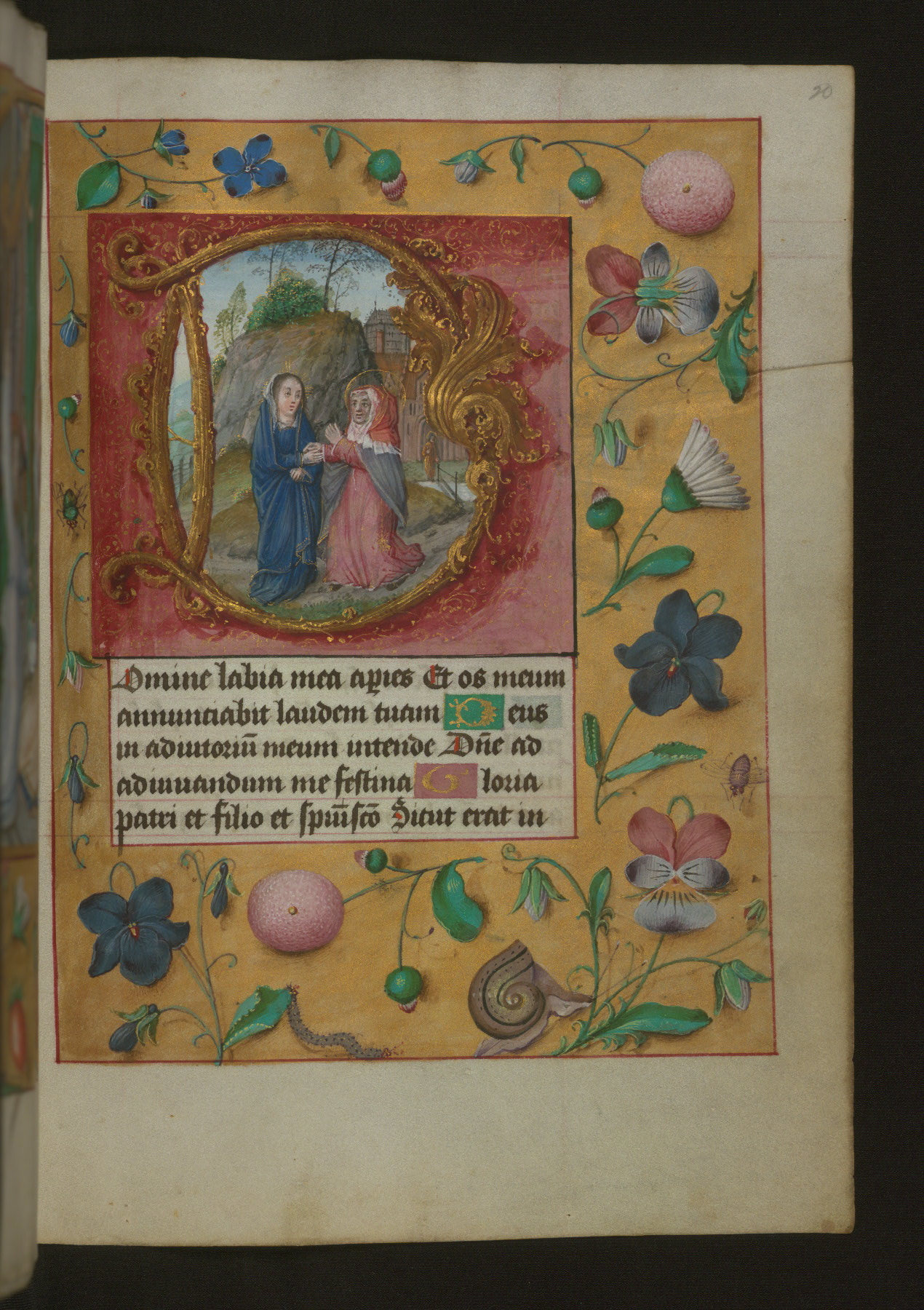 - Title: Foliate initial "O" with marginal flowers and insects
