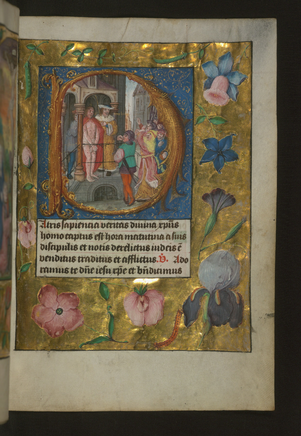 - Title: Pontius Pilate presents the scourged Christ to the crowd, with gold and floral margins