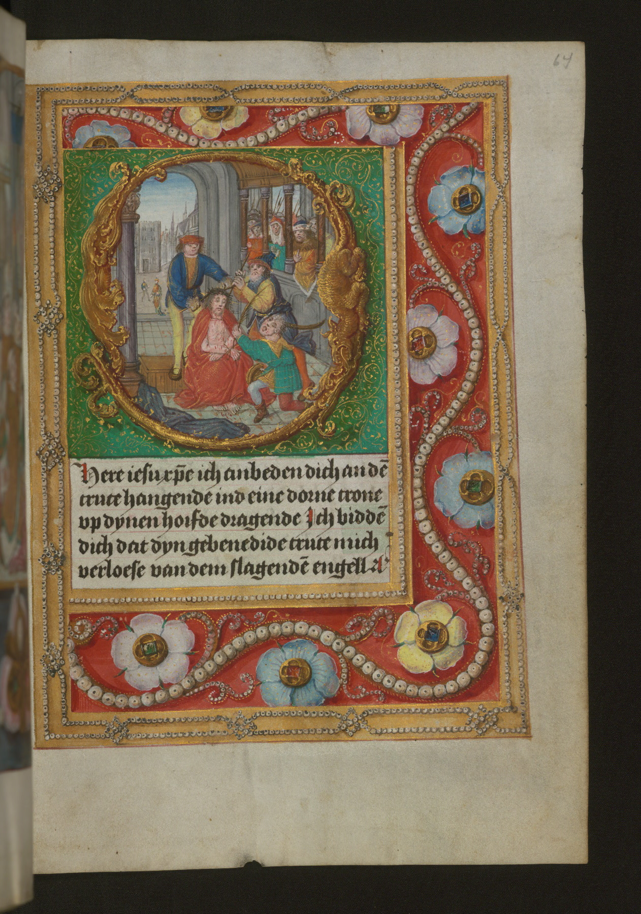 - Title: Mocking of Christ, with illusionistic jewelry in margins