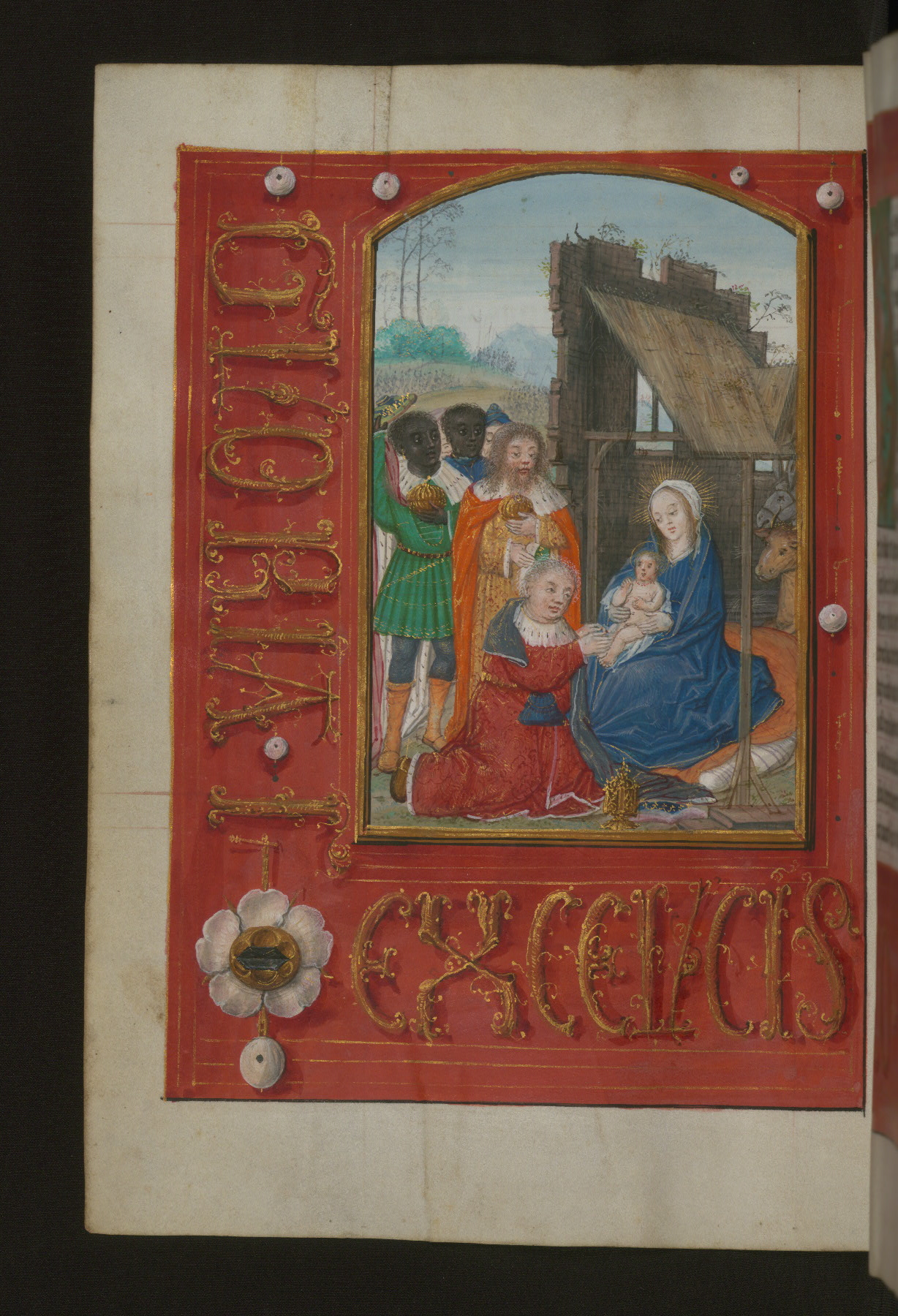 - Title: Adoration of the Magi, with illusionistic text and jewels in margins