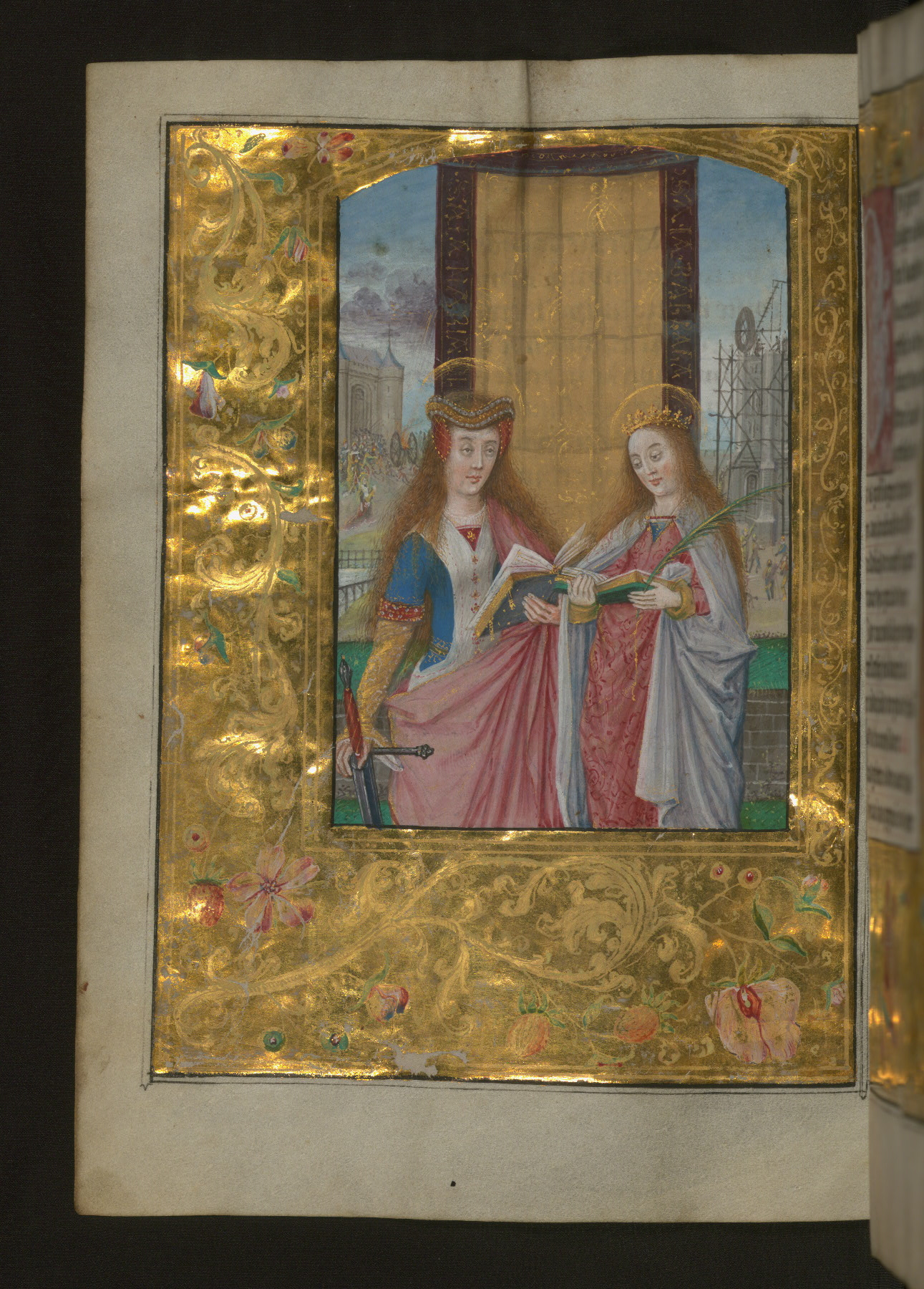 - Title: SS. Catherine and Barbara, with gold and floral marginal decoration