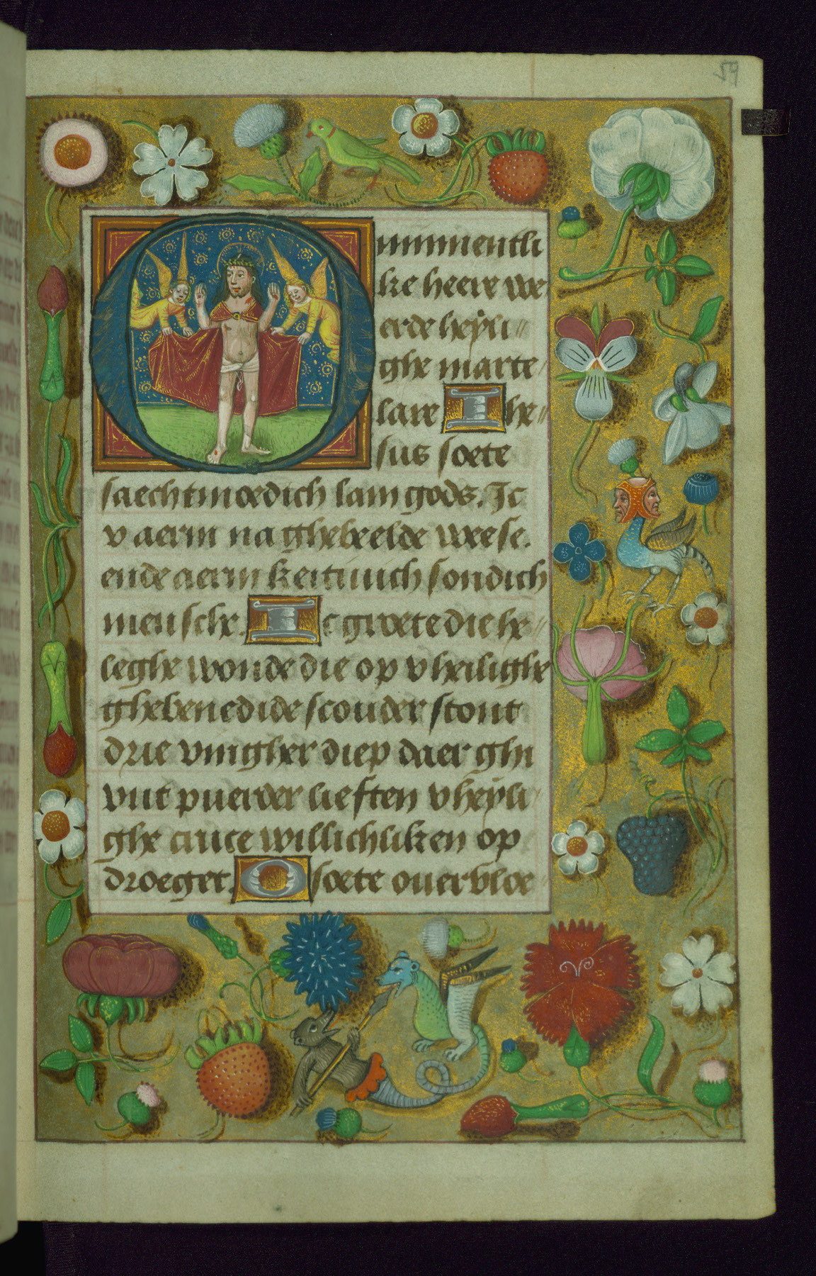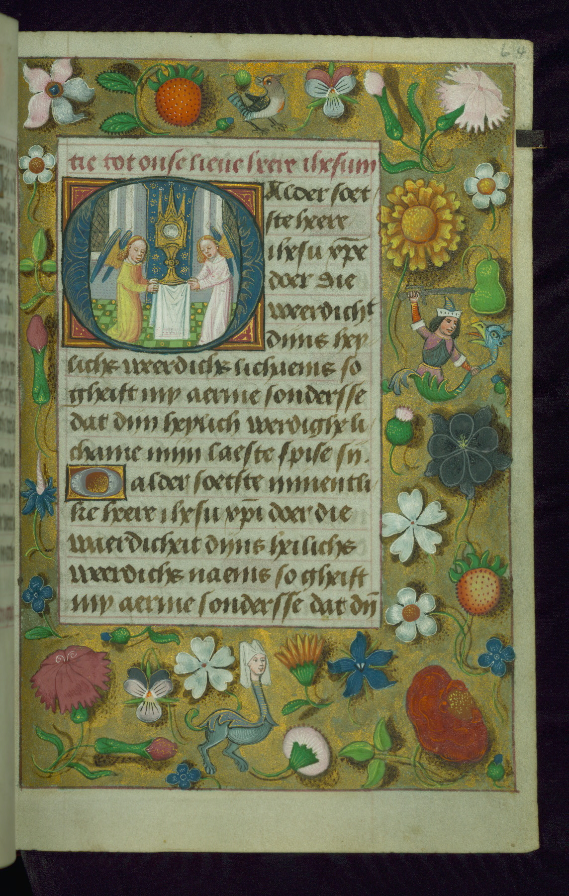 - Title: Initial "O" with two angels holding the Host