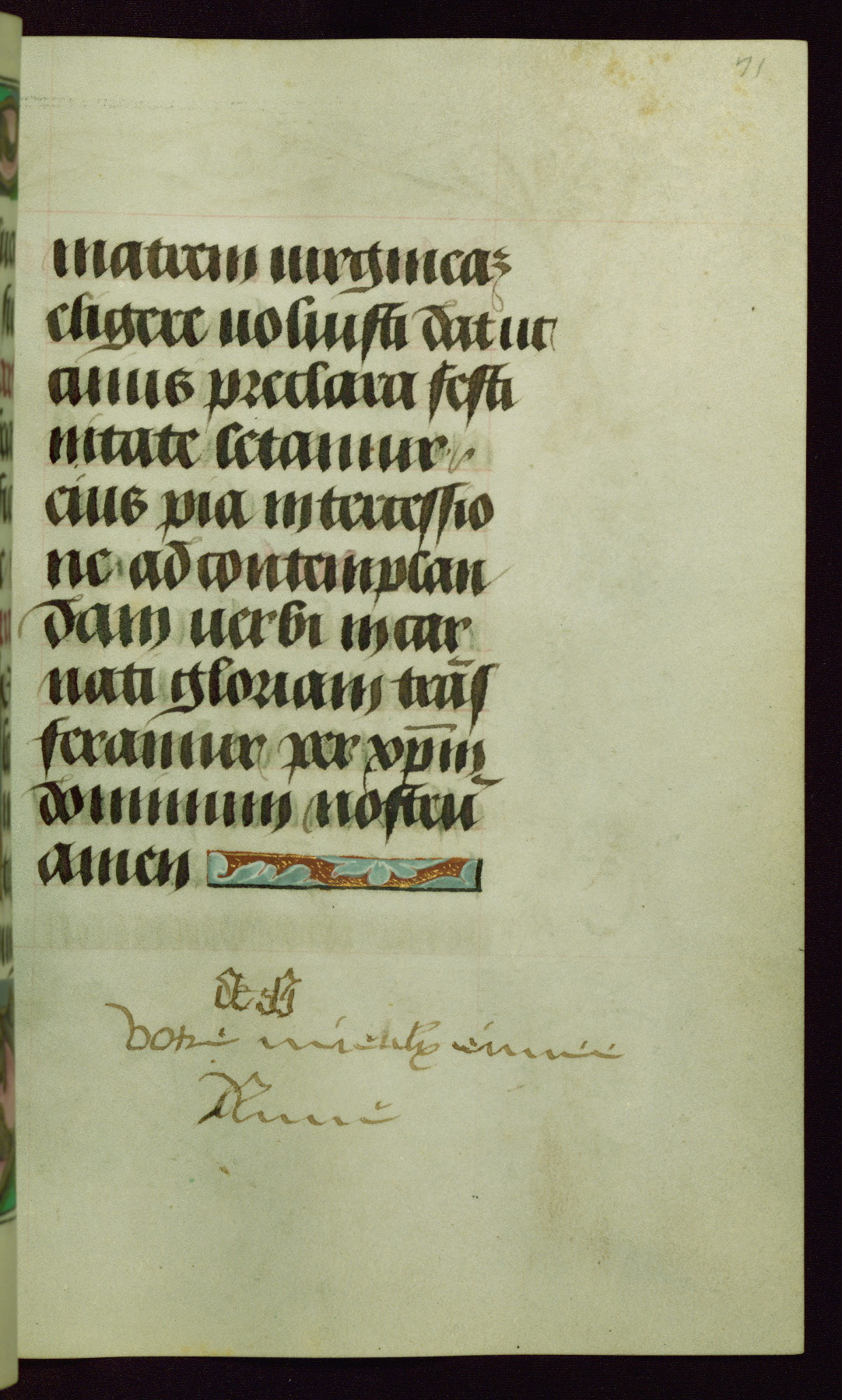 - Rubric: Incipiunt hore beatissime dei genitricis et virginis Marie In primis dicitur