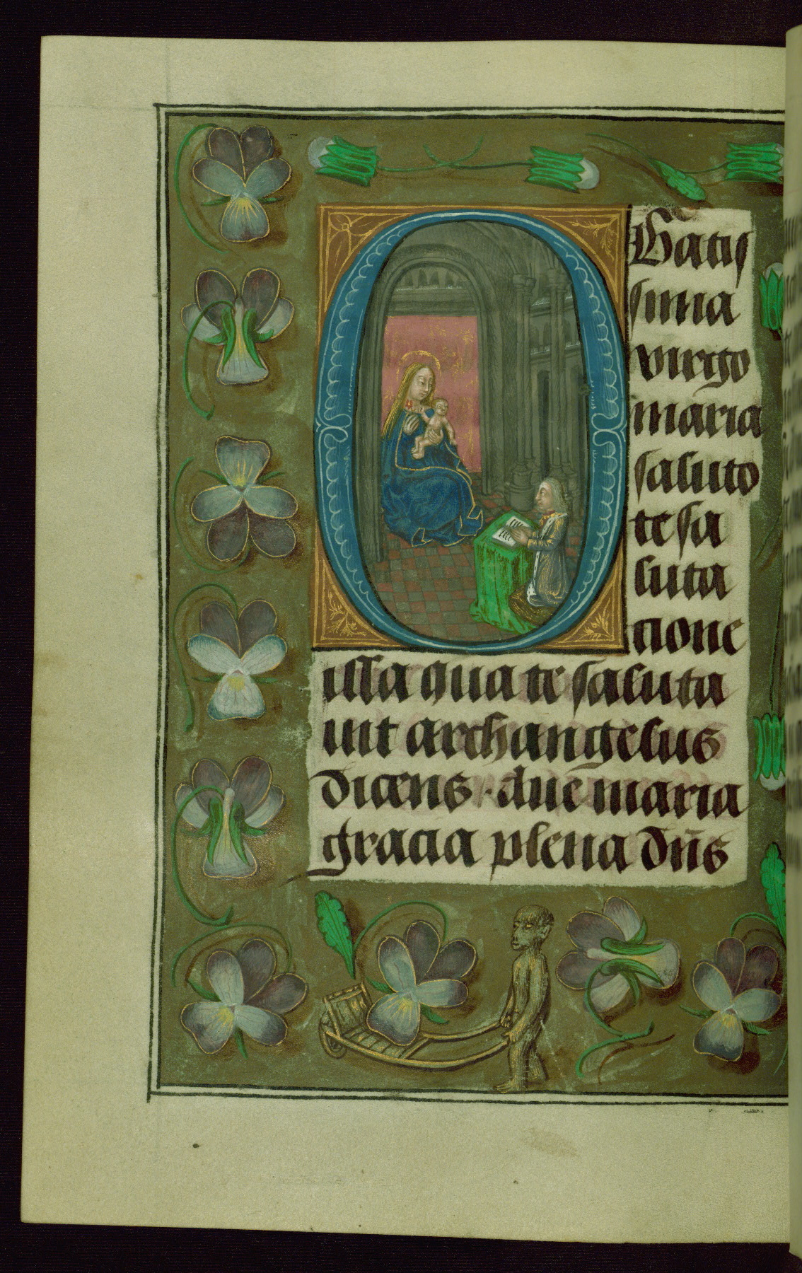 - Title: Initial "O" with manuscript owner Adolph of Cleves revering the Virgin of Humility and Child
