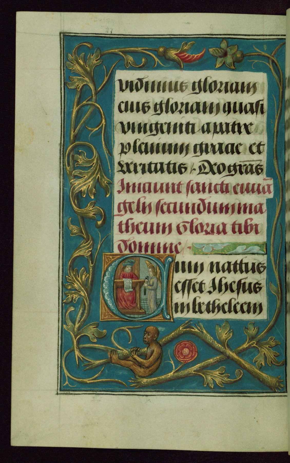 - Title: Initial "C" with the Evangelist Matthew writing on a scroll
