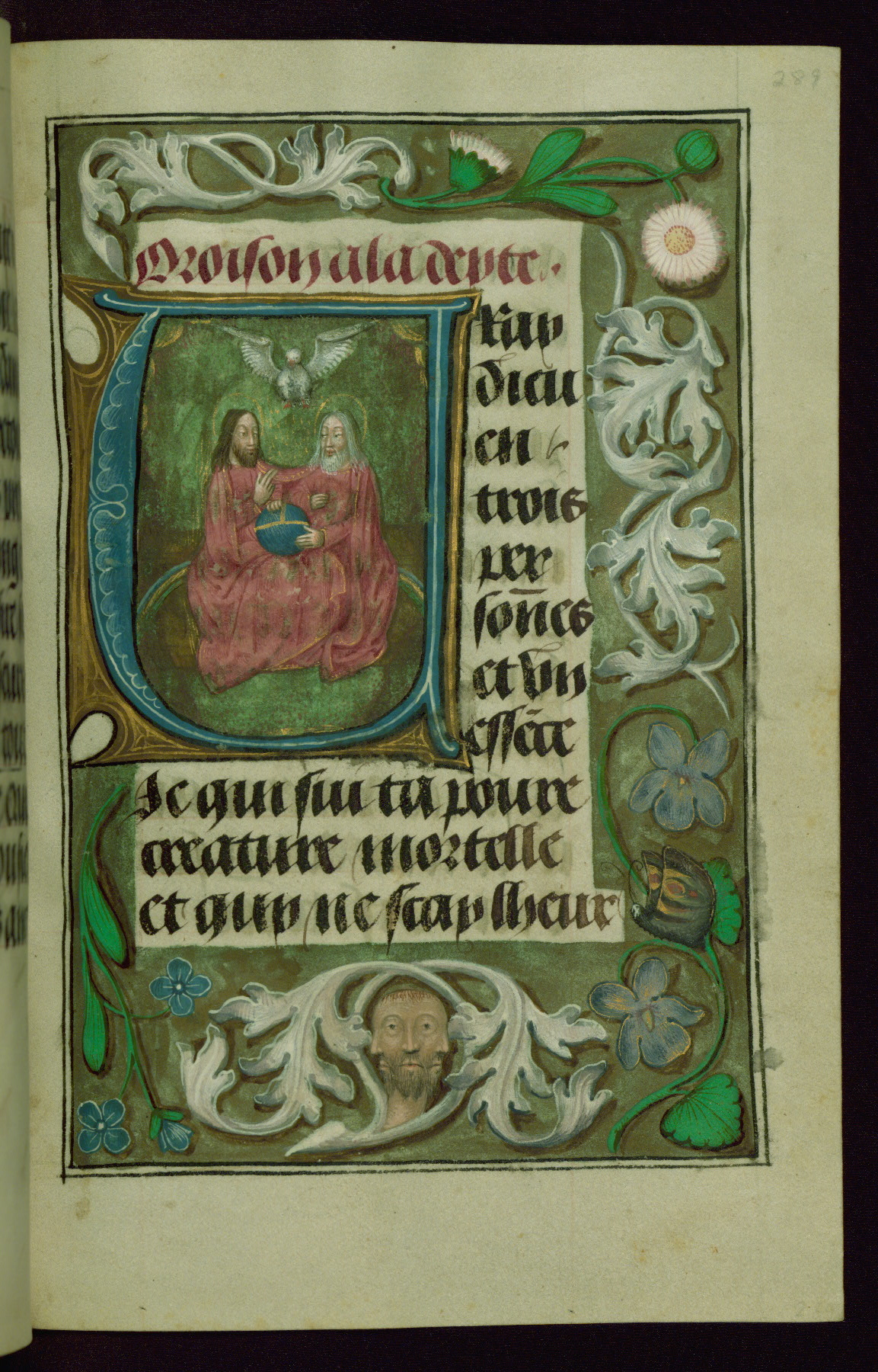 - Decoration note: Historiated initials with foliate and figurative decorations in the margins on fols. 246r, 266v, and 289r
