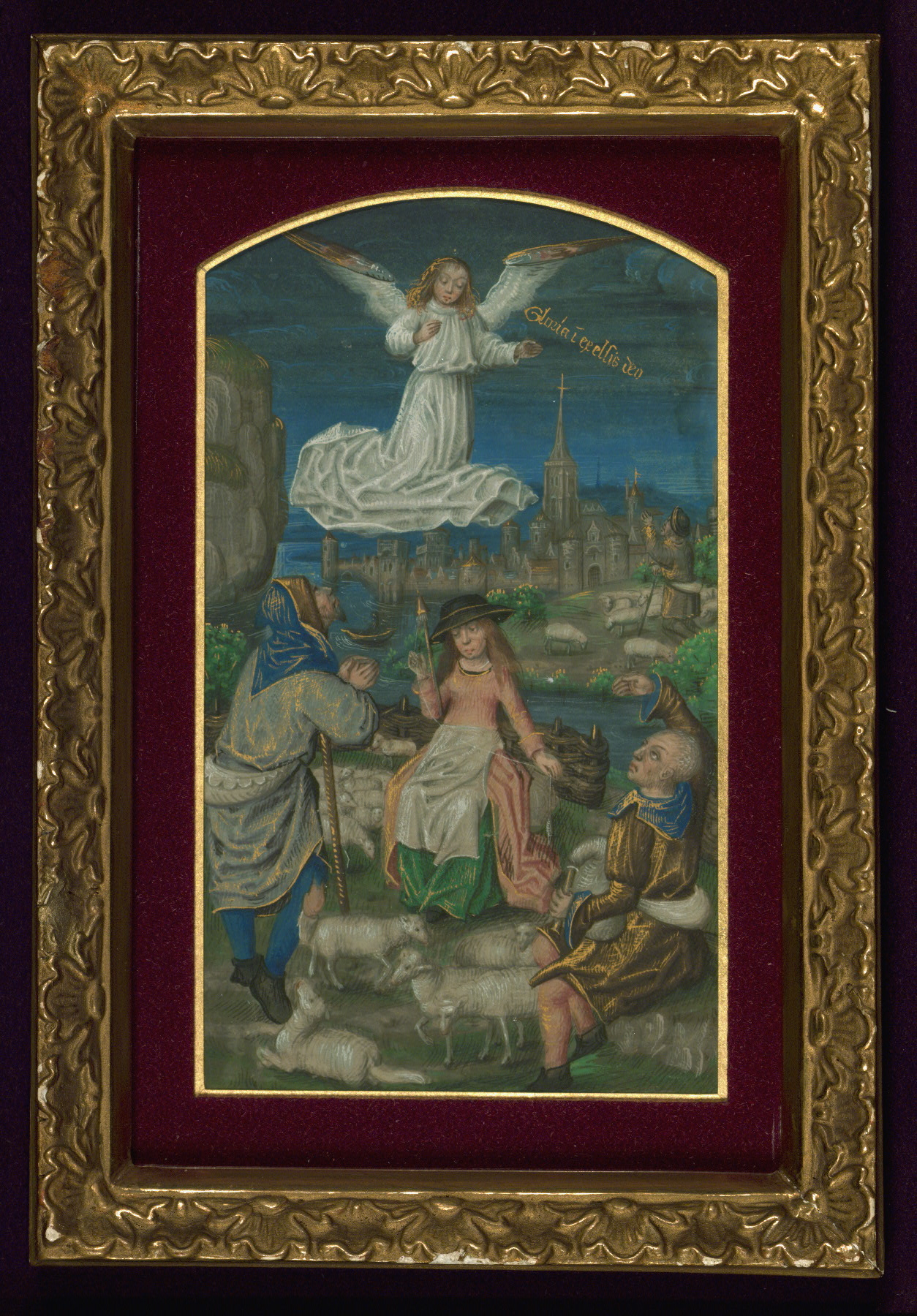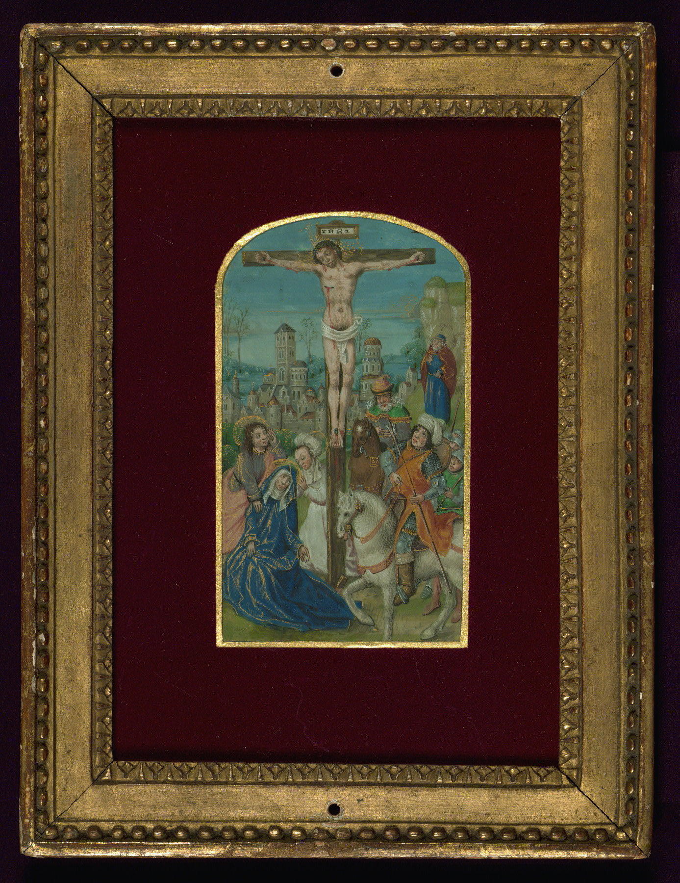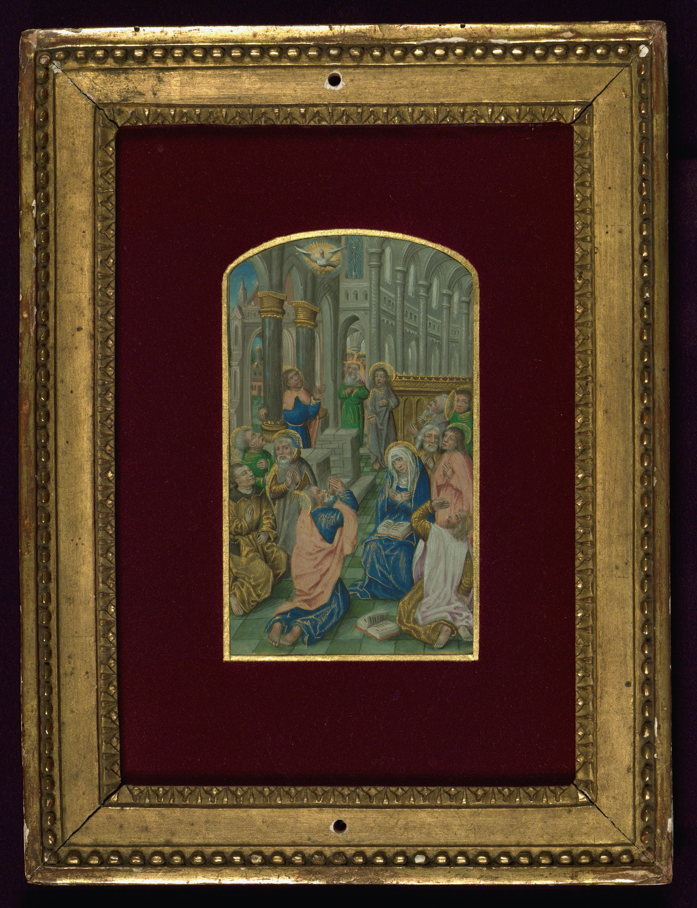 These six full-page miniatures were originally part of a Book of Hours created in Bruges ca. 1480-90. It is unknown at what point the images were excised from the book, but at least four of them were mounted and framed ca. 1900 by the Parisian bookdealer and binder Léon Gruel. Although the book they were part of has not been identified, and may be lost, Roger Wieck has suggested a stylistic relationship between these miniatures and works by the Master of Edward IV, an artist working in Bruges ca. 1470-90. For another example of work by this artist and his circle, see Walters manuscript W.435. As there is no text remaining with the images, their original positions within the text of the manuscript they once illuminated are conjectural, and the text identifiers included here are those proposed by Lilian Randall in her catalog.