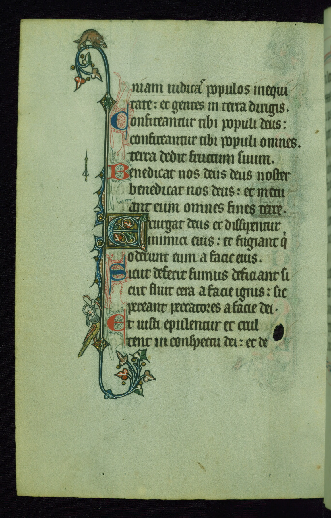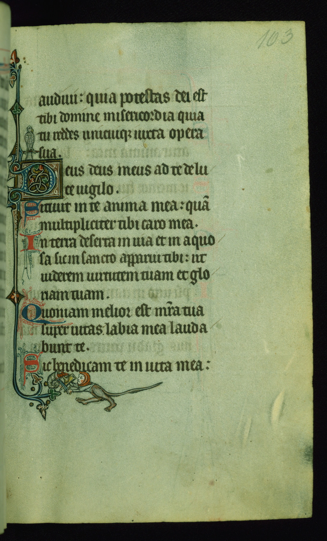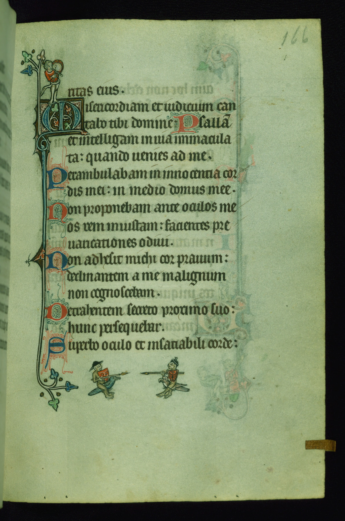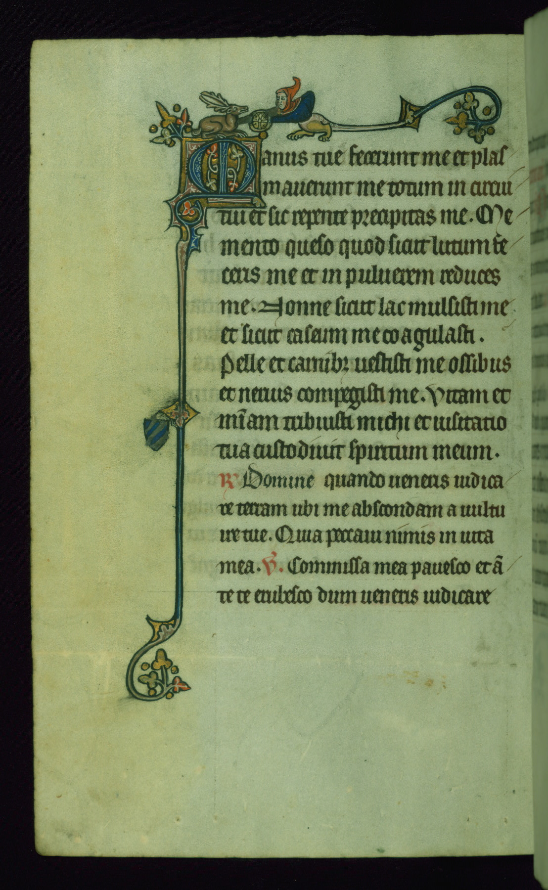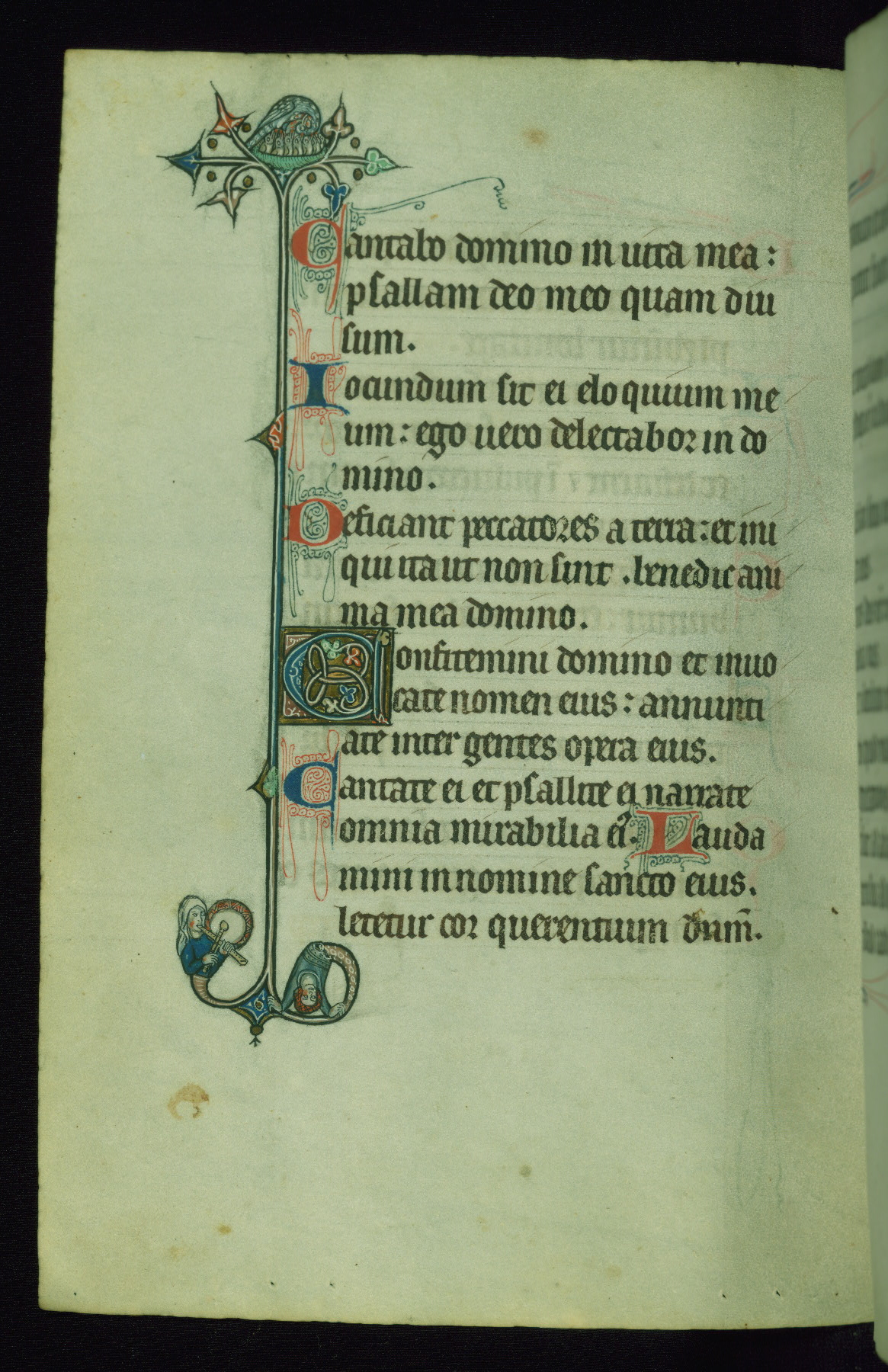 This Psalter, with an additional Office of the Dead, was created in the late thirteenth century in northeastern France. A large quantity of Franciscan saints in the calendar and litany, as well as marginal imagery of them, suggests that the original owner had a strong affinity for that order. The manuscript was likely begun for one patron but finished for another, given a change in scribal and artistic hands and the addition of heraldry from Psalm 109 onward. Arms for the Fieschi family, as well as a birth notice in the calendar, identify the manuscript's first owner as Leonardo dei Fieschi, a Genoese nobleman (d. 1331). Among a multitude of drolleries, the manuscript contains a number of unusual marginal vignettes depicting SS. Francis, Clare, and Elisabeth of Hungary. One image of St. Francis (fol. 139v) is heavily worn, which may be evidence of devotional touching by the manuscript's owner.