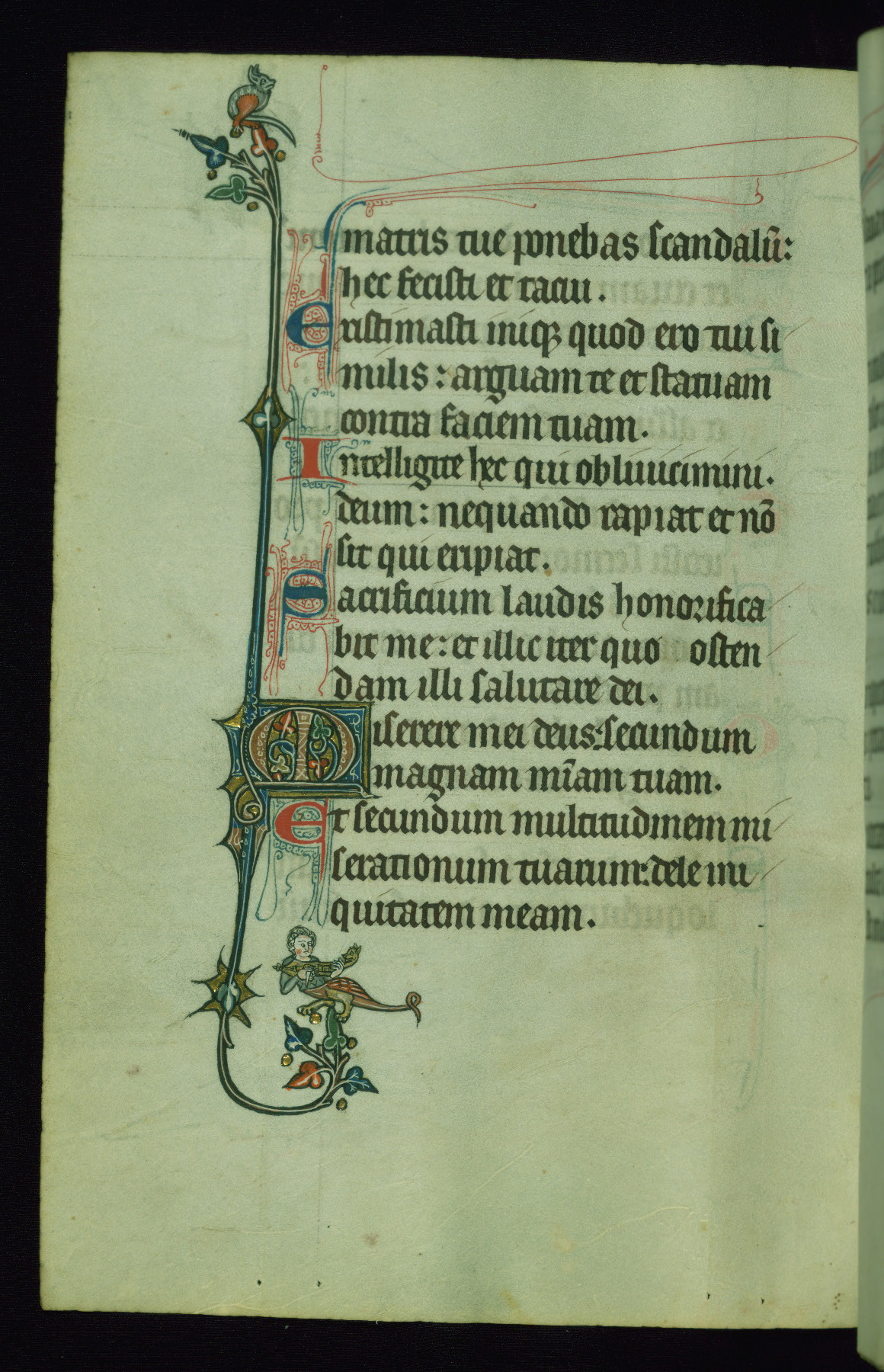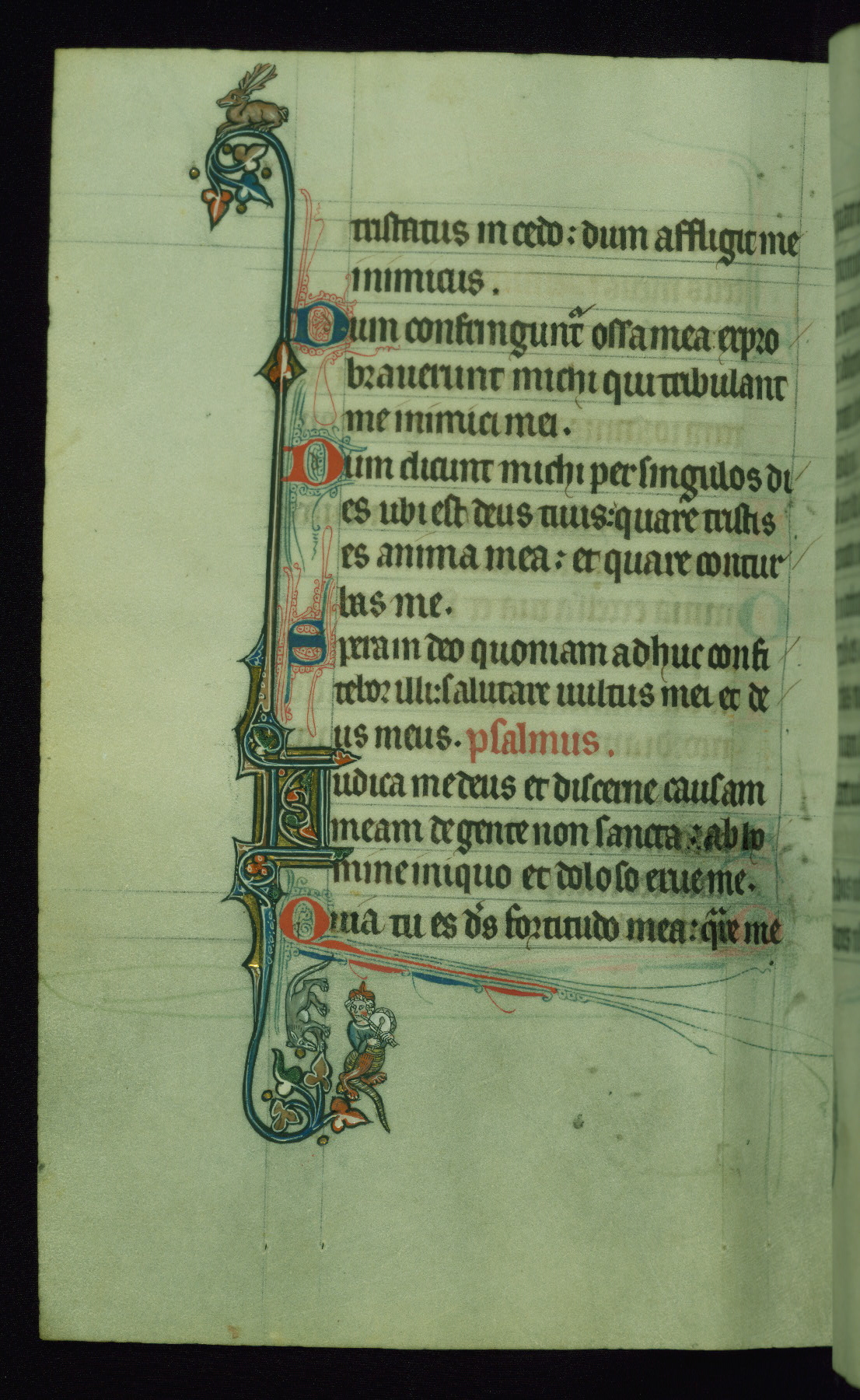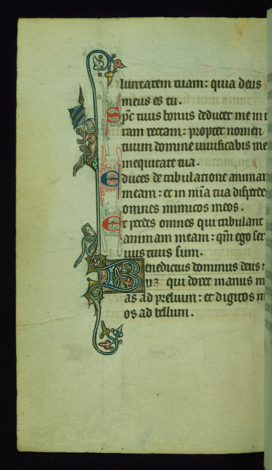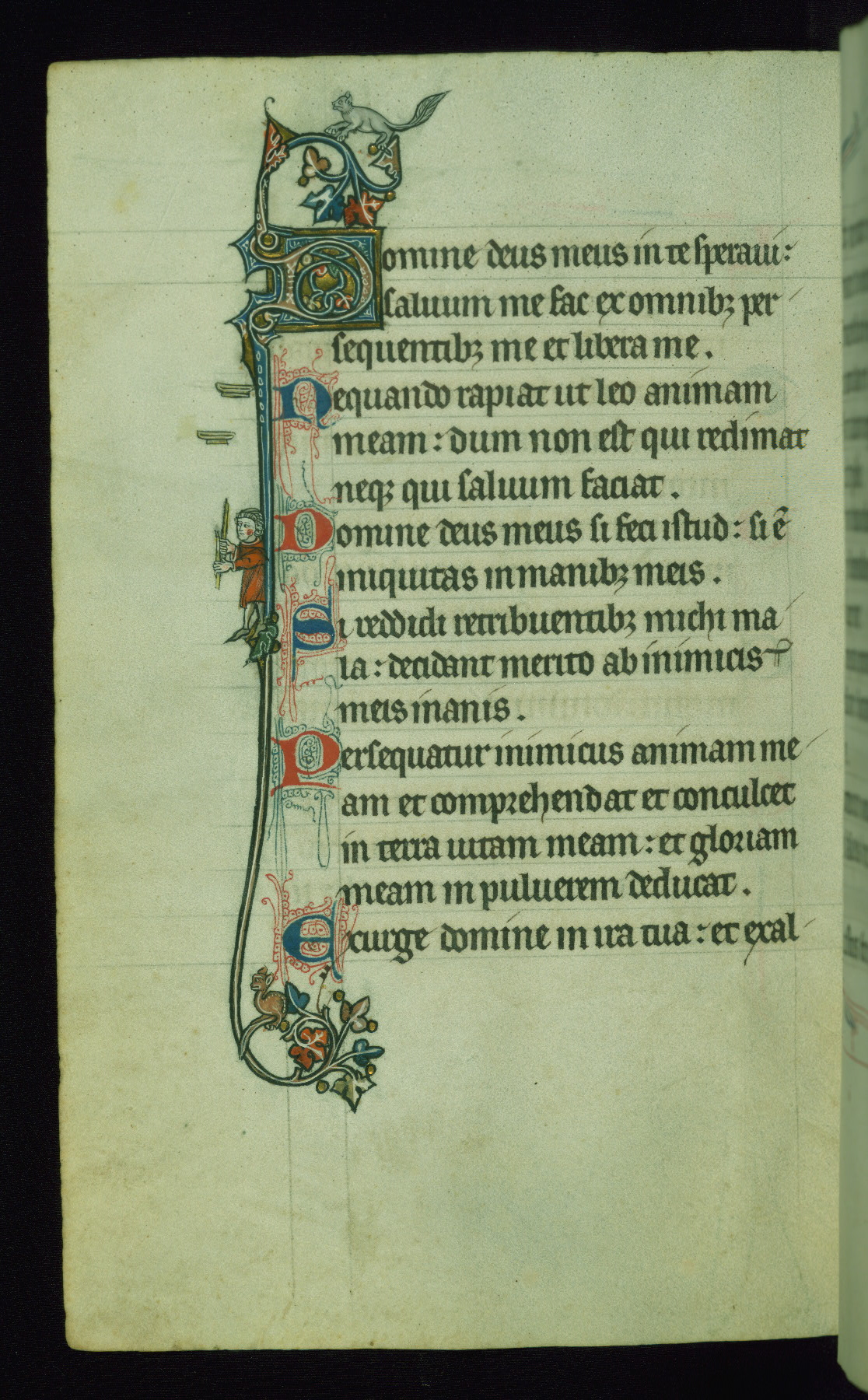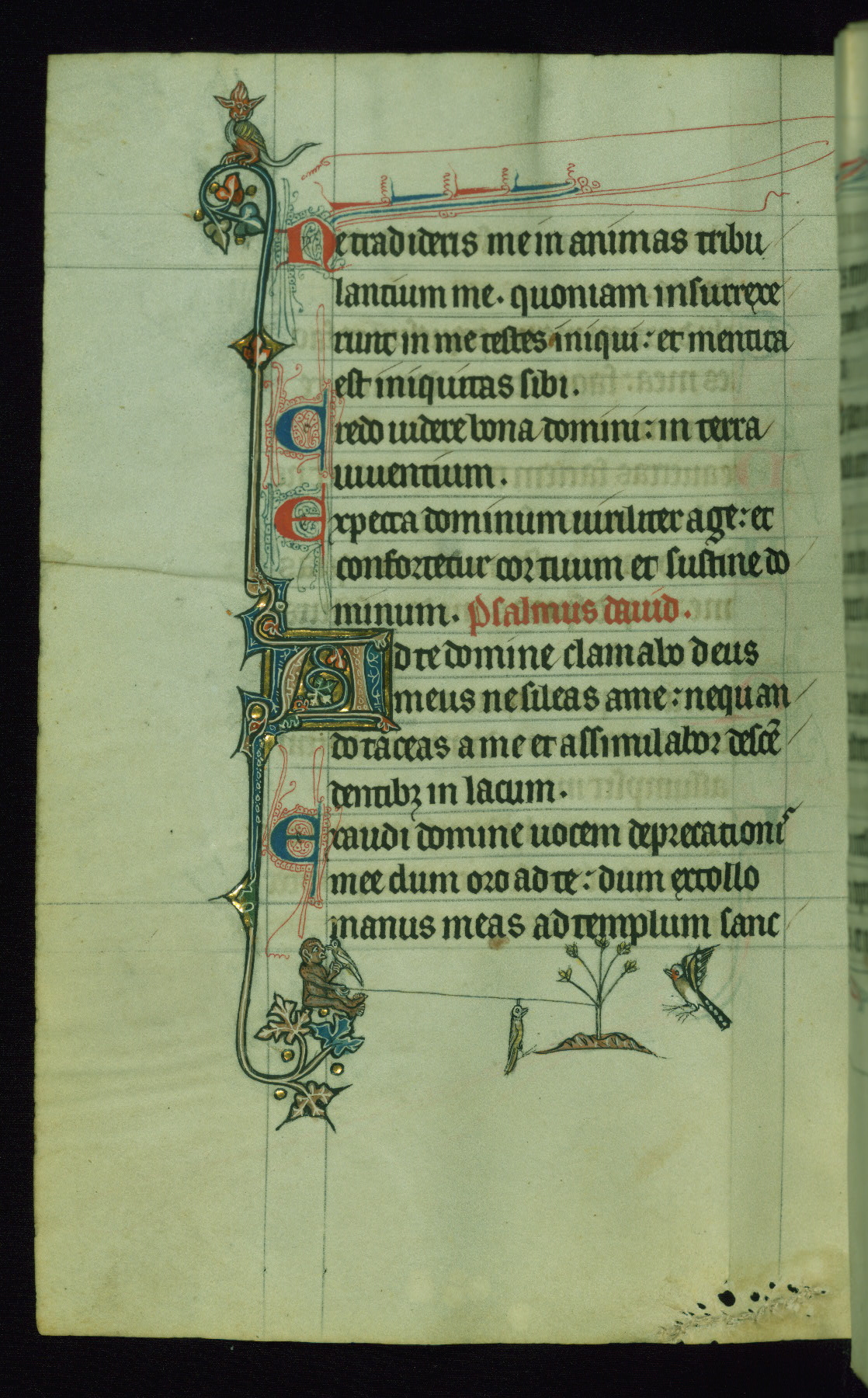 This Psalter, with an additional Office of the Dead, was created in the late thirteenth century in northeastern France. A large quantity of Franciscan saints in the calendar and litany, as well as marginal imagery of them, suggests that the original owner had a strong affinity for that order. The manuscript was likely begun for one patron but finished for another, given a change in scribal and artistic hands and the addition of heraldry from Psalm 109 onward. Arms for the Fieschi family, as well as a birth notice in the calendar, identify the manuscript's first owner as Leonardo dei Fieschi, a Genoese nobleman (d. 1331). Among a multitude of drolleries, the manuscript contains a number of unusual marginal vignettes depicting SS. Francis, Clare, and Elisabeth of Hungary. One image of St. Francis (fol. 139v) is heavily worn, which may be evidence of devotional touching by the manuscript's owner.