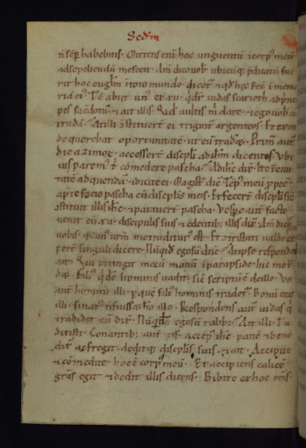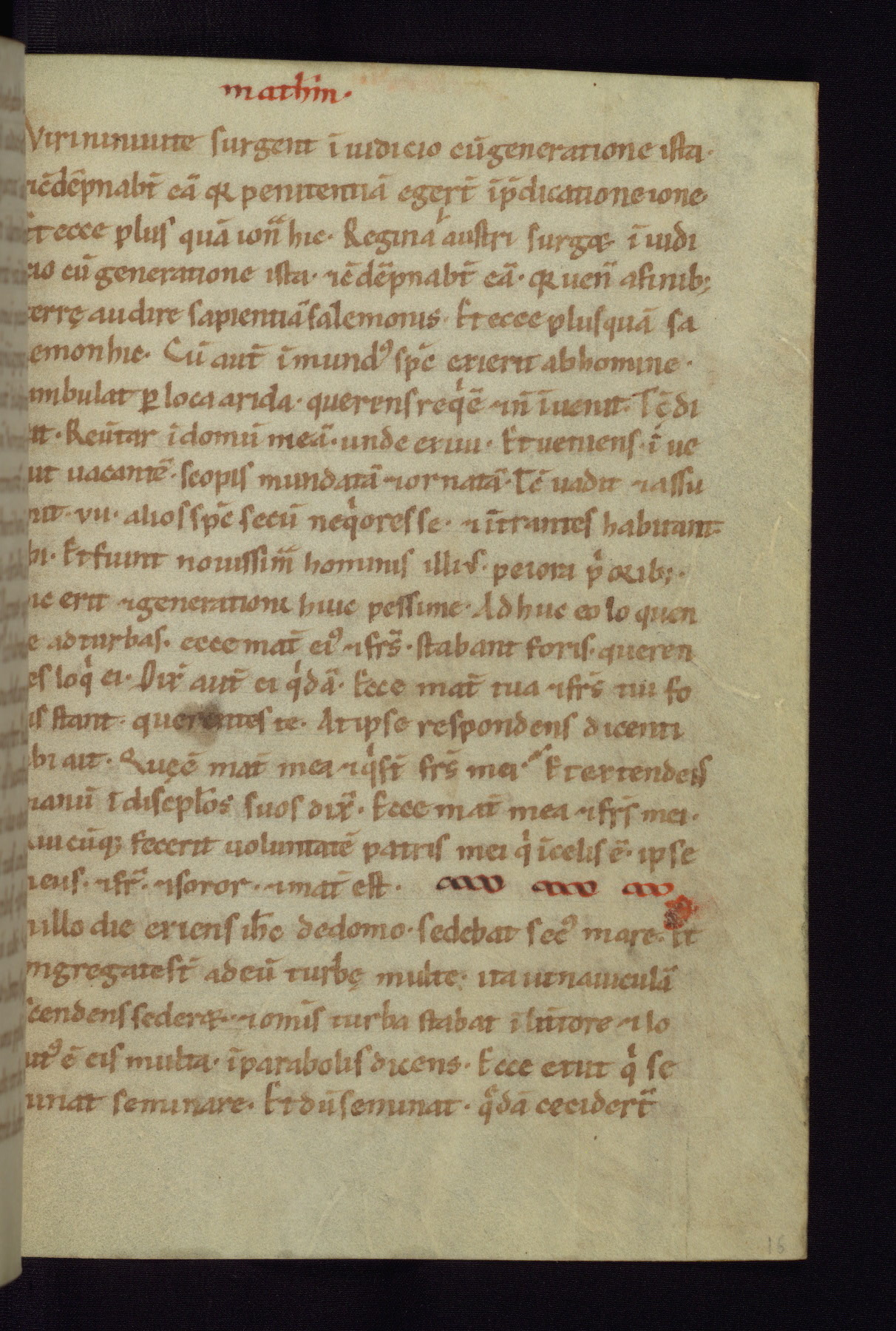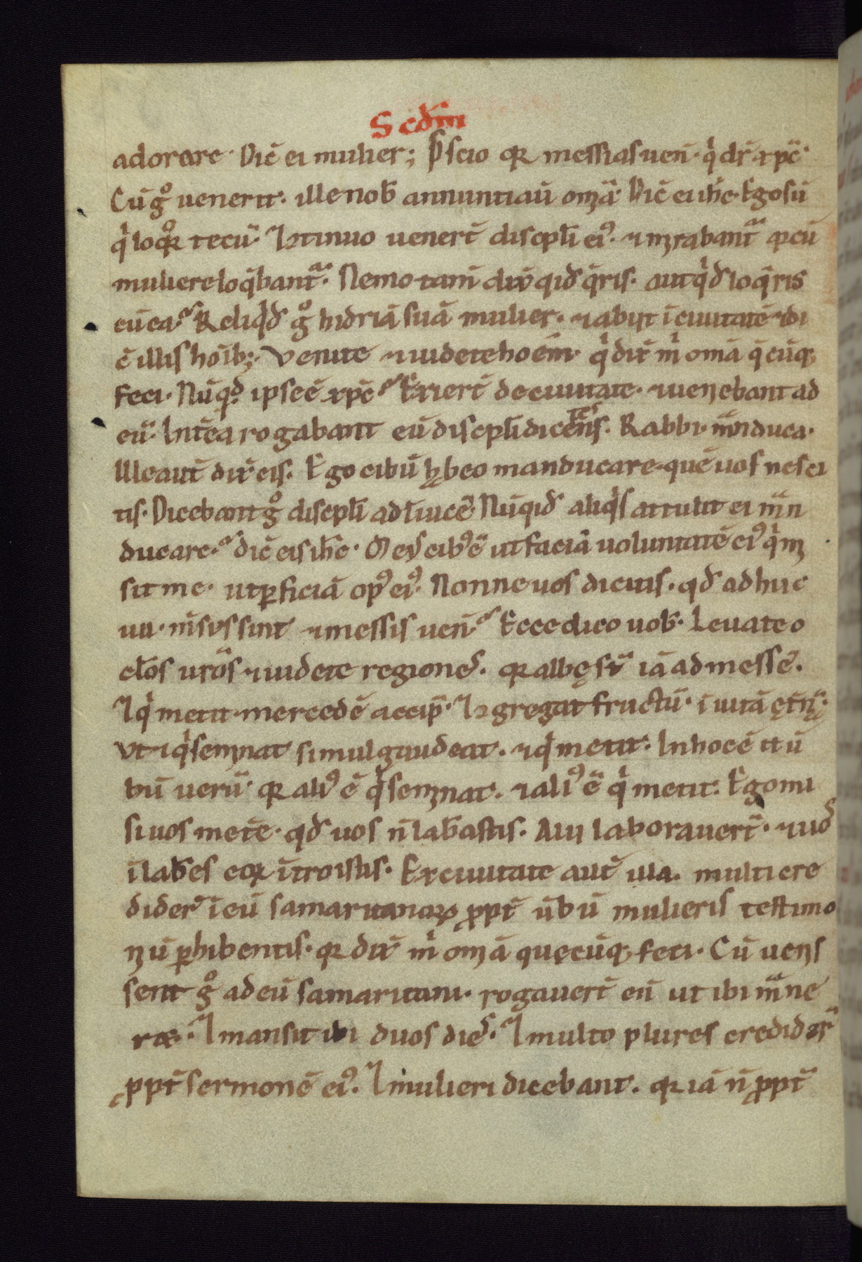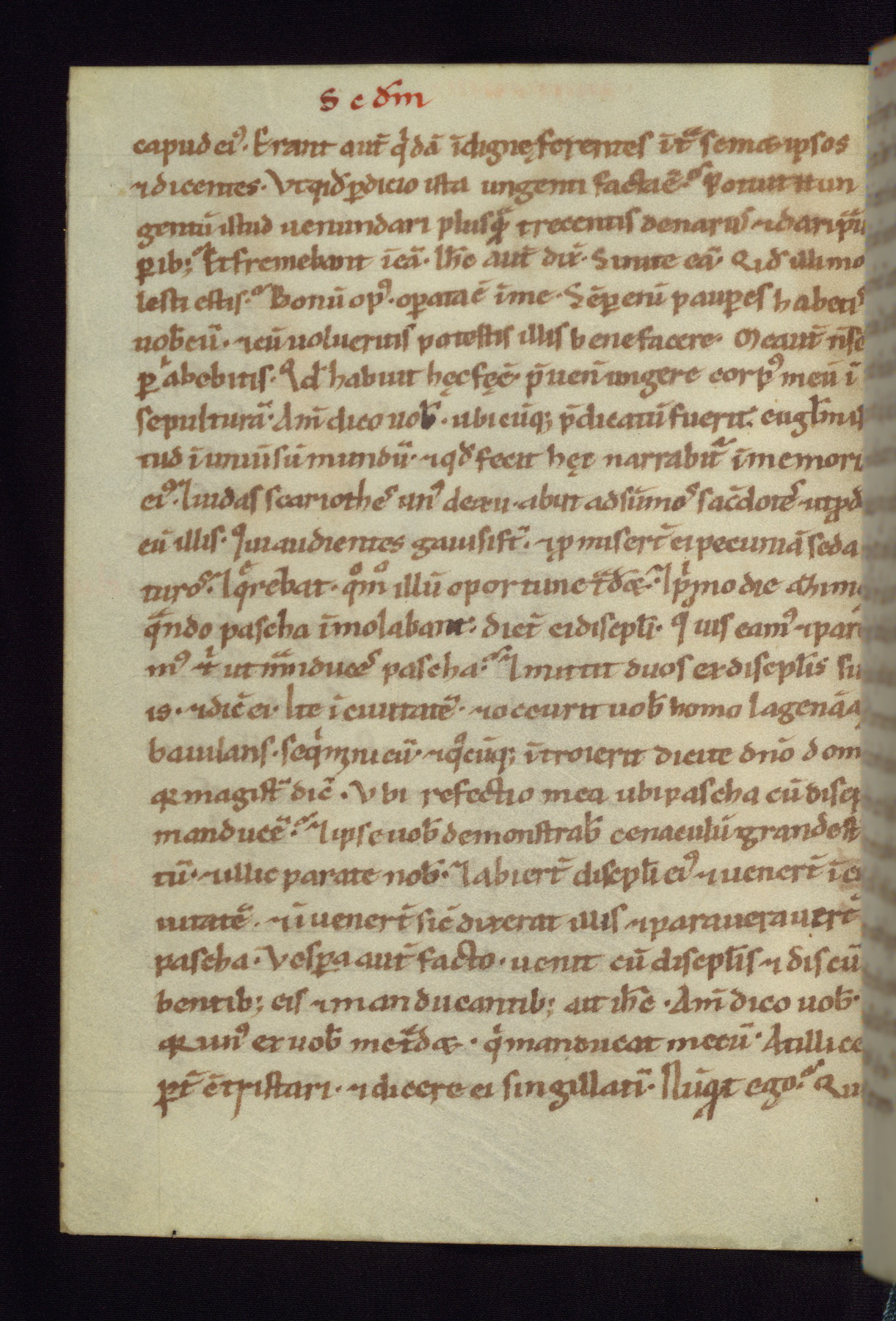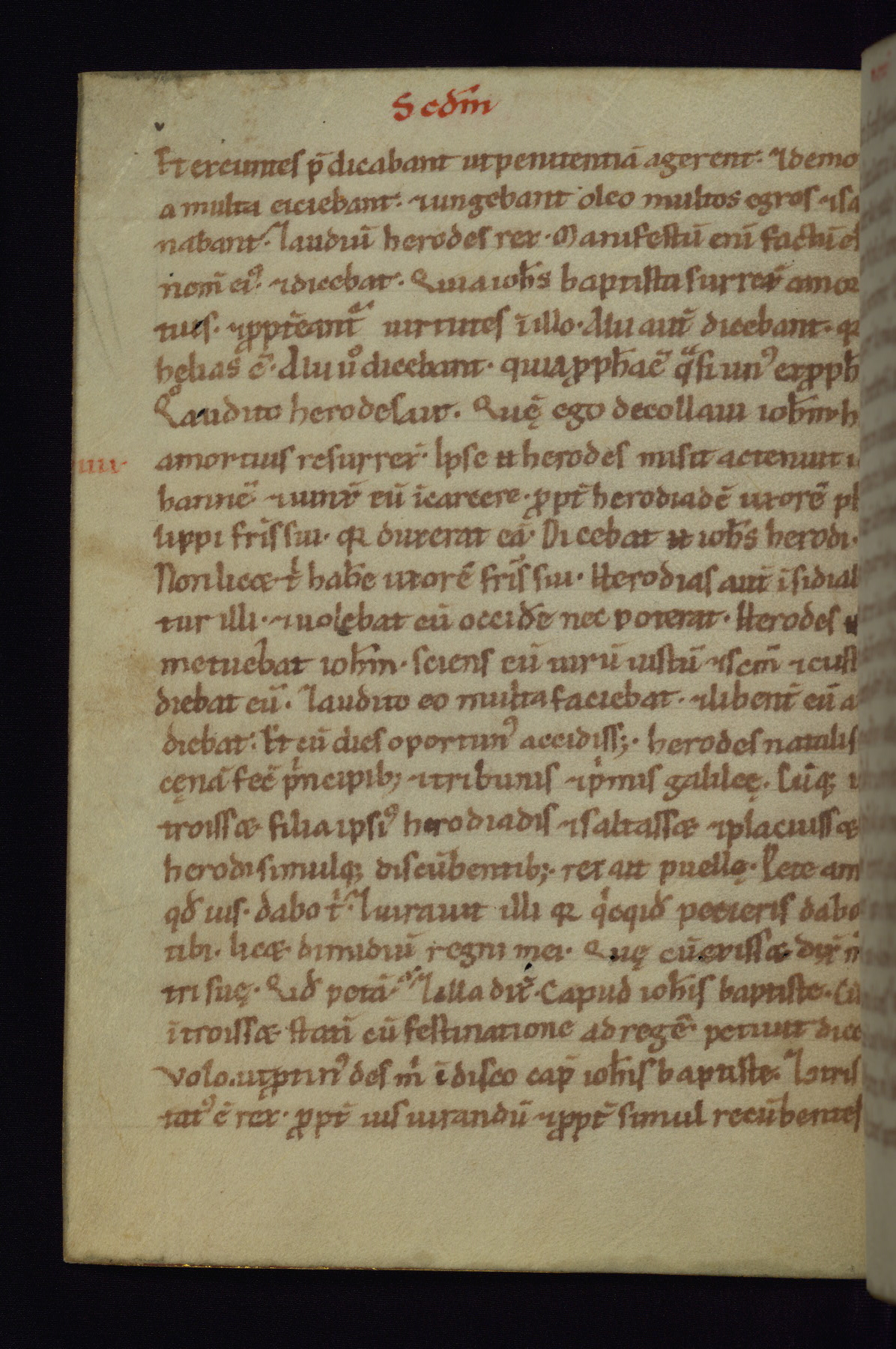 This small Gospel Book was made in Werden, Germany, in the eleventh century. Its size indicates that it was intended for daily, personal use, and a series of ownership inscriptions on the first folio, which trace the ownership of the manuscript among several members of the clergy, provides insight into its use. Although the book contains little decoration, with no canon tables or ornamental initials, the Gospels are introduced by three brown- and red-ink pen drawings of the Evangelists, two of which were embedded into the end of the previous Gospel by the artist. The manuscript is, however, incomplete and lacks the end of Matthew as well as the portrait of Mark, which was likely incorporated into Matthew's explicit page, as was done with the other portraits.